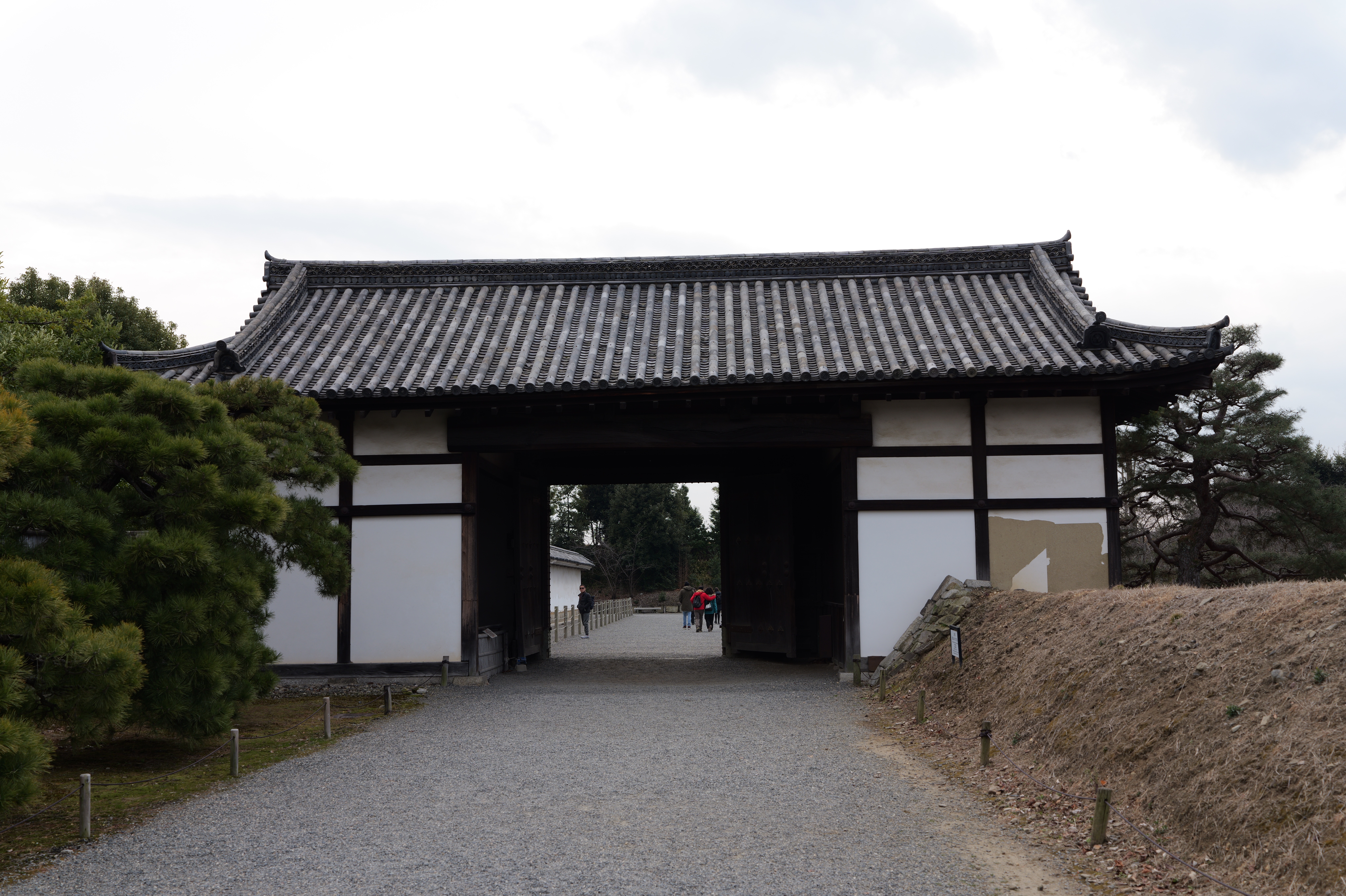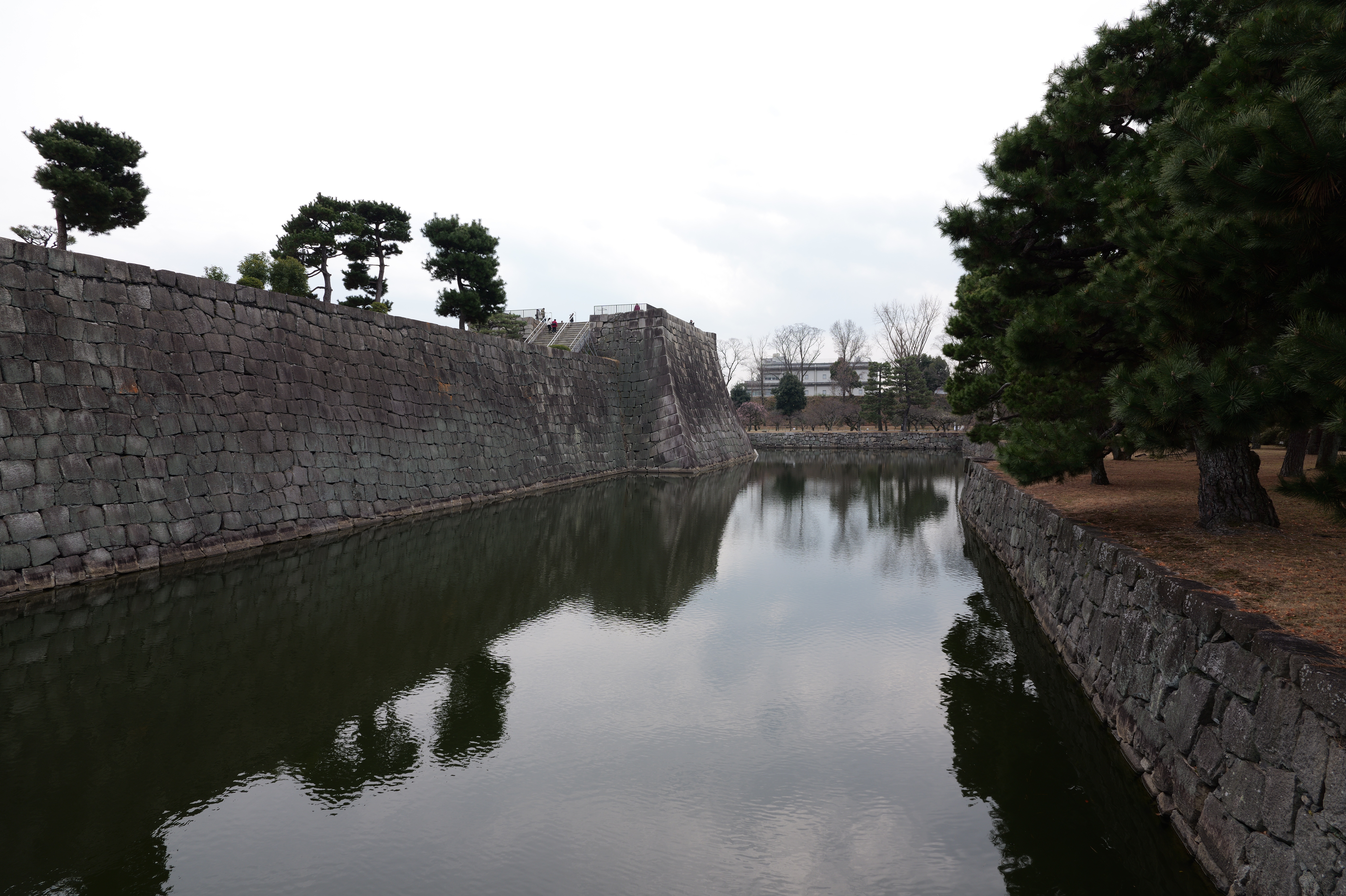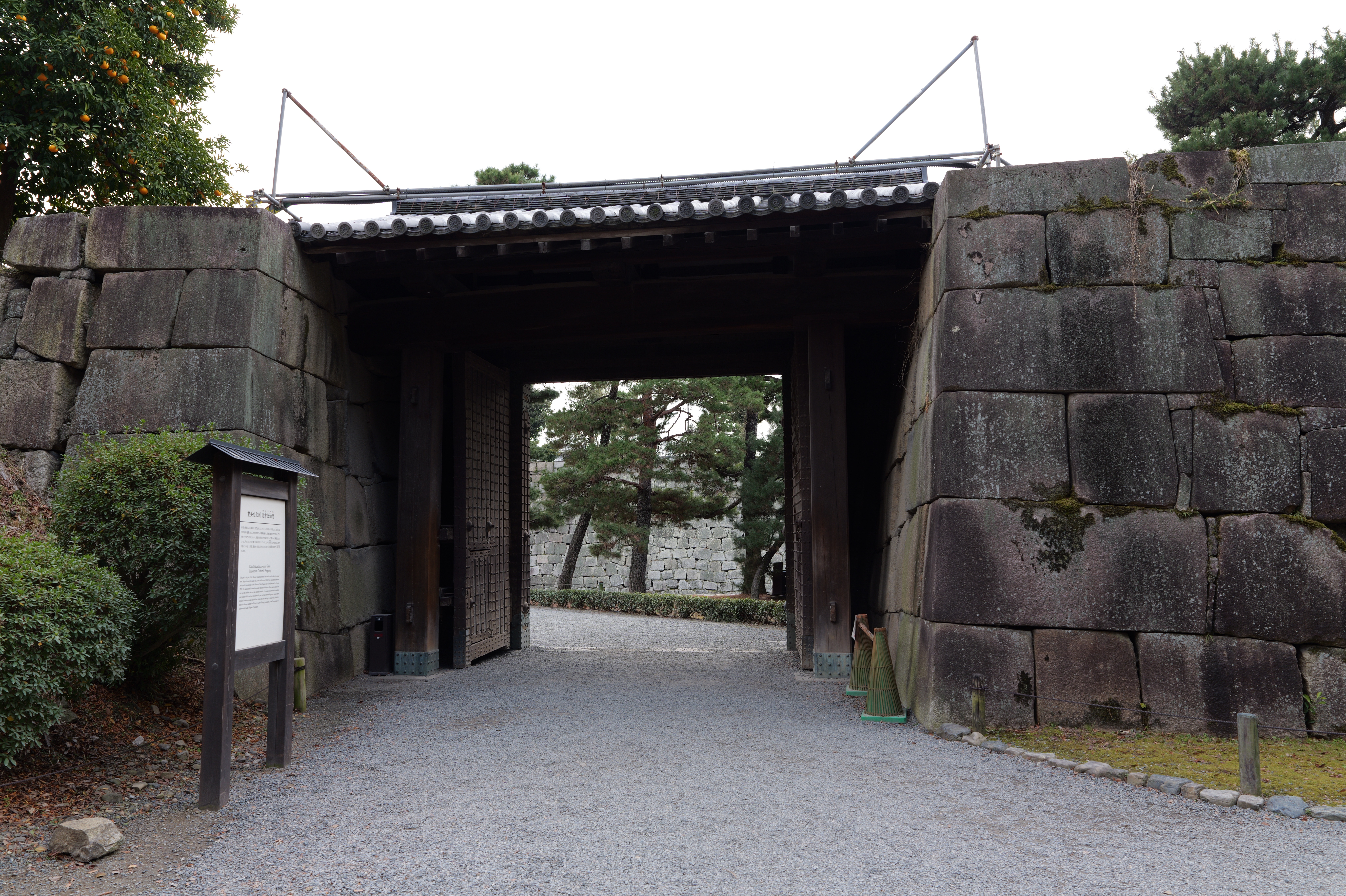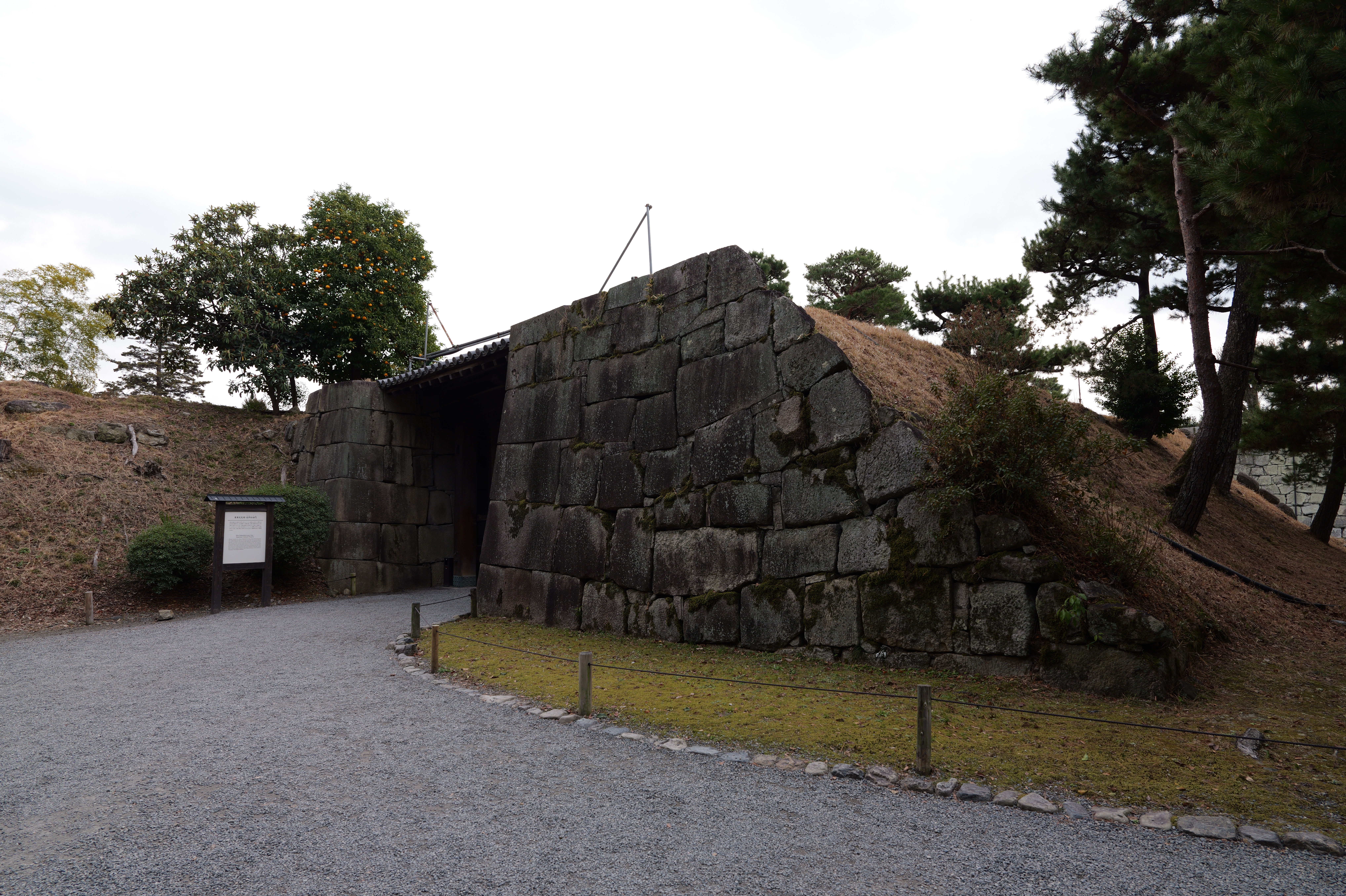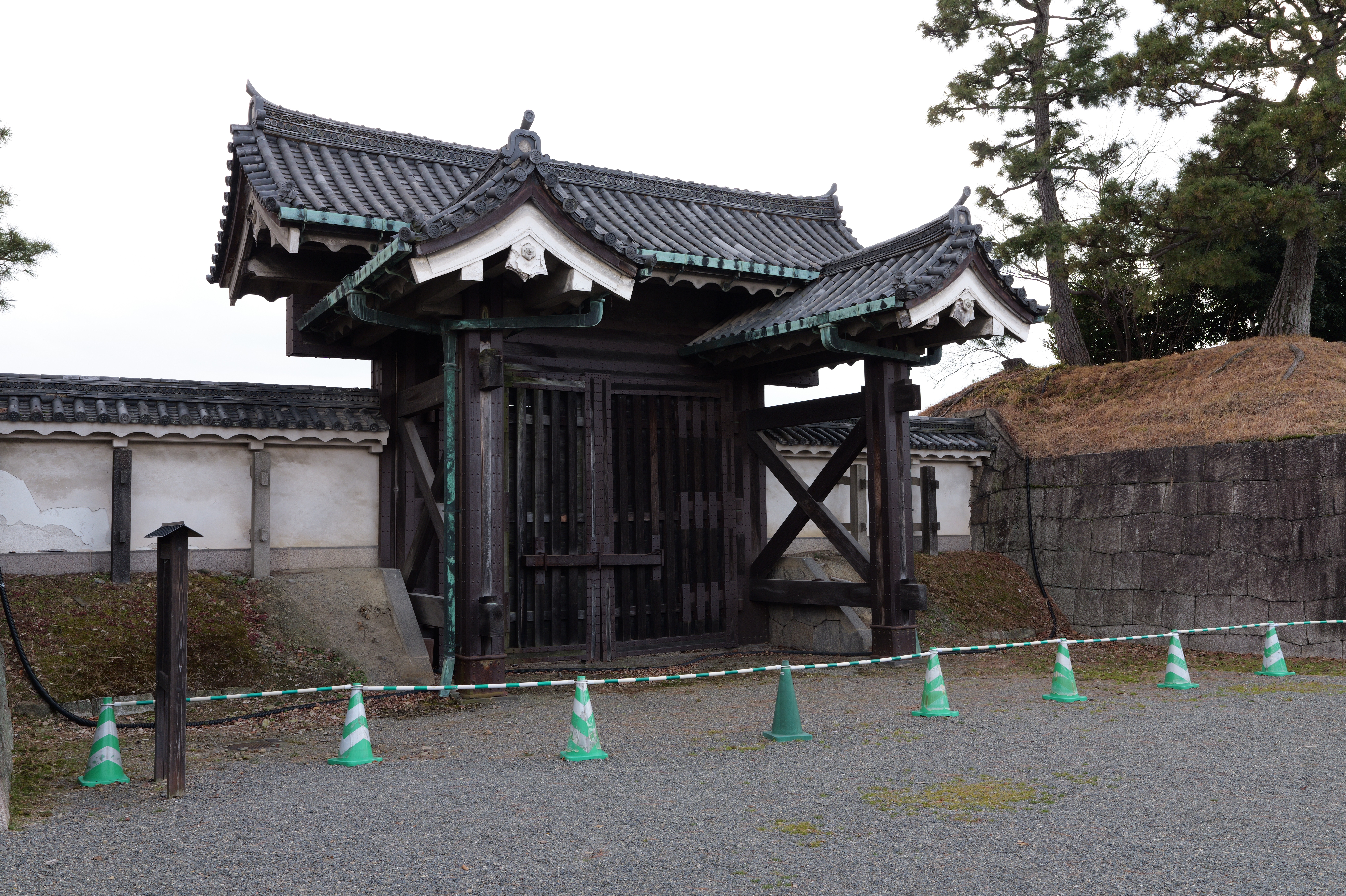 南の丸の東側に出ると右側に岡口門、左側に岡中門跡。岡口門に進みます。岡口門は築城当時の大手門でした。空襲でも焼けずに残った数少ない遺構で、北側の土塀とともに重要文化財に指定されています。岡口門を出たところには東内堀が広がっています。岡中門跡をとおり、二の丸、御橋廊下、勘定御門を通って13時半前、約三時間半の散策終了です。