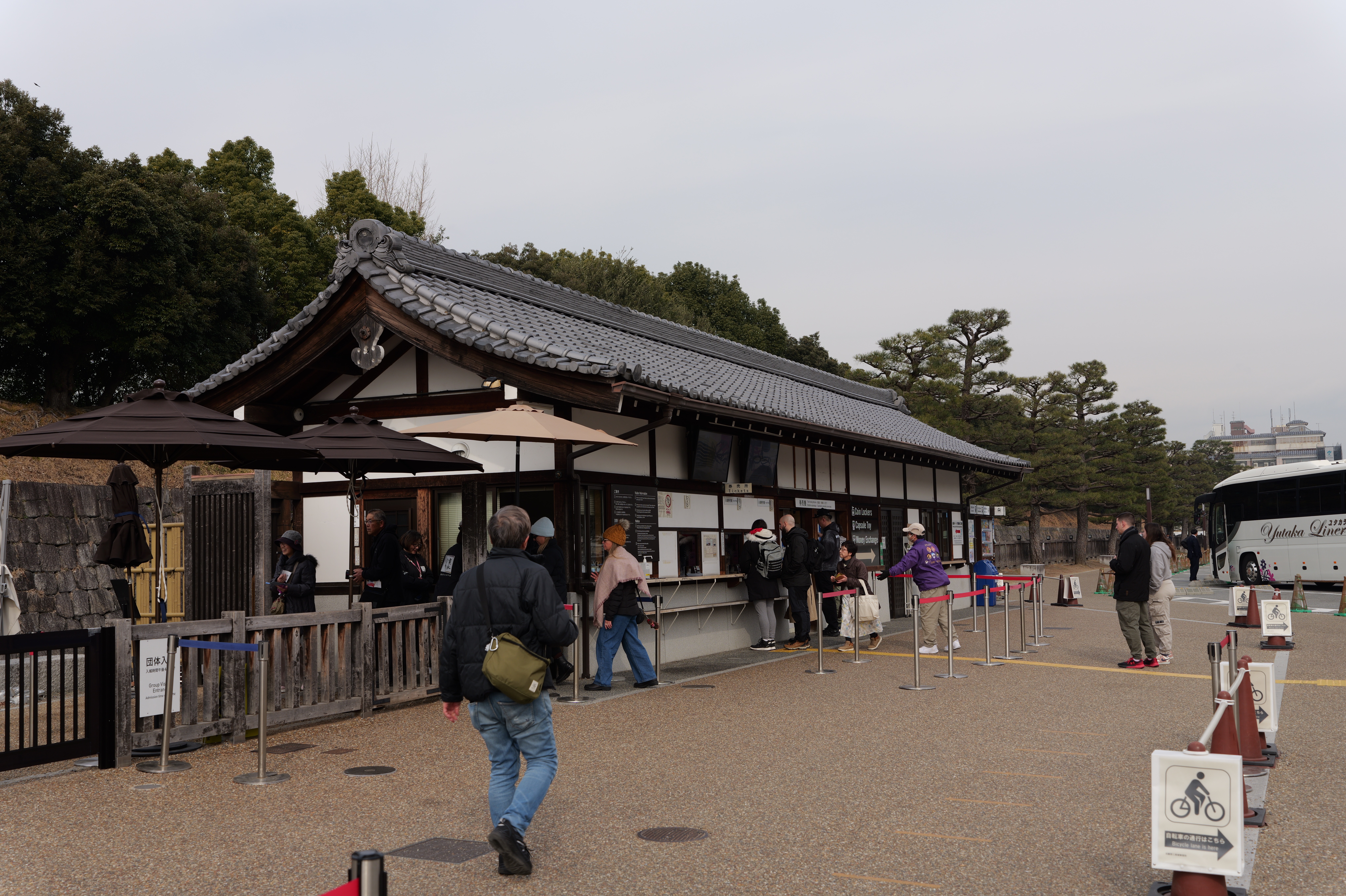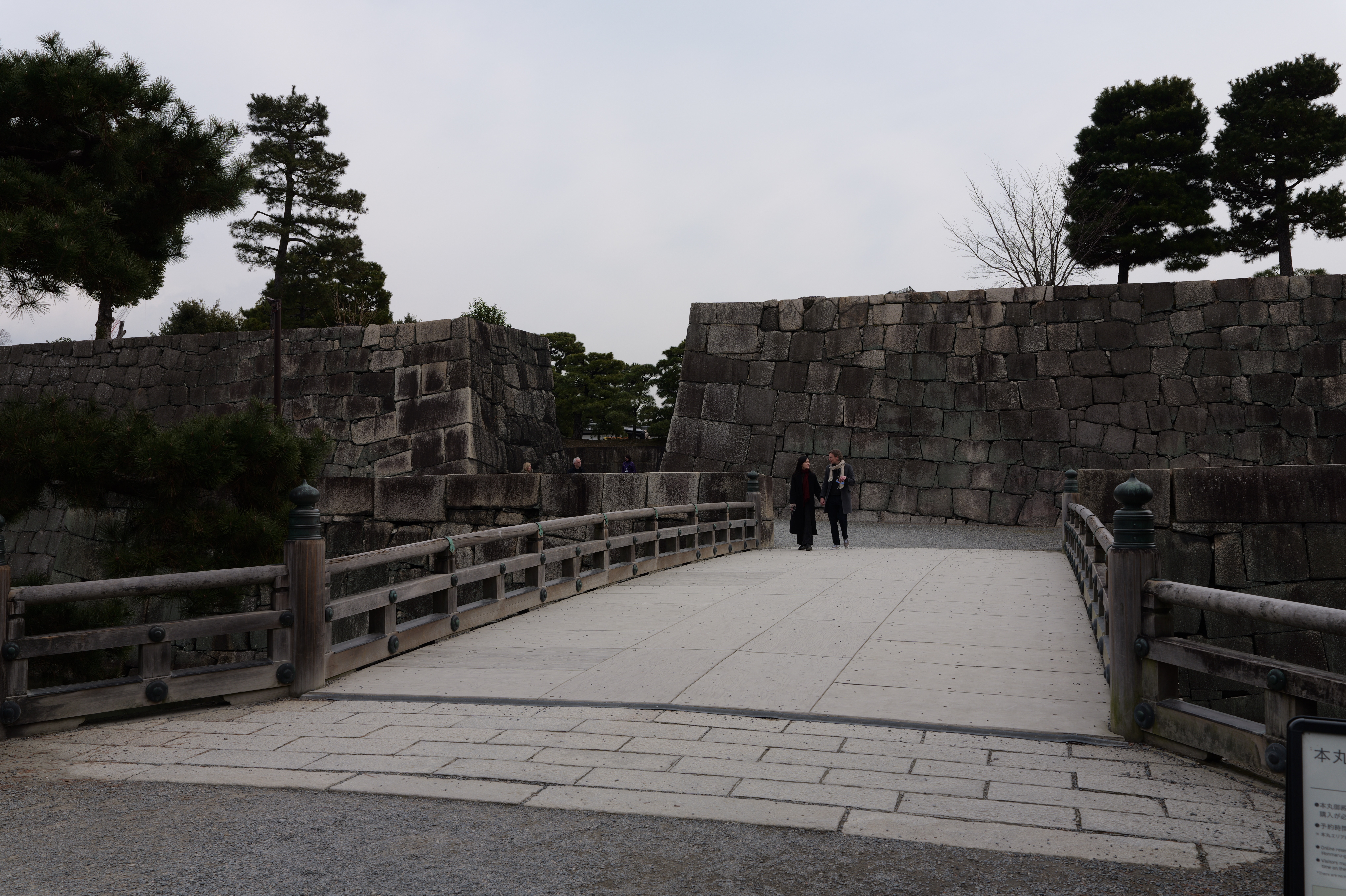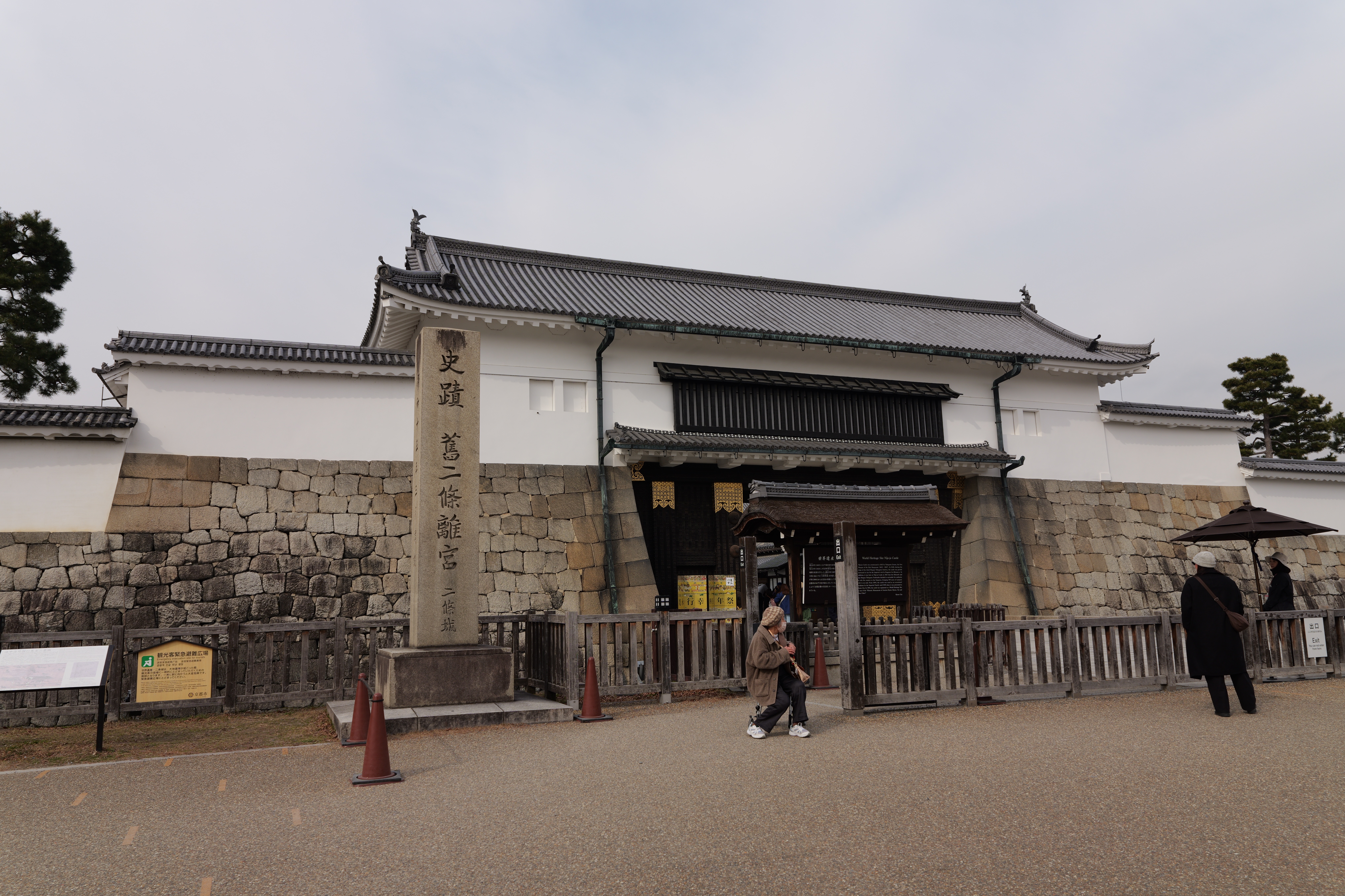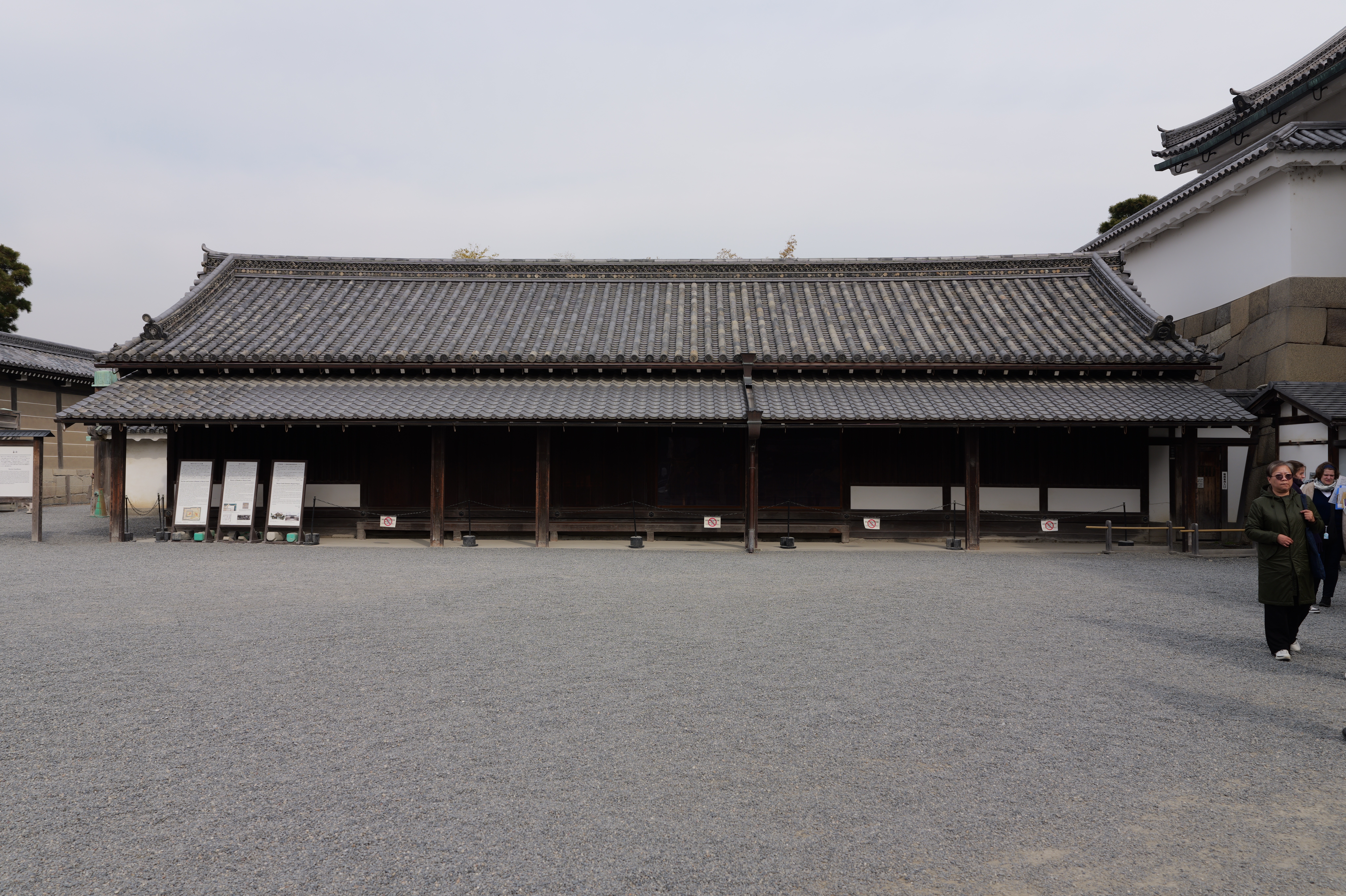 南の丸の東側に出ると右側に岡口門、左側に岡中門跡。岡口門に進みます。岡口門は築城当時の大手門でした。空襲でも焼けずに残った数少ない遺構で、北側の土塀とともに重要文化財に指定されています。岡口門を出たところには東内堀が広がっています。岡中門跡をとおり、二の丸、御橋廊下、勘定御門を通って13時半前、約三時間半の散策終了です。