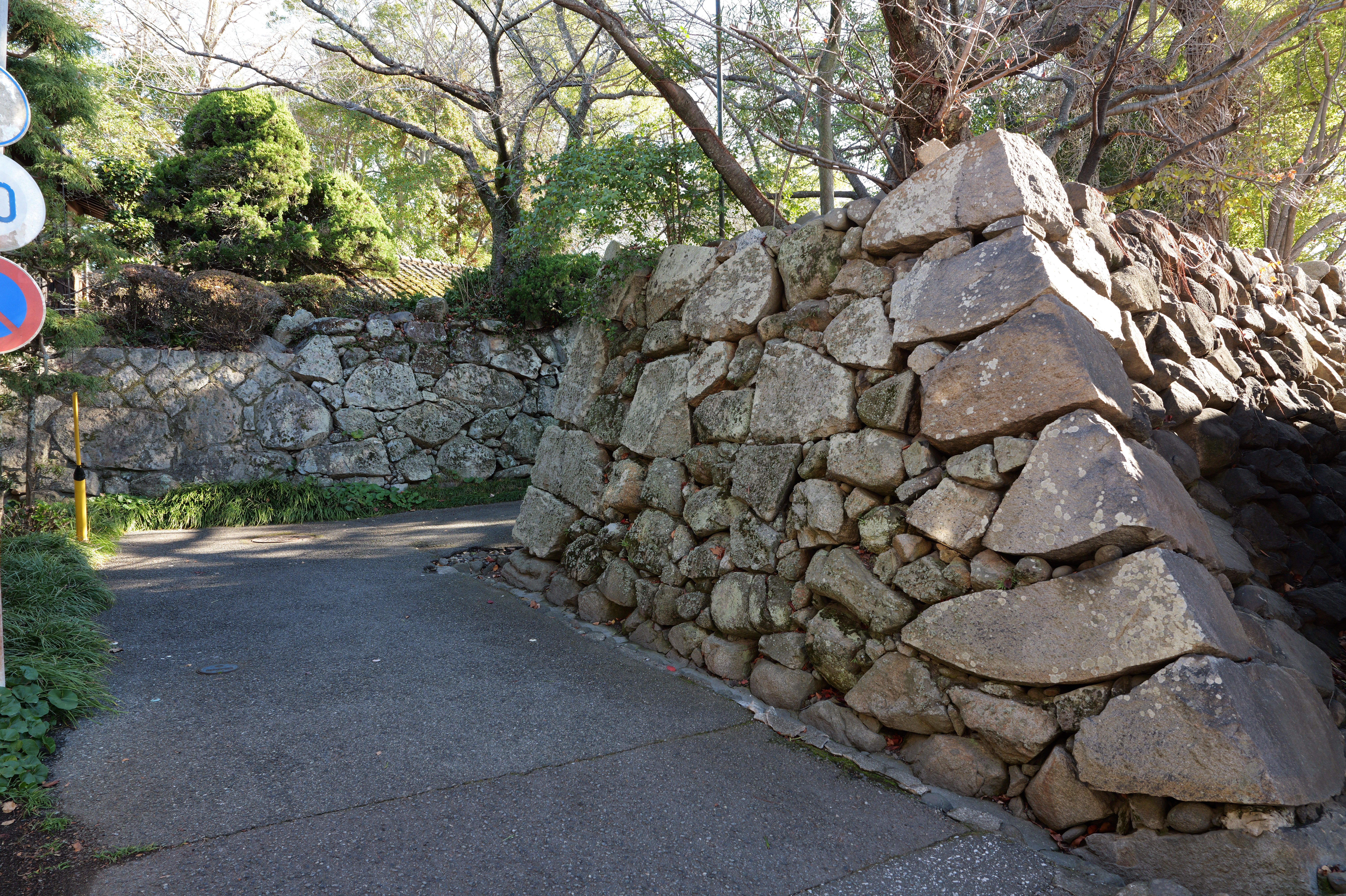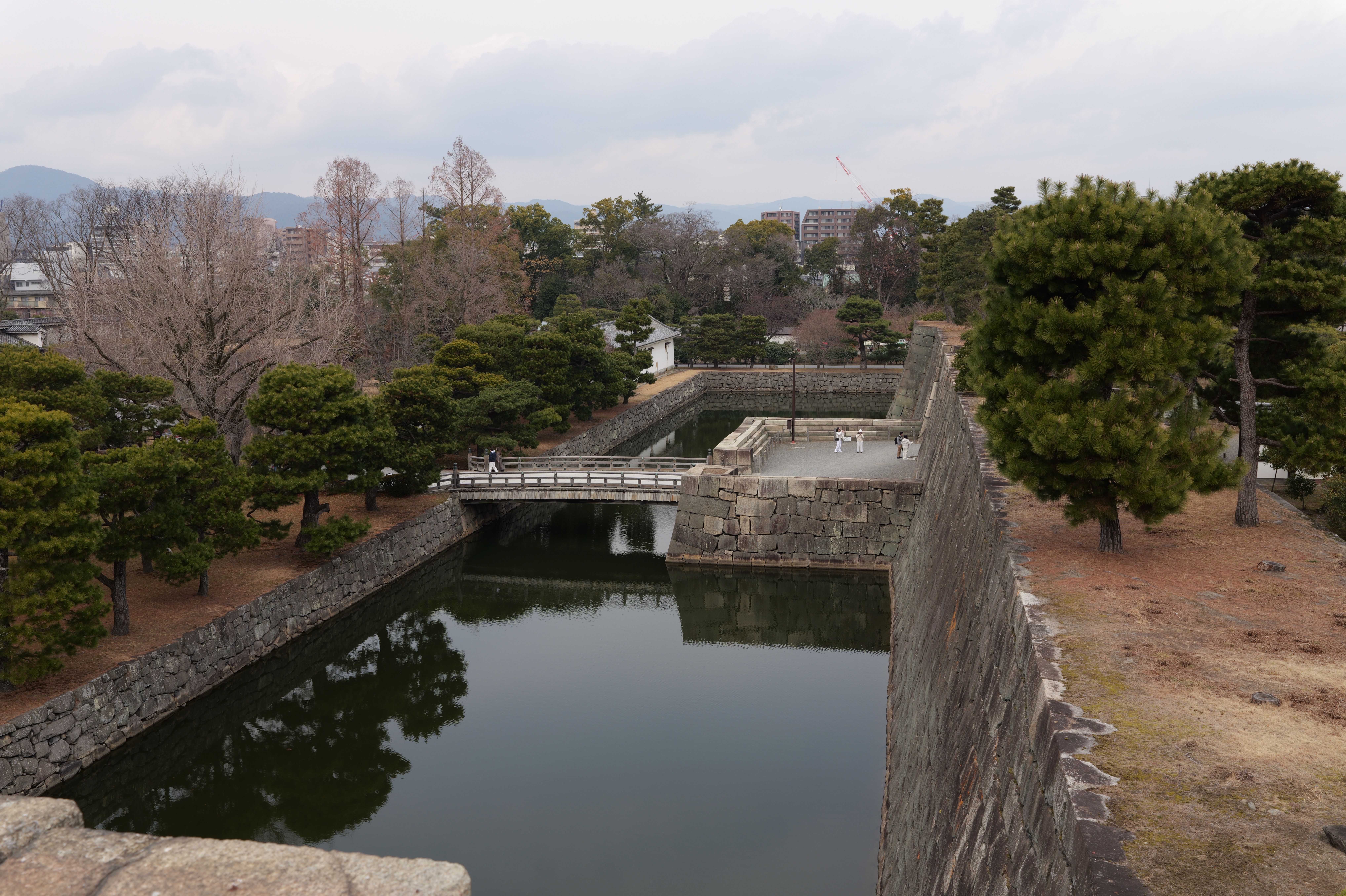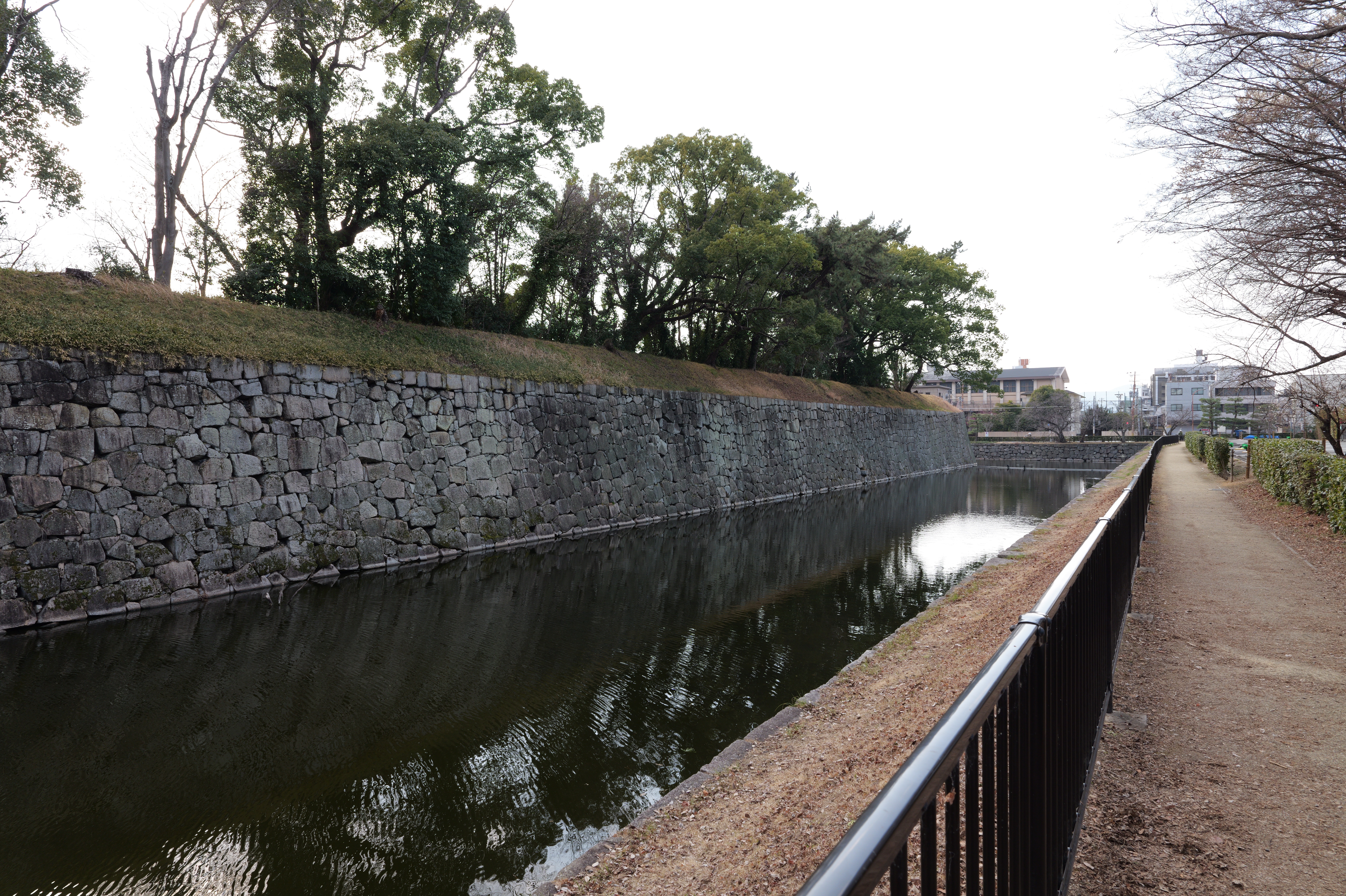 駅から南へずっと進んでいくと和歌山城城跡の北西隅の西外堀に出ました。ここの交差点の歩道橋からは天守や乾櫓がよく見えるのでいい写真スポットですね。