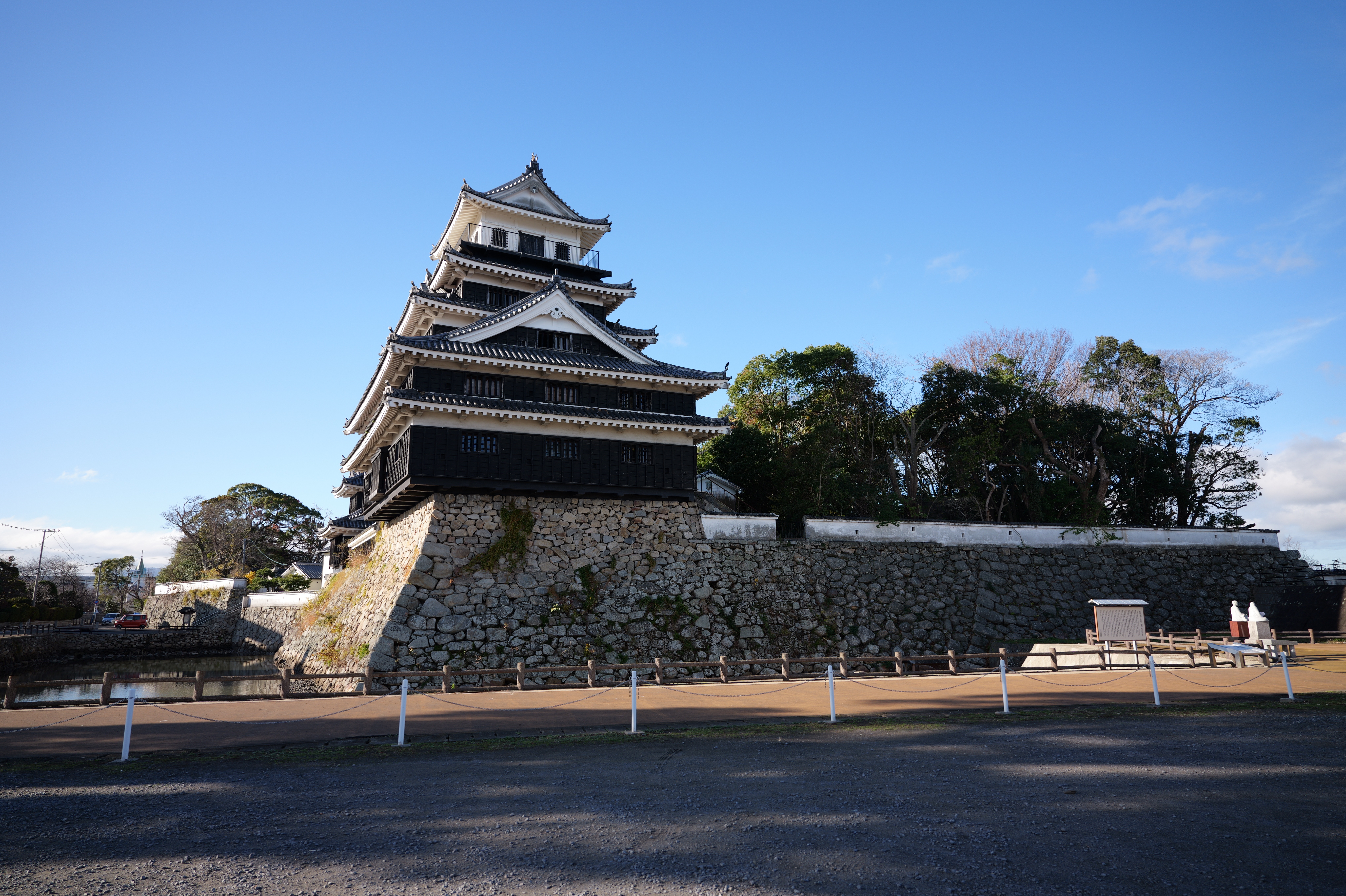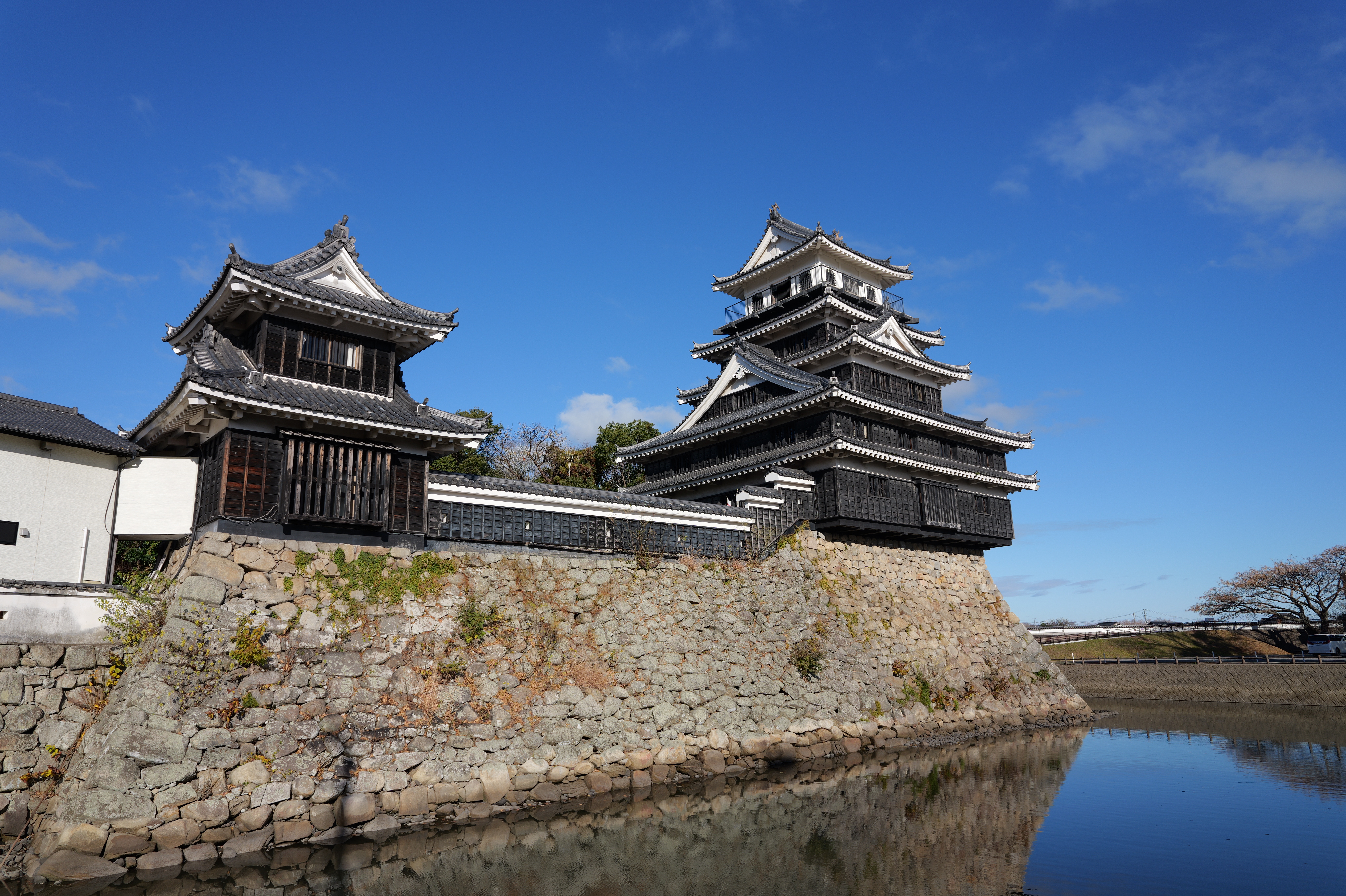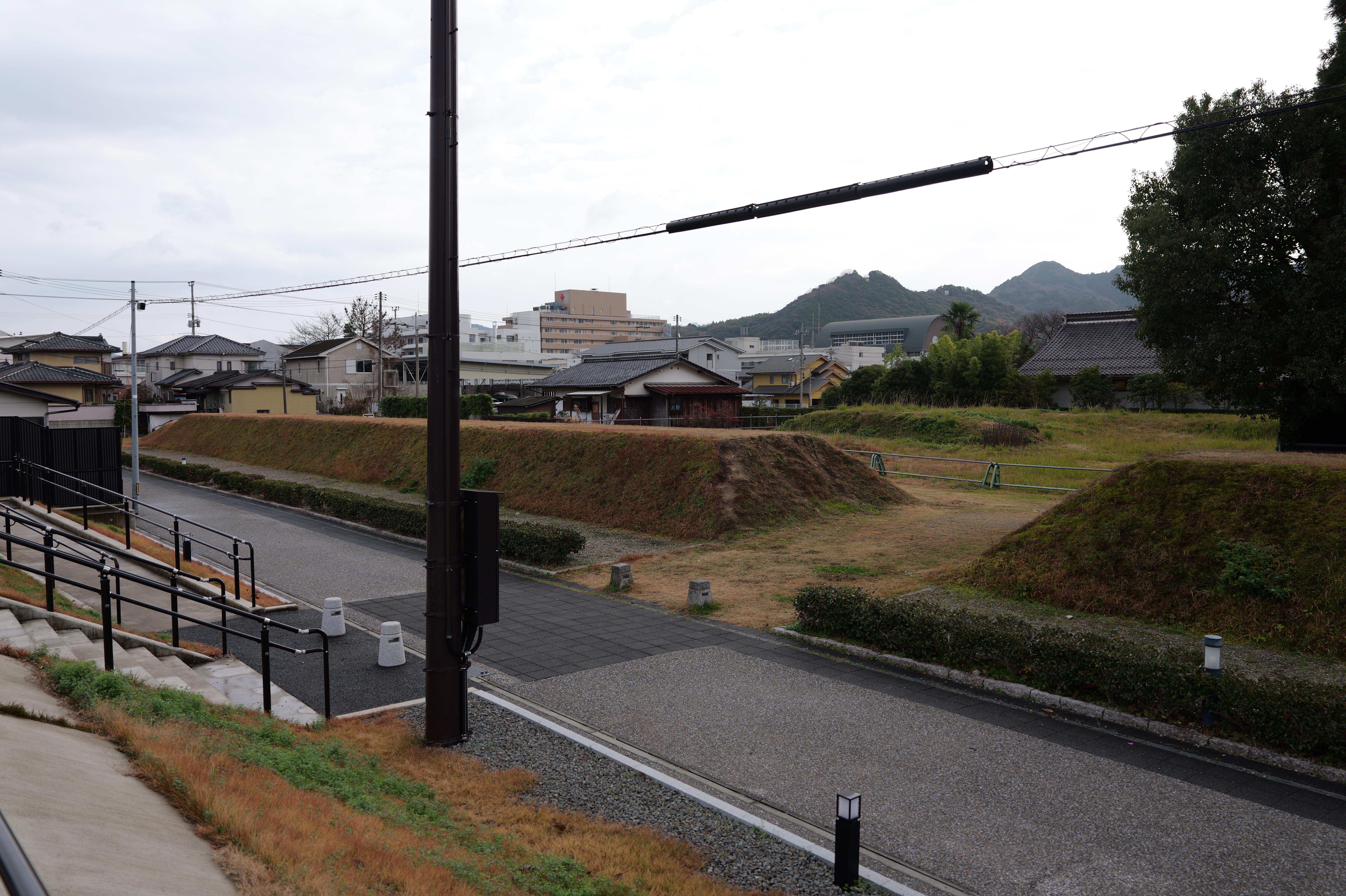 駅から南へずっと進んでいくと和歌山城城跡の北西隅の西外堀に出ました。ここの交差点の歩道橋からは天守や乾櫓がよく見えるのでいい写真スポットですね。