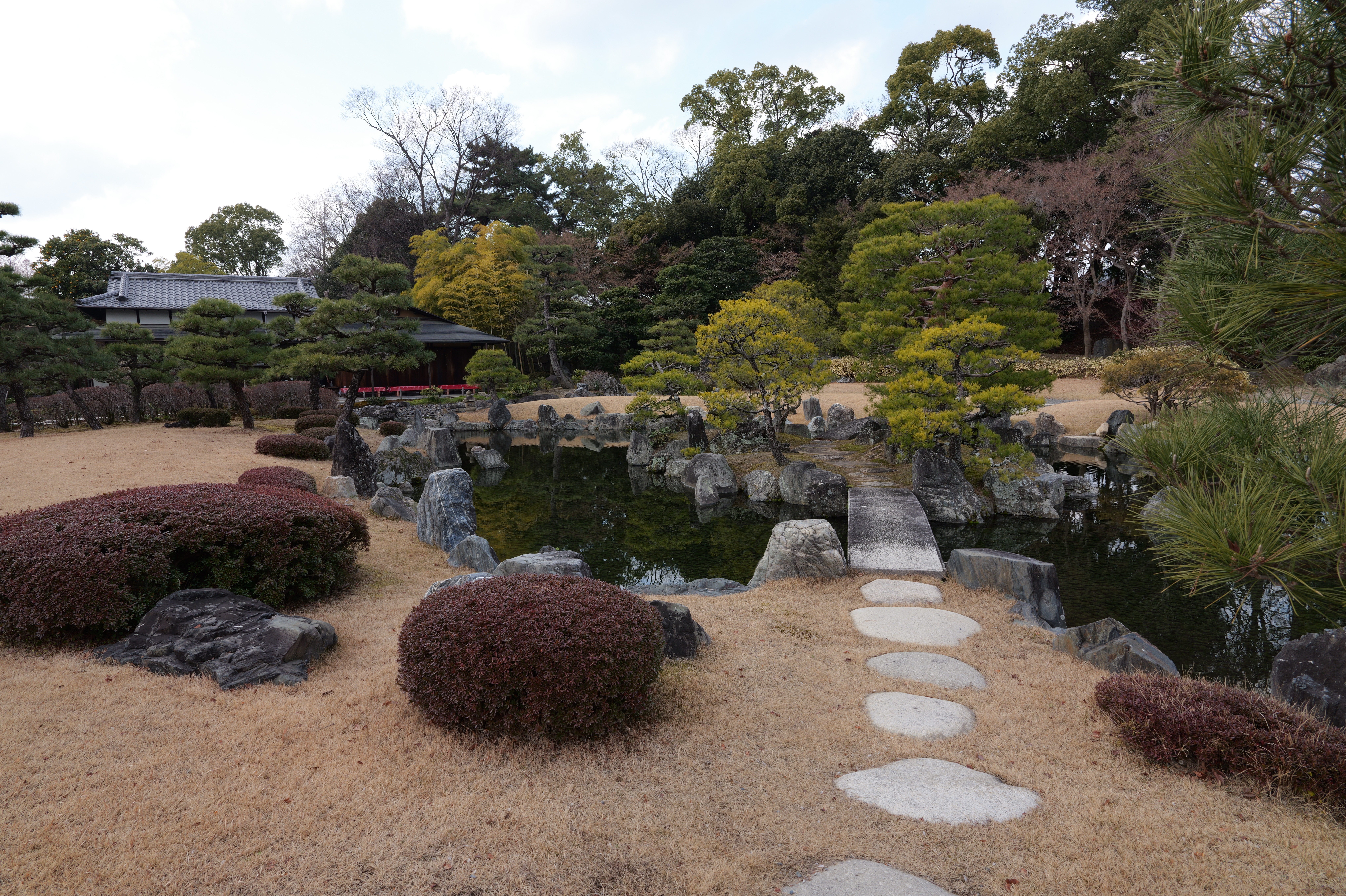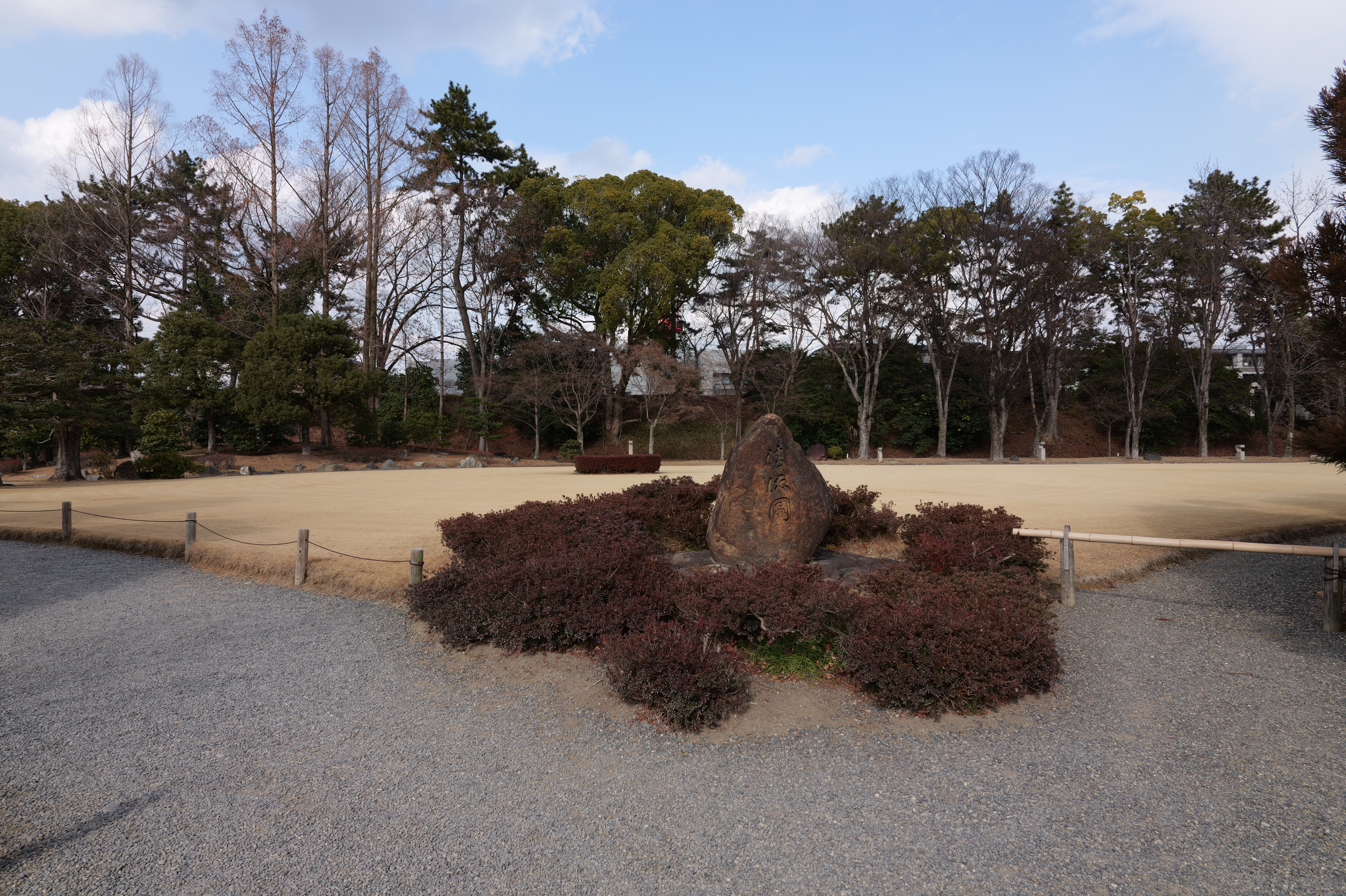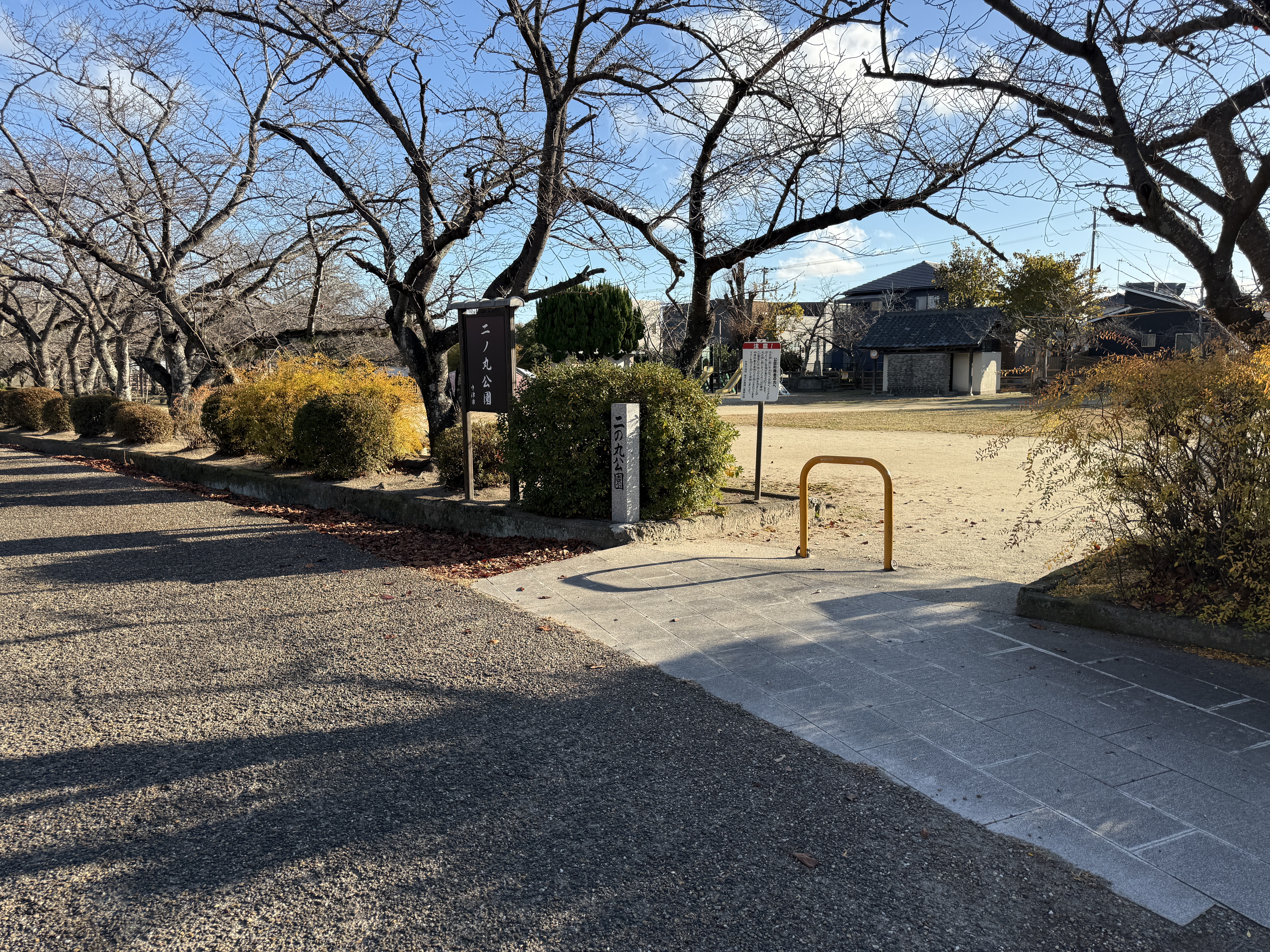 西外堀の東側は埋め立てられていますが、ここに吹上橋と吹上御門があったようです。その左奥に勘定門跡が見えるので、そこへ寄ってから、わかやま歴史館をすぎたところにある西の丸へ。西の丸は能舞台や茶室などが建てられ、藩主が風雅を楽しむ場所です。西之丸庭園(紅葉渓庭園)は国の名勝にも指定された江戸時代初期に作庭された池泉回遊式の庭園です。