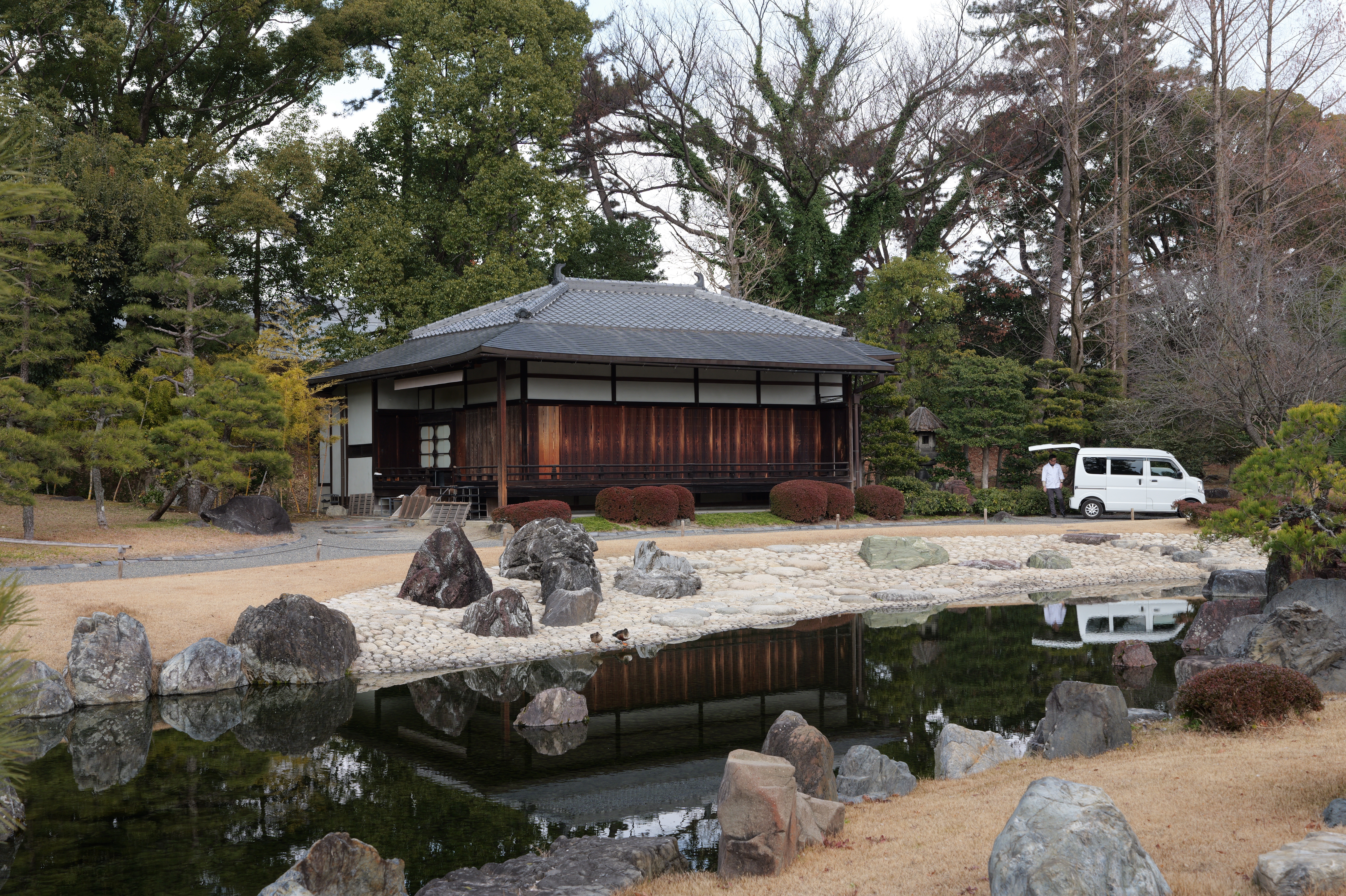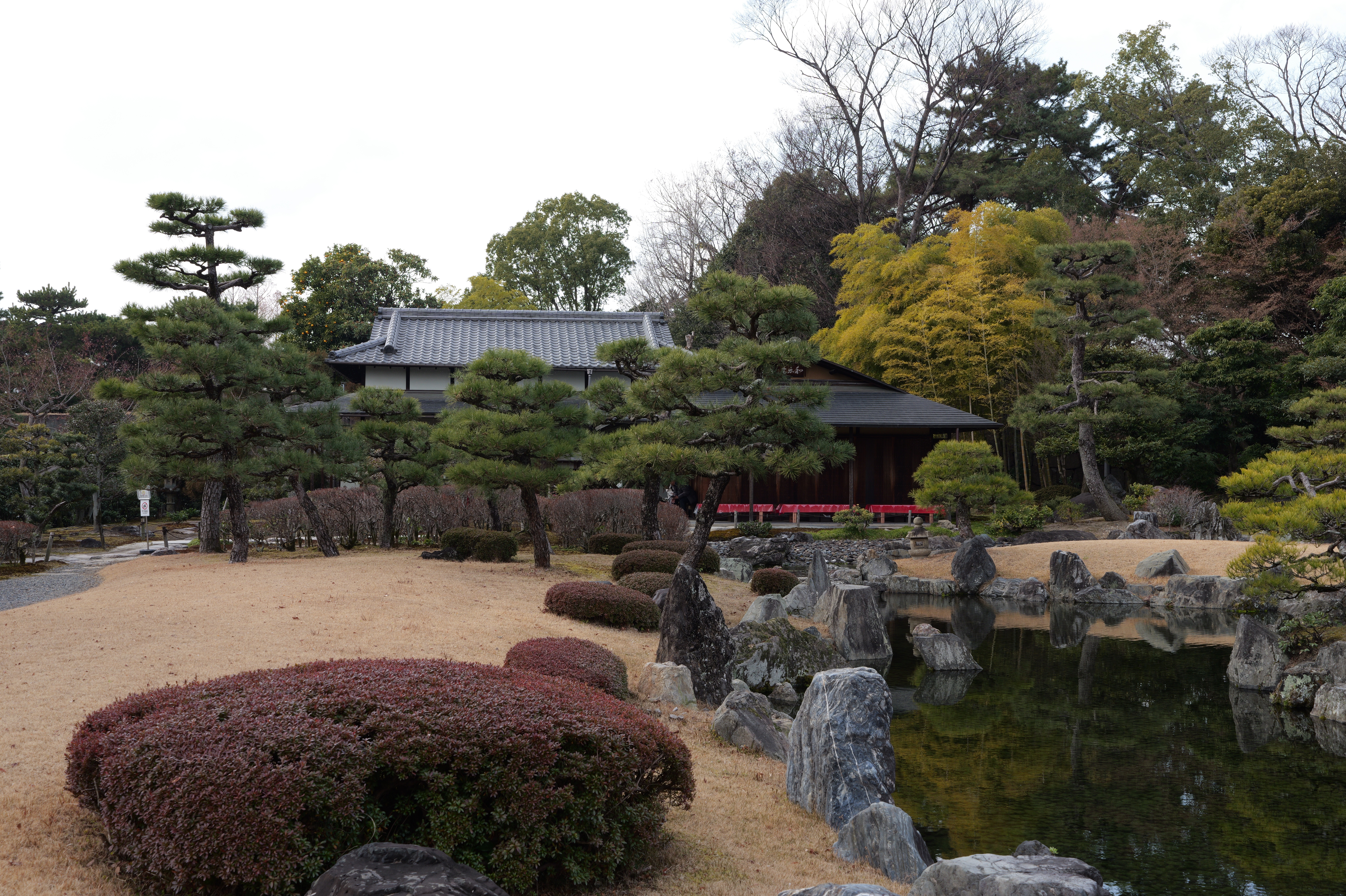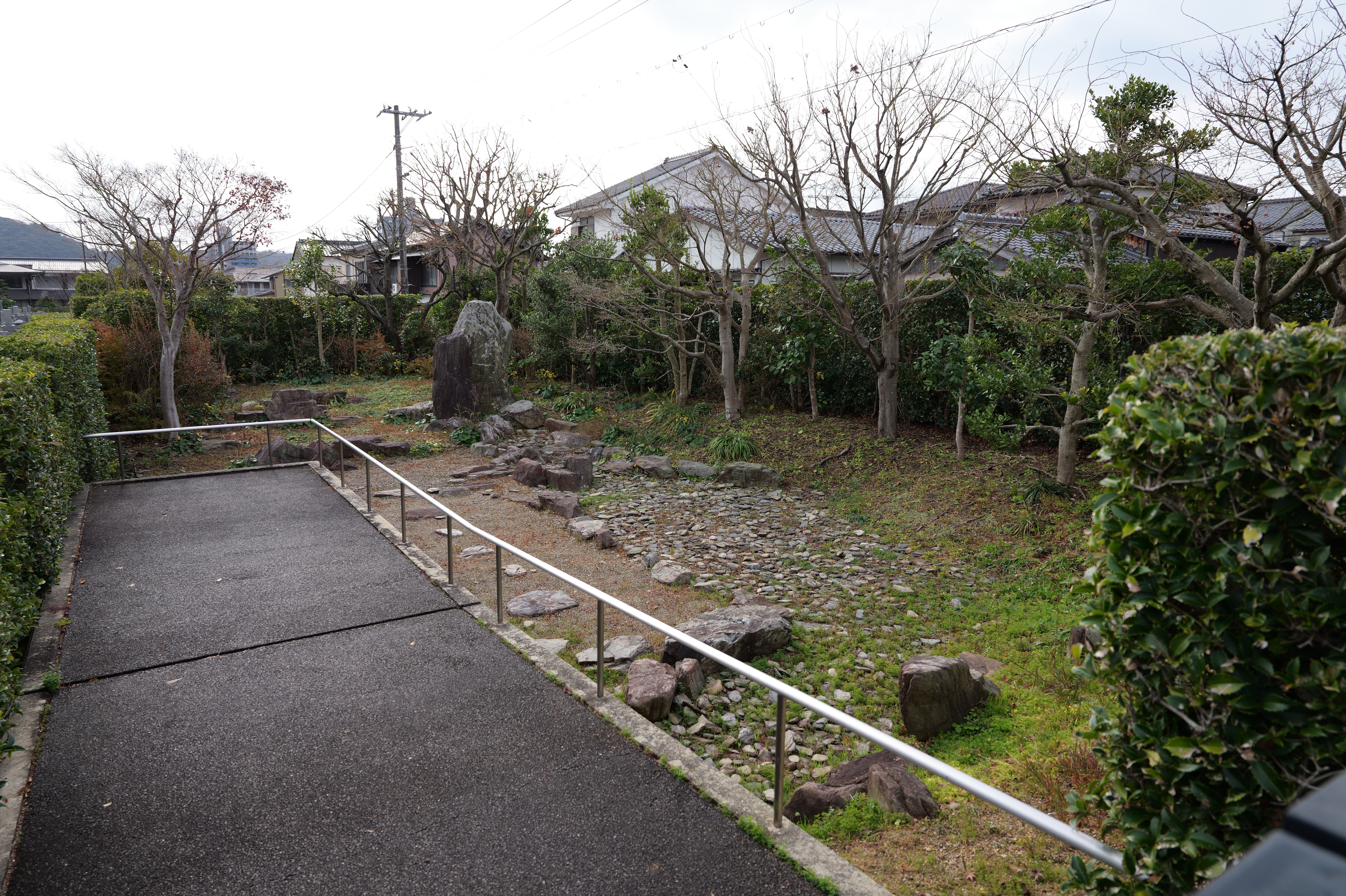 西外堀の東側は埋め立てられていますが、ここに吹上橋と吹上御門があったようです。その左奥に勘定門跡が見えるので、そこへ寄ってから、わかやま歴史館をすぎたところにある西の丸へ。西の丸は能舞台や茶室などが建てられ、藩主が風雅を楽しむ場所です。西之丸庭園(紅葉渓庭園)は国の名勝にも指定された江戸時代初期に作庭された池泉回遊式の庭園です。