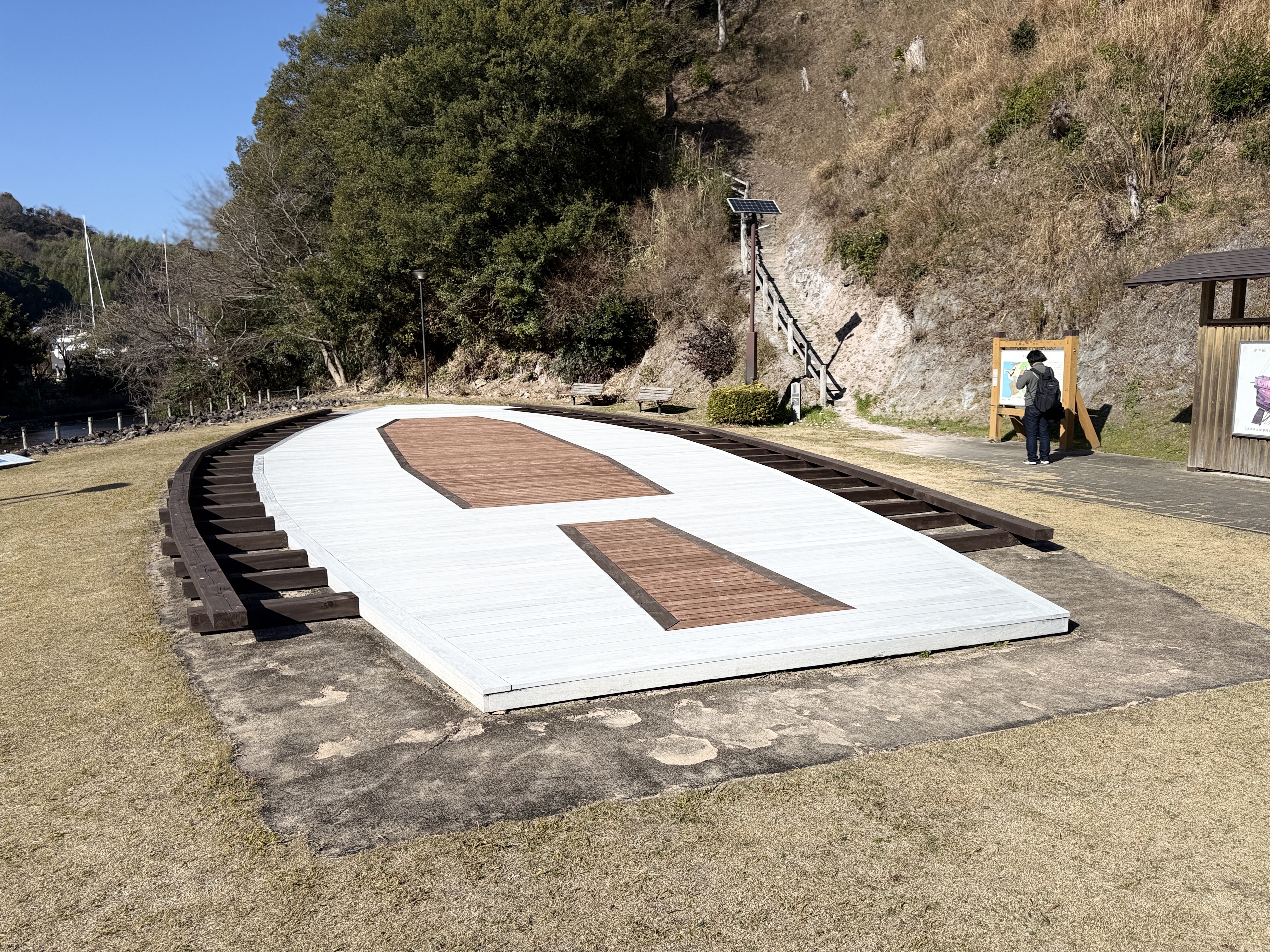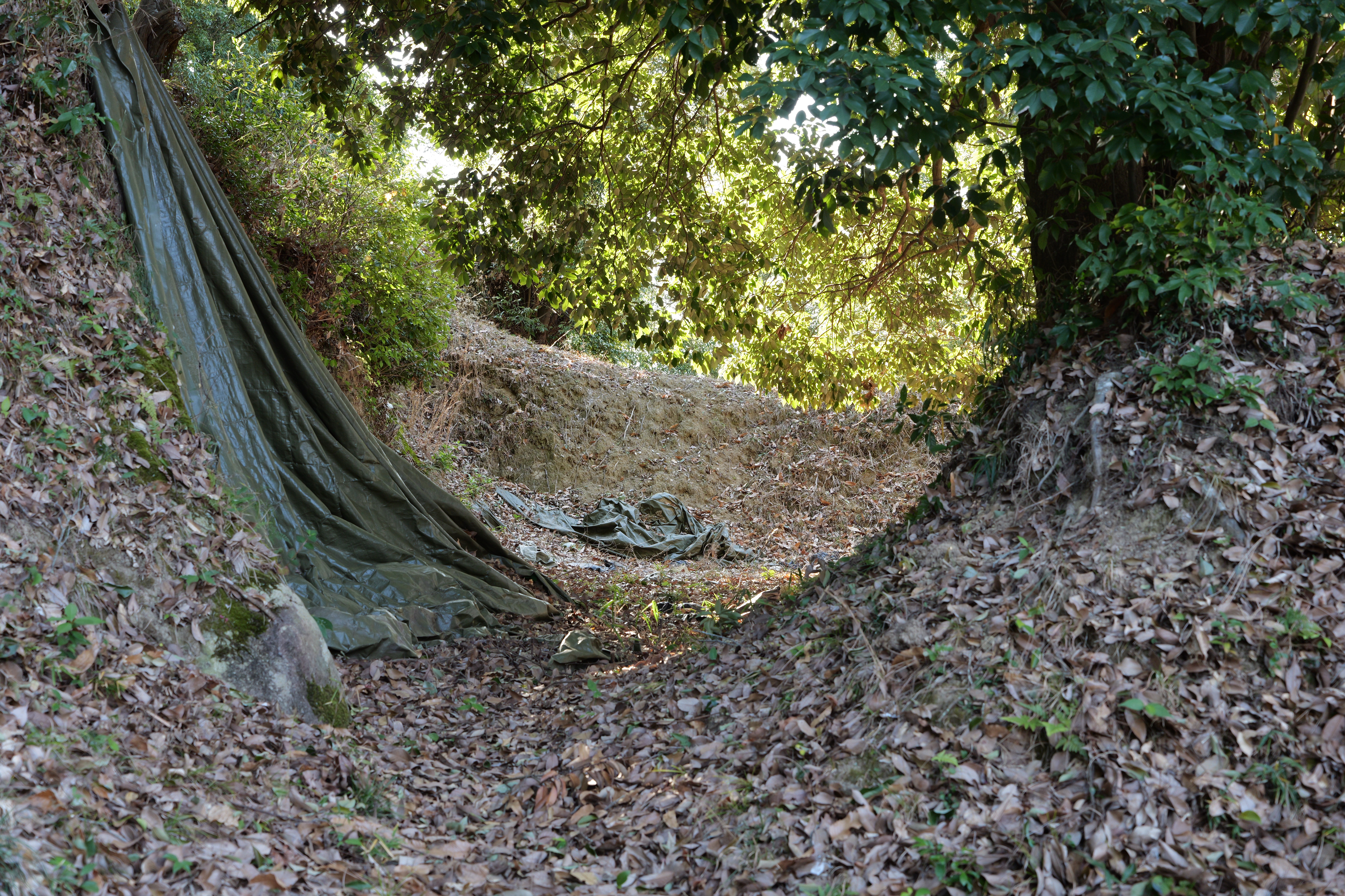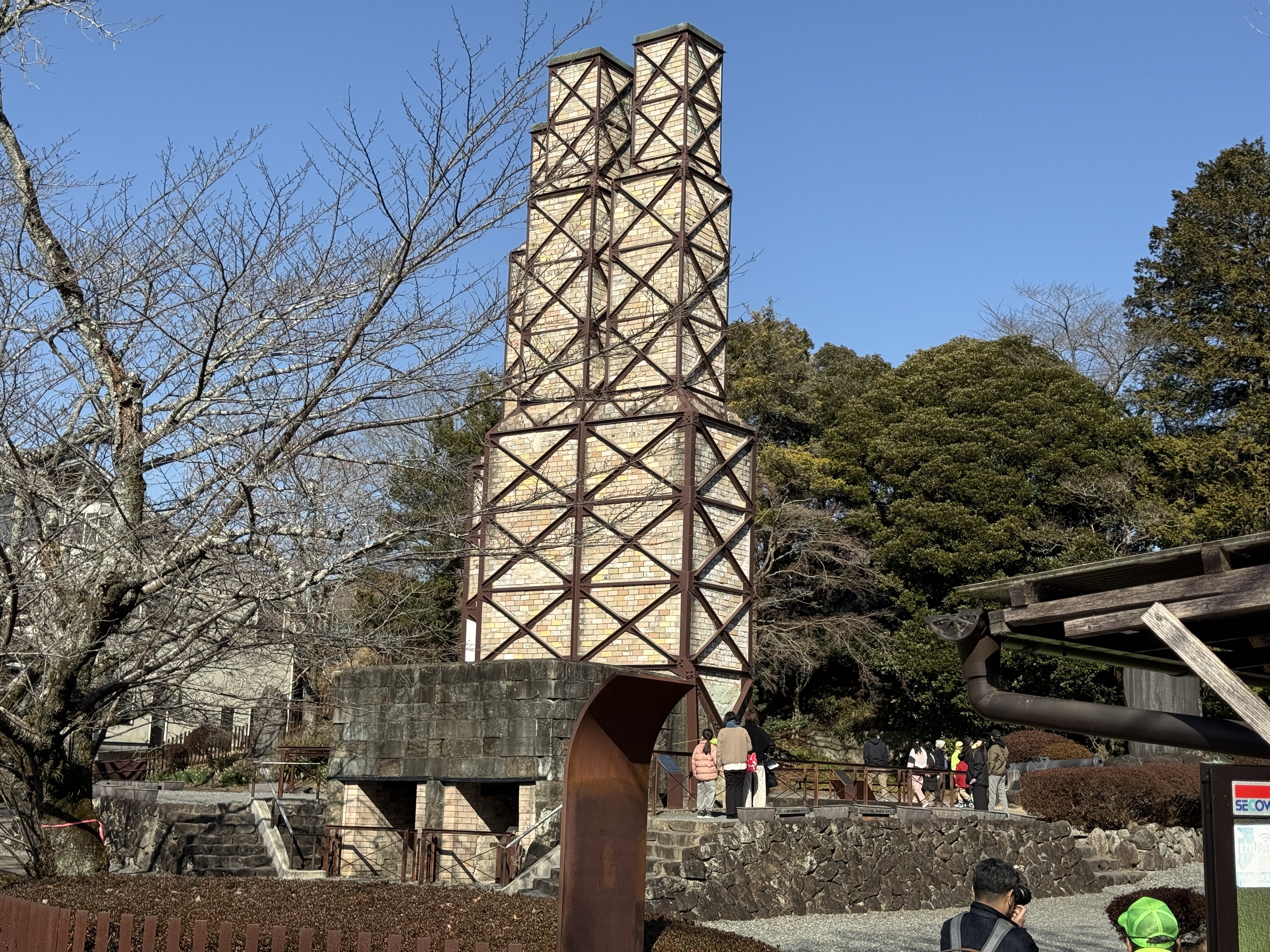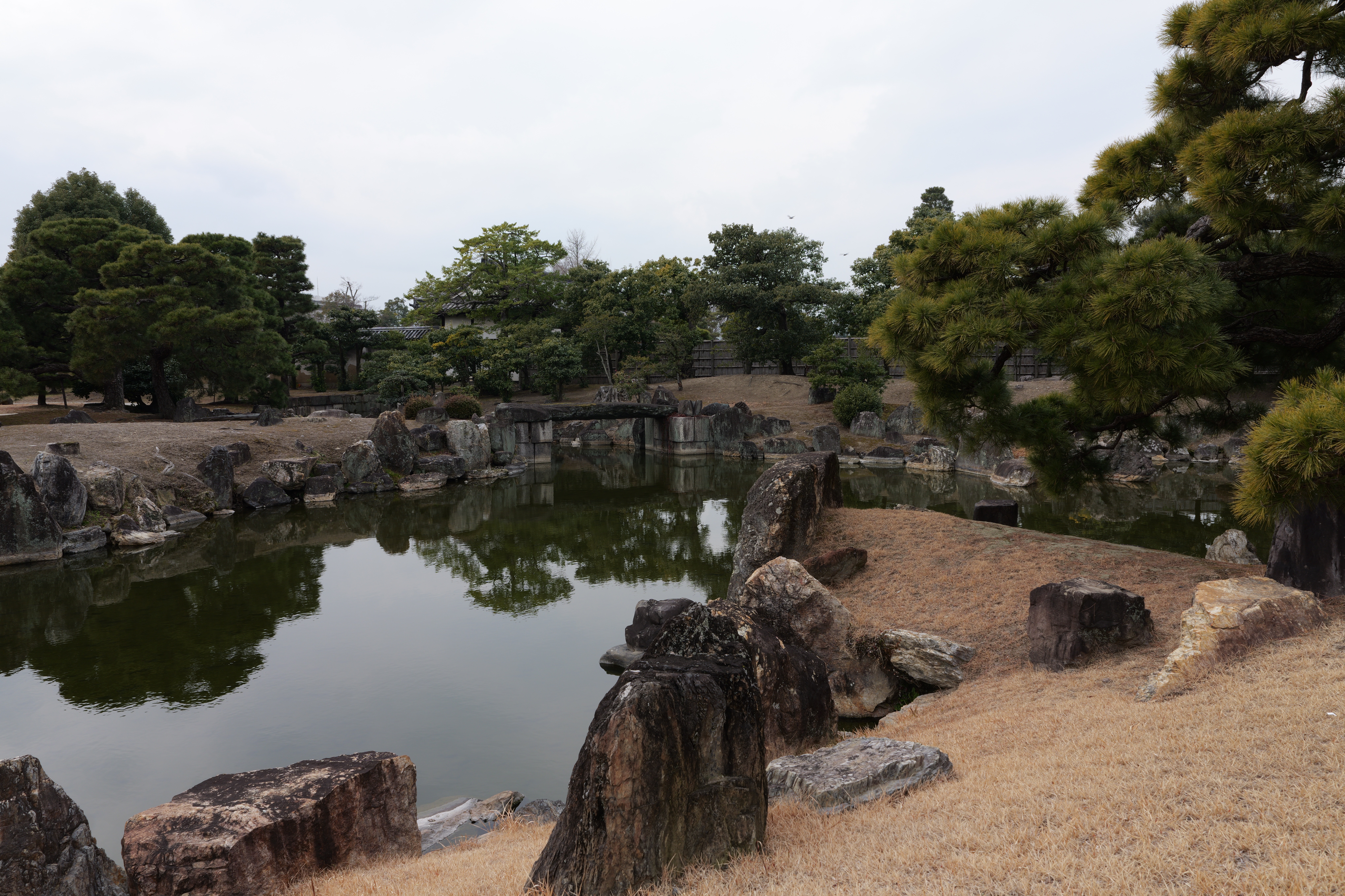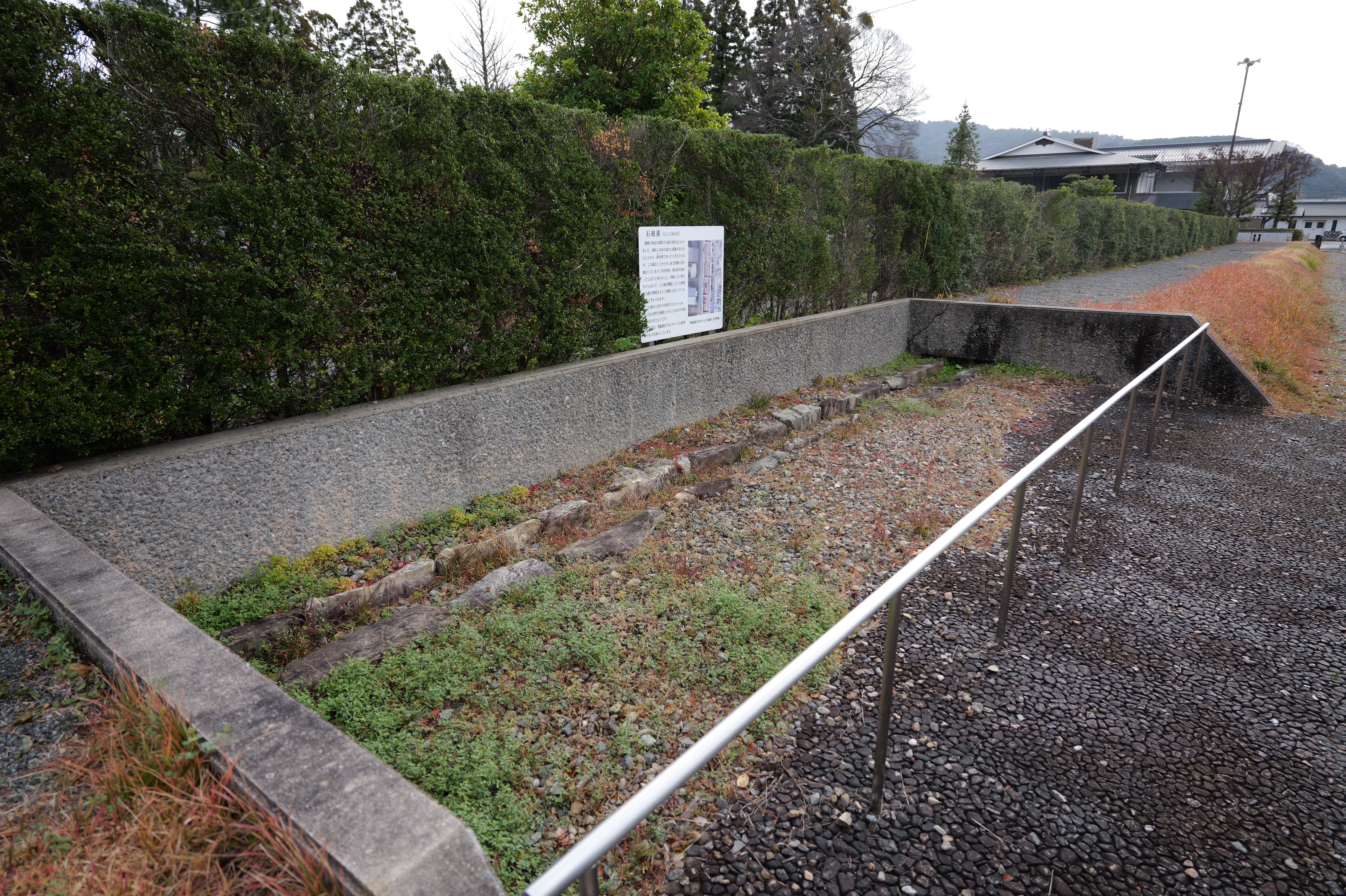 西の丸東側には二の丸へと通じる御橋廊下が西内堀に架かっています。御橋廊下は靴を脱いで渡ります。渡った先は二の丸の大奥跡で、御橋廊下を出てすぐ右側に穴蔵状遺構があり何かを収納する施設だったとのこと。二の丸は東へ大奥、中奥、表と続いていて二の丸広場として整備されていますが、みたところ普通の公園という感じ。