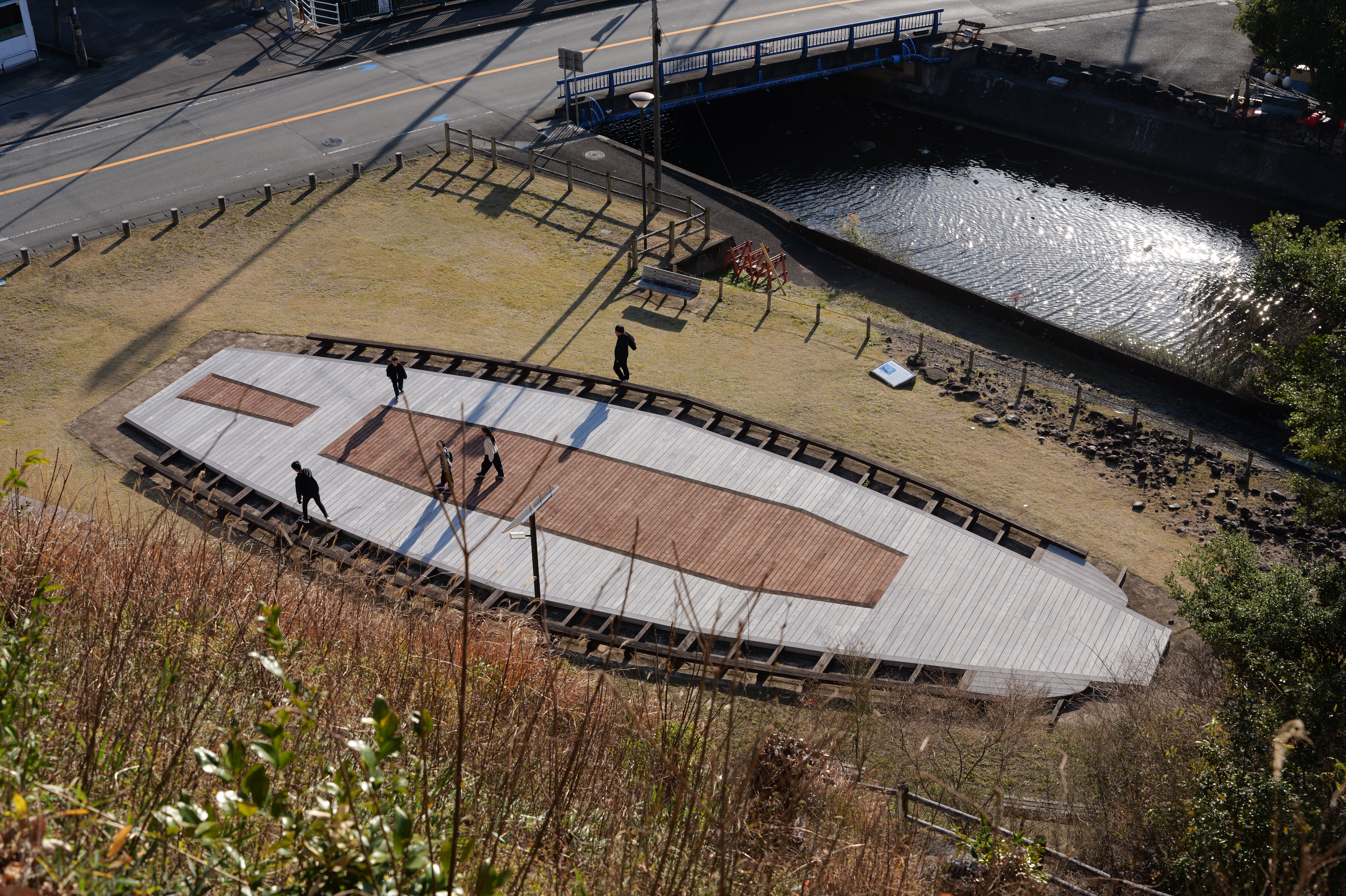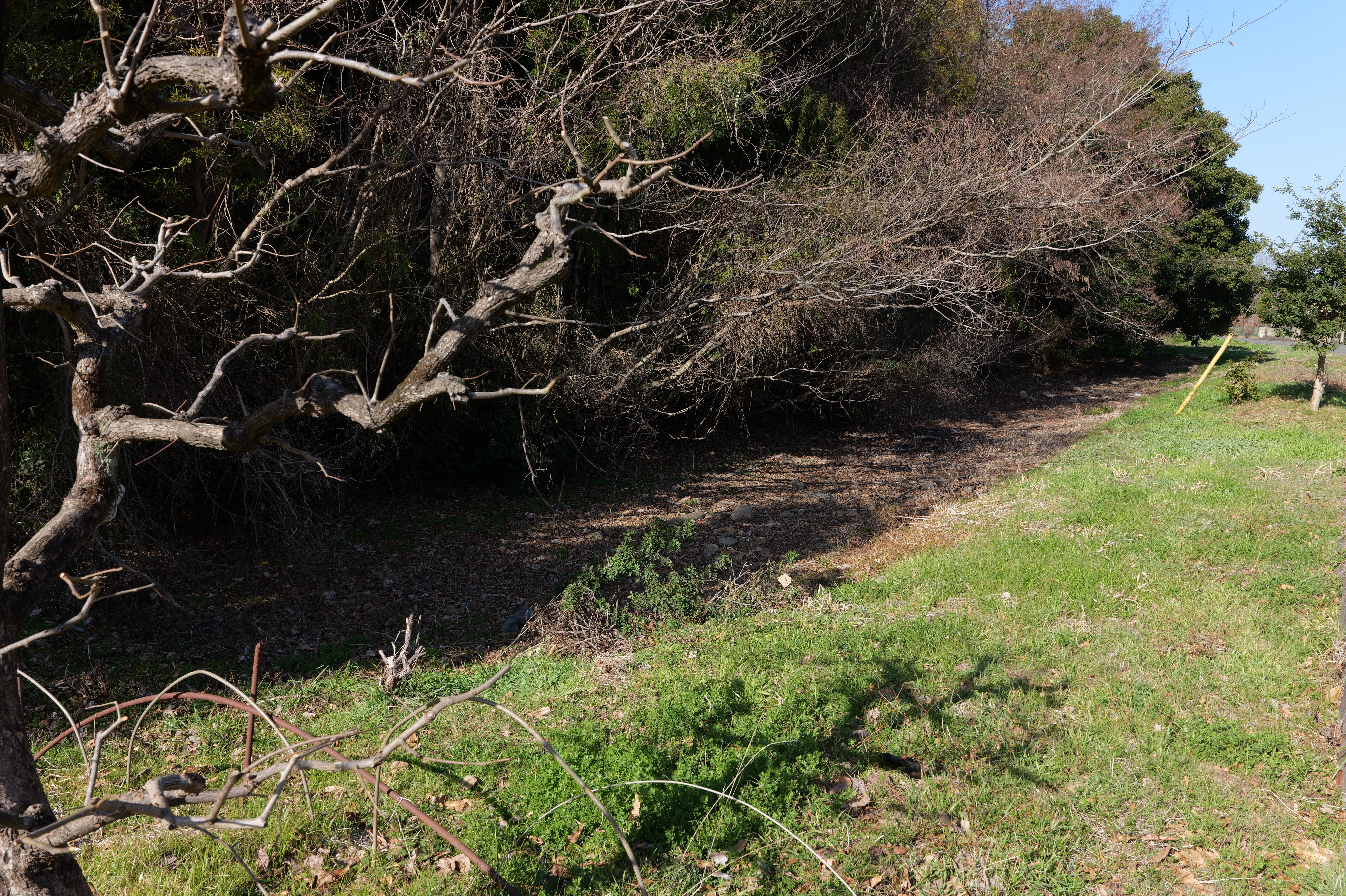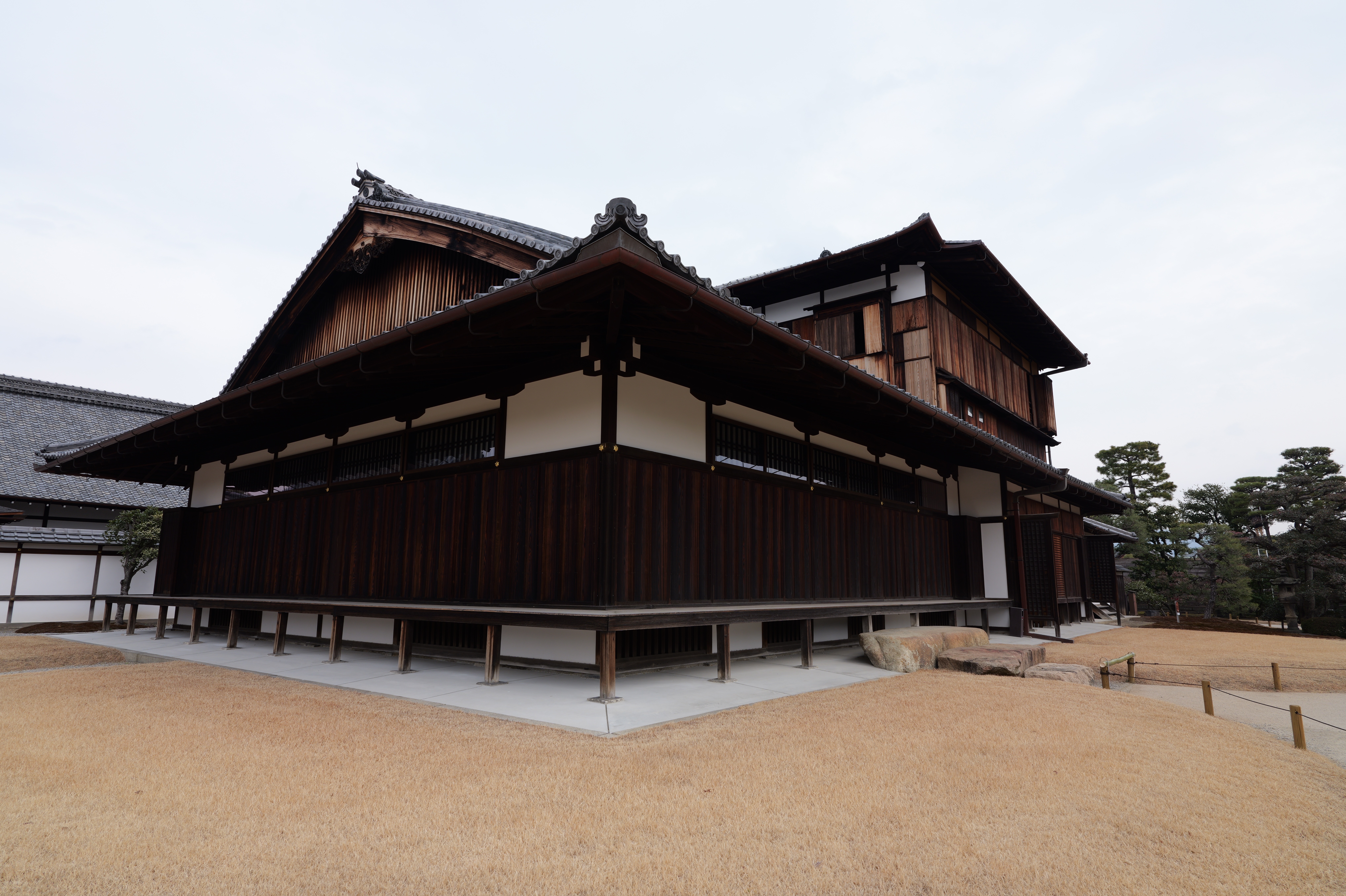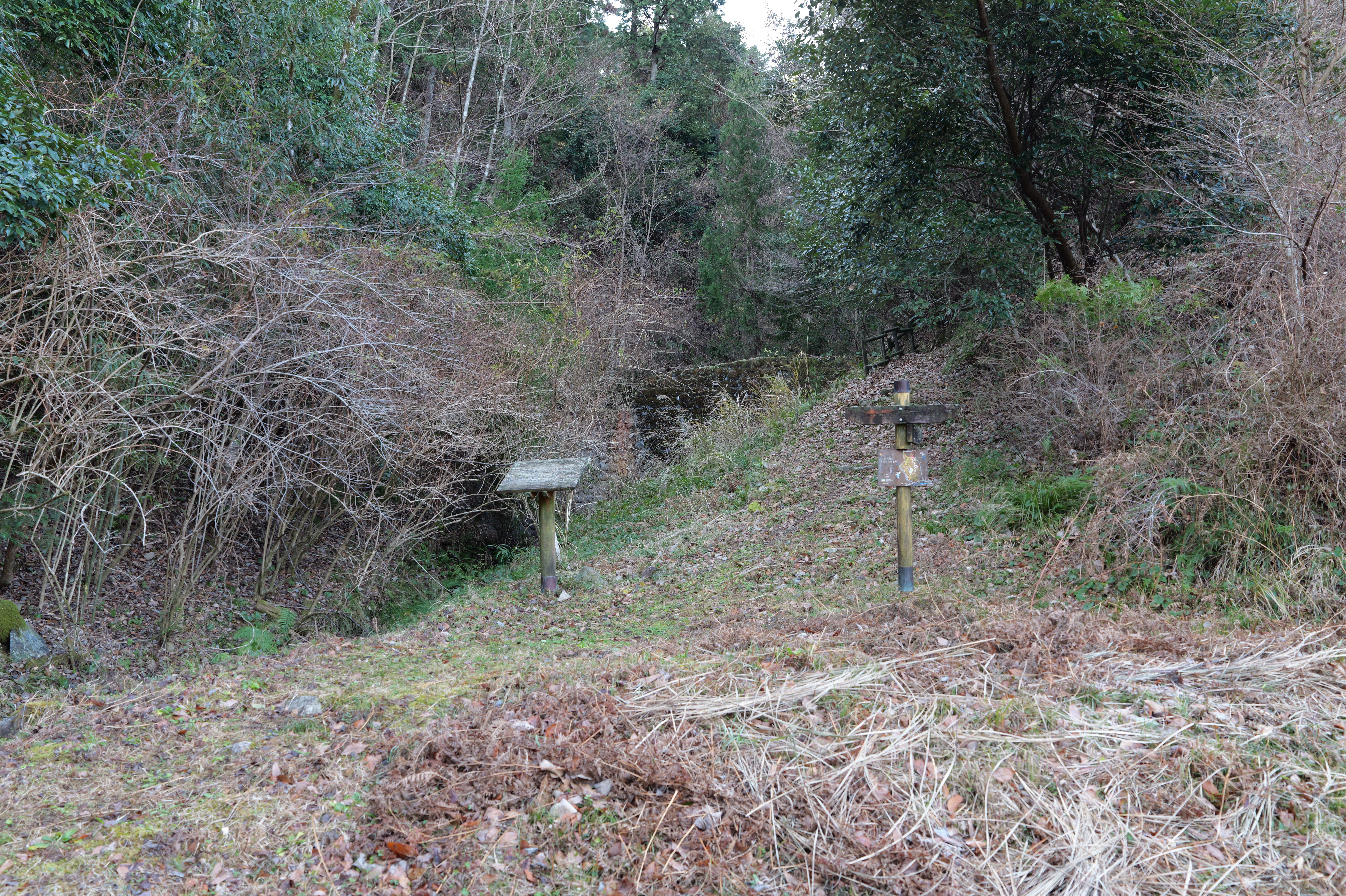 西の丸東側には二の丸へと通じる御橋廊下が西内堀に架かっています。御橋廊下は靴を脱いで渡ります。渡った先は二の丸の大奥跡で、御橋廊下を出てすぐ右側に穴蔵状遺構があり何かを収納する施設だったとのこと。二の丸は東へ大奥、中奥、表と続いていて二の丸広場として整備されていますが、みたところ普通の公園という感じ。