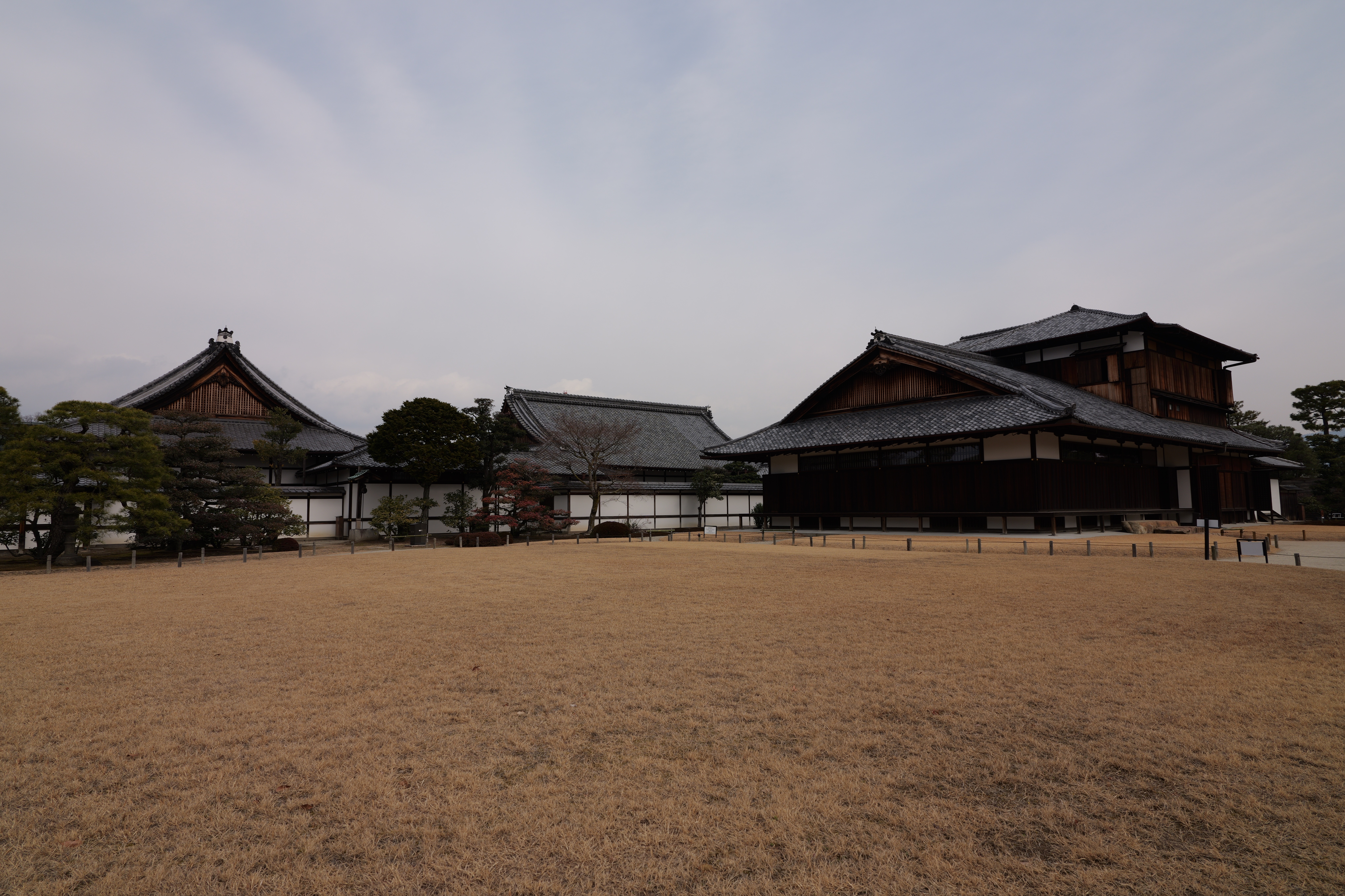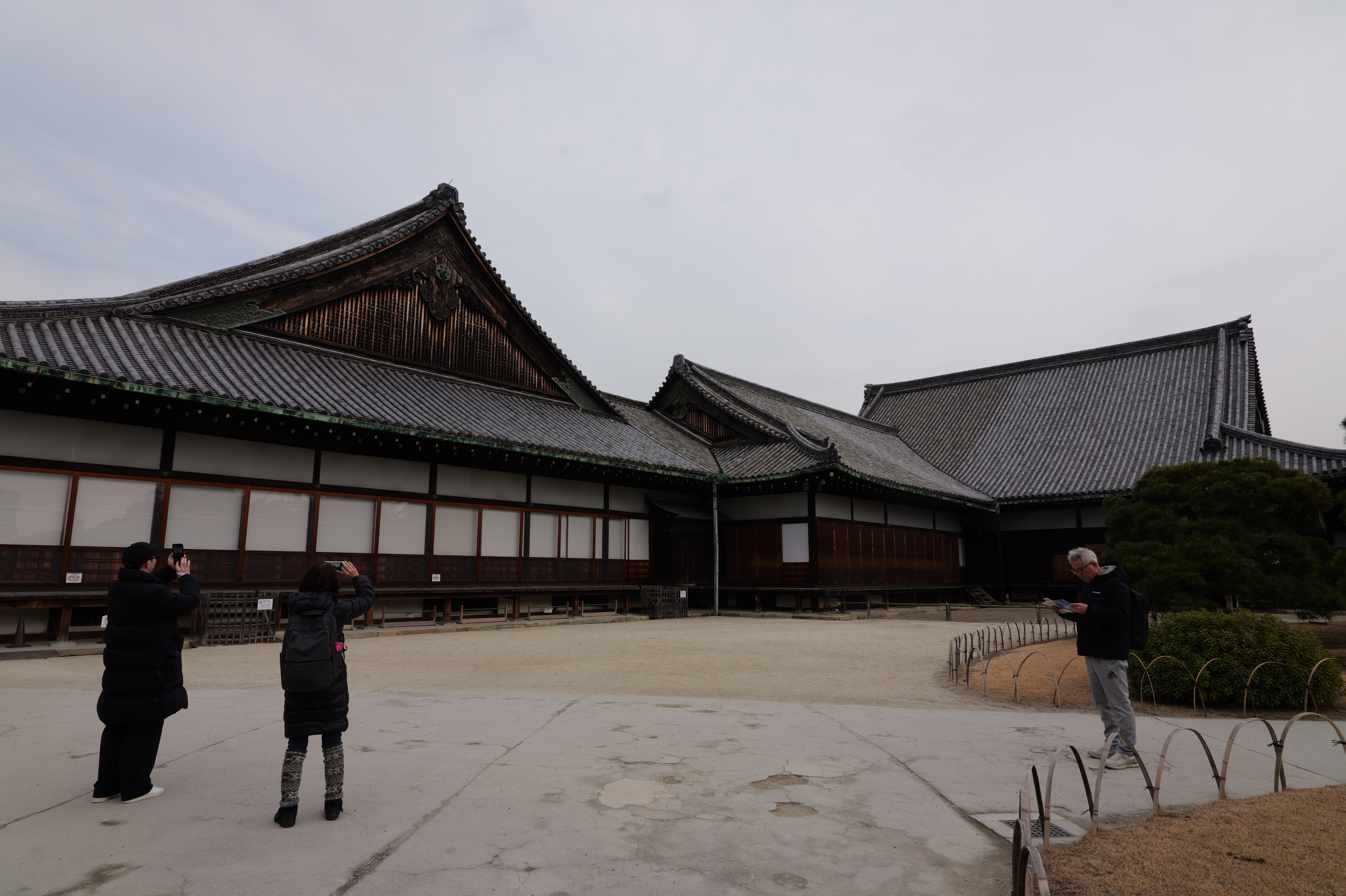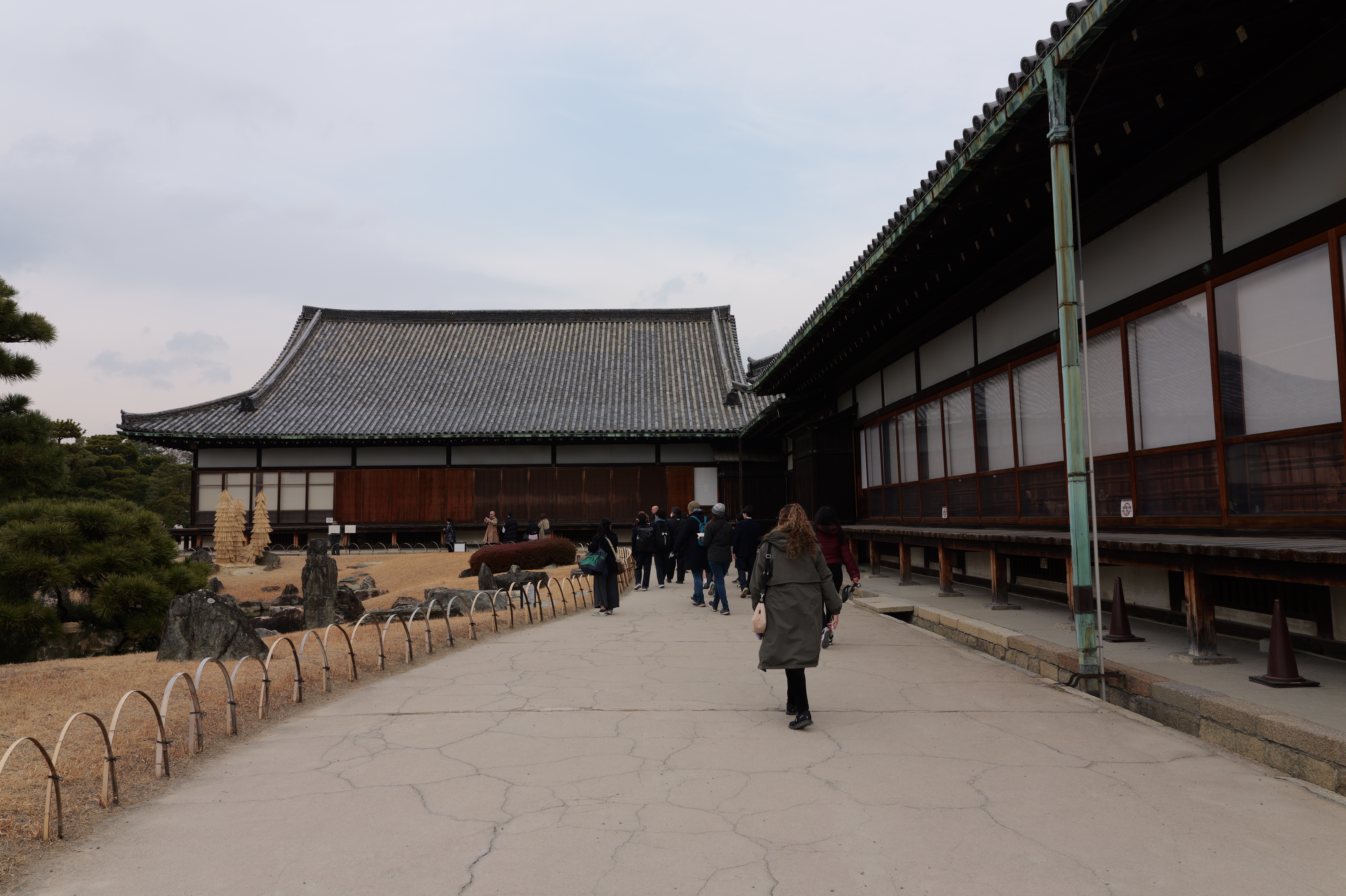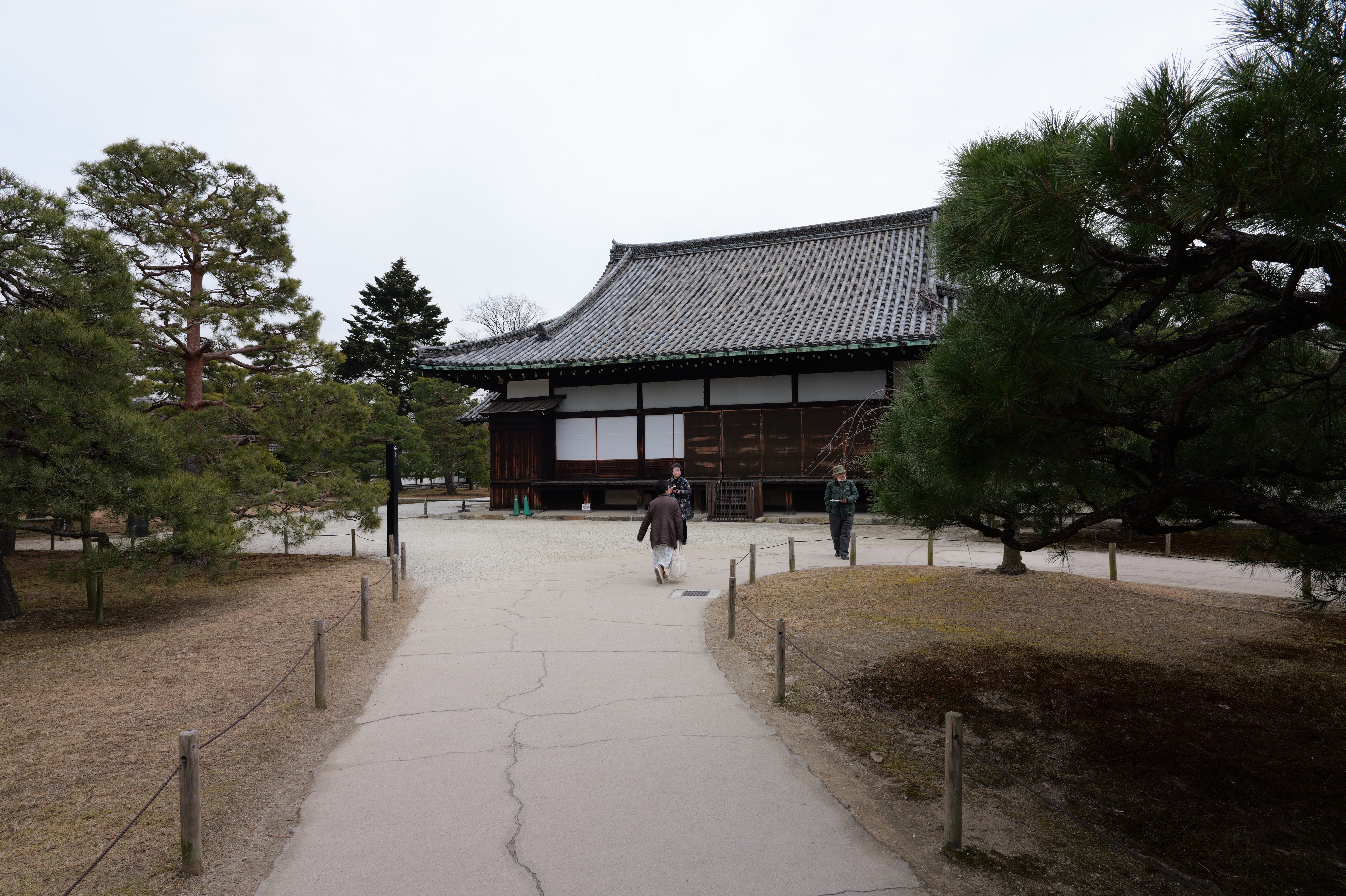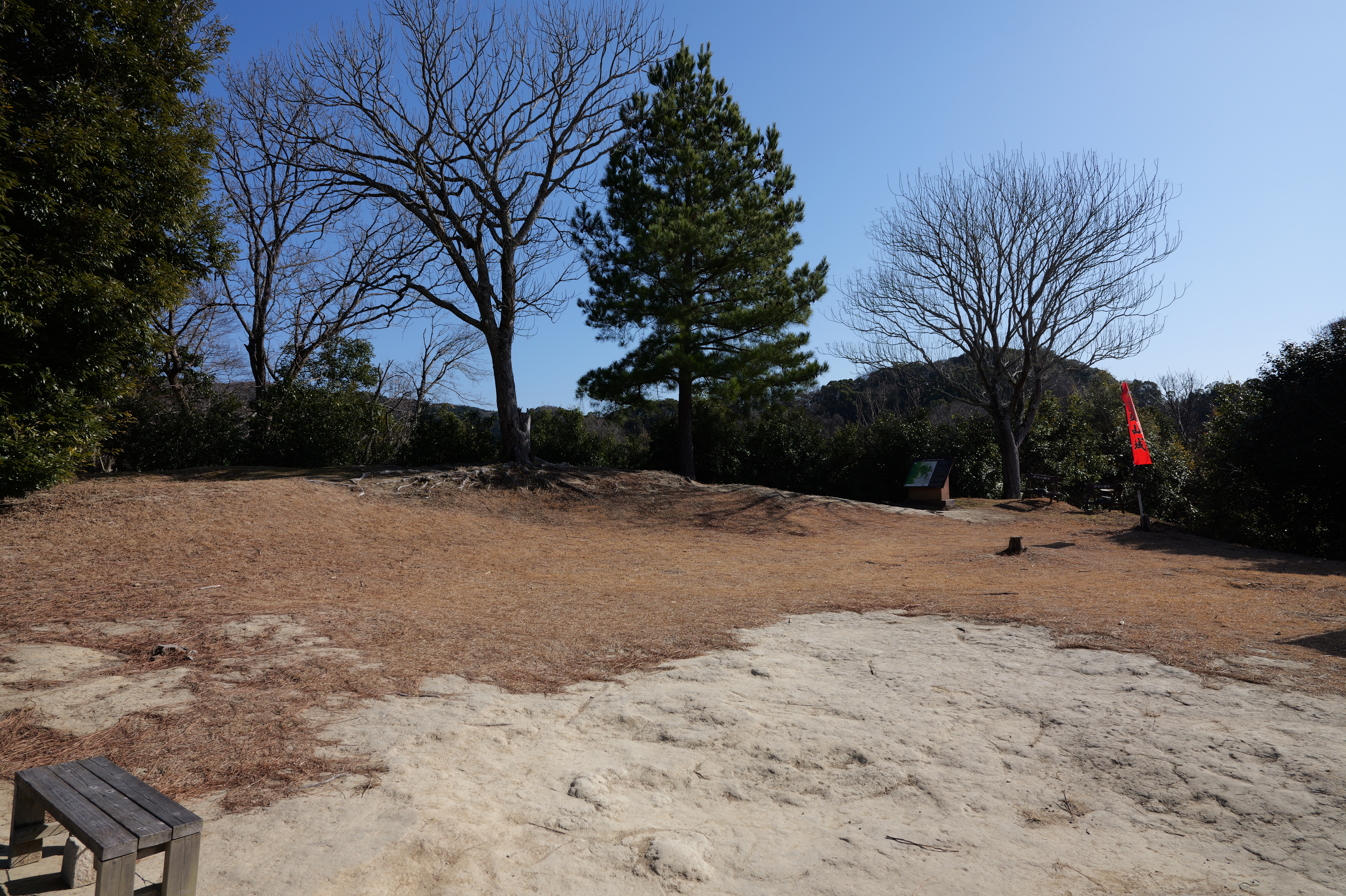 一中門跡に戻り、ここから岡中門までは蔵の丸で、東側の堀沿いに雁木が続いています。岡中門手前右側の表坂から天守方面へ向かいます。表坂を登ったところは松の丸で、ここからは動物園のある南の丸を見下ろせます。松の丸をずっと進み、石段を登った正面に本丸御殿跡、後ろ側は天守曲輪です。正面階段を登ると天守の写真スポットになっています。本丸御殿跡で入れるのはこのスポット付近のみで、中心部は塀で囲まれています。