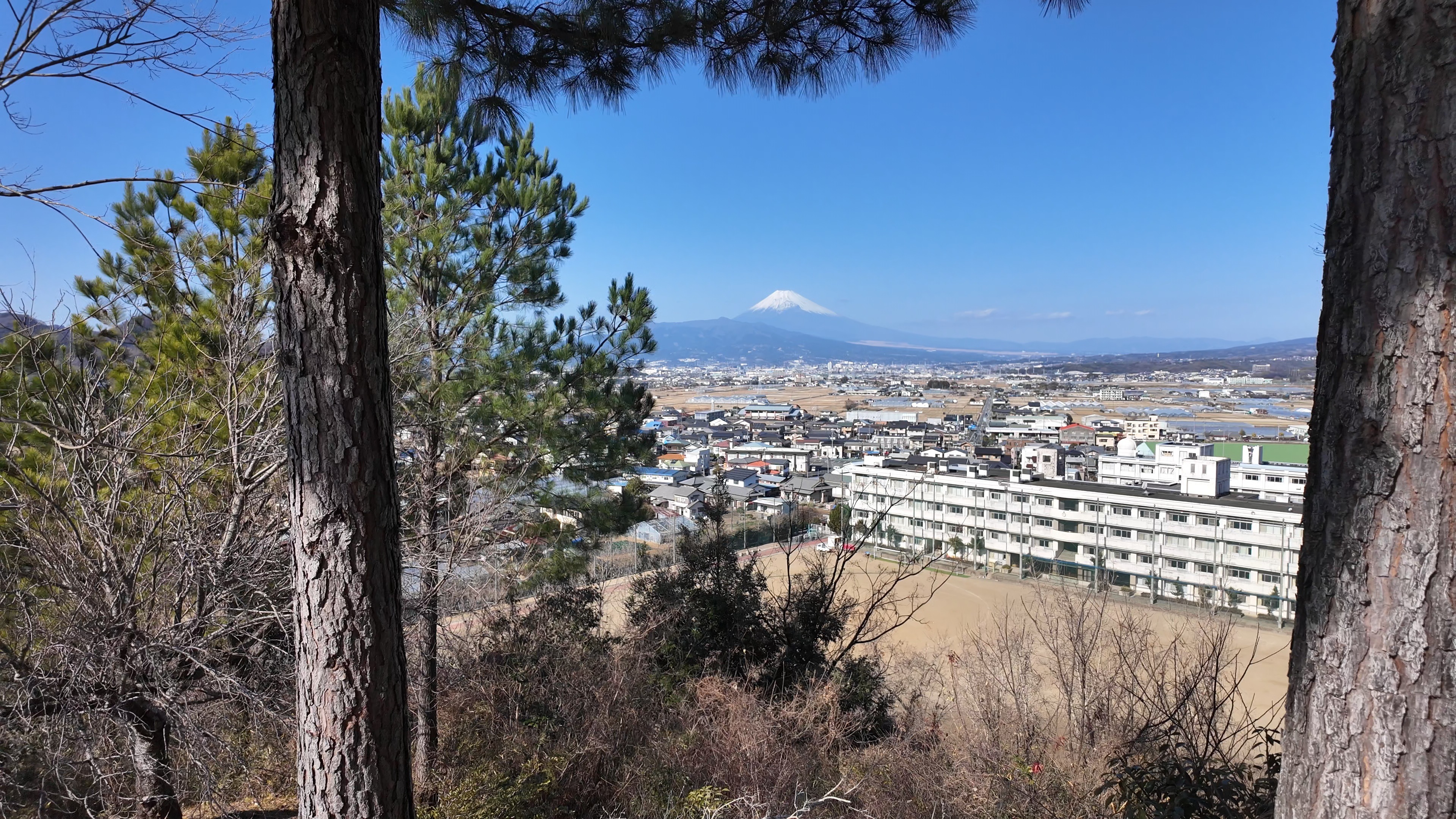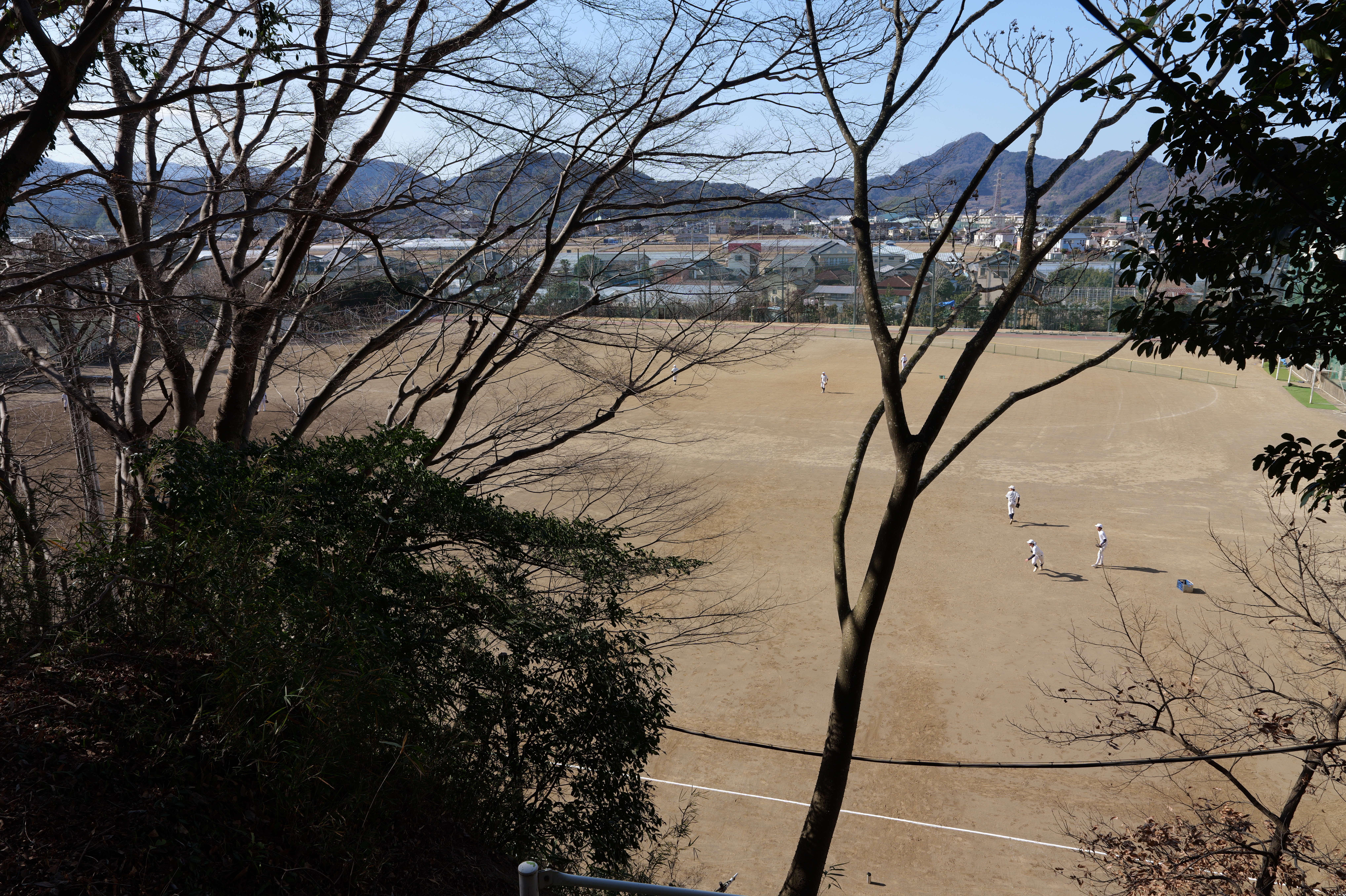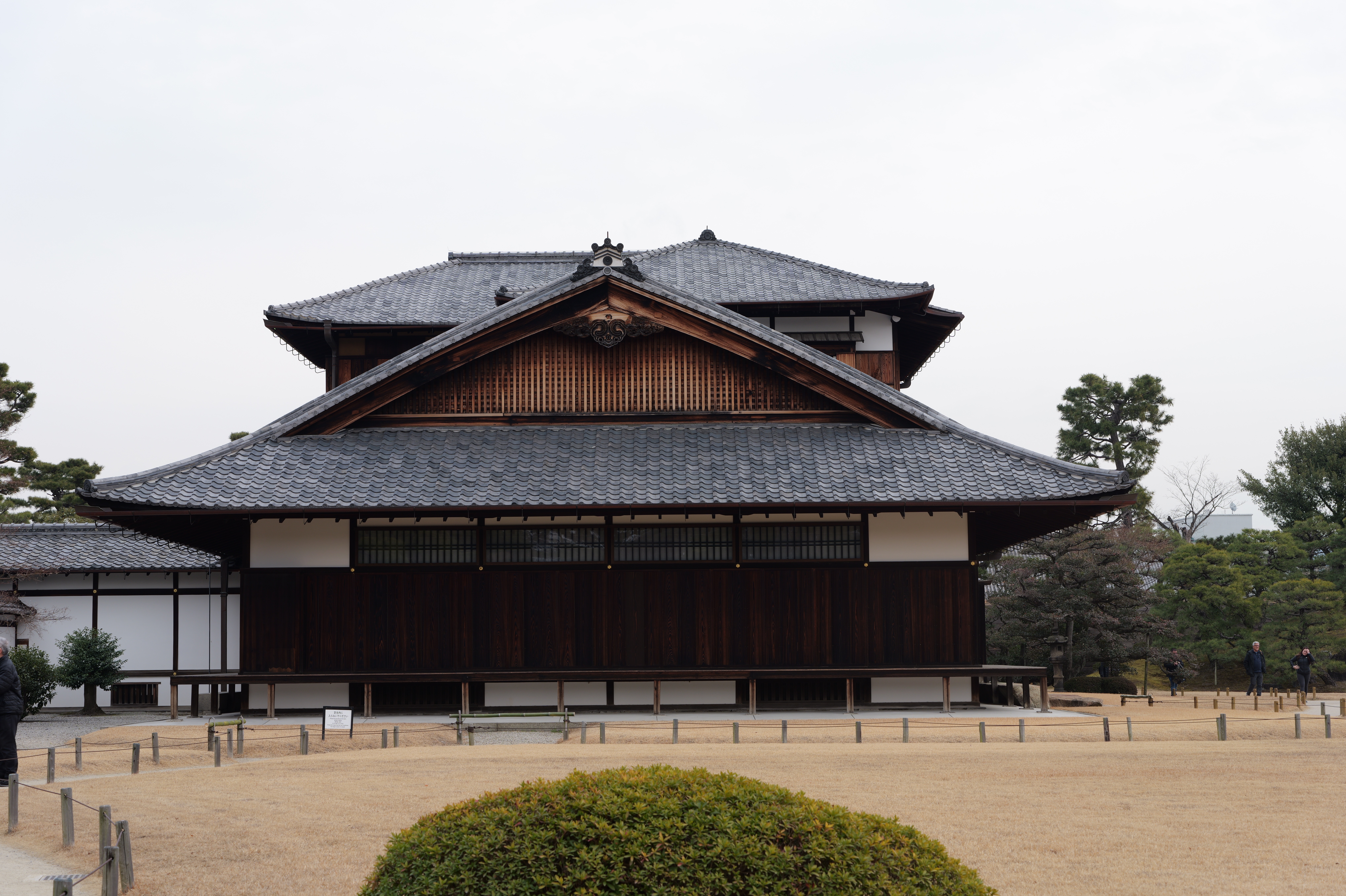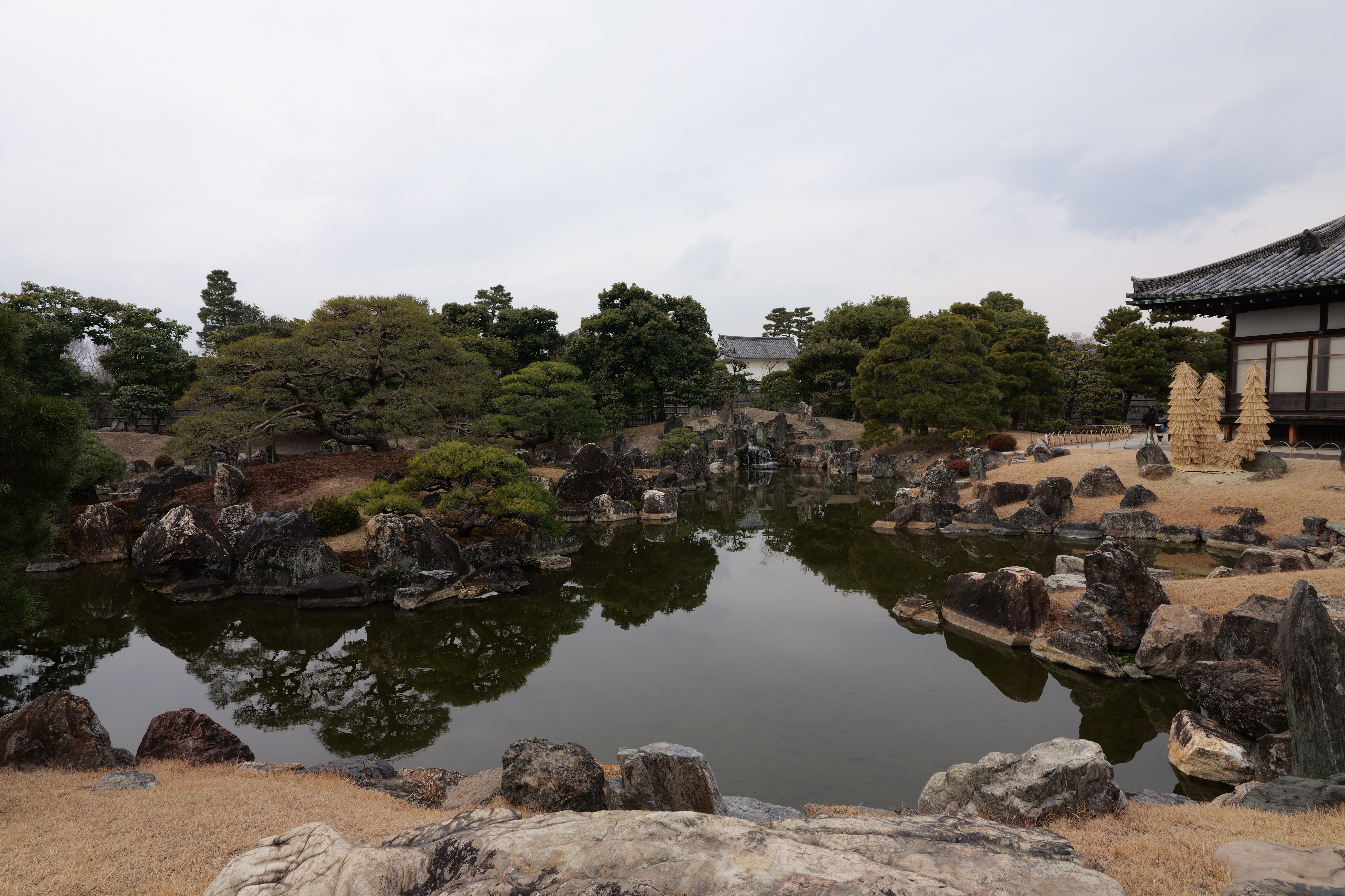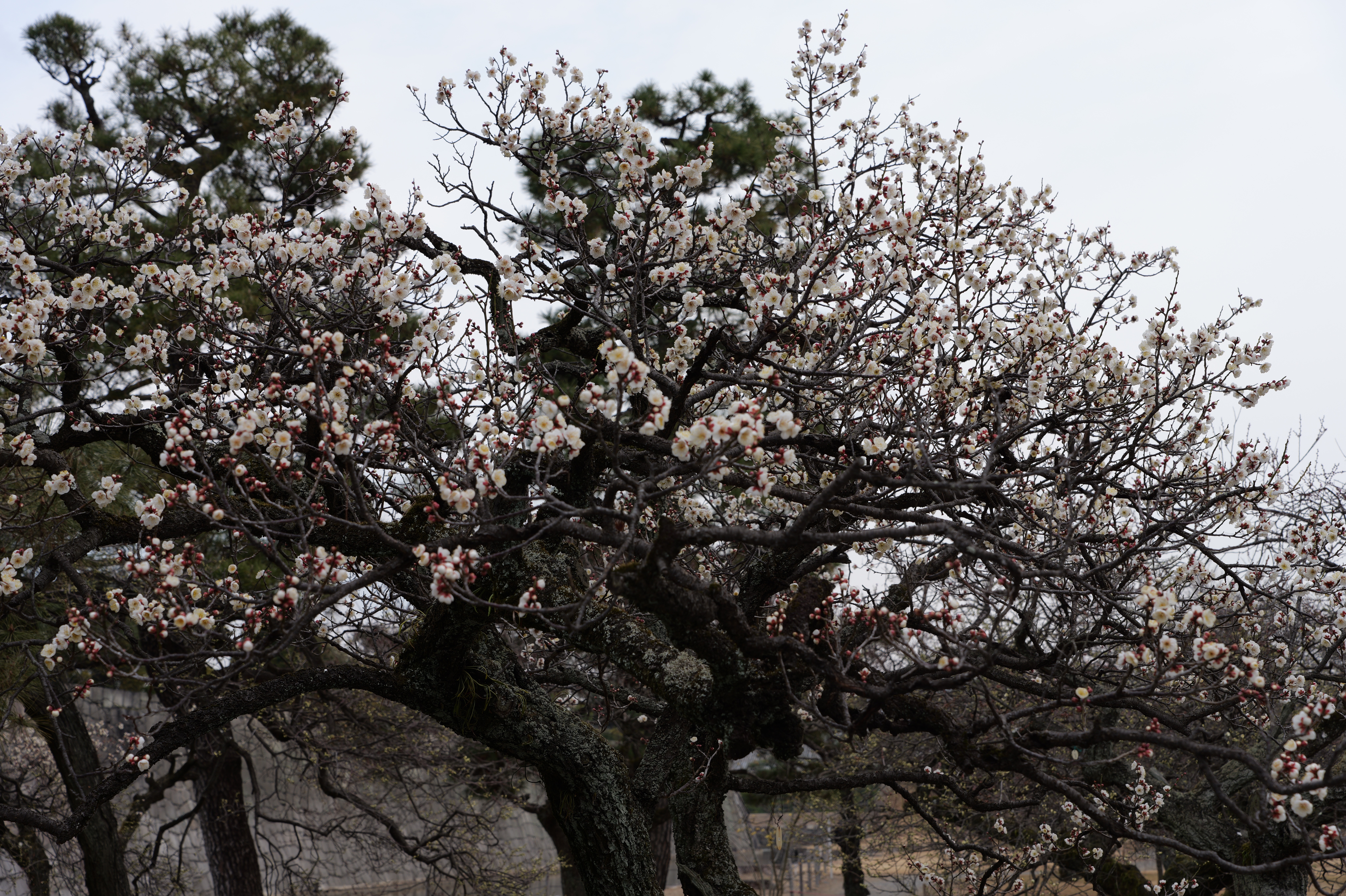 一中門跡に戻り、ここから岡中門までは蔵の丸で、東側の堀沿いに雁木が続いています。岡中門手前右側の表坂から天守方面へ向かいます。表坂を登ったところは松の丸で、ここからは動物園のある南の丸を見下ろせます。松の丸をずっと進み、石段を登った正面に本丸御殿跡、後ろ側は天守曲輪です。正面階段を登ると天守の写真スポットになっています。本丸御殿跡で入れるのはこのスポット付近のみで、中心部は塀で囲まれています。