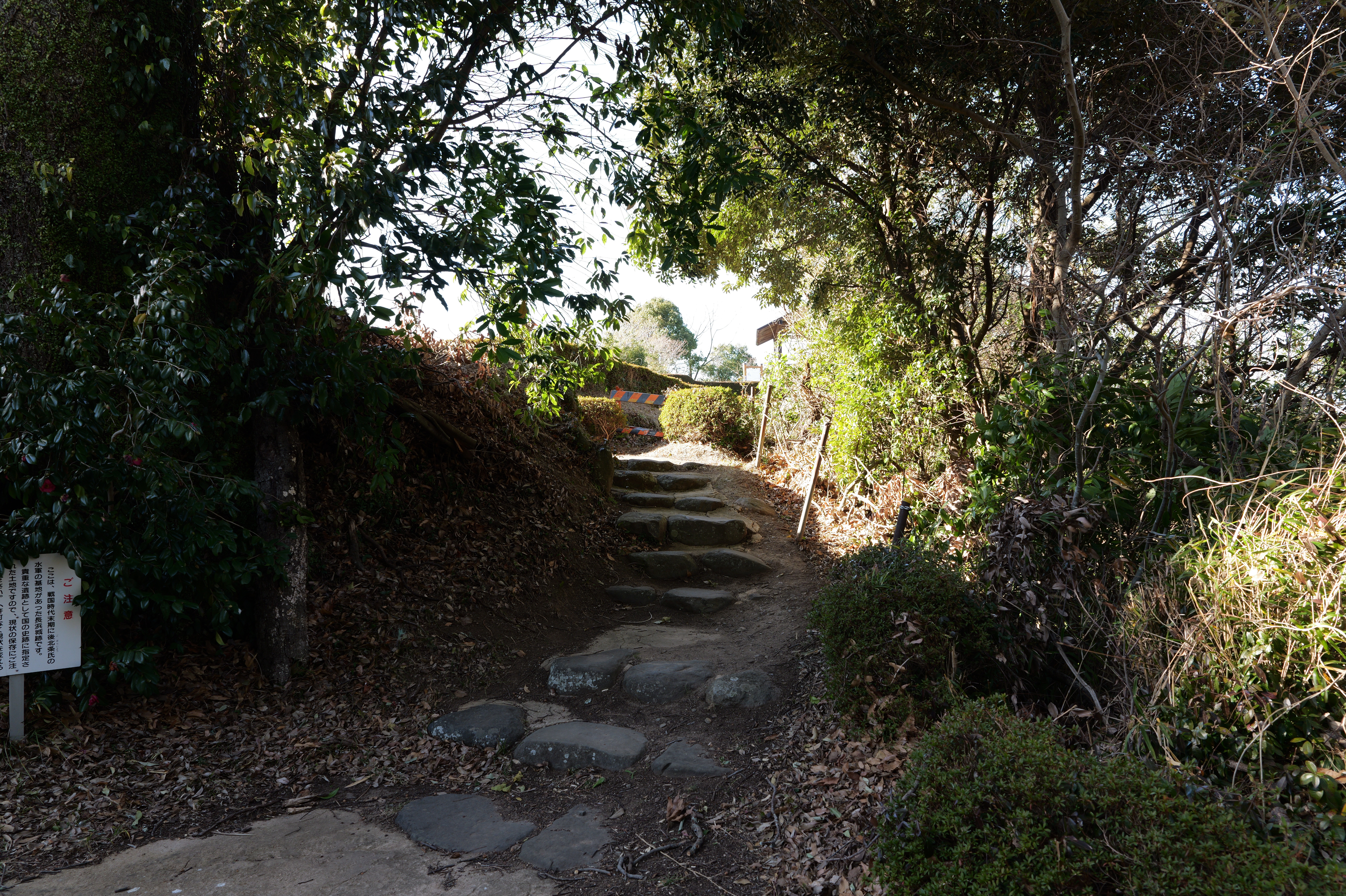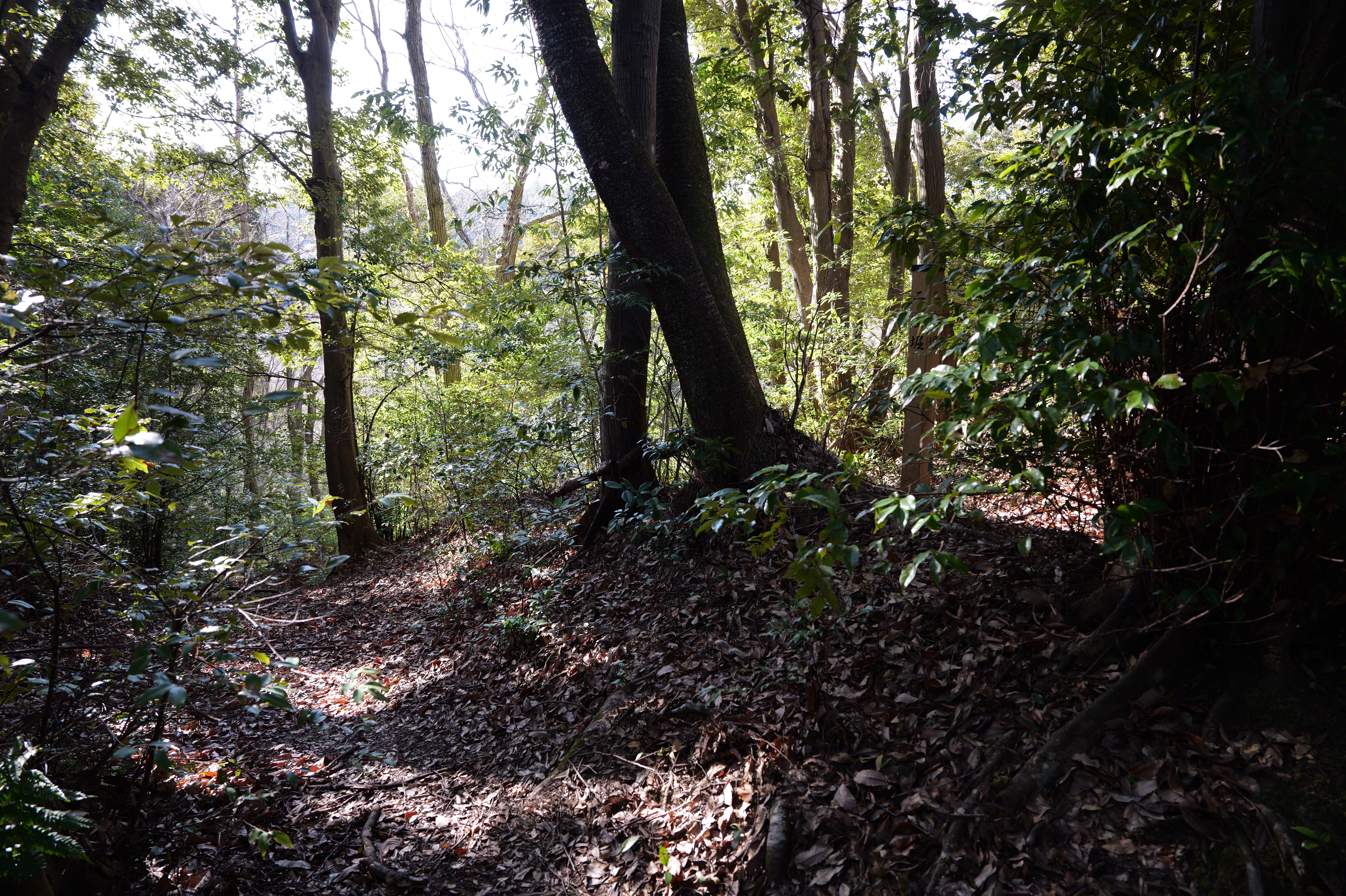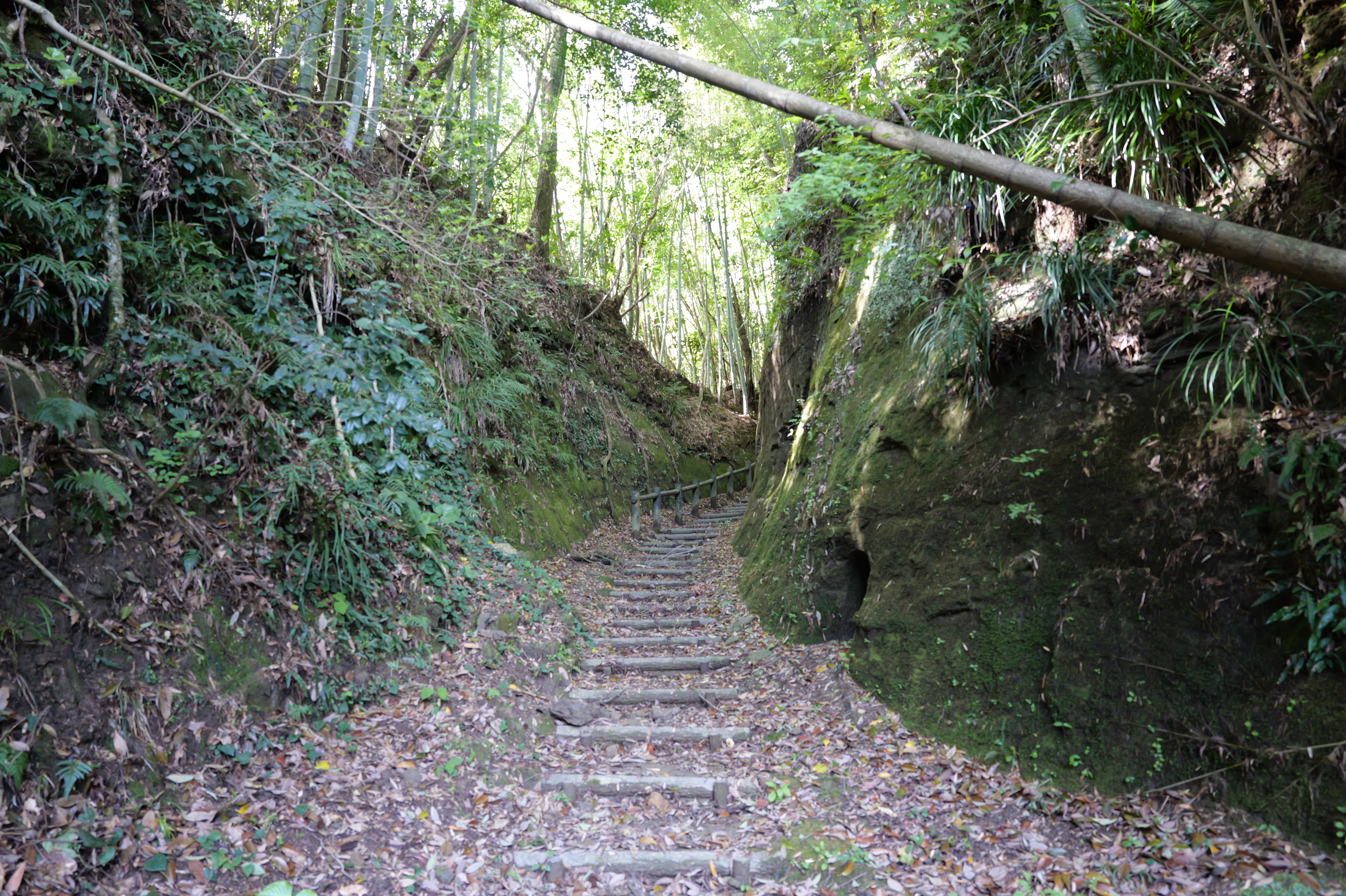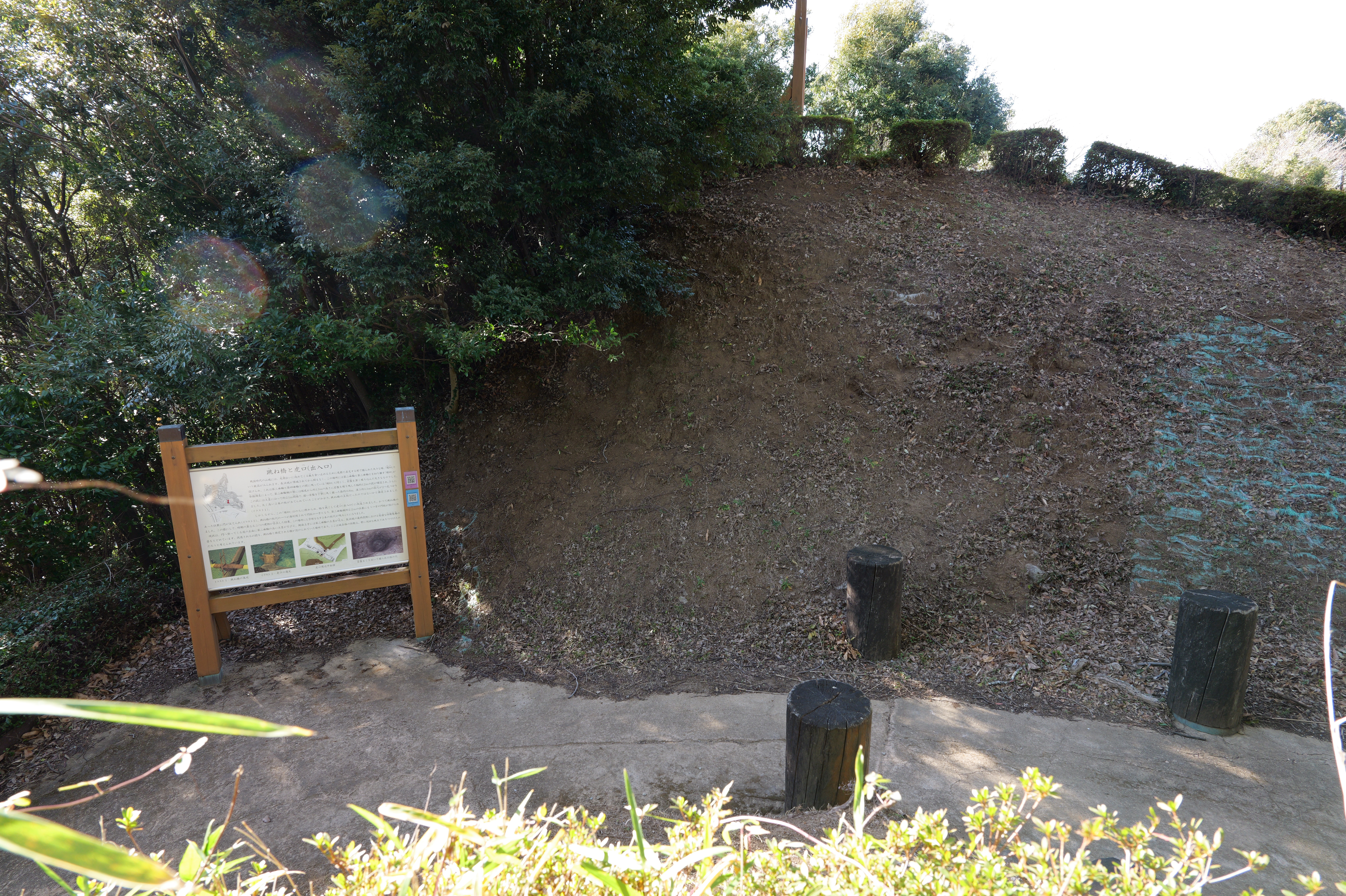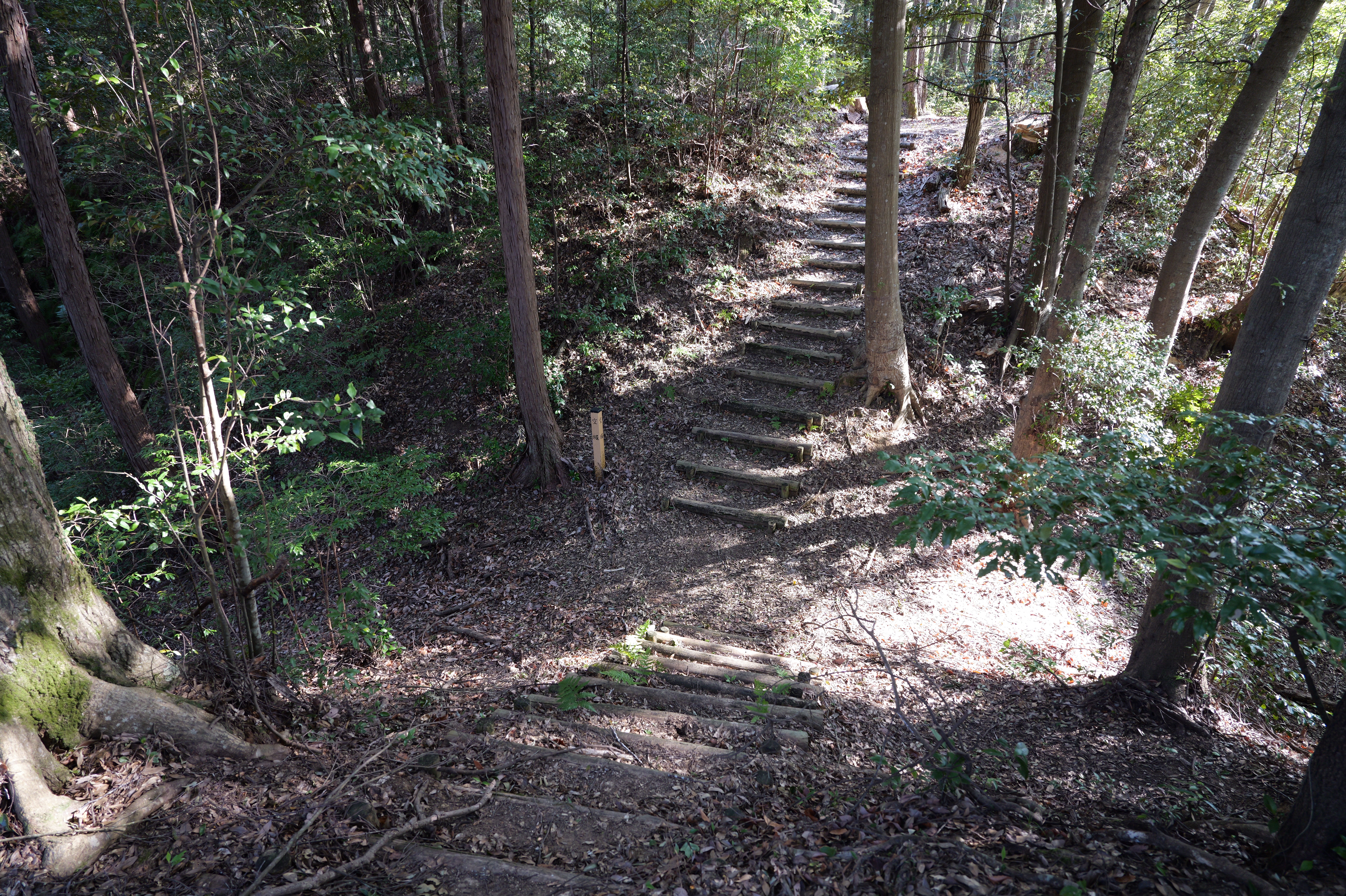 天守を出て西側の新裏坂から天守北側の埋門への小道があるようなので行ってみましたが通行禁止でした。天守曲輪から今度は裏坂で下ります。裏坂の途中には銀名水と呼ばれる井戸があります。その先ではナニコレ珍百景でMV珍に選ばれたという、階段をよじ登っている人型のように見える根っこを発見。確かに見えます。