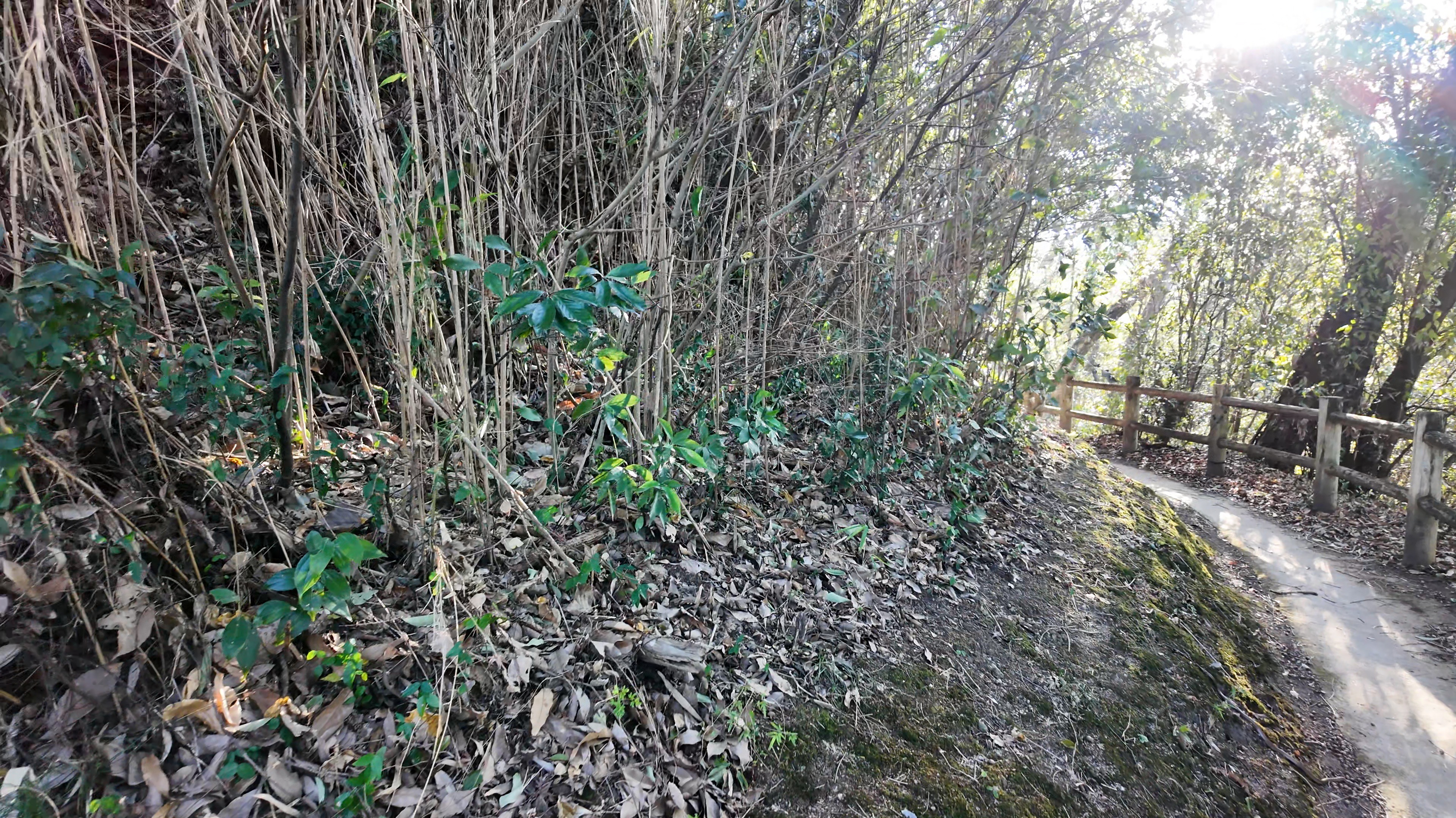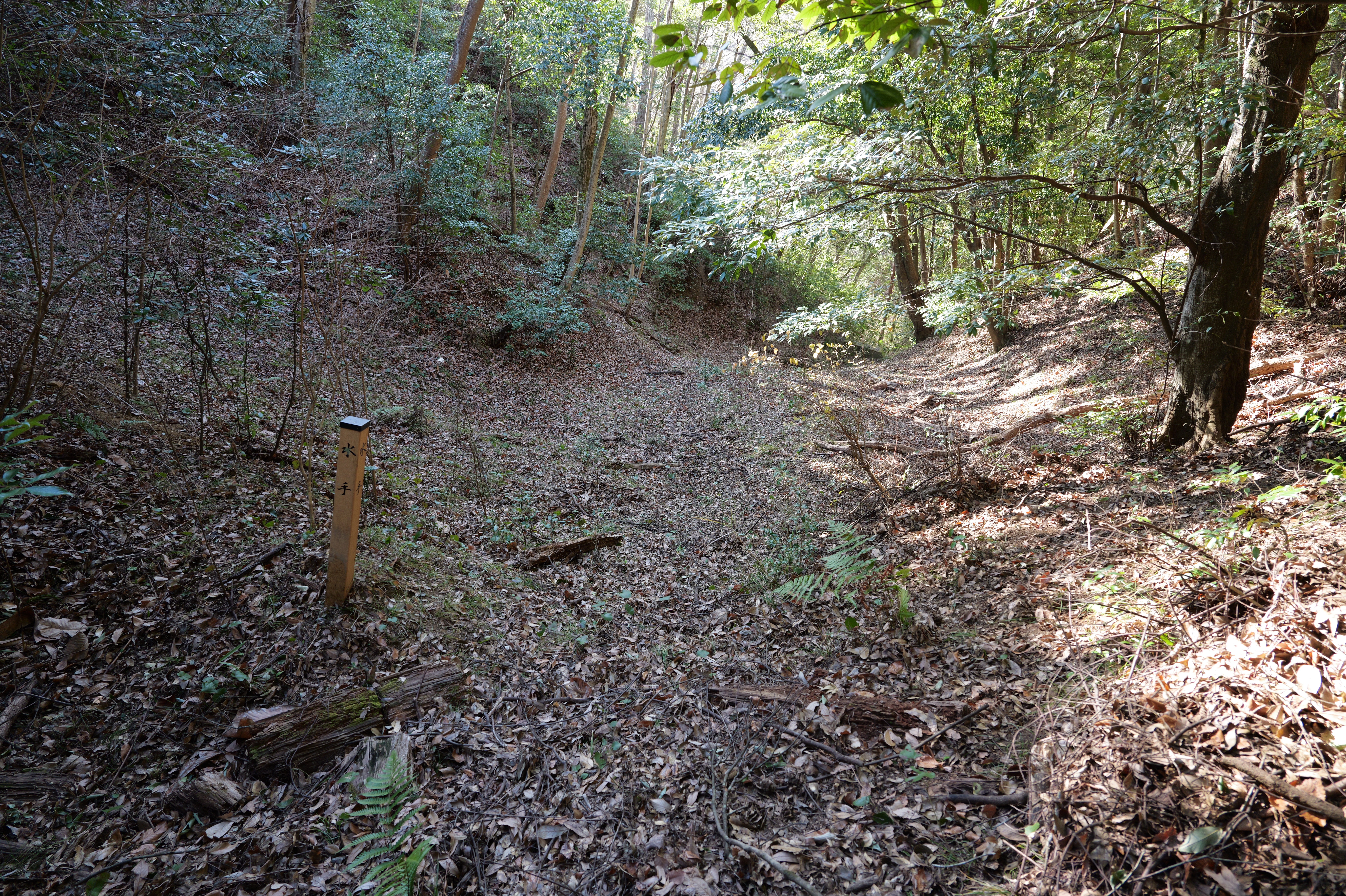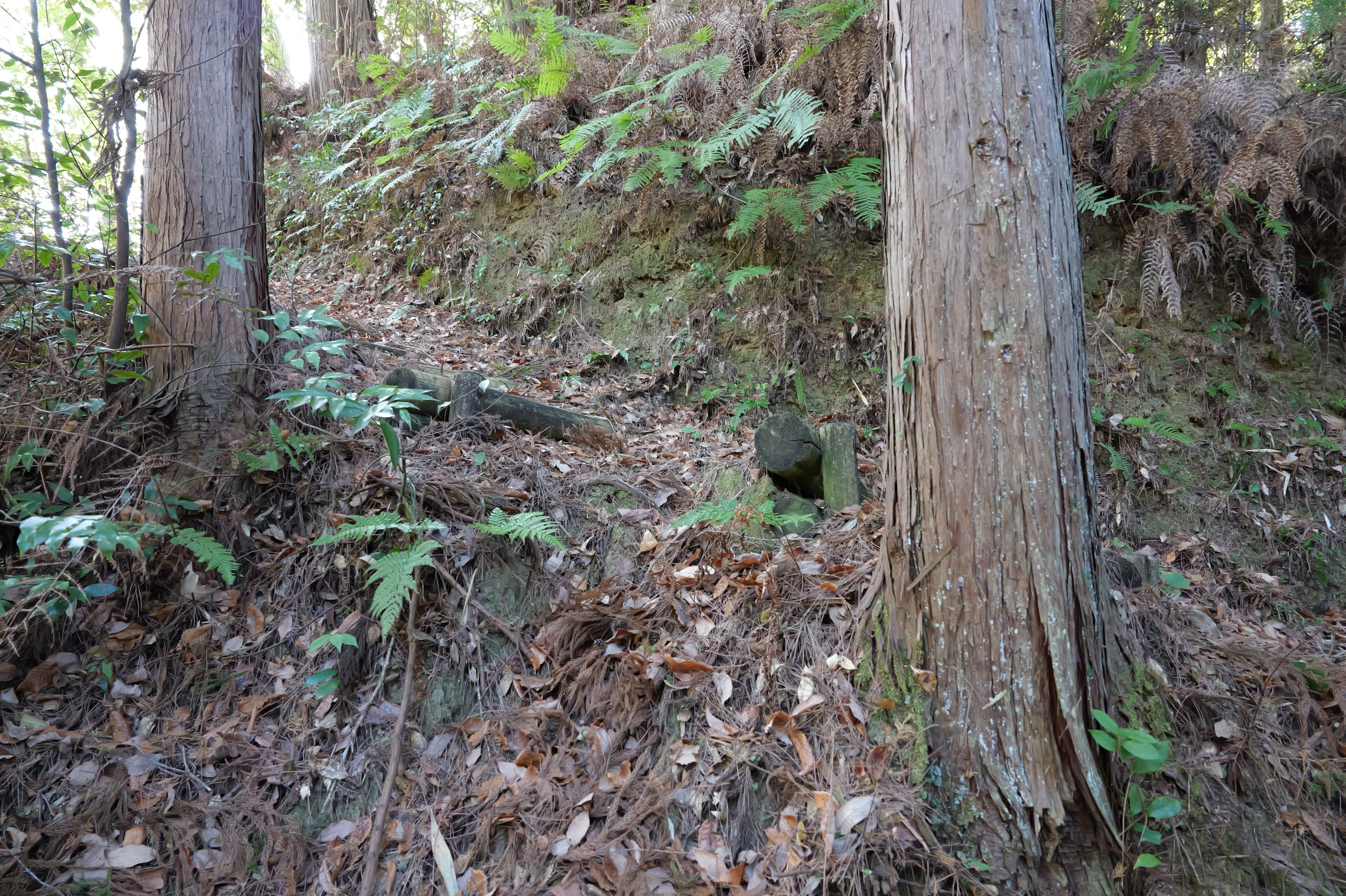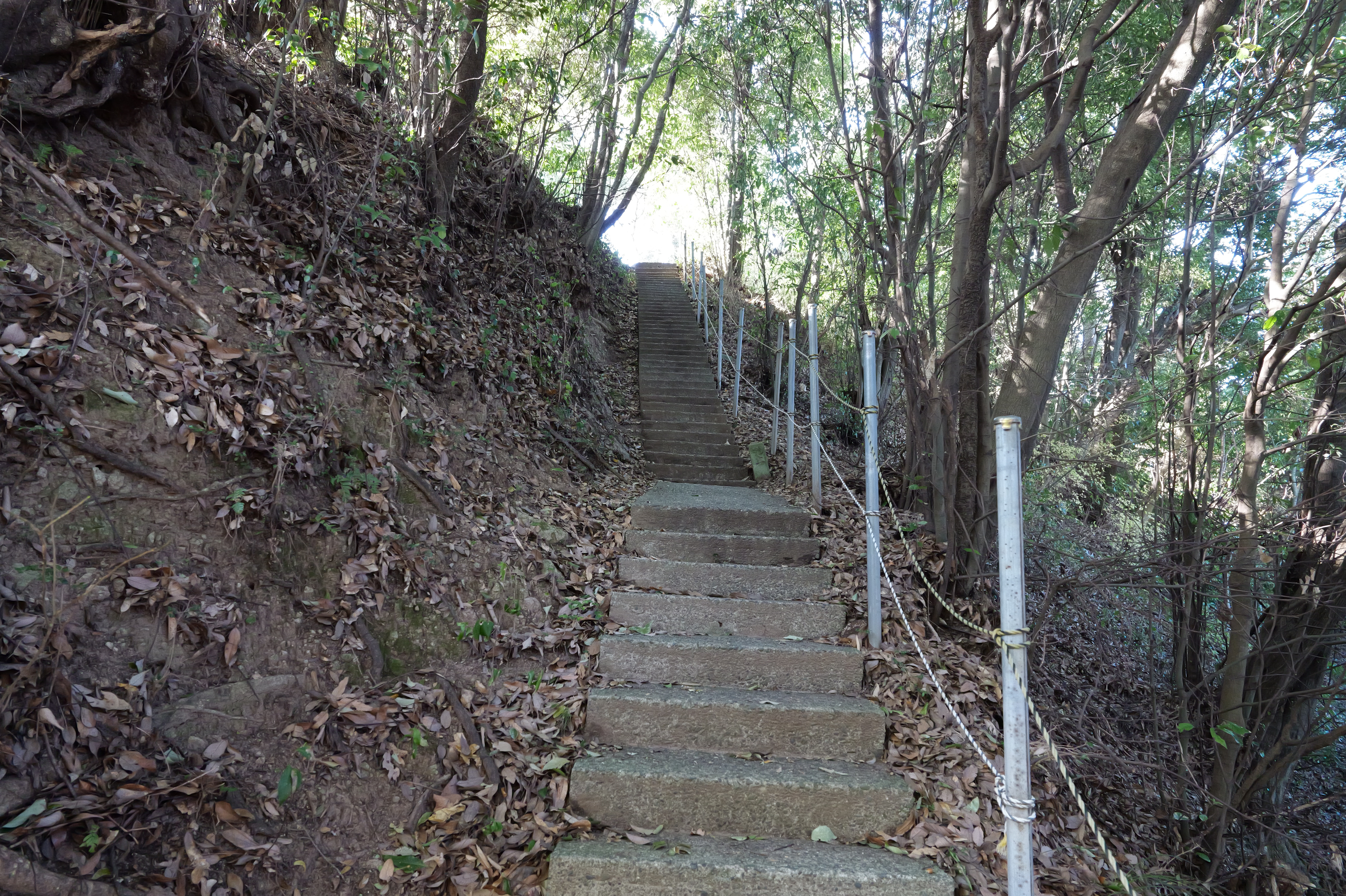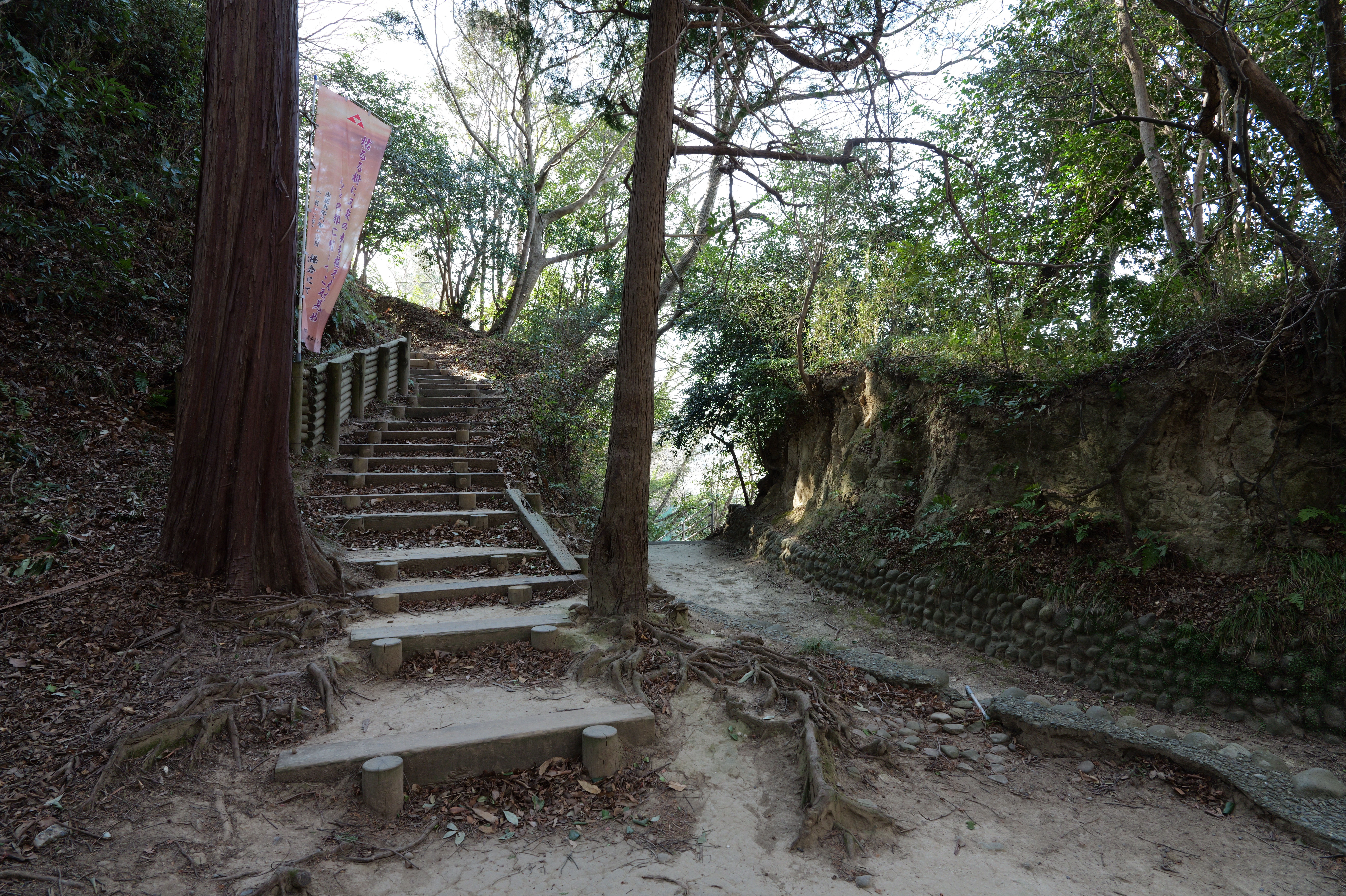 天守を出て西側の新裏坂から天守北側の埋門への小道があるようなので行ってみましたが通行禁止でした。天守曲輪から今度は裏坂で下ります。裏坂の途中には銀名水と呼ばれる井戸があります。その先ではナニコレ珍百景でMV珍に選ばれたという、階段をよじ登っている人型のように見える根っこを発見。確かに見えます。