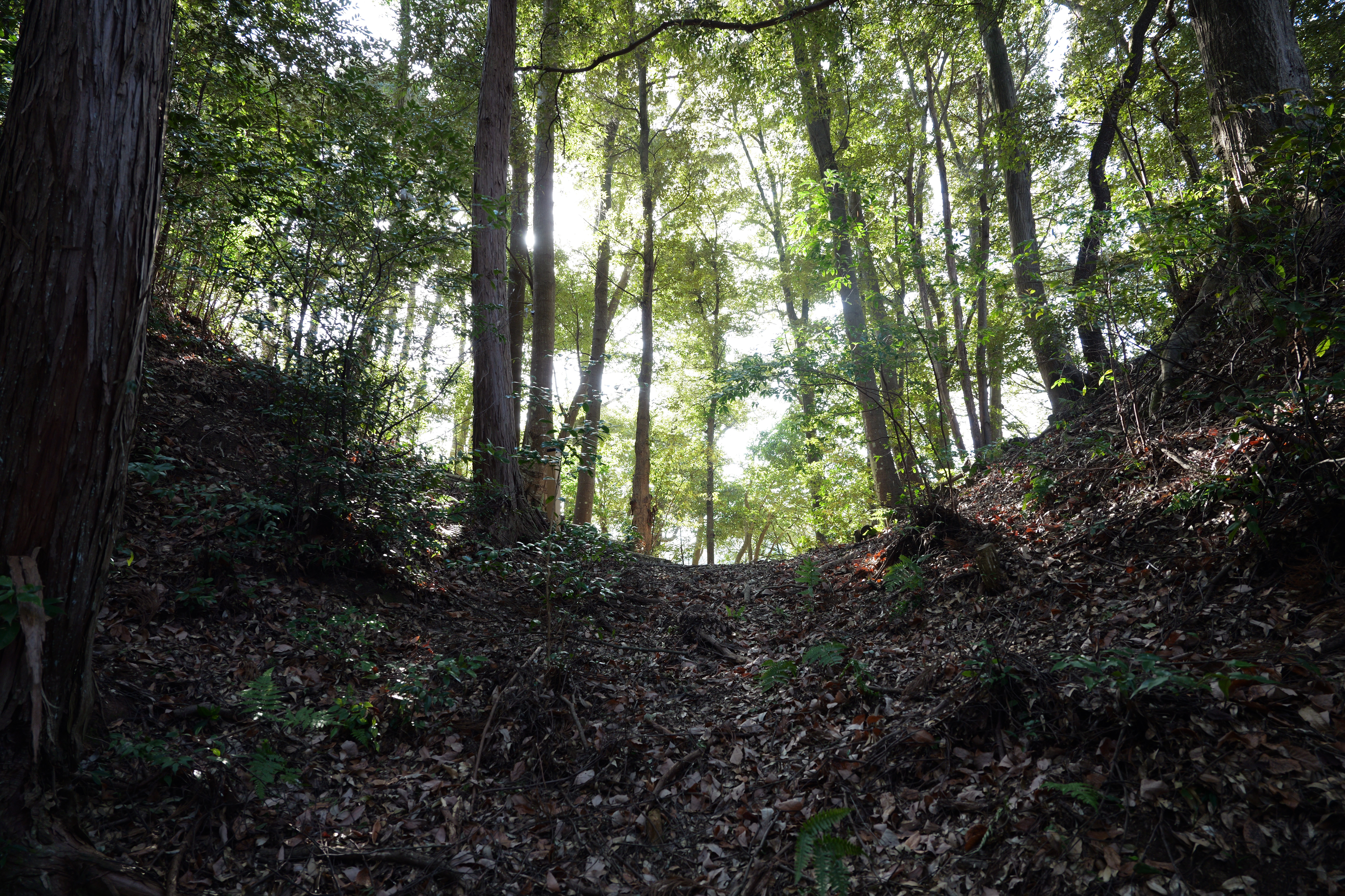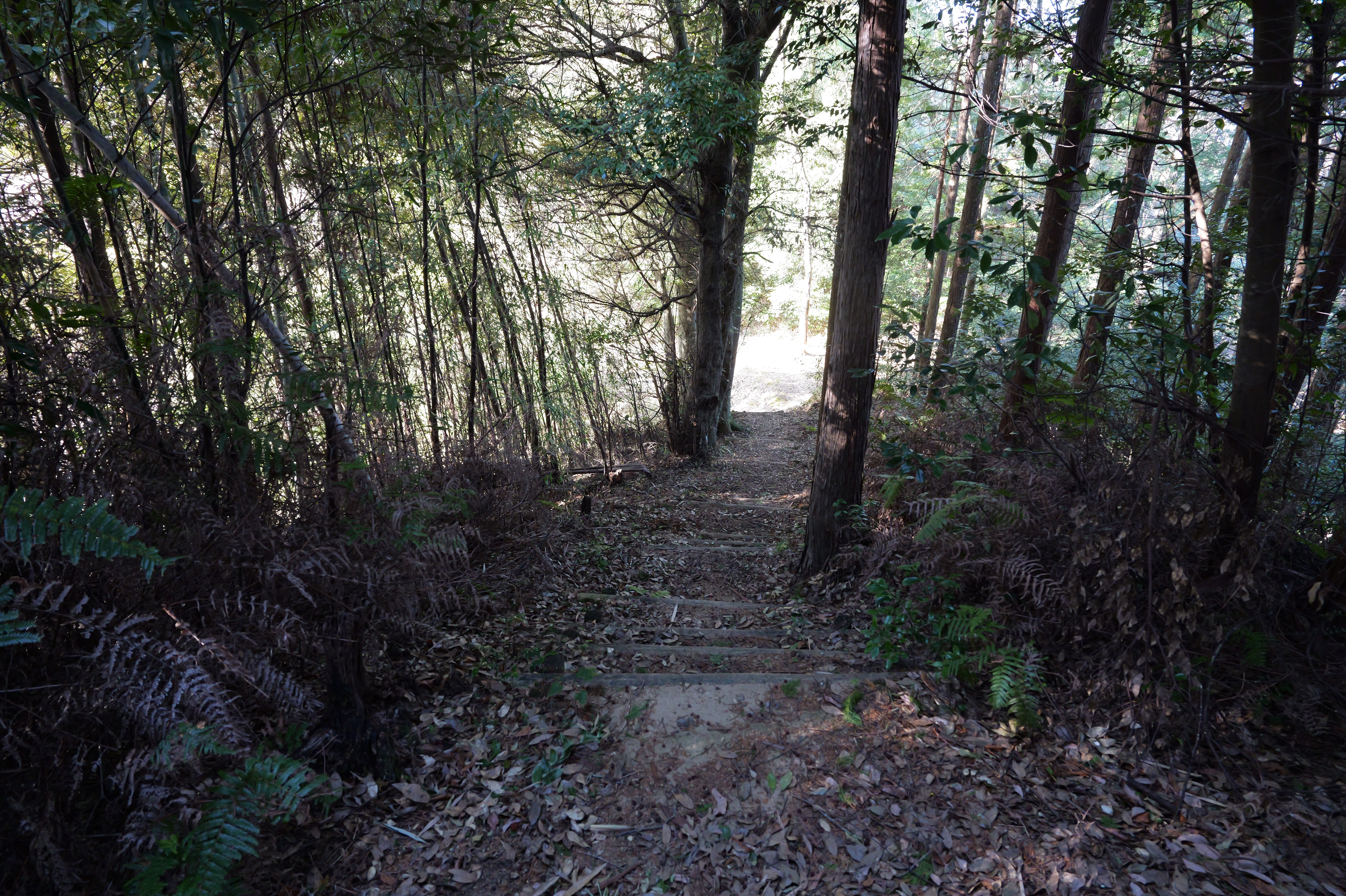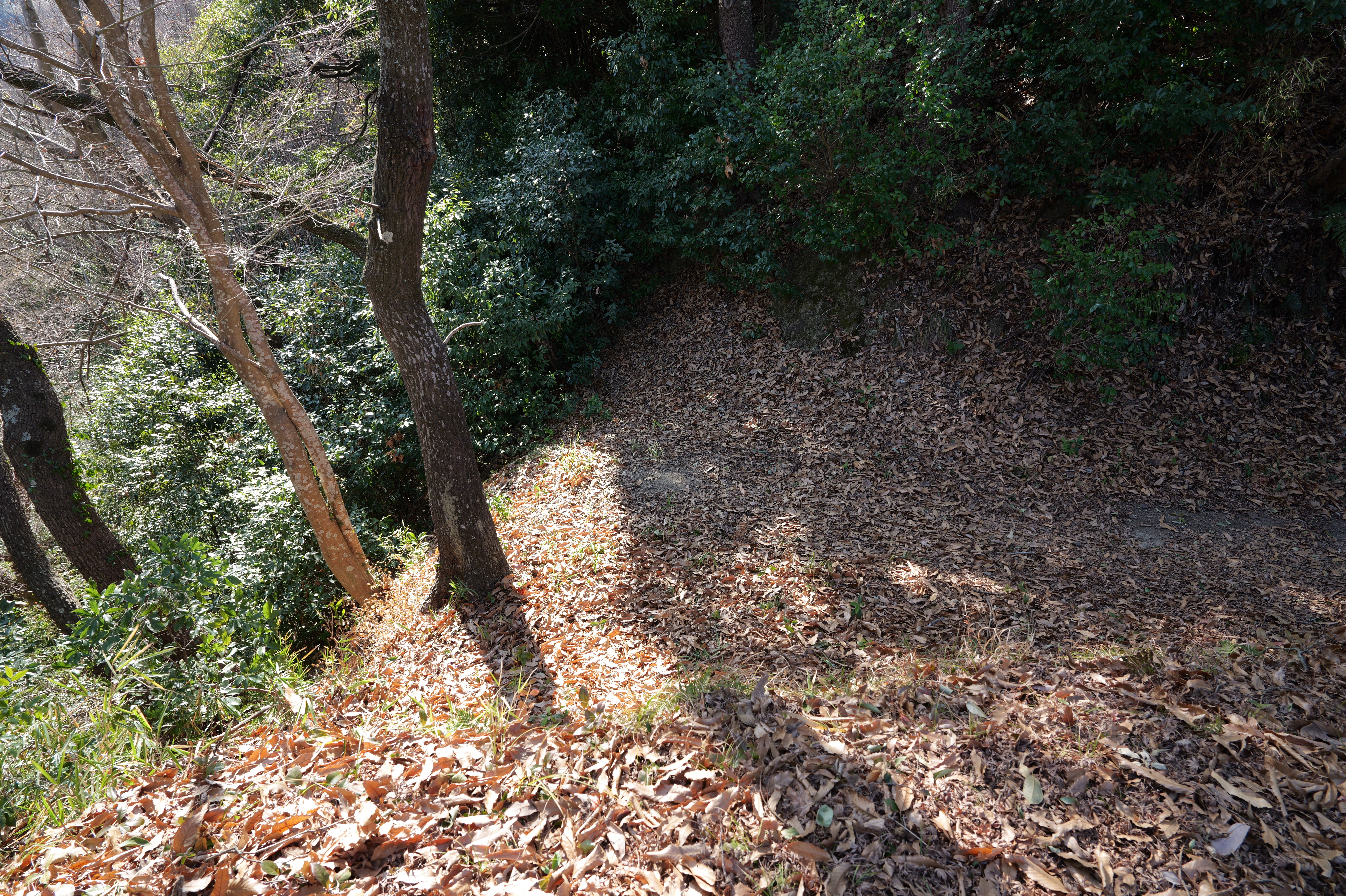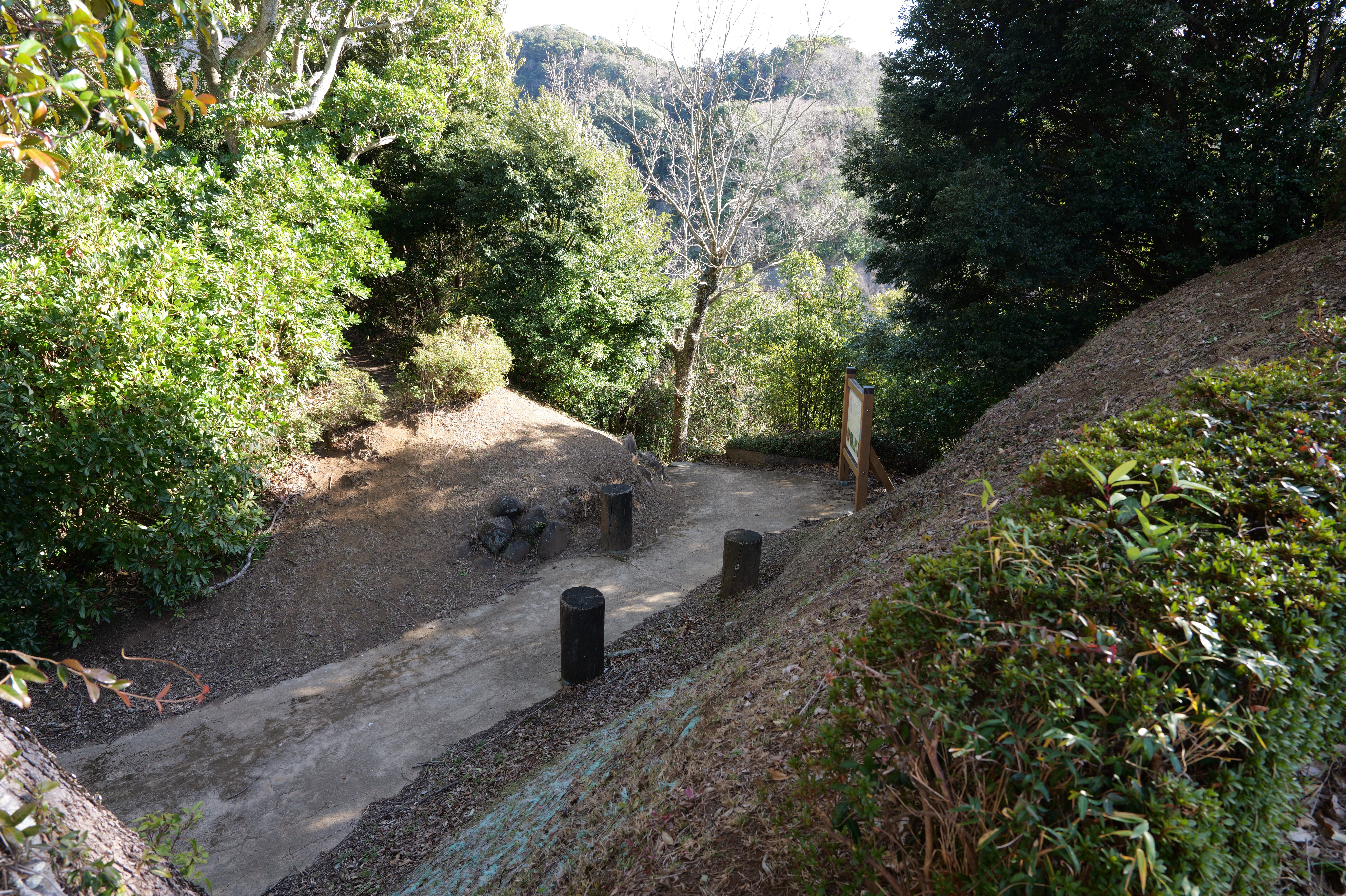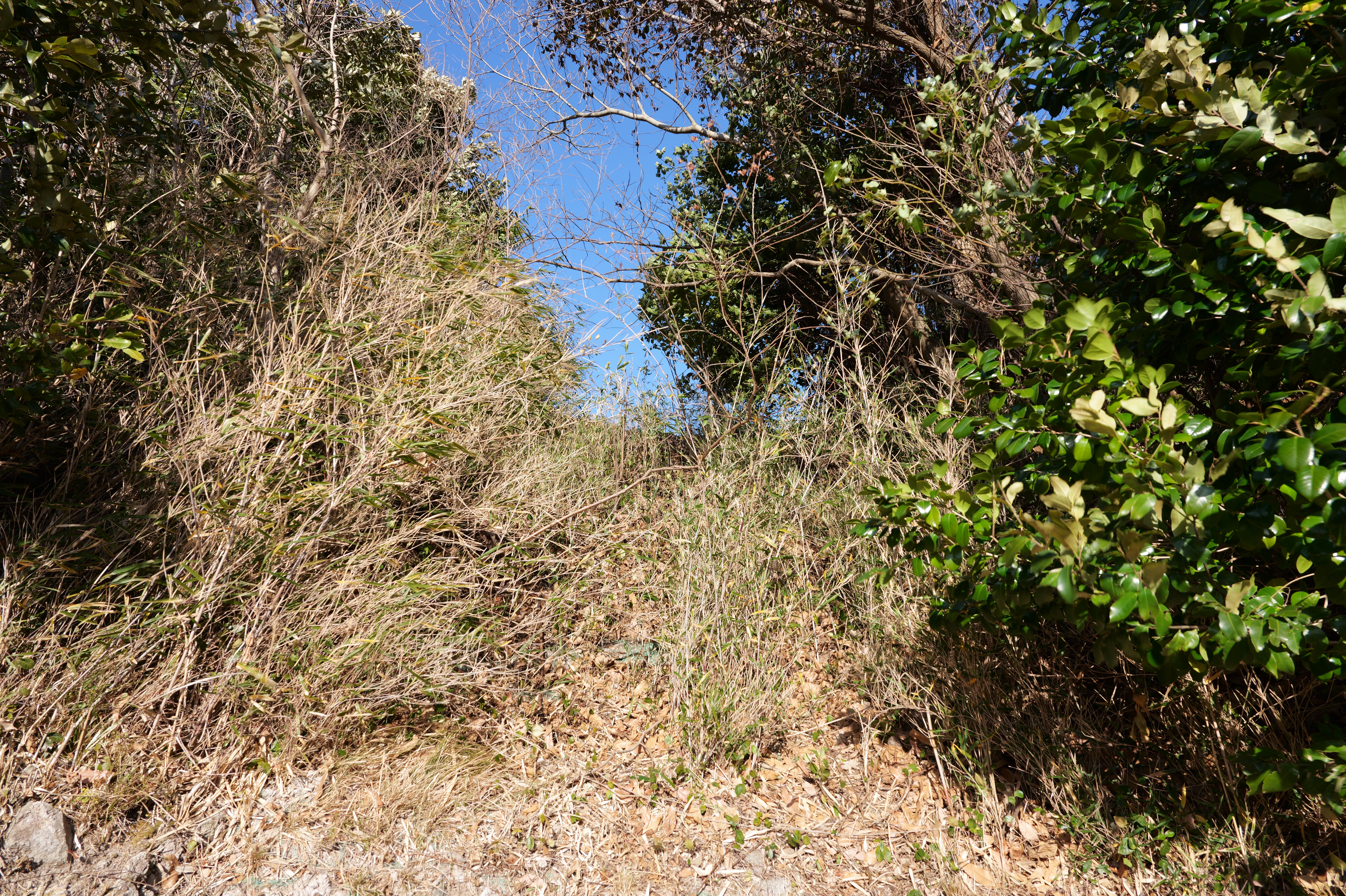 天守を出て西側の新裏坂から天守北側の埋門への小道があるようなので行ってみましたが通行禁止でした。天守曲輪から今度は裏坂で下ります。裏坂の途中には銀名水と呼ばれる井戸があります。その先ではナニコレ珍百景でMV珍に選ばれたという、階段をよじ登っている人型のように見える根っこを発見。確かに見えます。