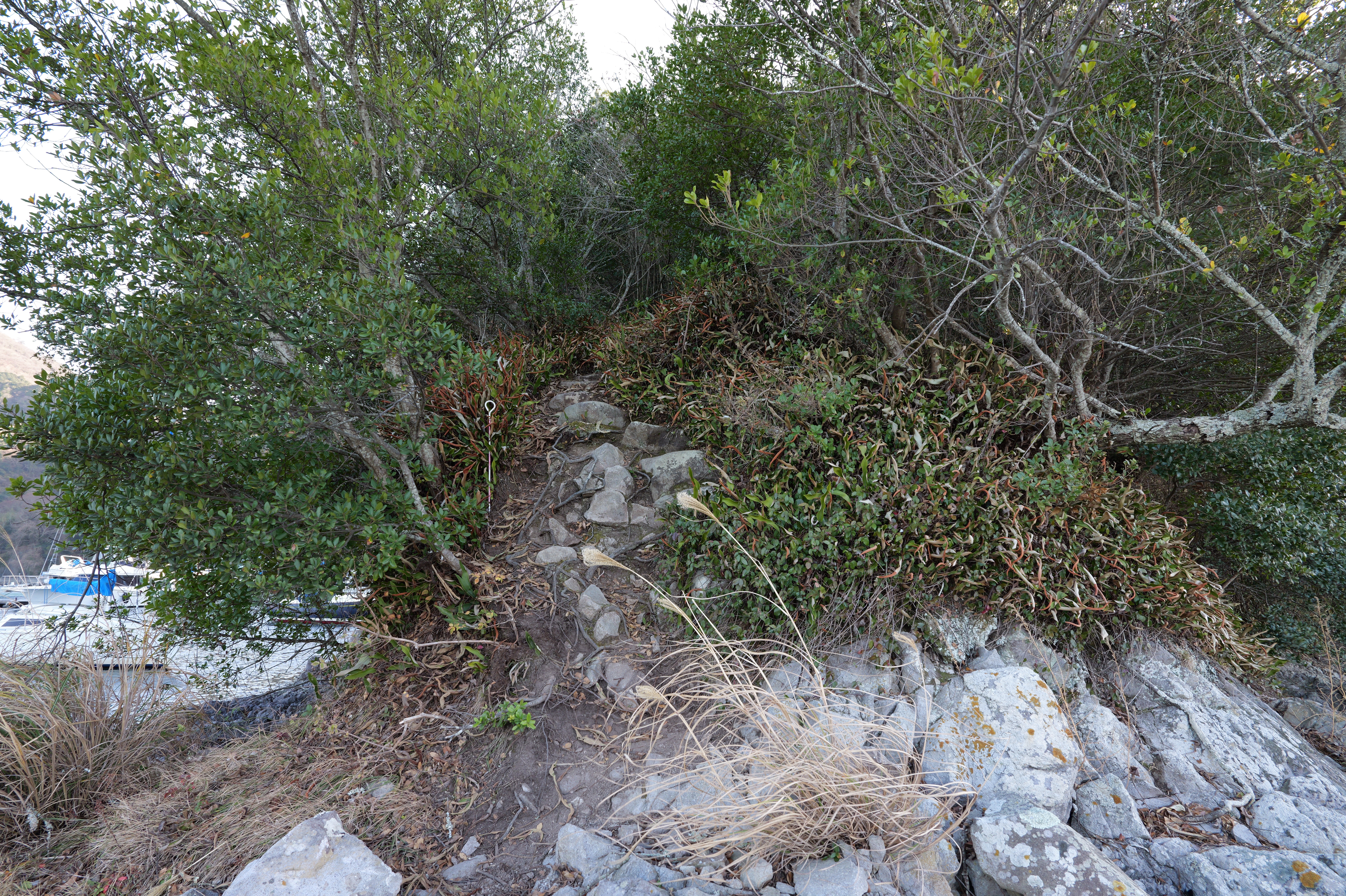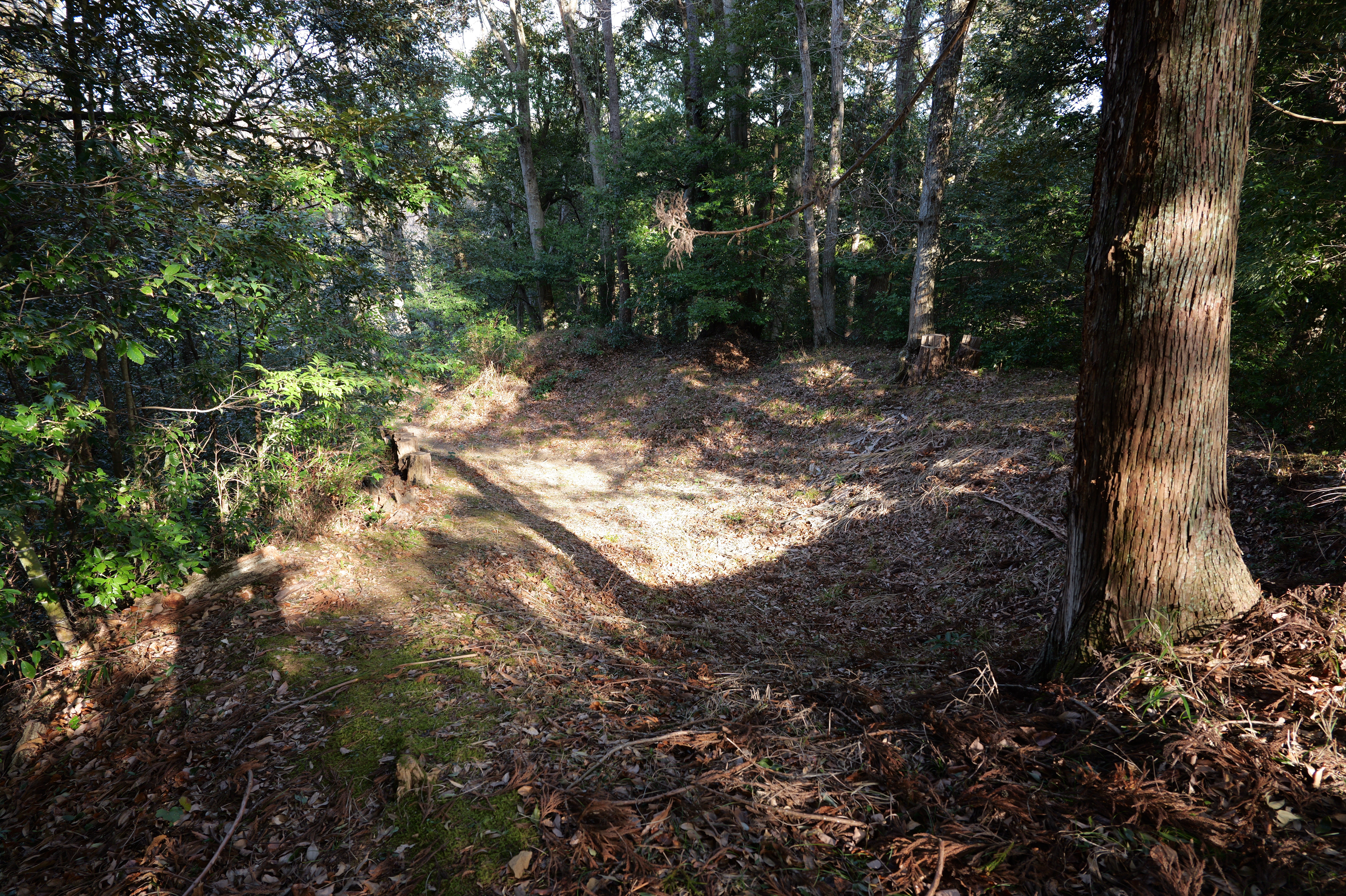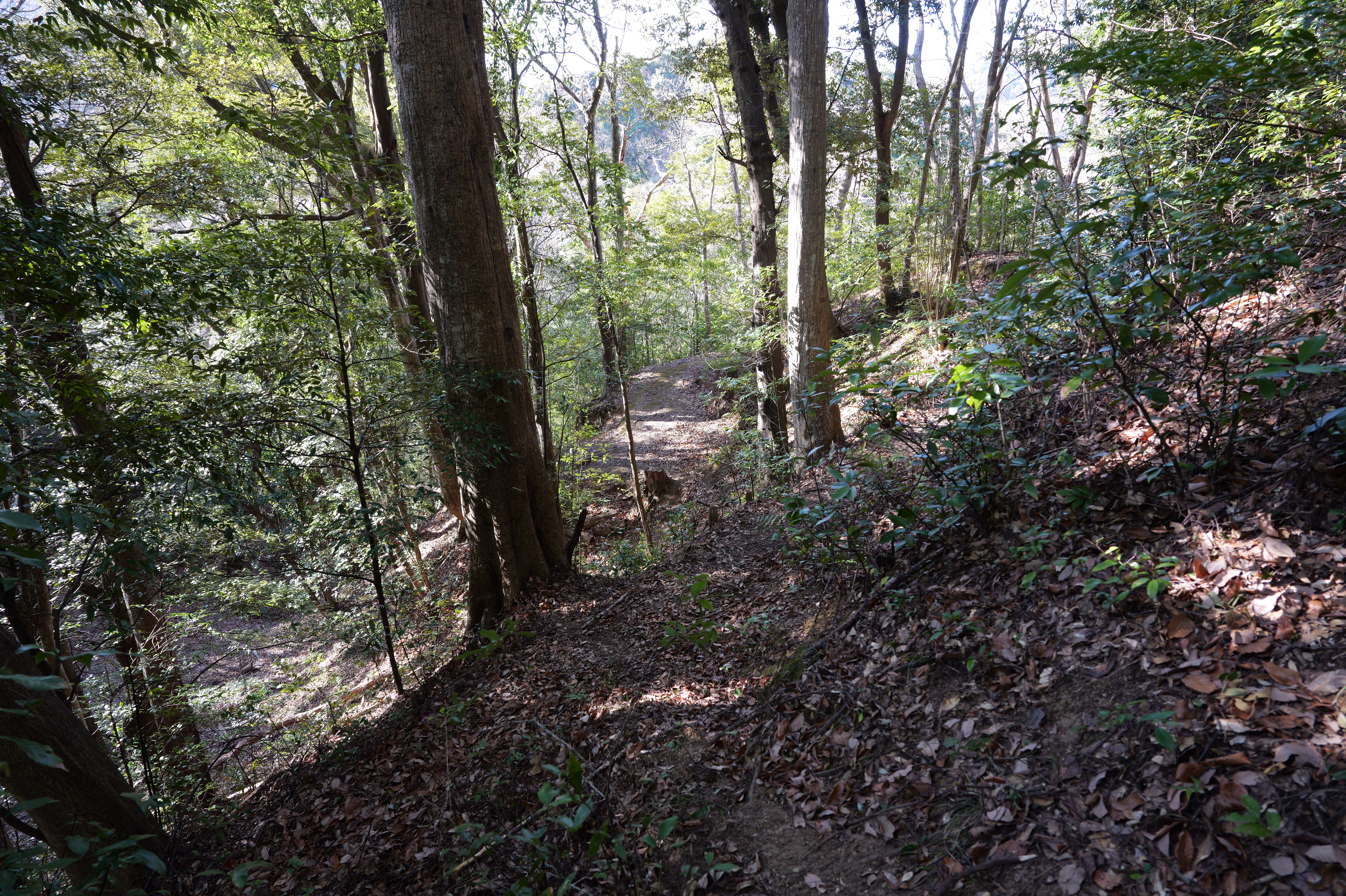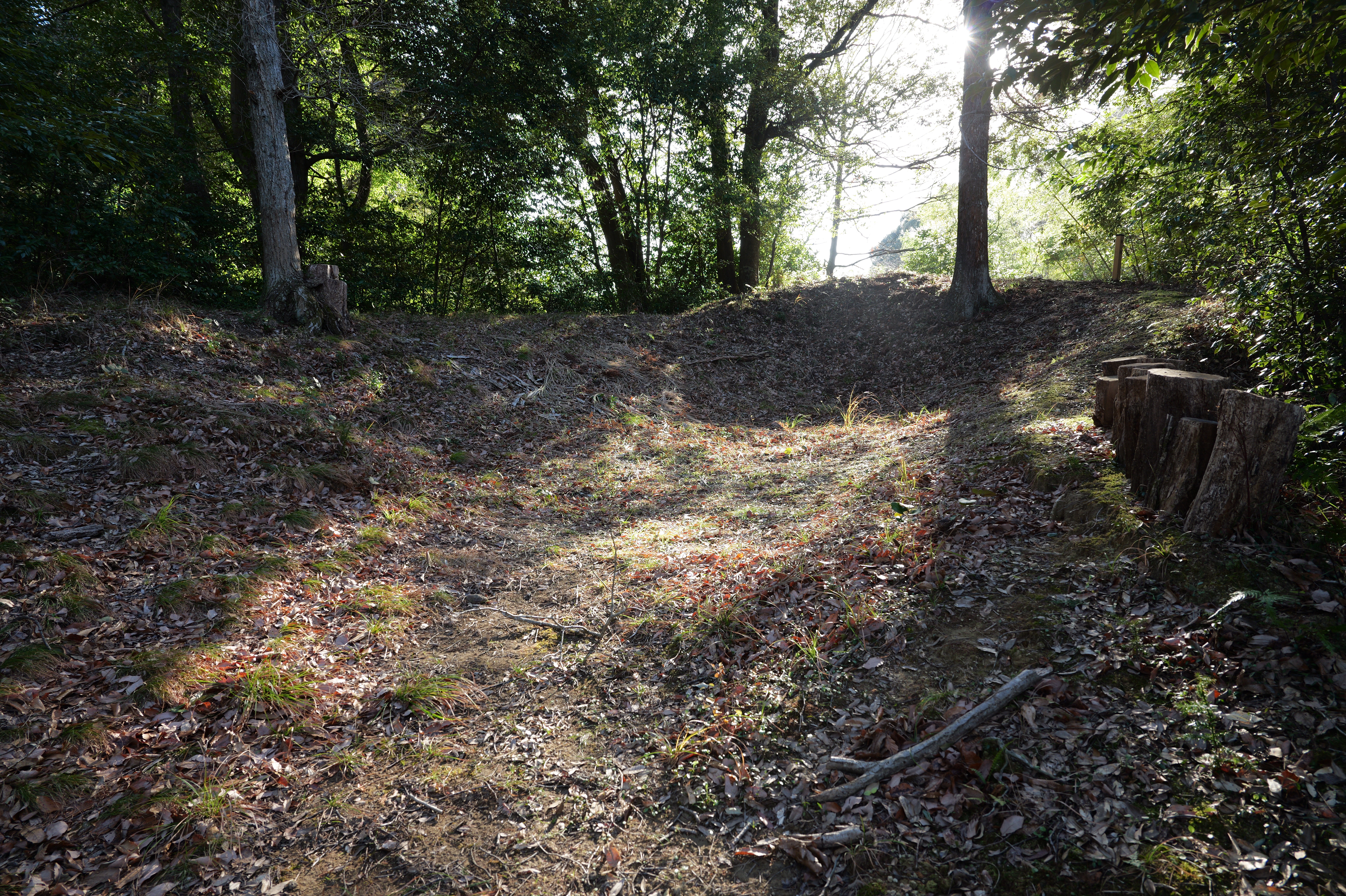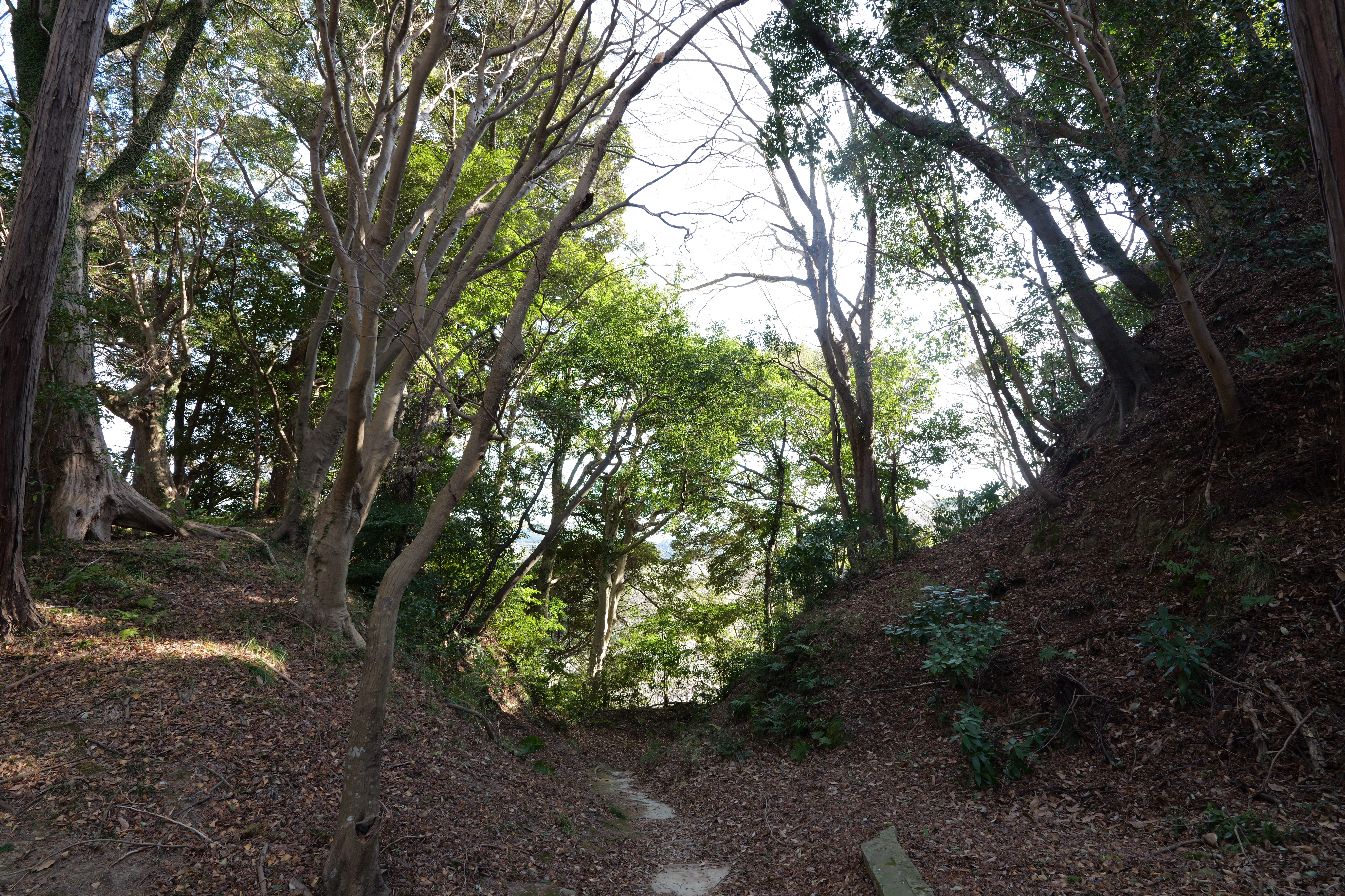 天守を出て西側の新裏坂から天守北側の埋門への小道があるようなので行ってみましたが通行禁止でした。天守曲輪から今度は裏坂で下ります。裏坂の途中には銀名水と呼ばれる井戸があります。その先ではナニコレ珍百景でMV珍に選ばれたという、階段をよじ登っている人型のように見える根っこを発見。確かに見えます。