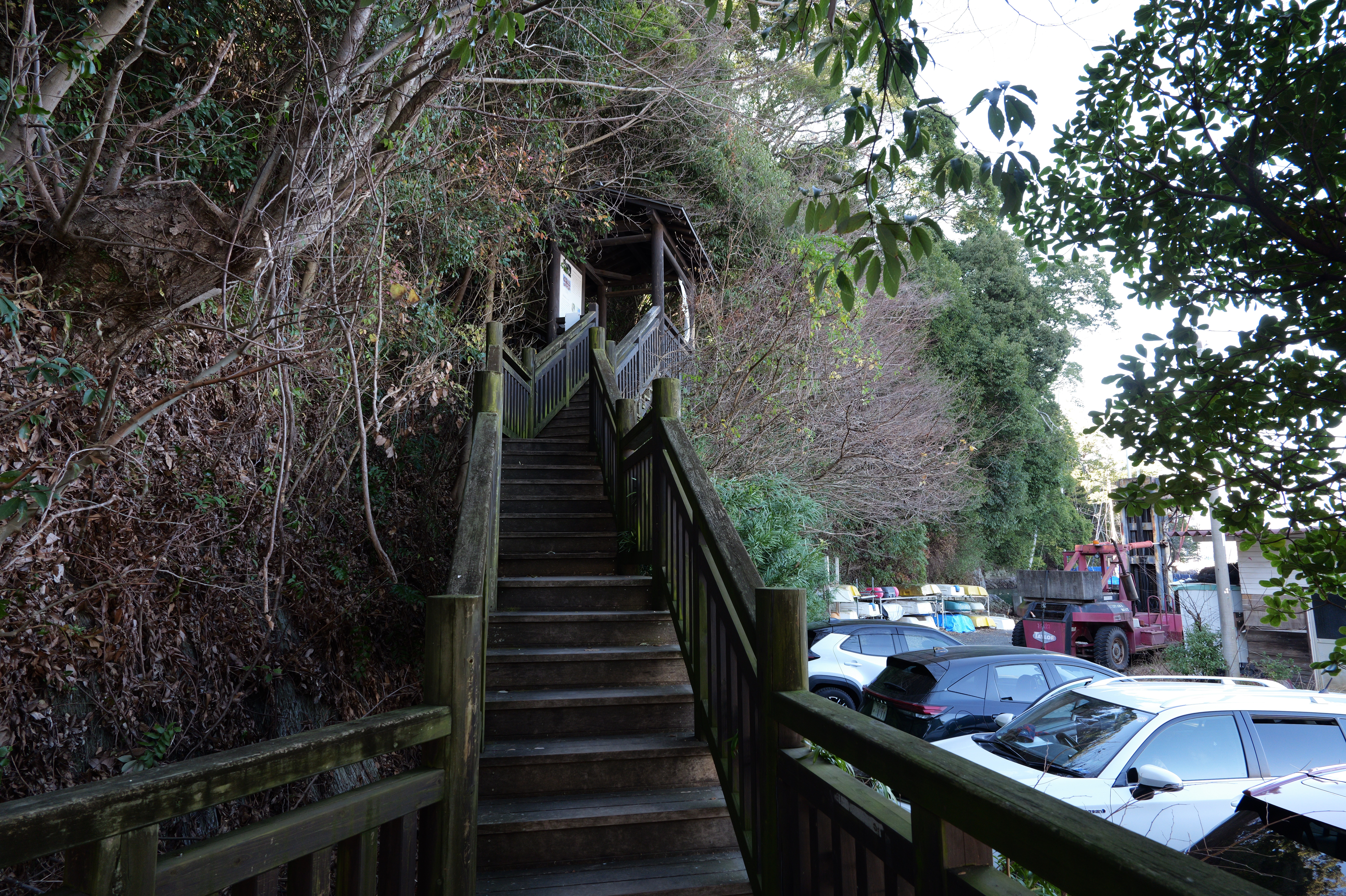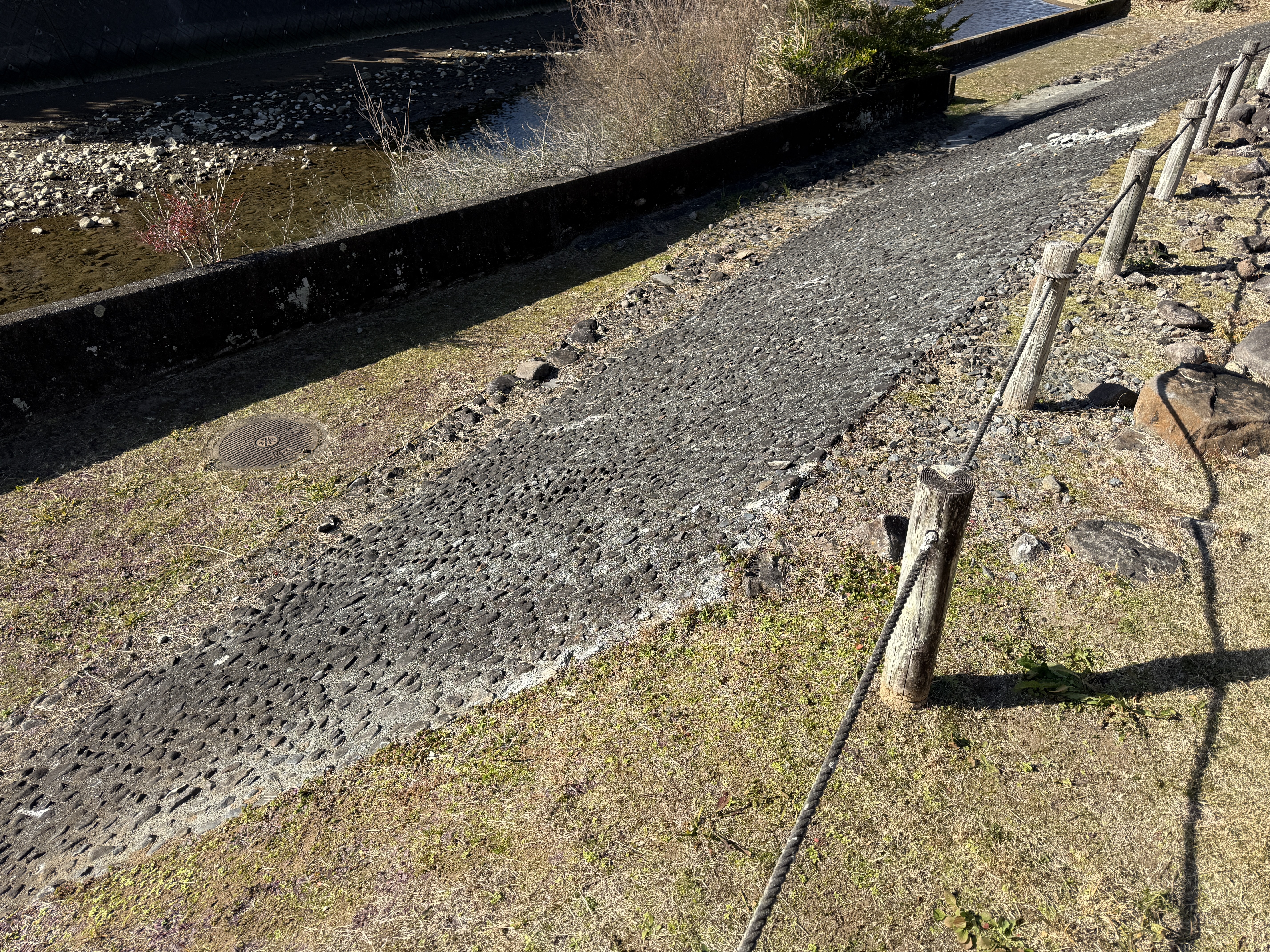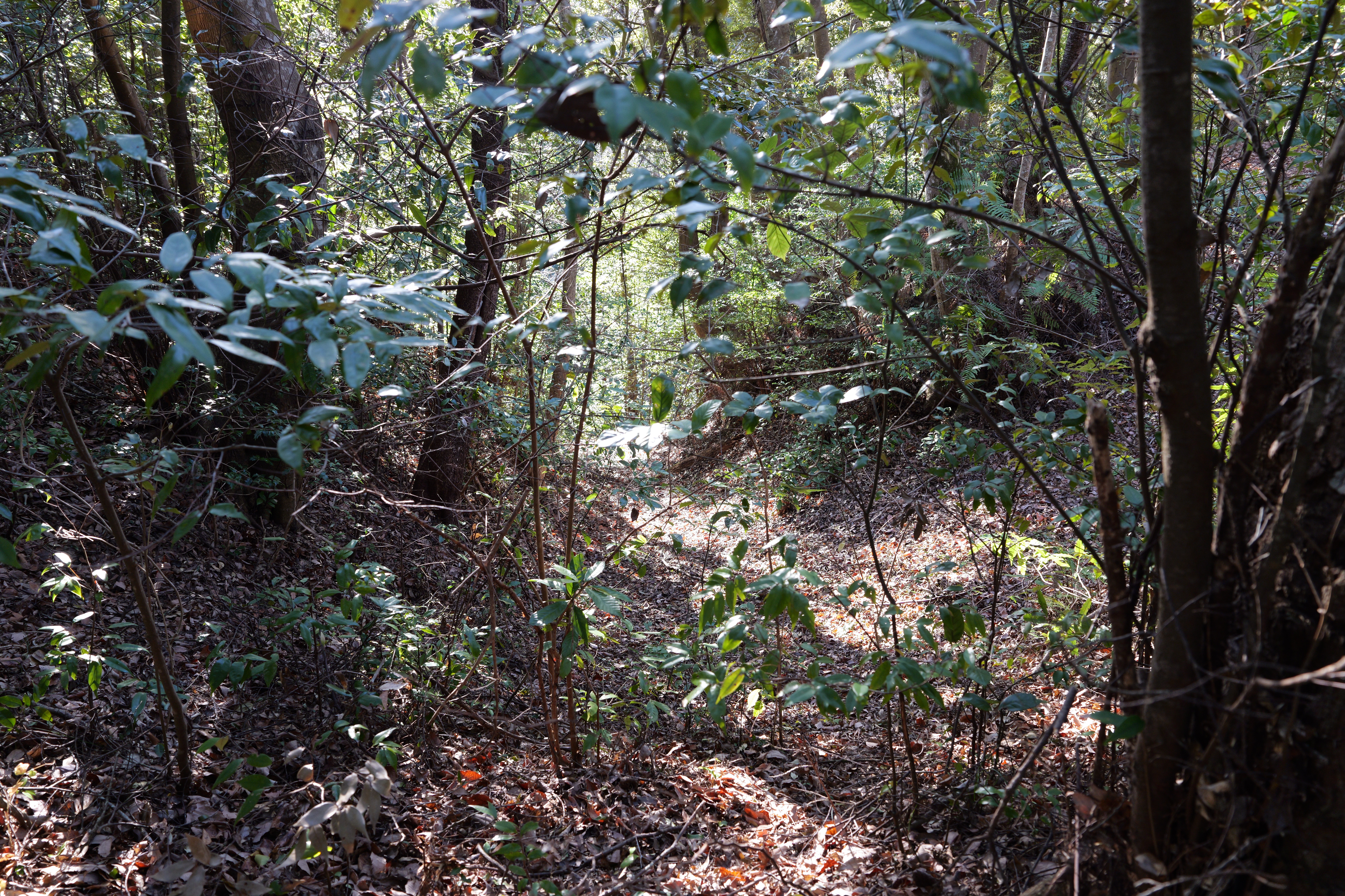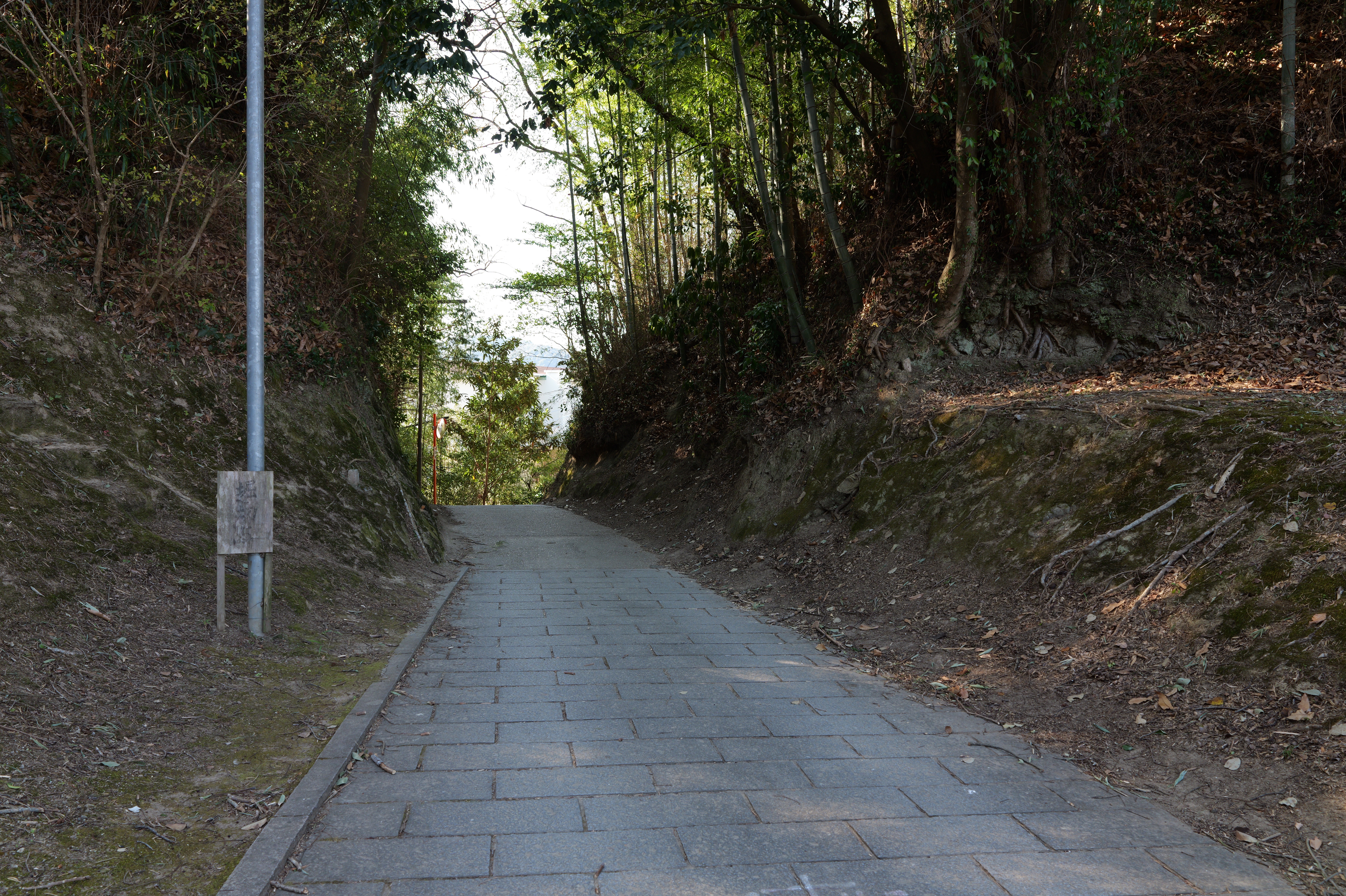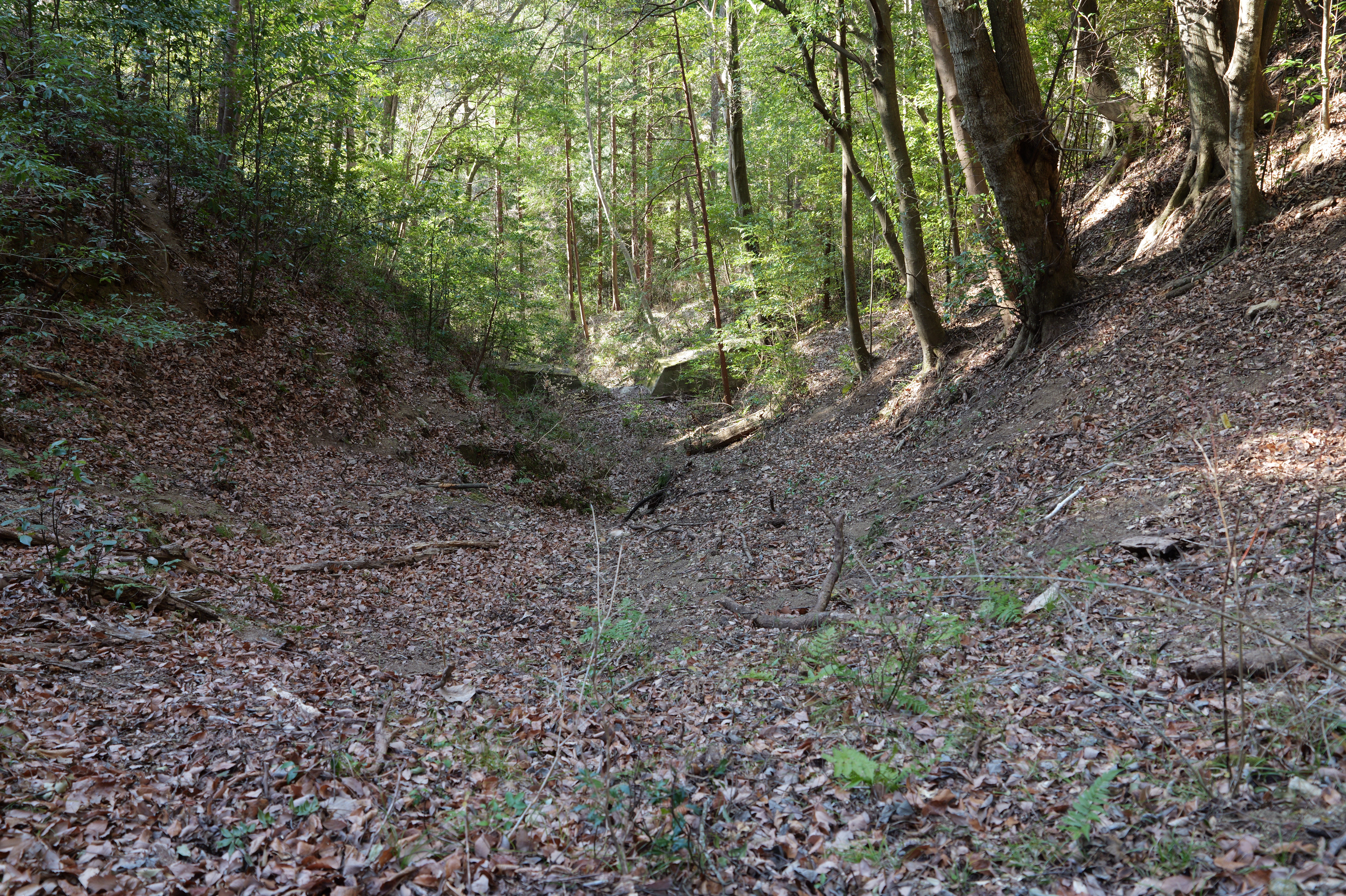 天守を出て西側の新裏坂から天守北側の埋門への小道があるようなので行ってみましたが通行禁止でした。天守曲輪から今度は裏坂で下ります。裏坂の途中には銀名水と呼ばれる井戸があります。その先ではナニコレ珍百景でMV珍に選ばれたという、階段をよじ登っている人型のように見える根っこを発見。確かに見えます。