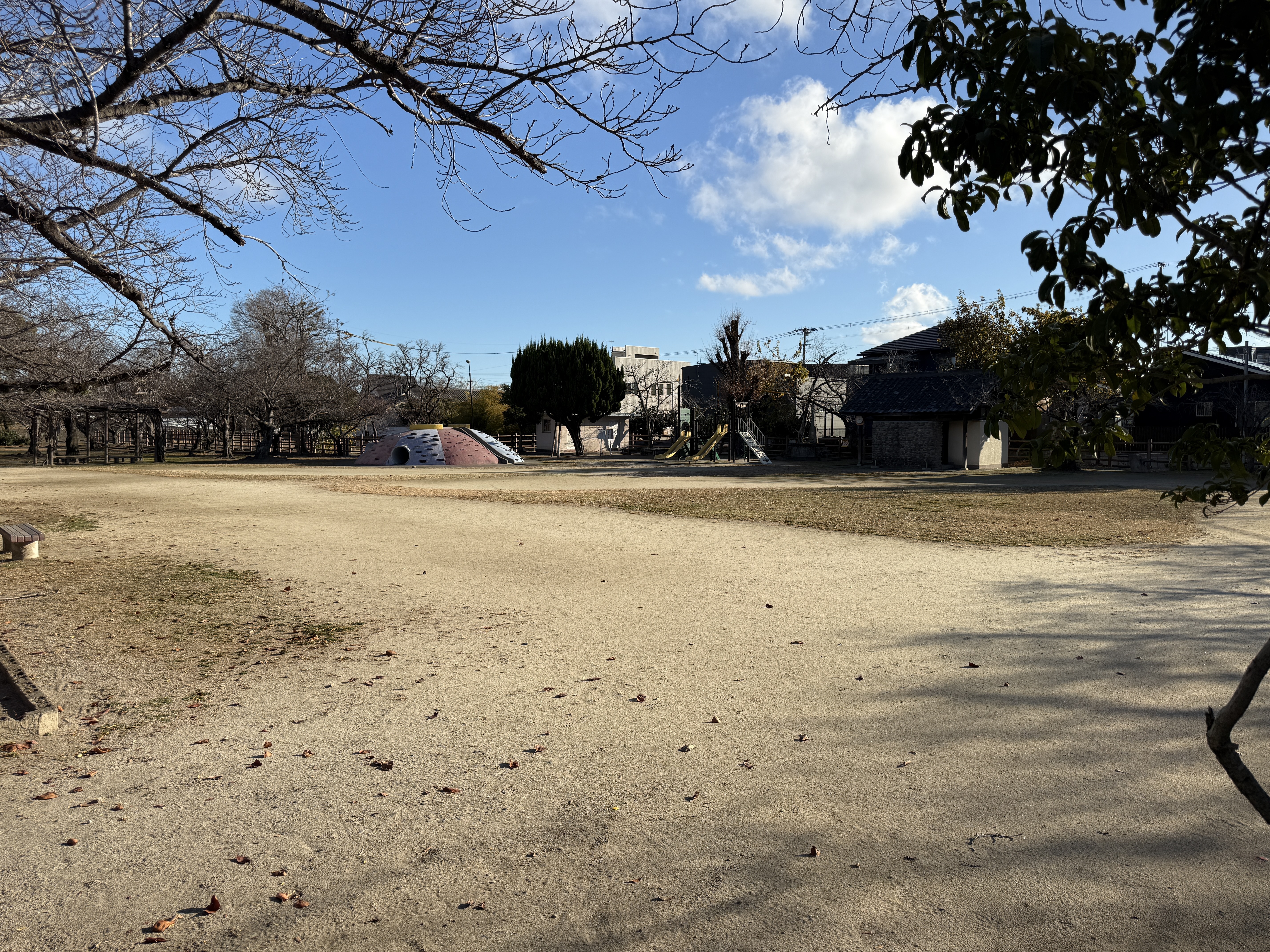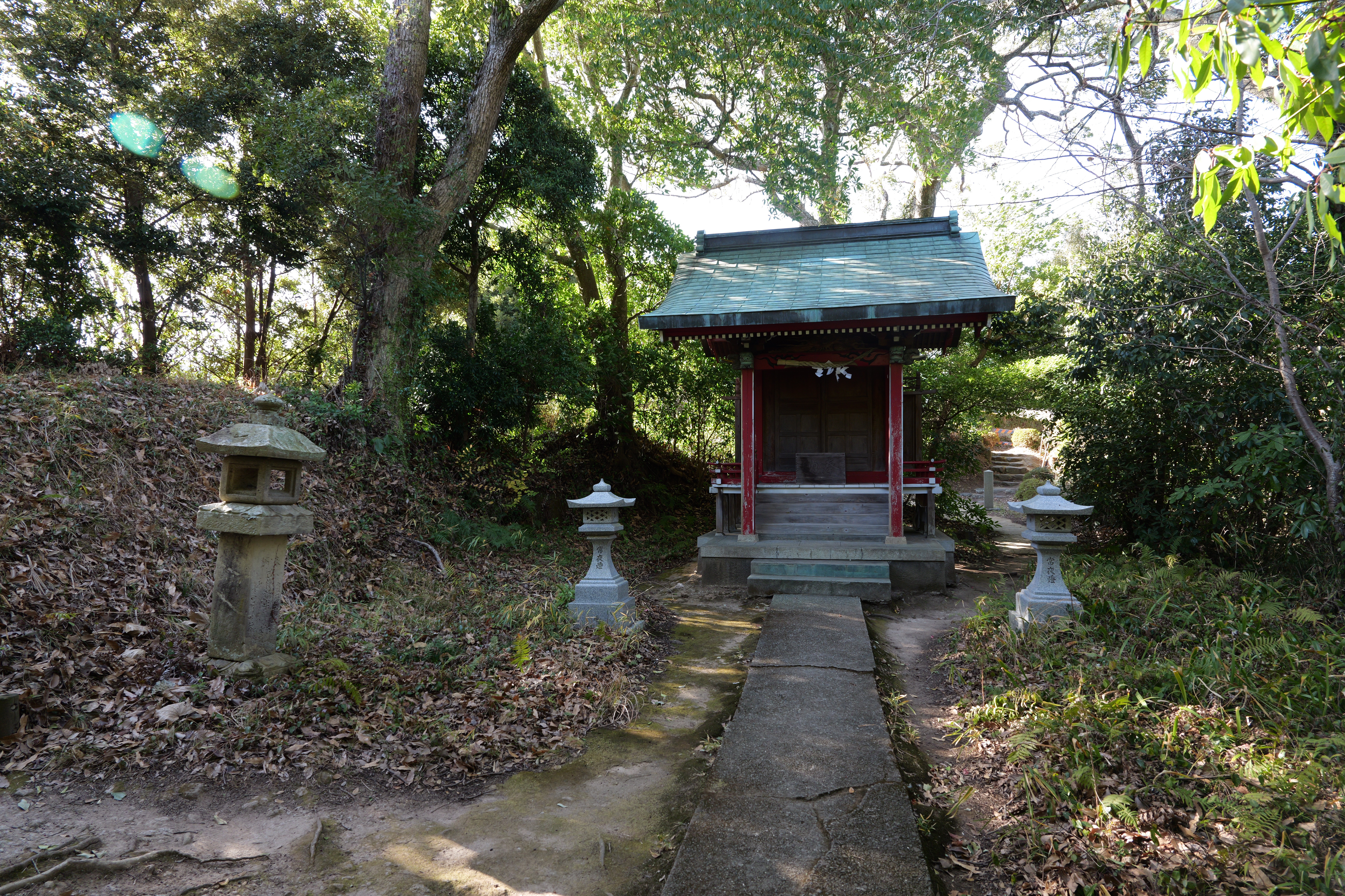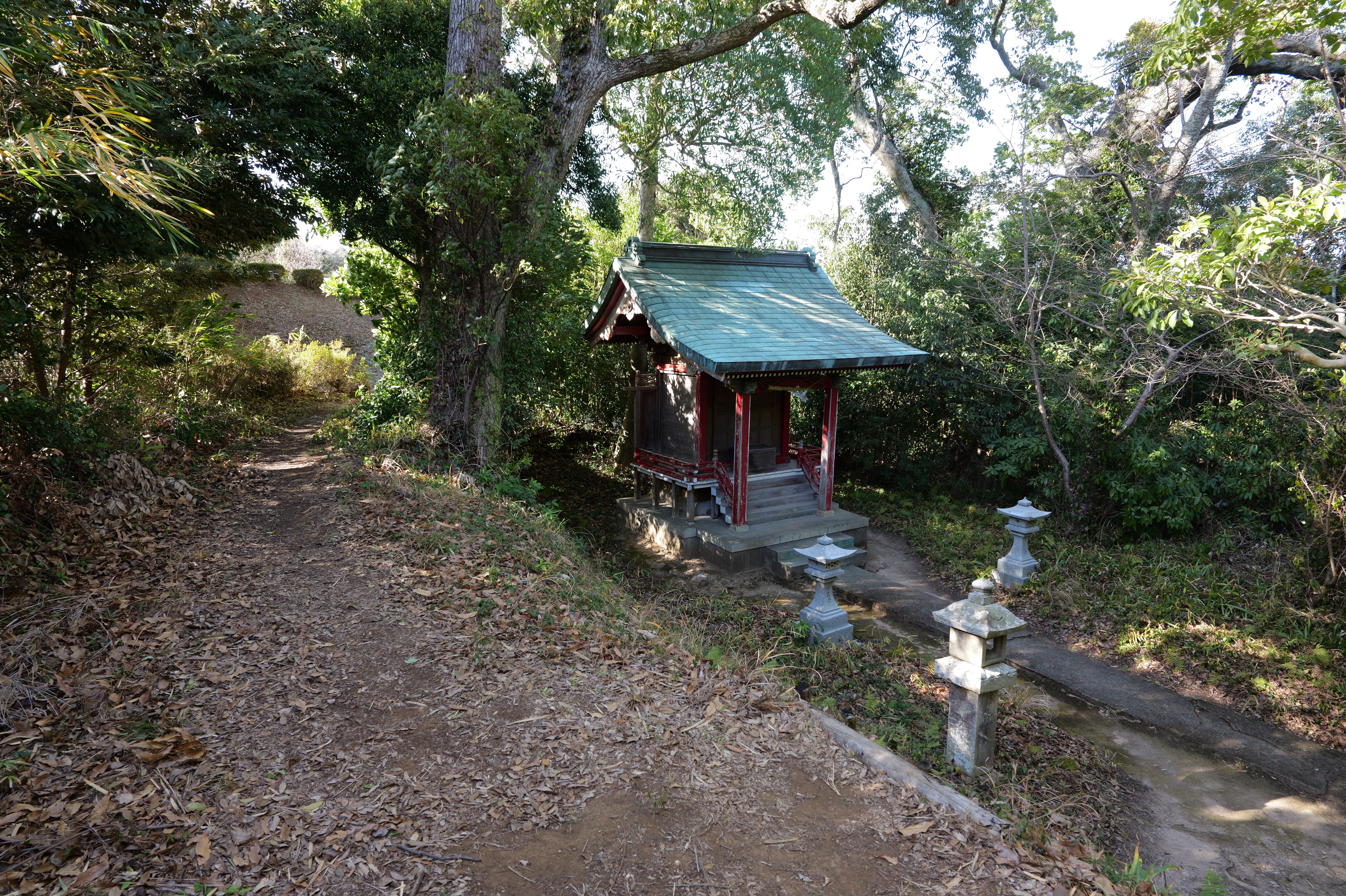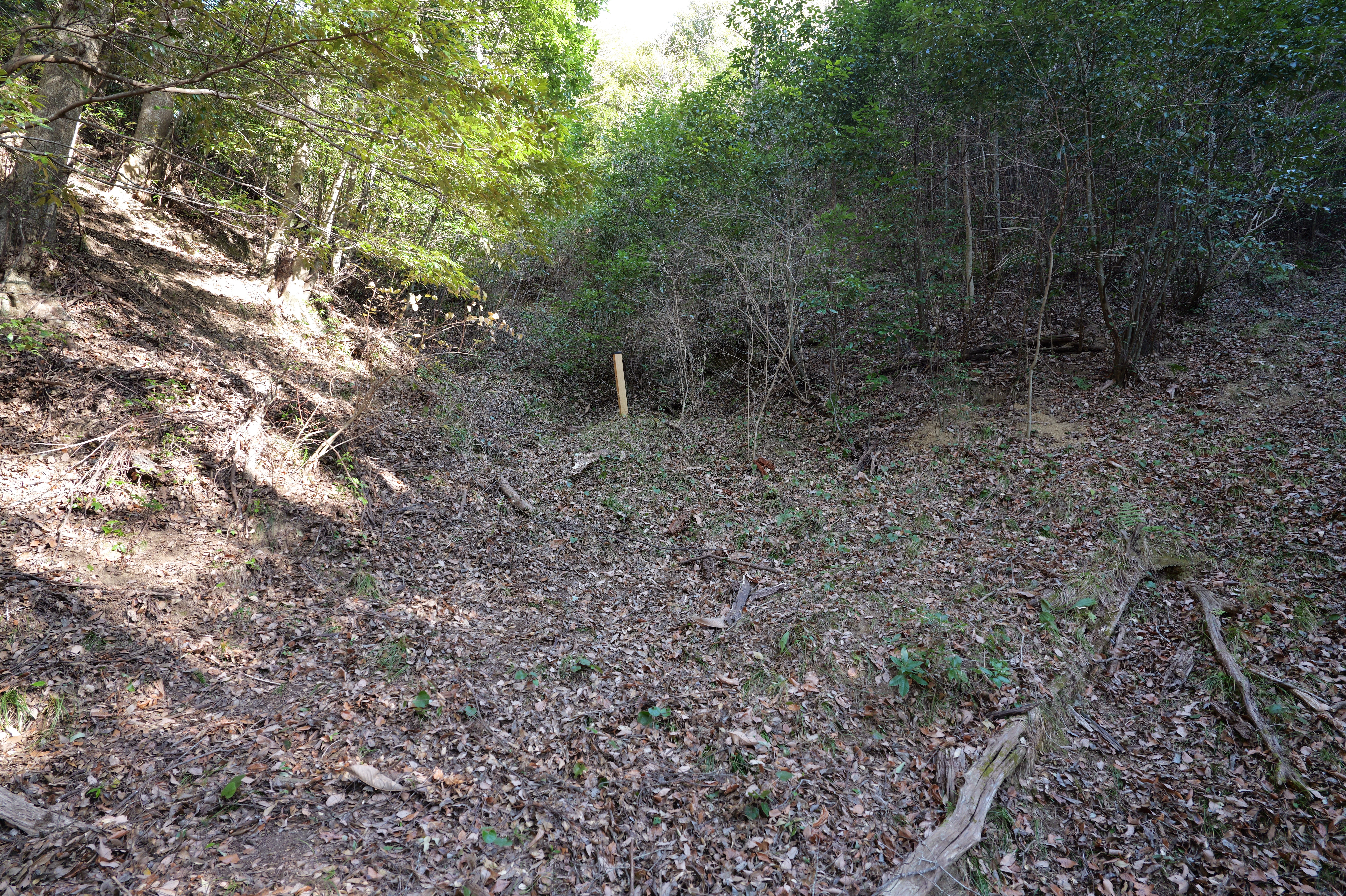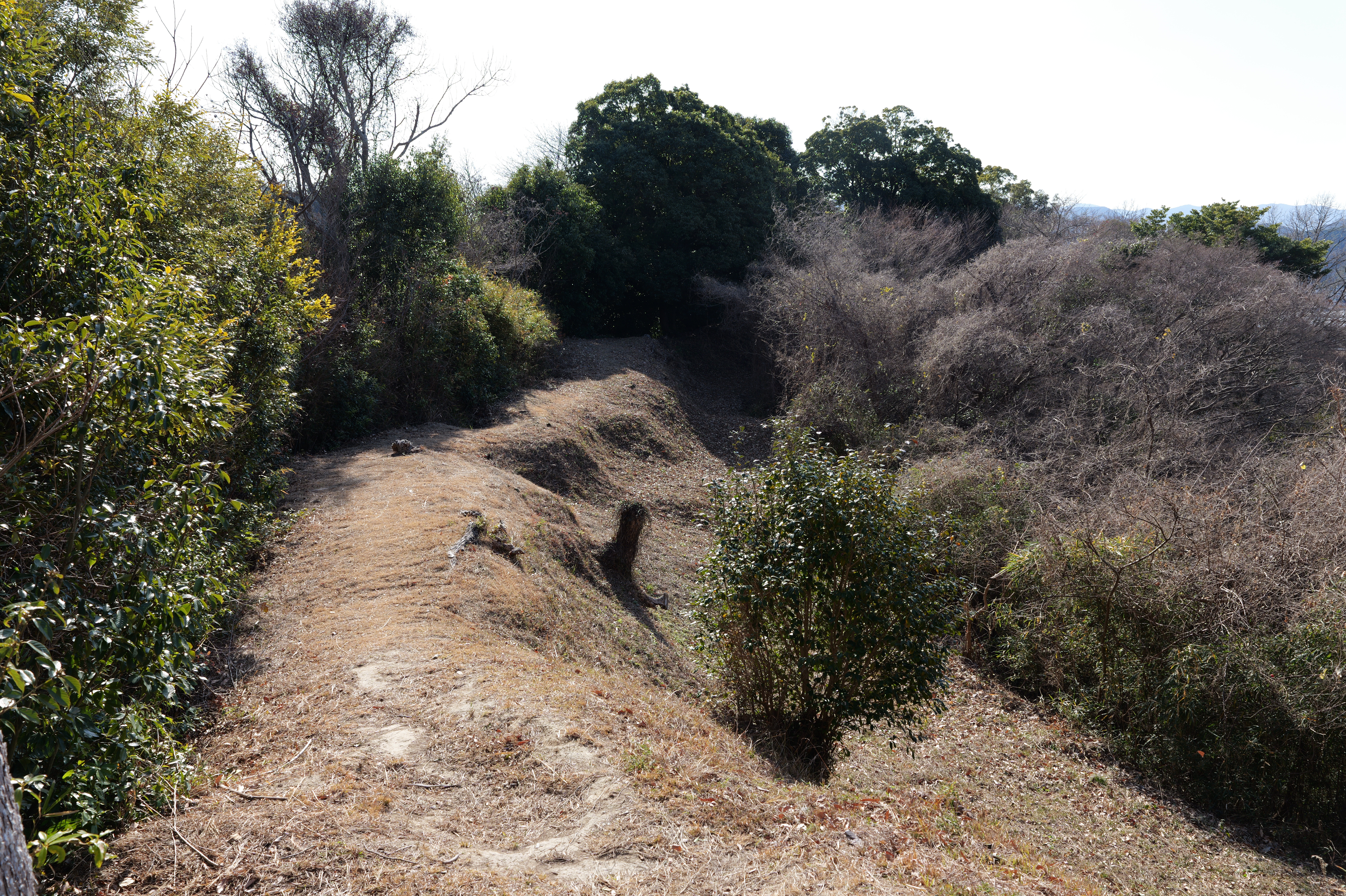 二の丸に下りて西方向。二の丸南西隅の切手門跡から山吹渓、西之丸庭園入口、鶴の渓と進み、奥階段を登ると砂の丸です。砂の丸は勘定御門から不明門まで続いています。砂の丸を南に進んでいくと途中右側に追廻門があります。西から和歌山城に入る高麗門形式の朱色に塗られた門です。戻って砂の丸をさらに南へ進むと現在は護国神社があり、新裏坂登り口、その先は駐車場となっていて、駐車場入口が不明門跡となっています。不明門跡を出て左側は南堀です。駐車場の北東奥部分から南の丸へ続きます。南の丸は和歌山城動物園になっています。