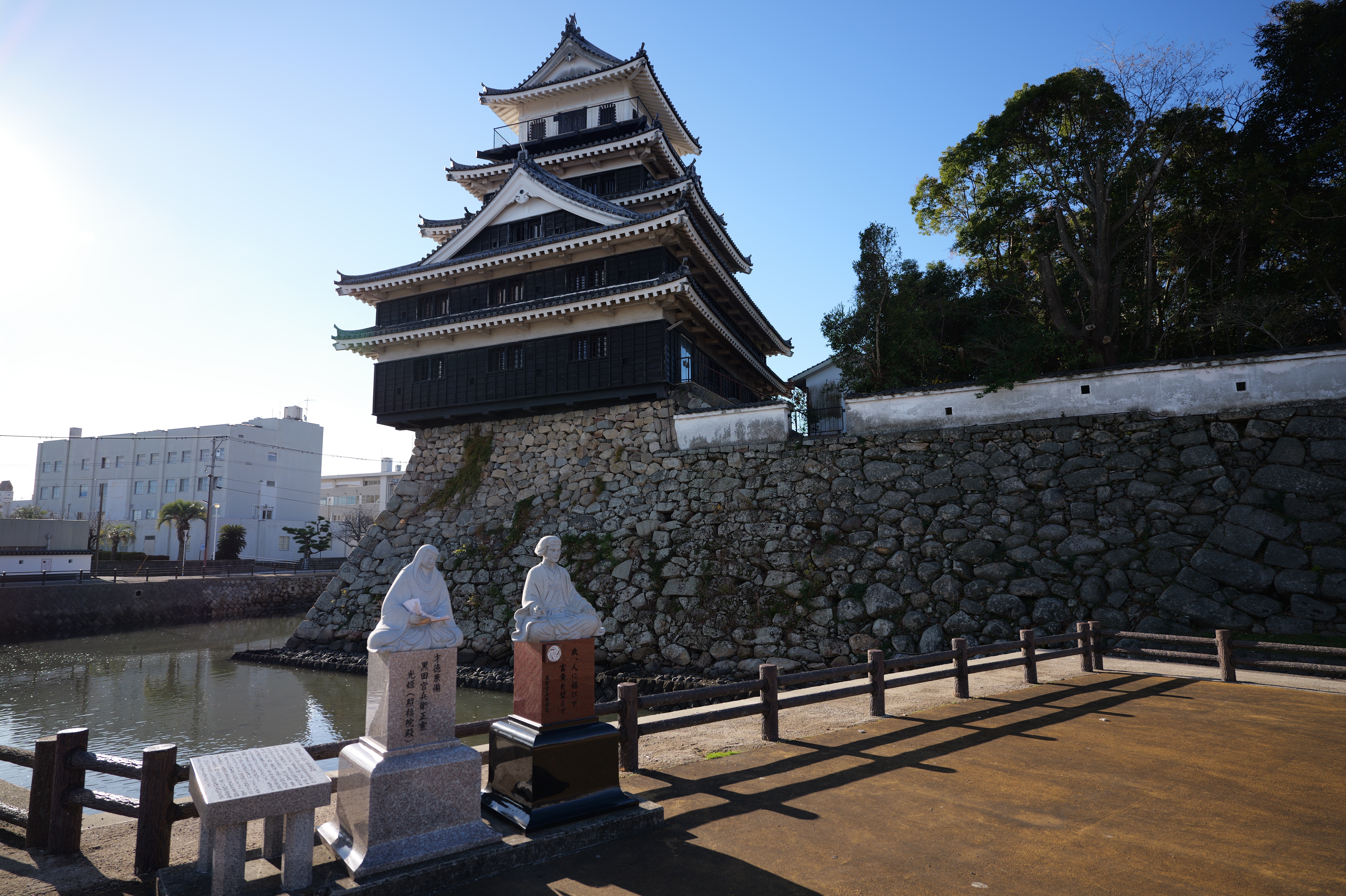 天守曲輪に入ると、手前から大天守、多聞、天守二の門、二の門櫓が並びます。忍者が写真を撮ってくれました。とてもいいサービスですね。一人旅だととても助かります。