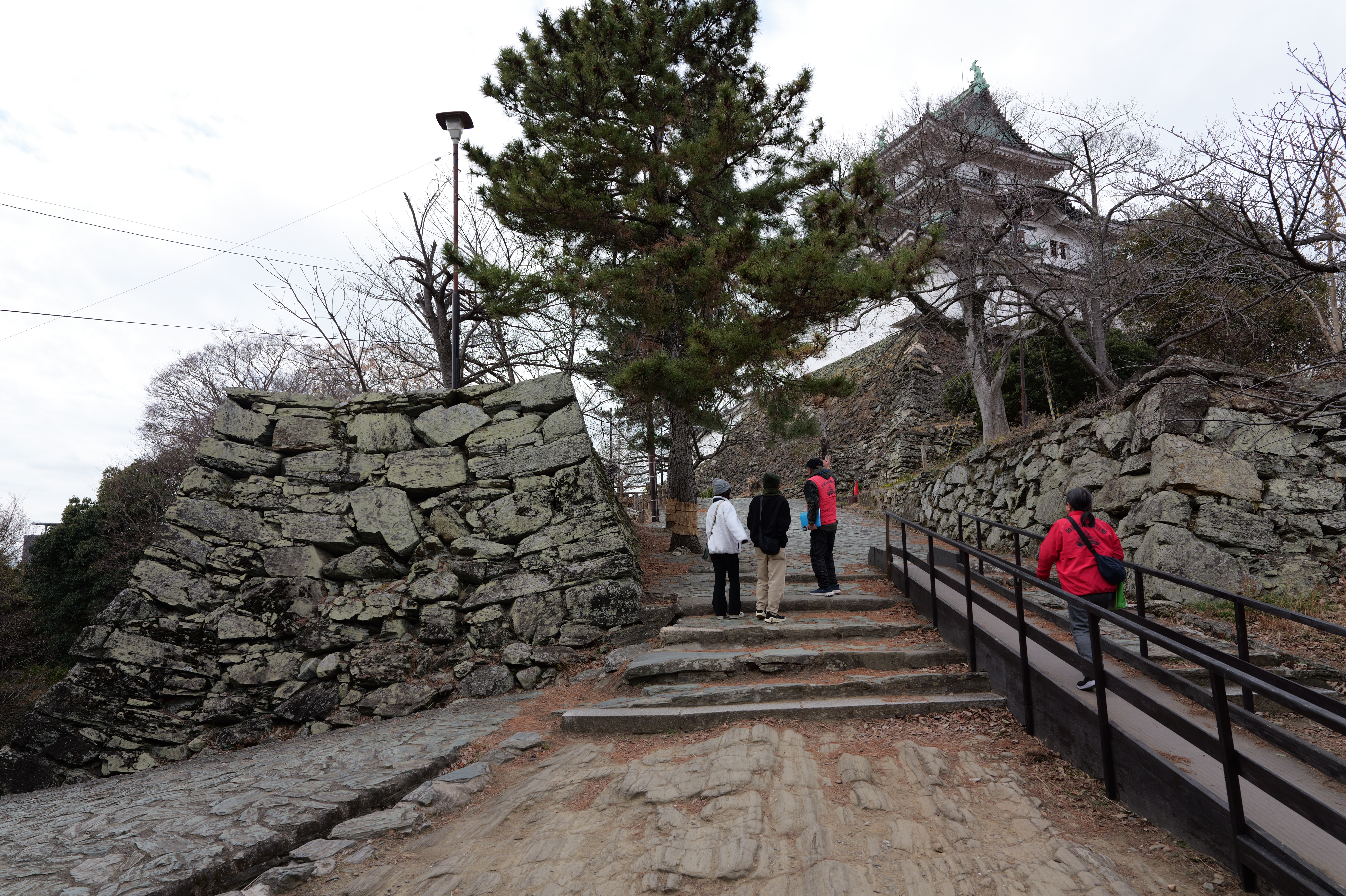 一中門跡に戻り、ここから岡中門までは蔵の丸で、東側の堀沿いに雁木が続いています。岡中門手前右側の表坂から天守方面へ向かいます。