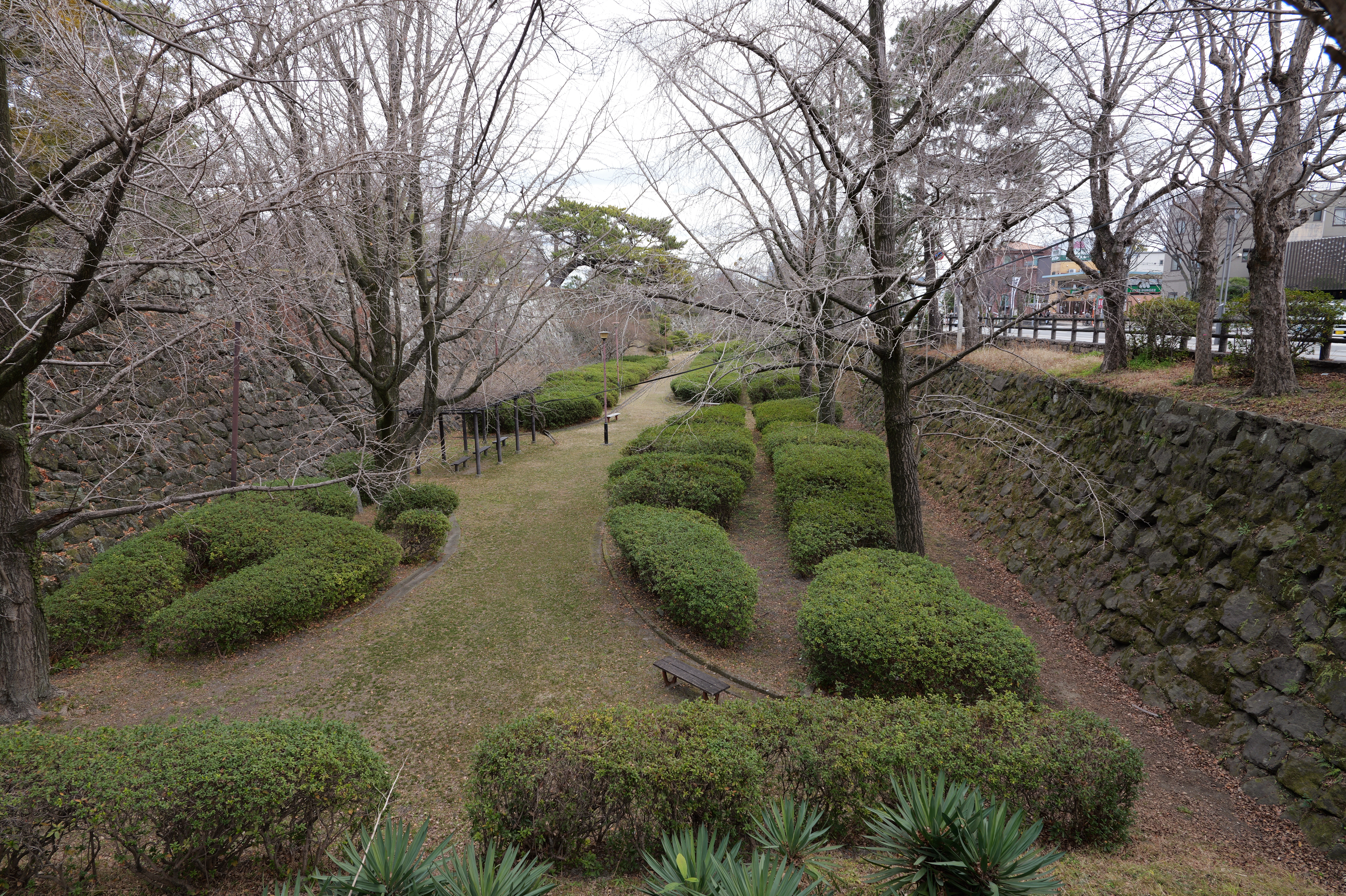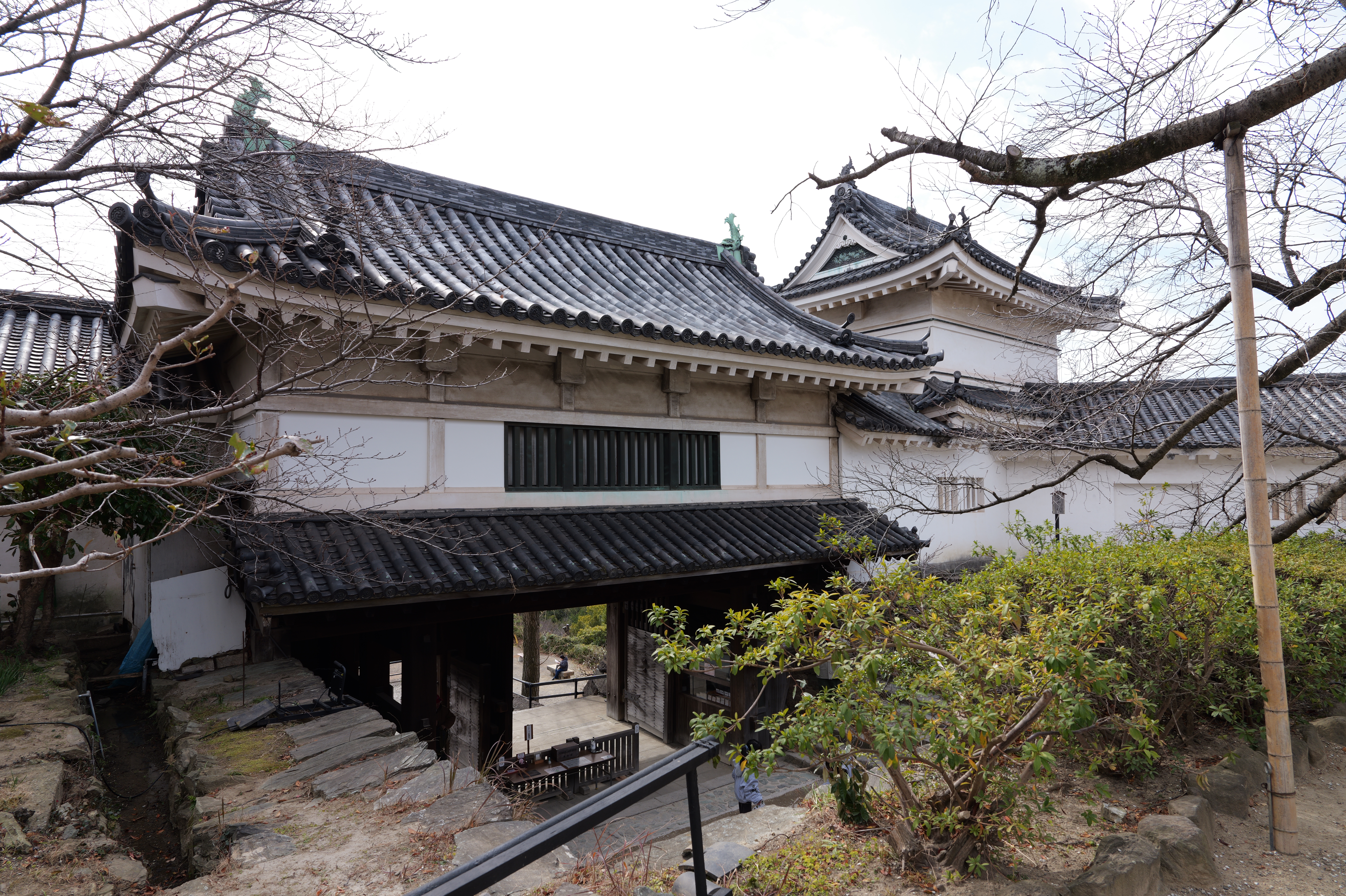 梅林の先には重要文化財の南中仕切門があり、内堀の北側にある北中仕切門と対になっています。門をくぐって右側は桜の園ですが、春には桜が咲いてきれいなんでしょうね。