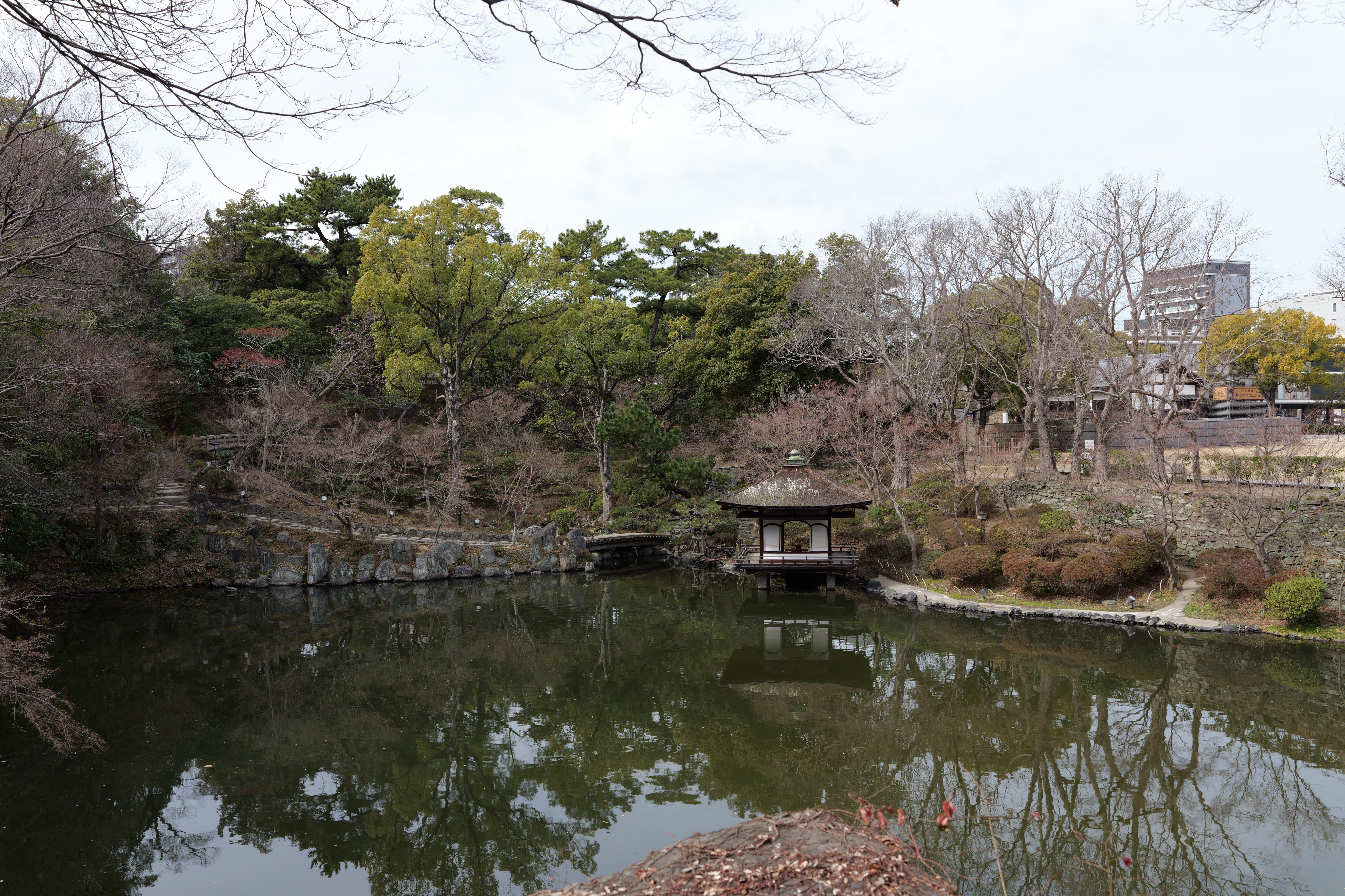 続いて小倉城庭園へ。小倉城庭園は池泉回遊式庭園で、御下屋敷跡を復元した大名庭園と、江戸時代の典型的な武家書院が再現されています。ここから見る天守は絵になりますね。