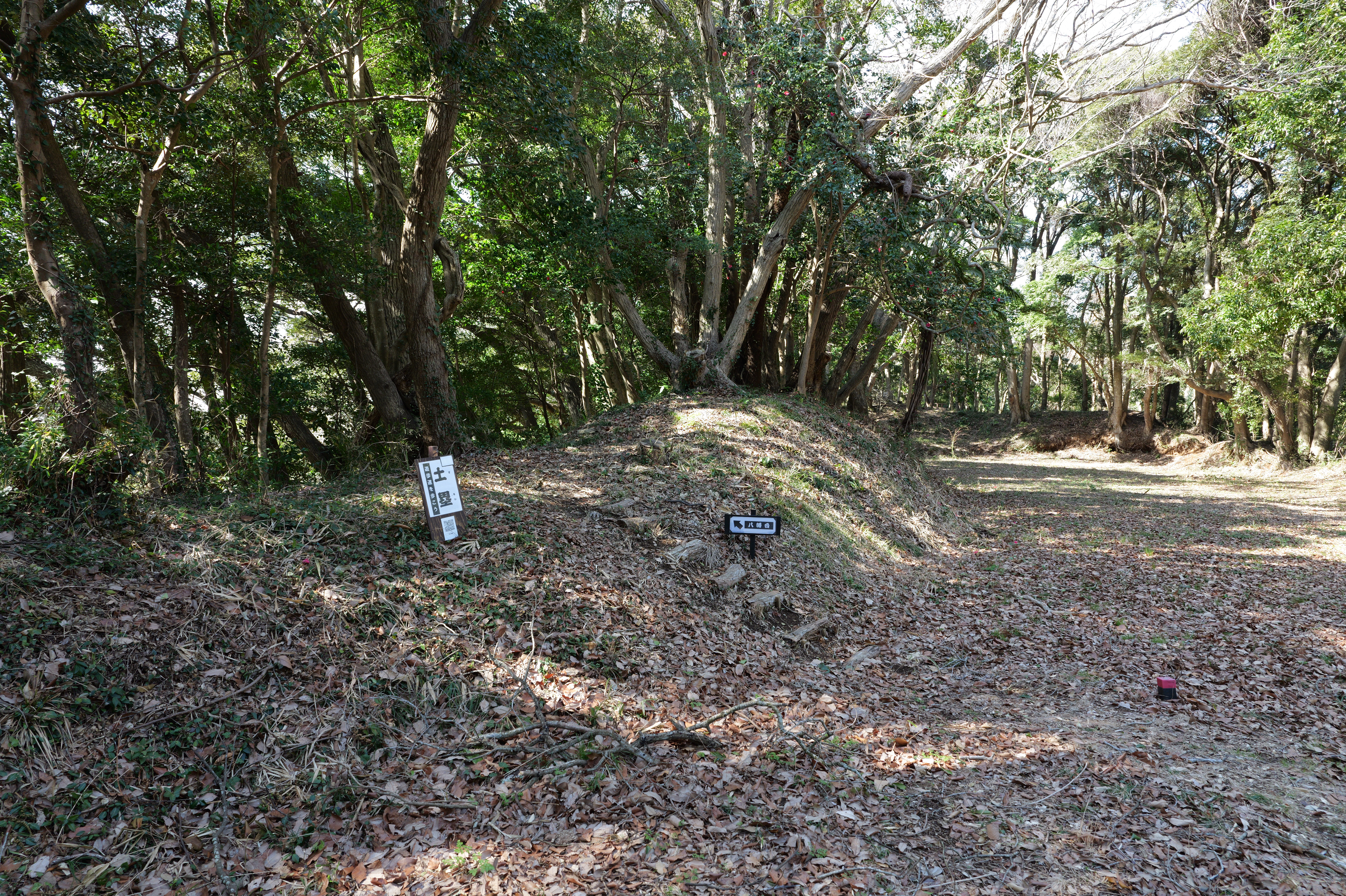 東二の曲輪 ・馬出曲輪間)があります。東二の曲輪に入って左側は土塁が続いています。