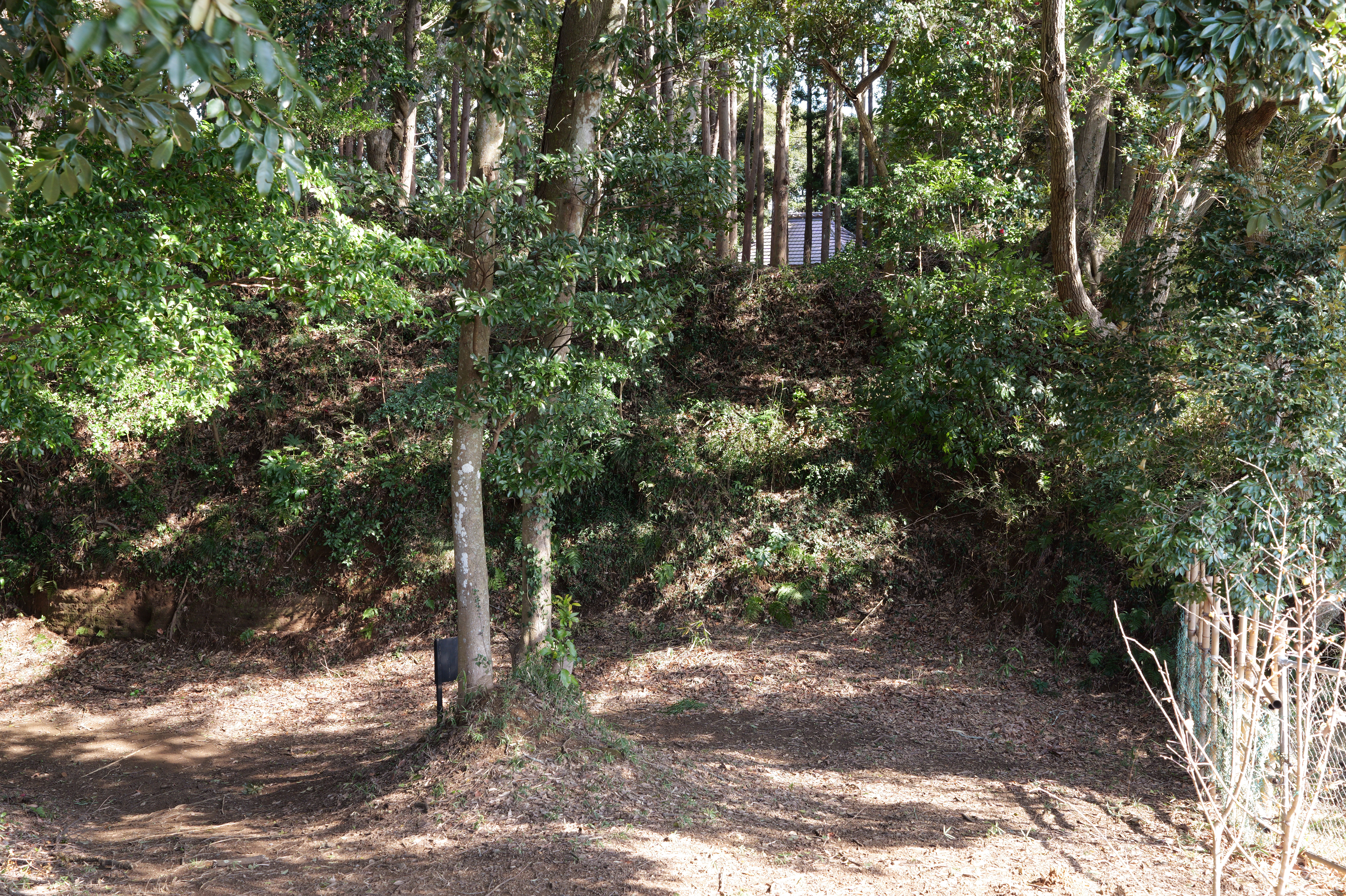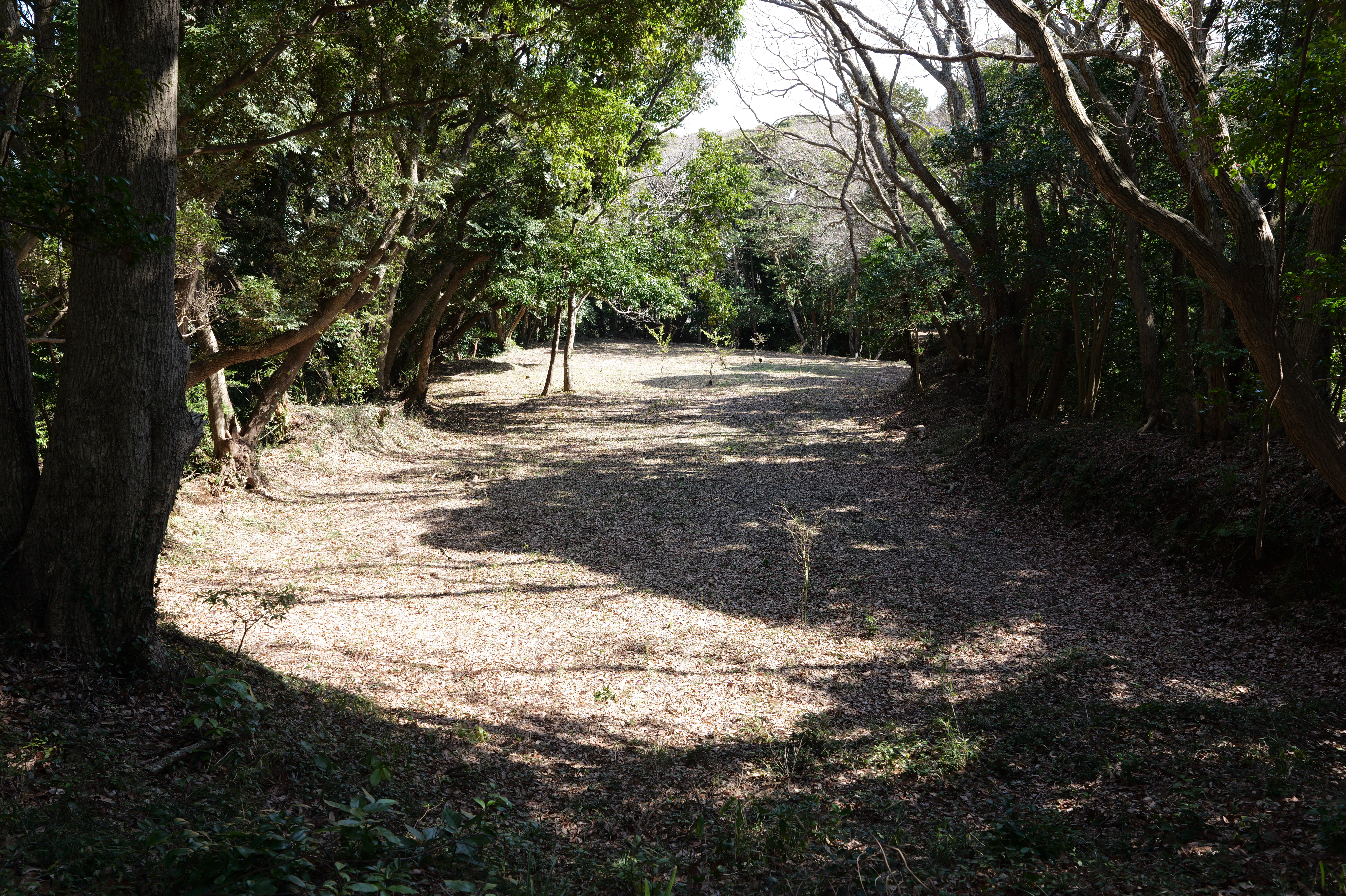 右手前方の水の手曲輪手前を左に折れると東二の曲輪と空堀(
