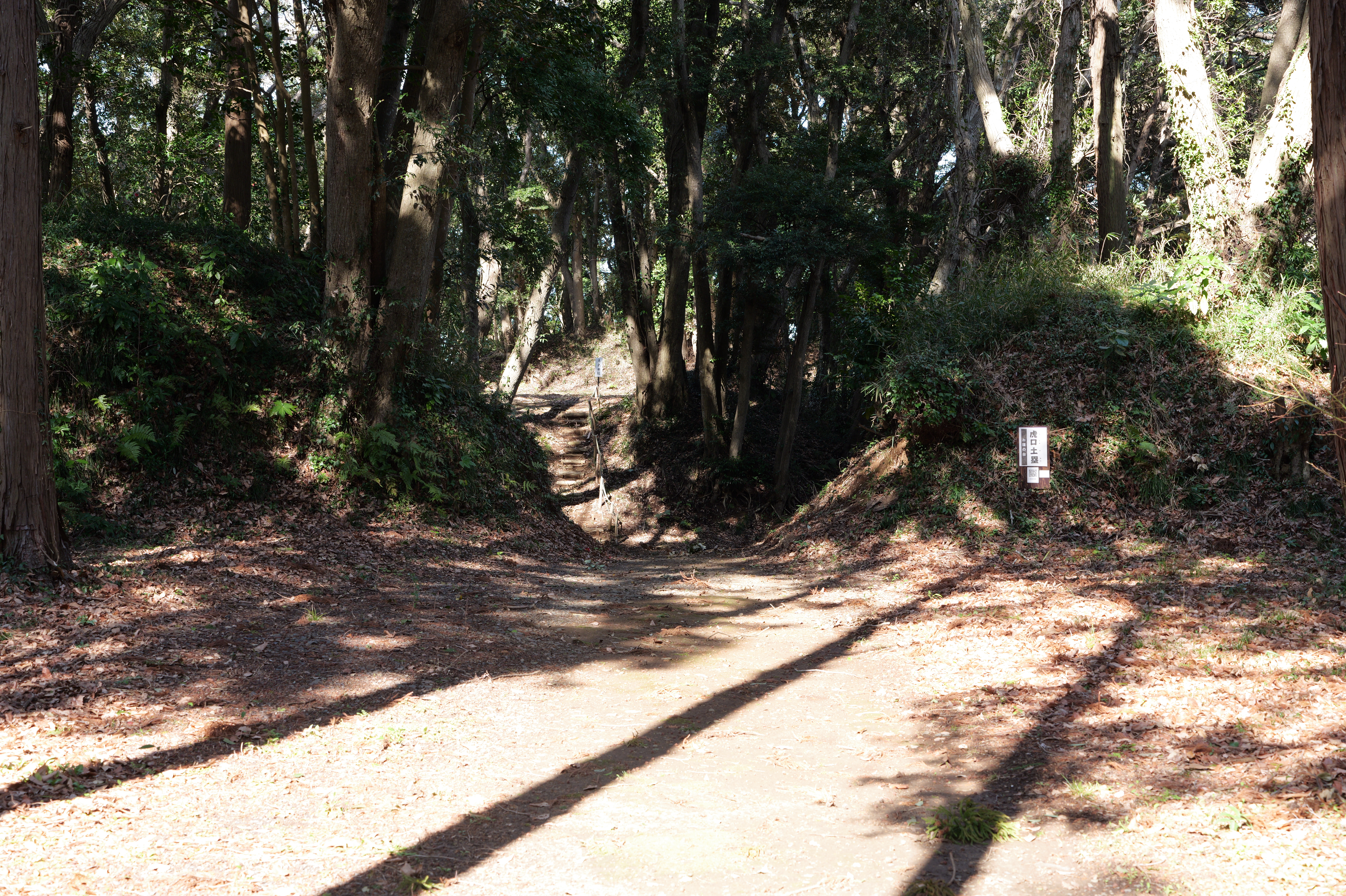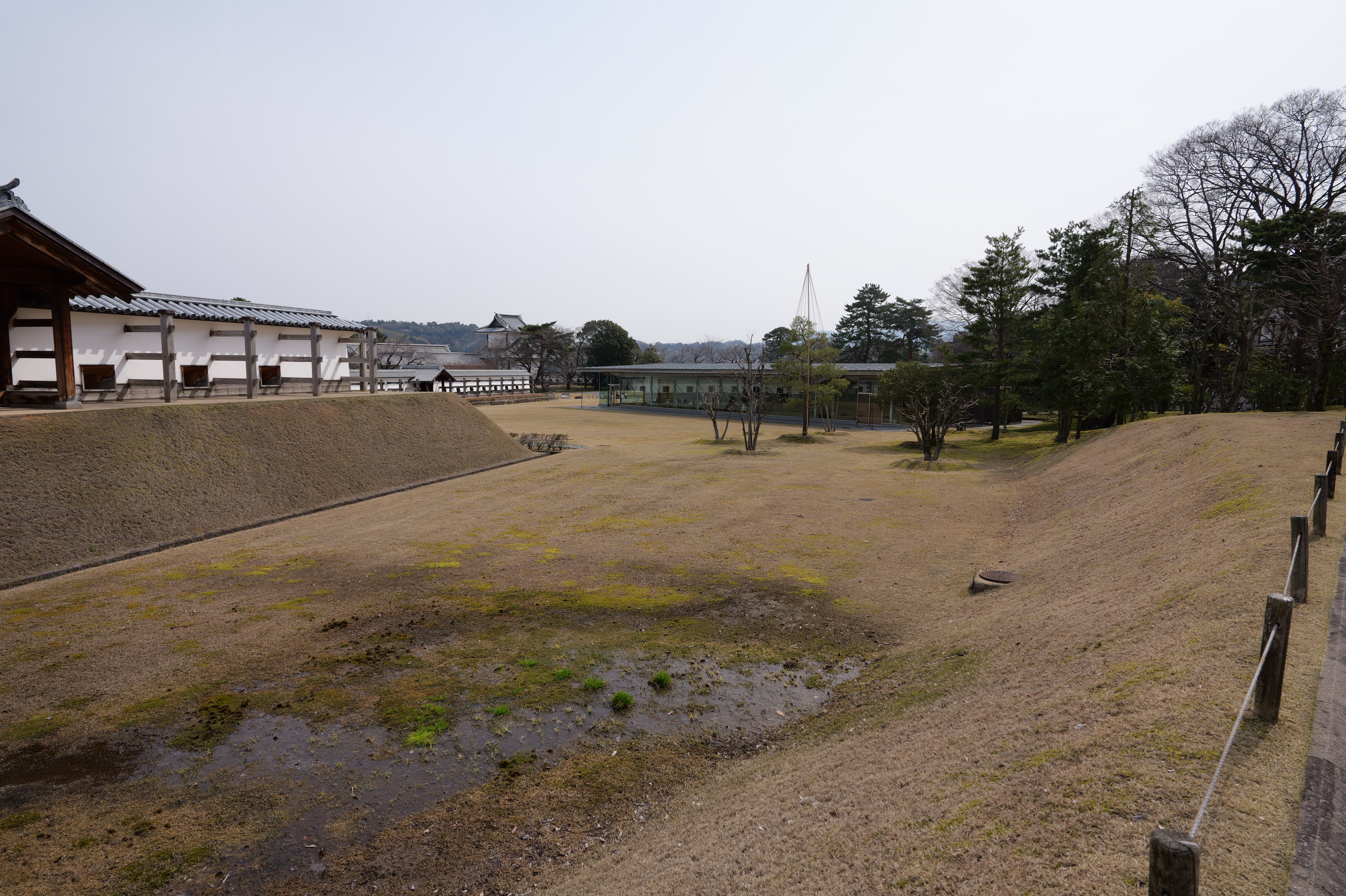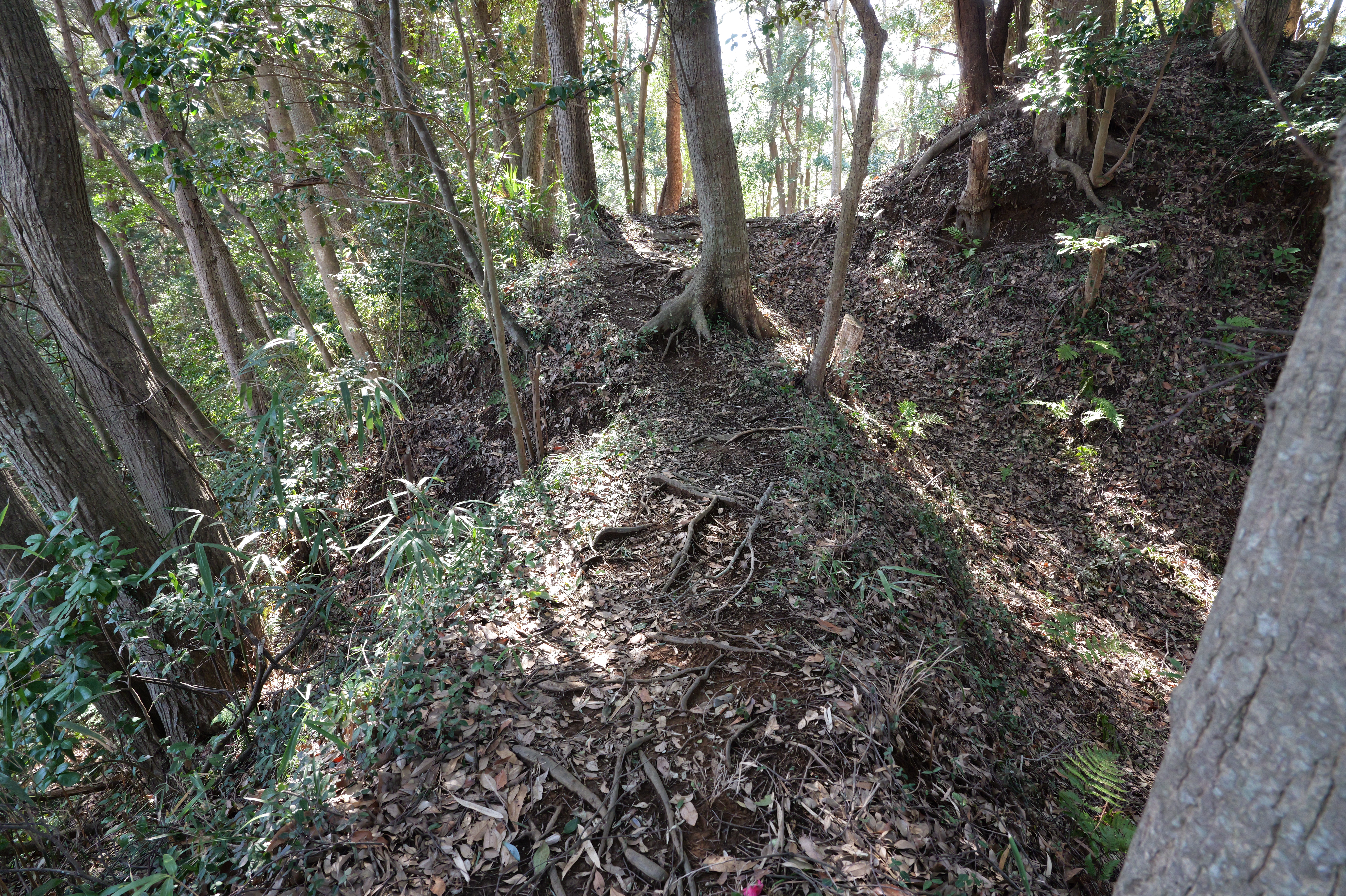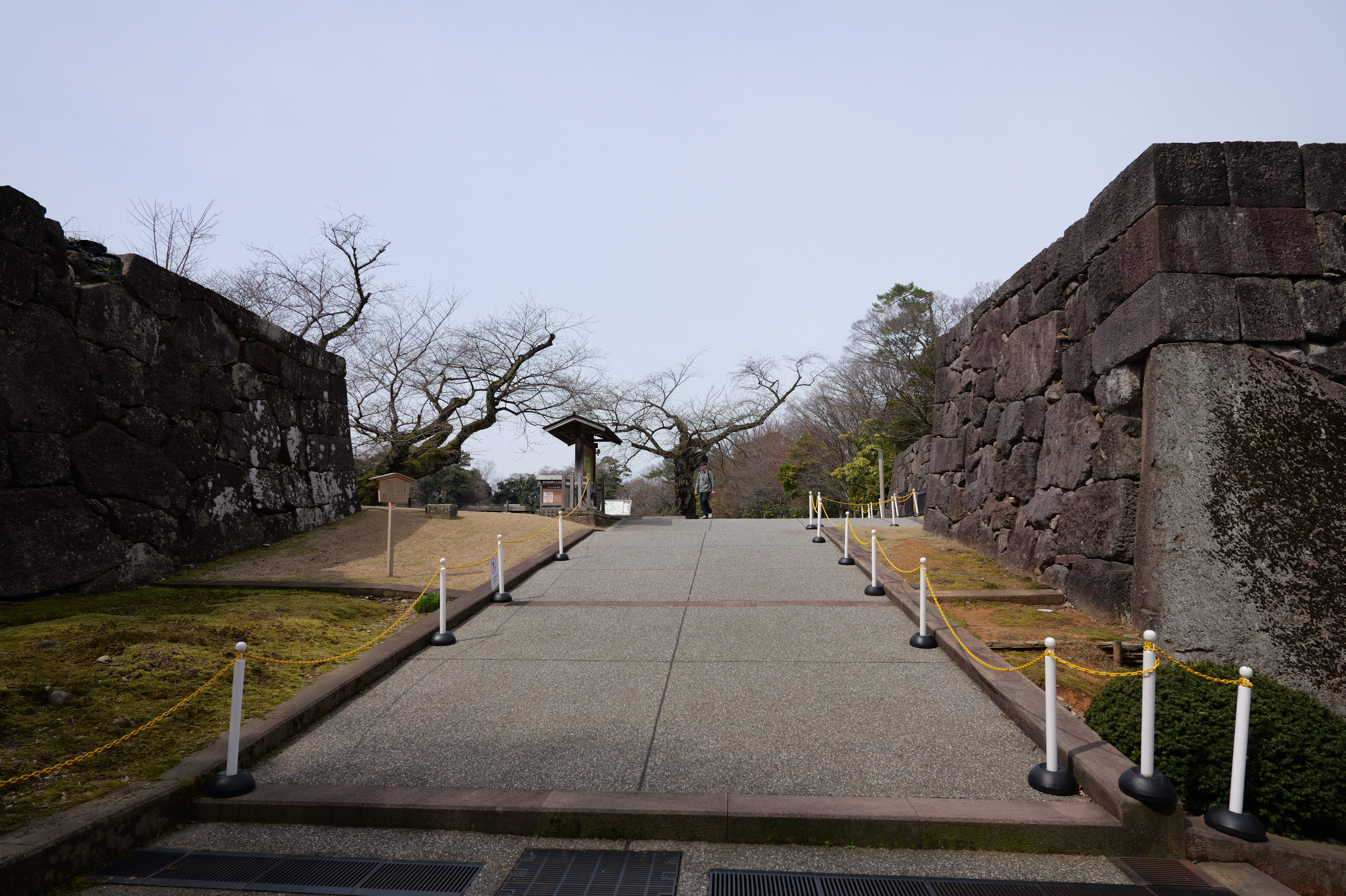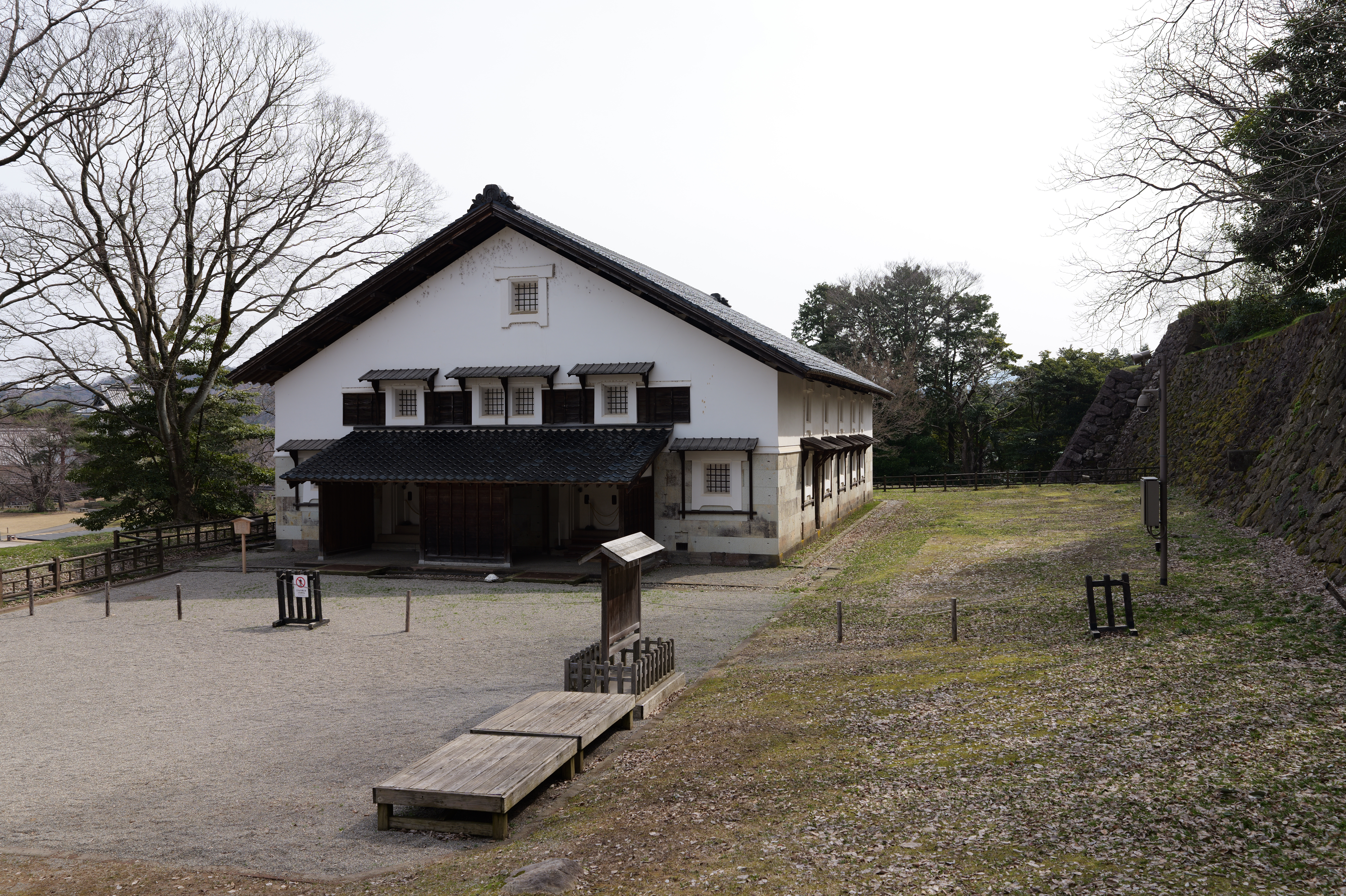 極楽橋から本丸の方へ向かいます。極楽橋を渡ると本丸附段で、二の丸との間は深い空堀です。本丸附段には三十間長屋があり、これは二層二階の多聞櫓で、国重要文化財に指定されています。