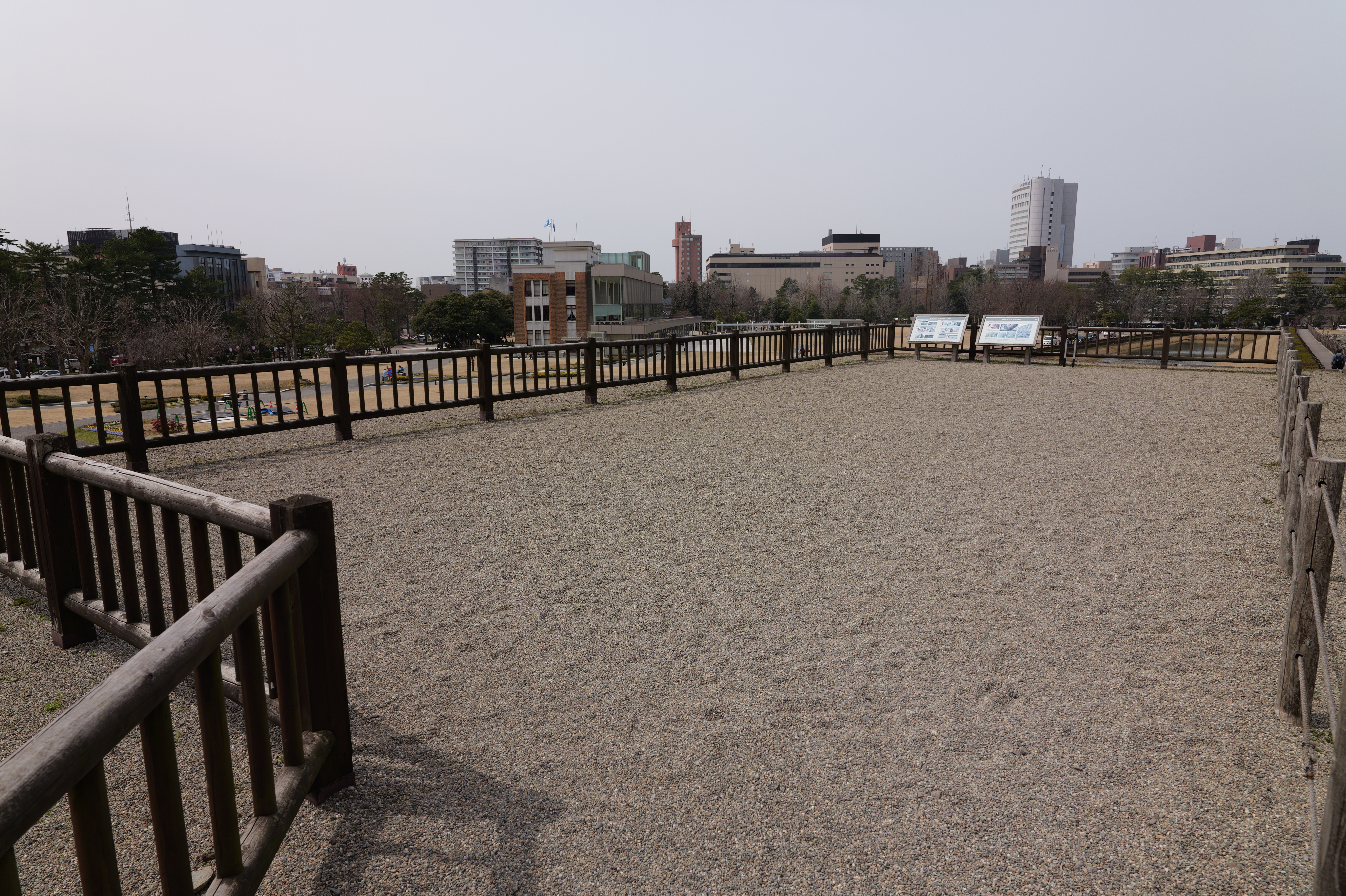 河北門から新丸へ。新丸は広大な広場になっています。東側は藩の重臣の屋敷、西側は作事所や下台所などの役所があったとされます。