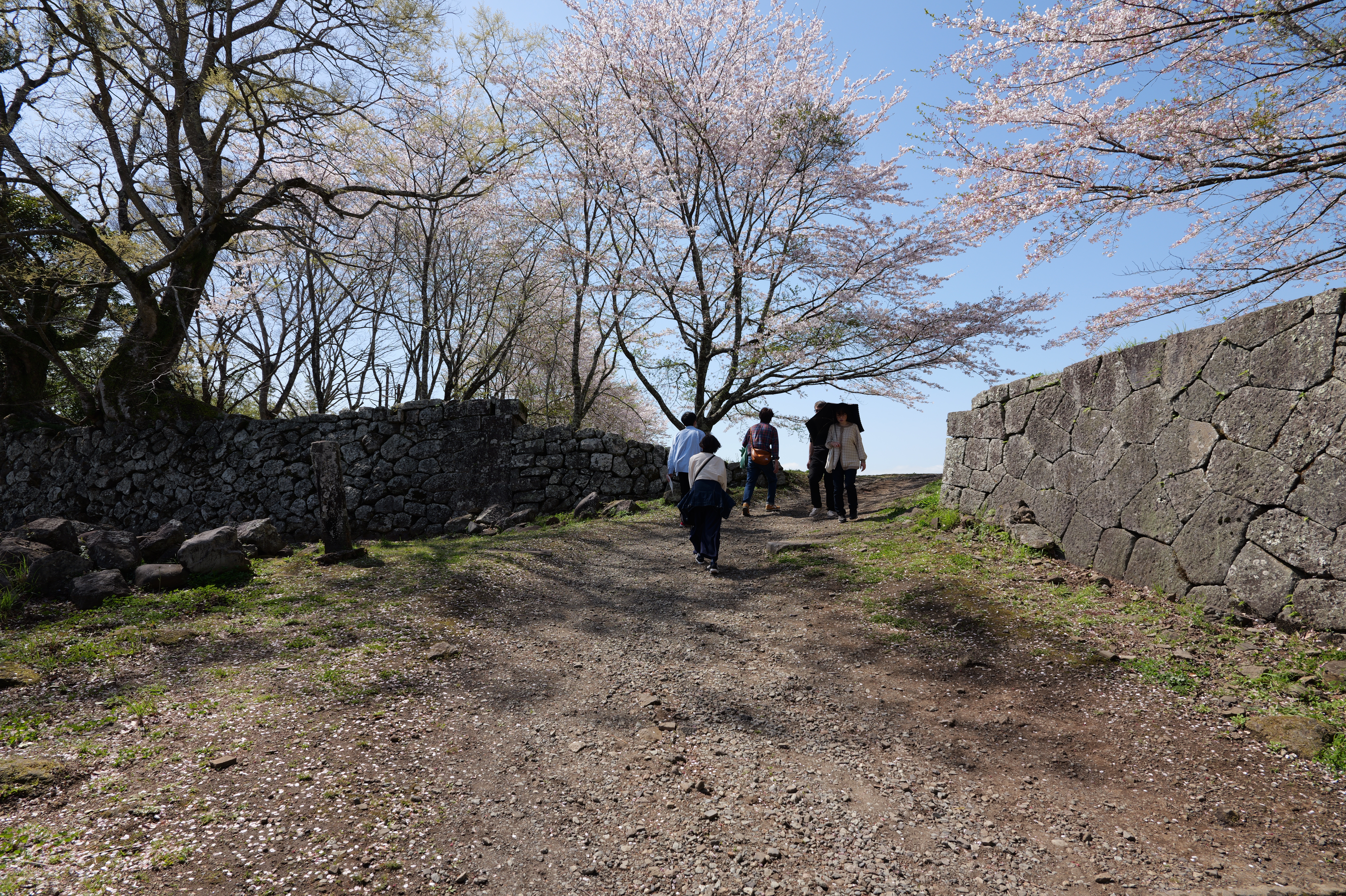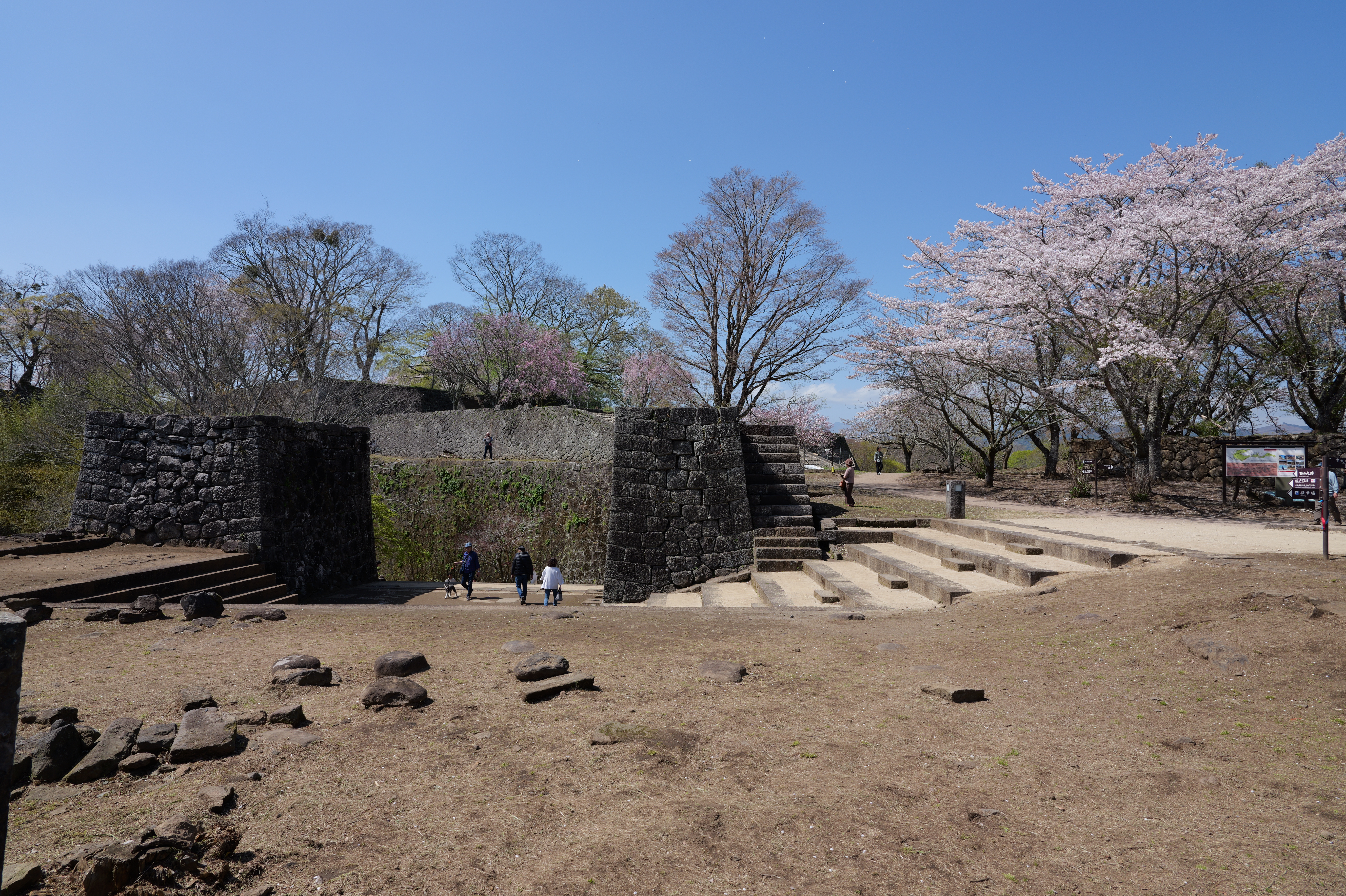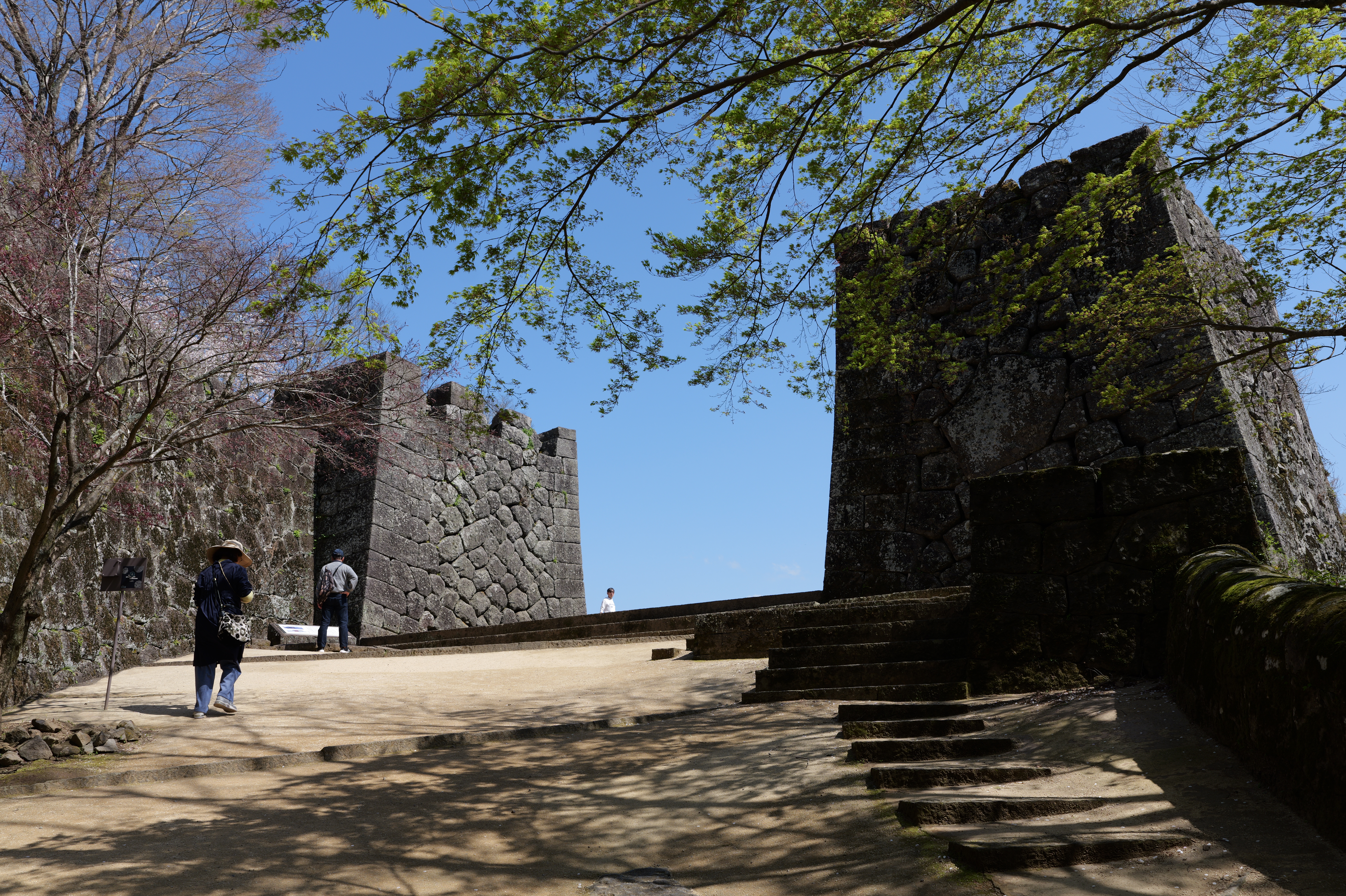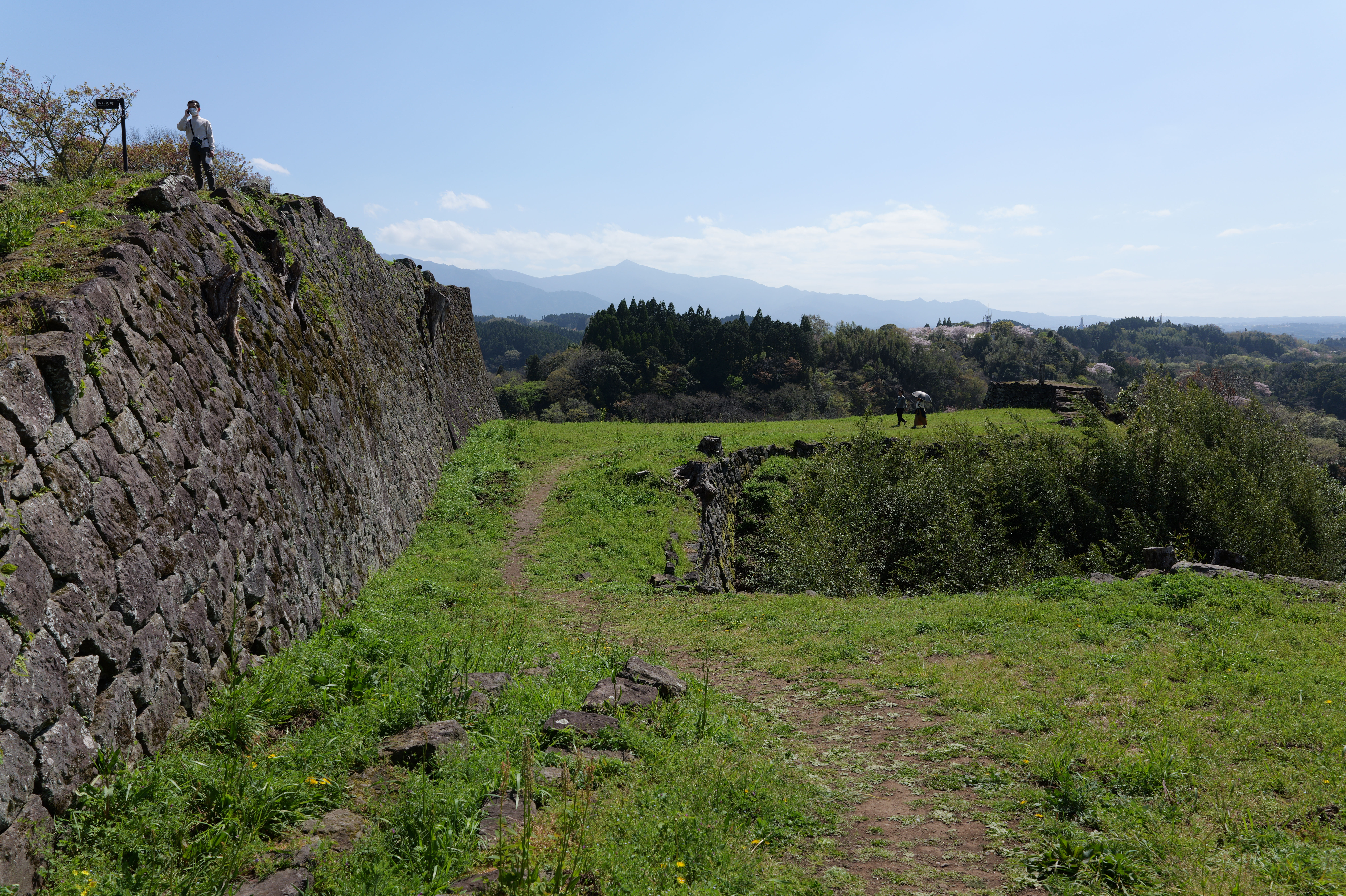 佐土原城の次は岡城です。2時間以上のドライブ後、史跡岡城跡駐車場の直前で駐車待ちの渋滞が。。。そっか、みんな桜を見に来てるのか、仕方ありません。10分くらい待って駐車できたのは13:04ごろでした。