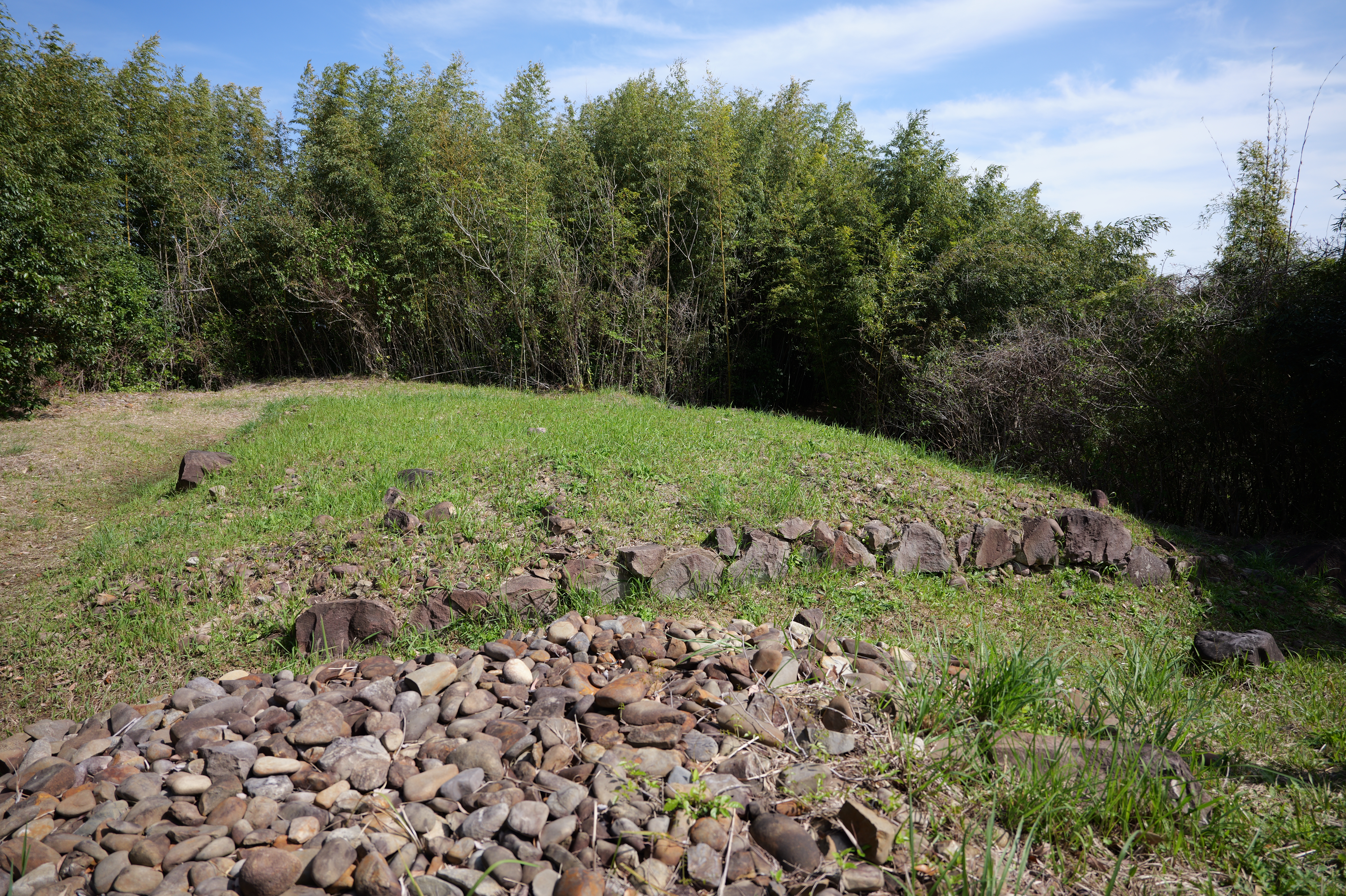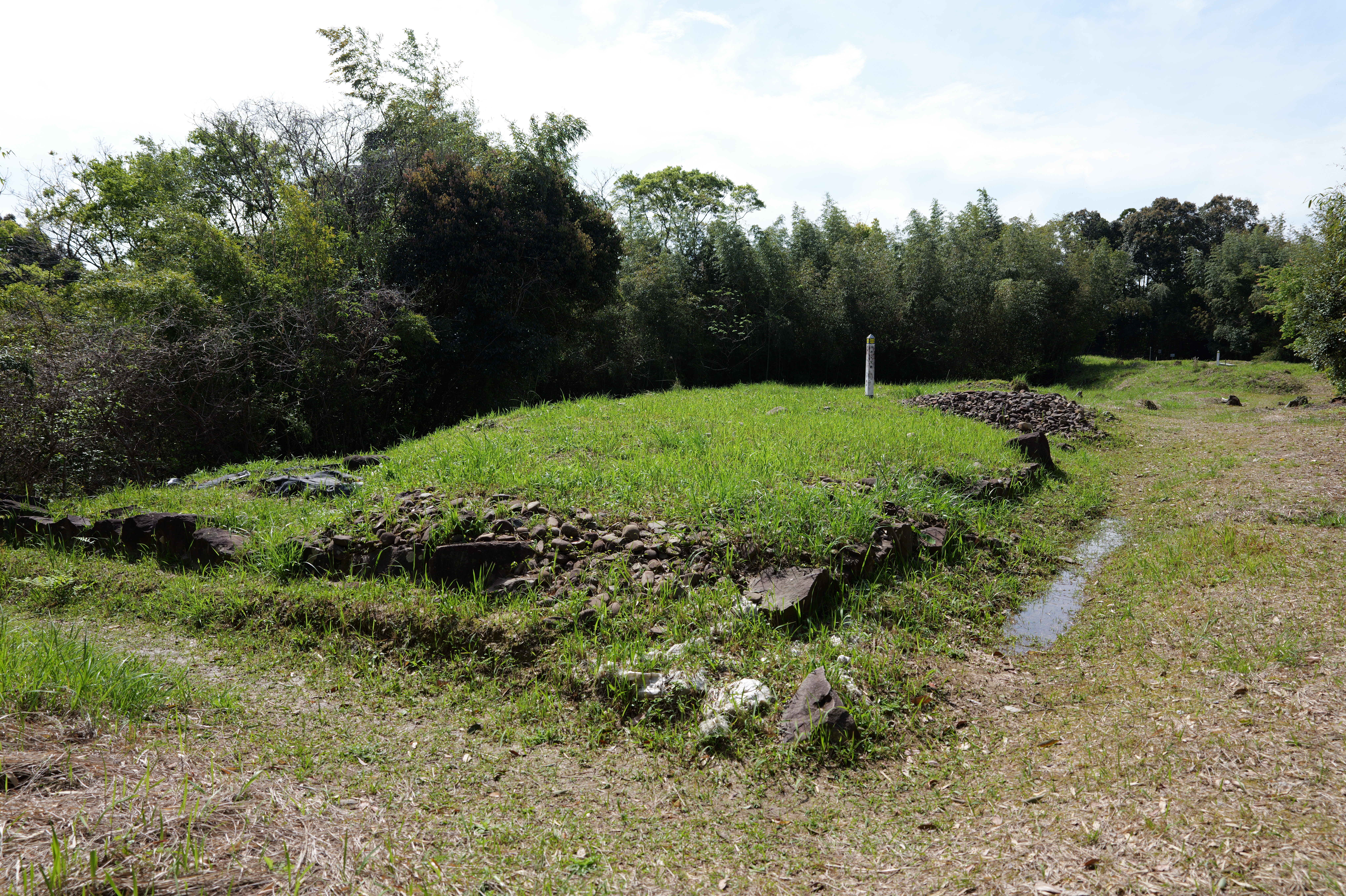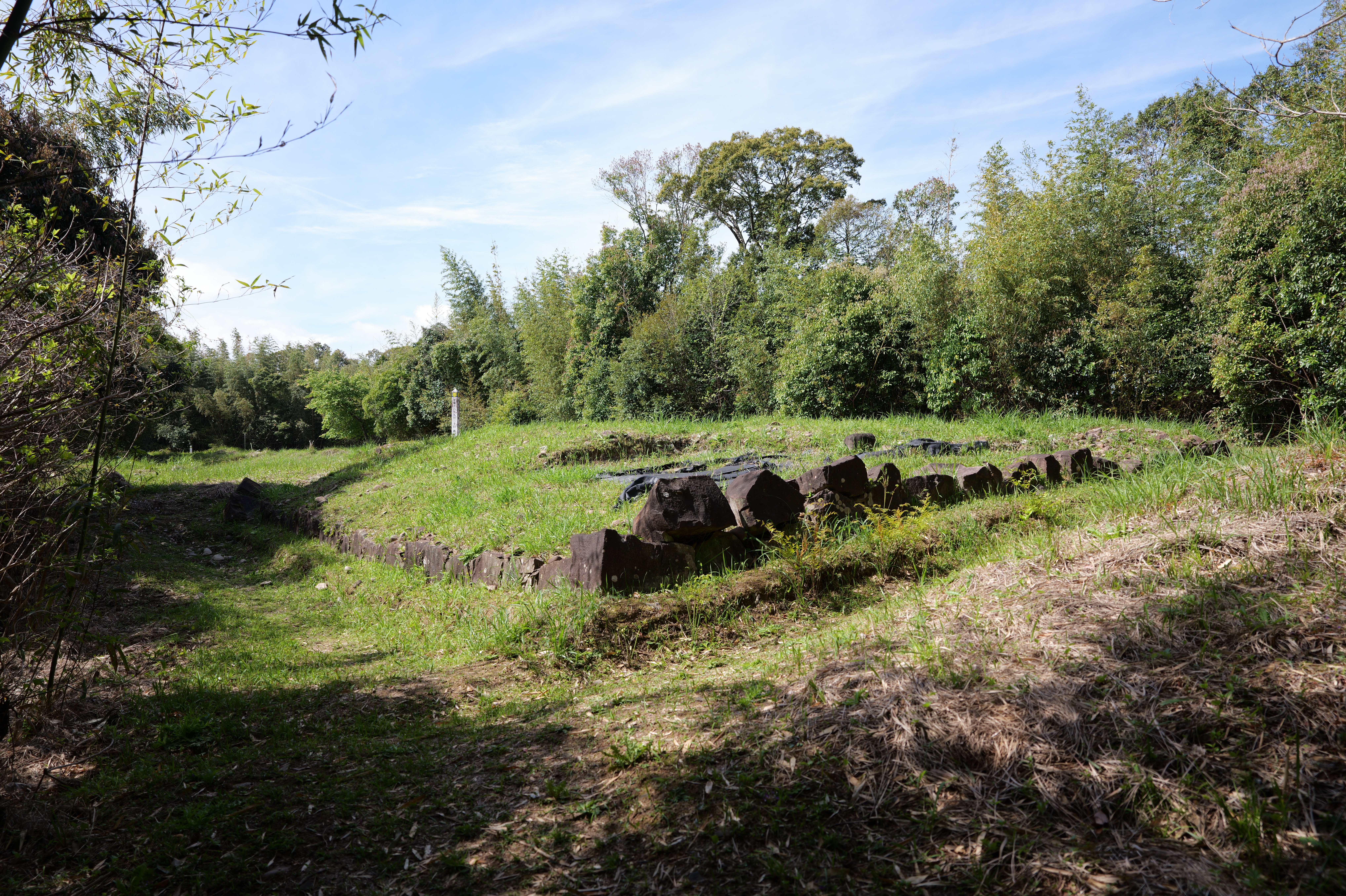 賄方跡を抜けて坂道をあがった上がった先は、家老屋敷の中川但見屋敷跡で、奥一段下がったところに武具方跡、東側一段上がった場所は、御朱印状等公文書の保管をしていた朱印状倉跡です。