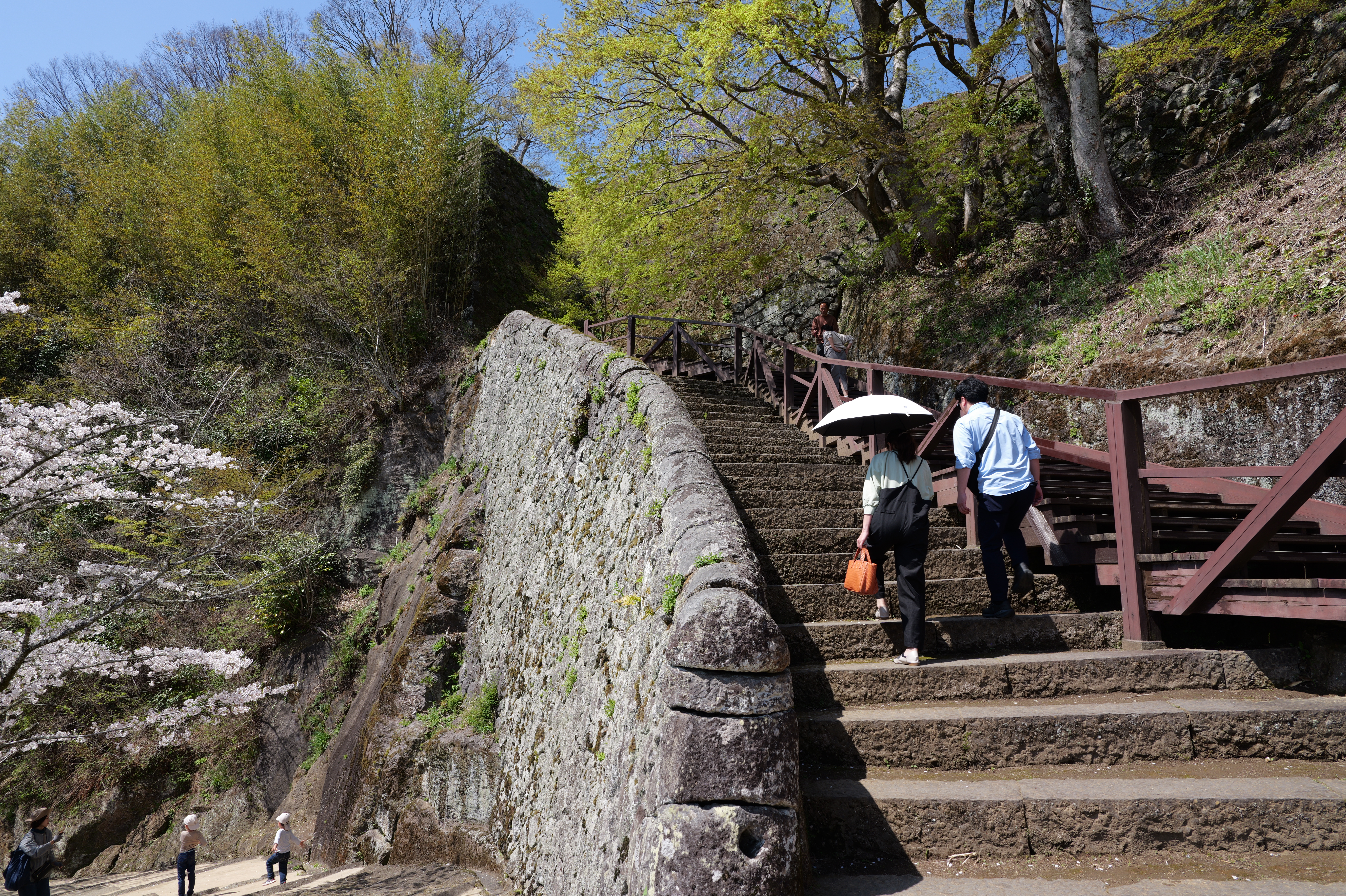しばらく進むと大手坂に着きます。脇にはアーチ形状の石垣、通称「かまぼこ石」が見られます。