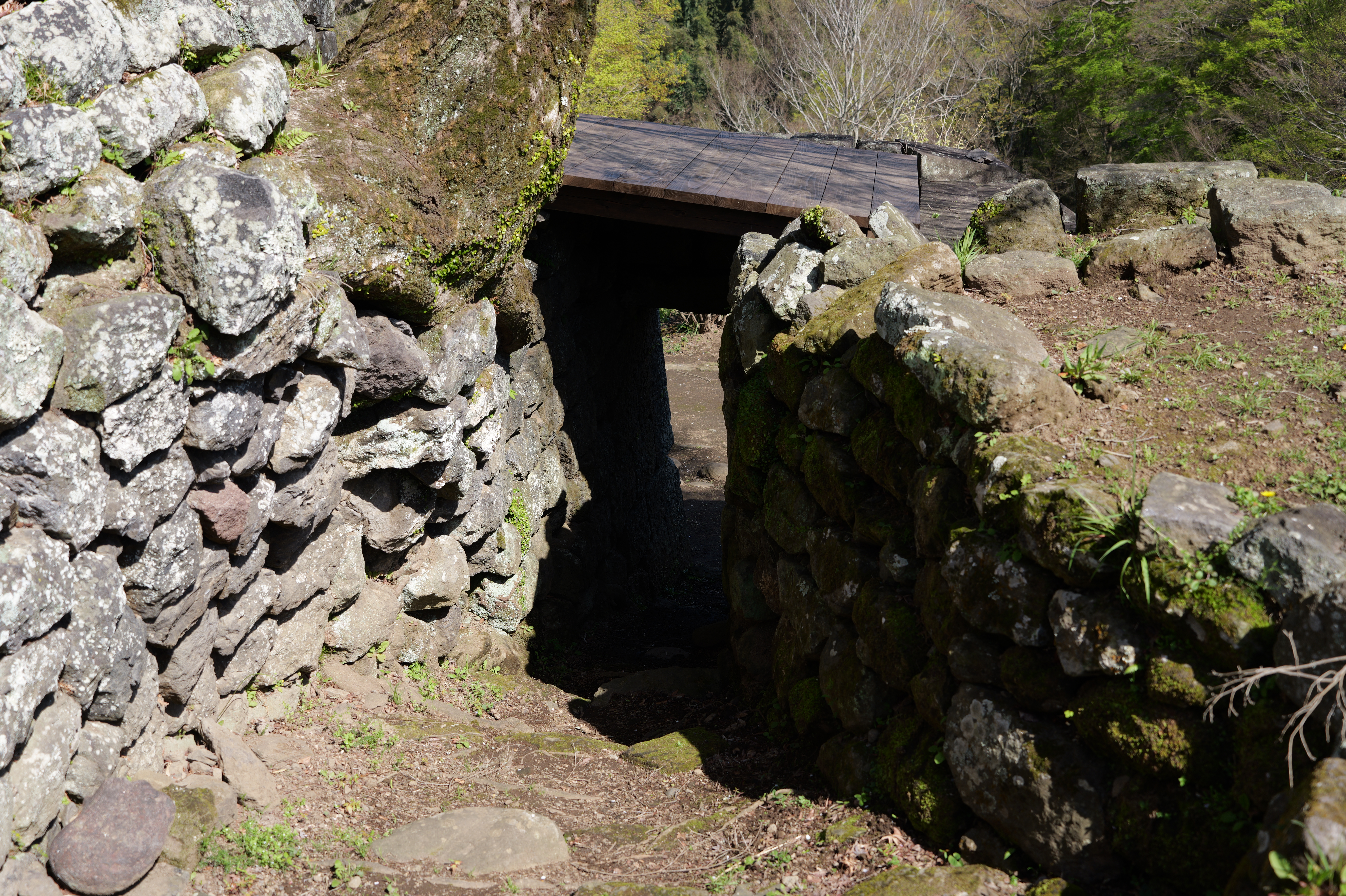 古園石仏群の手前右側の岩壁には追加で国宝指定された2体の金剛力士立像があります。