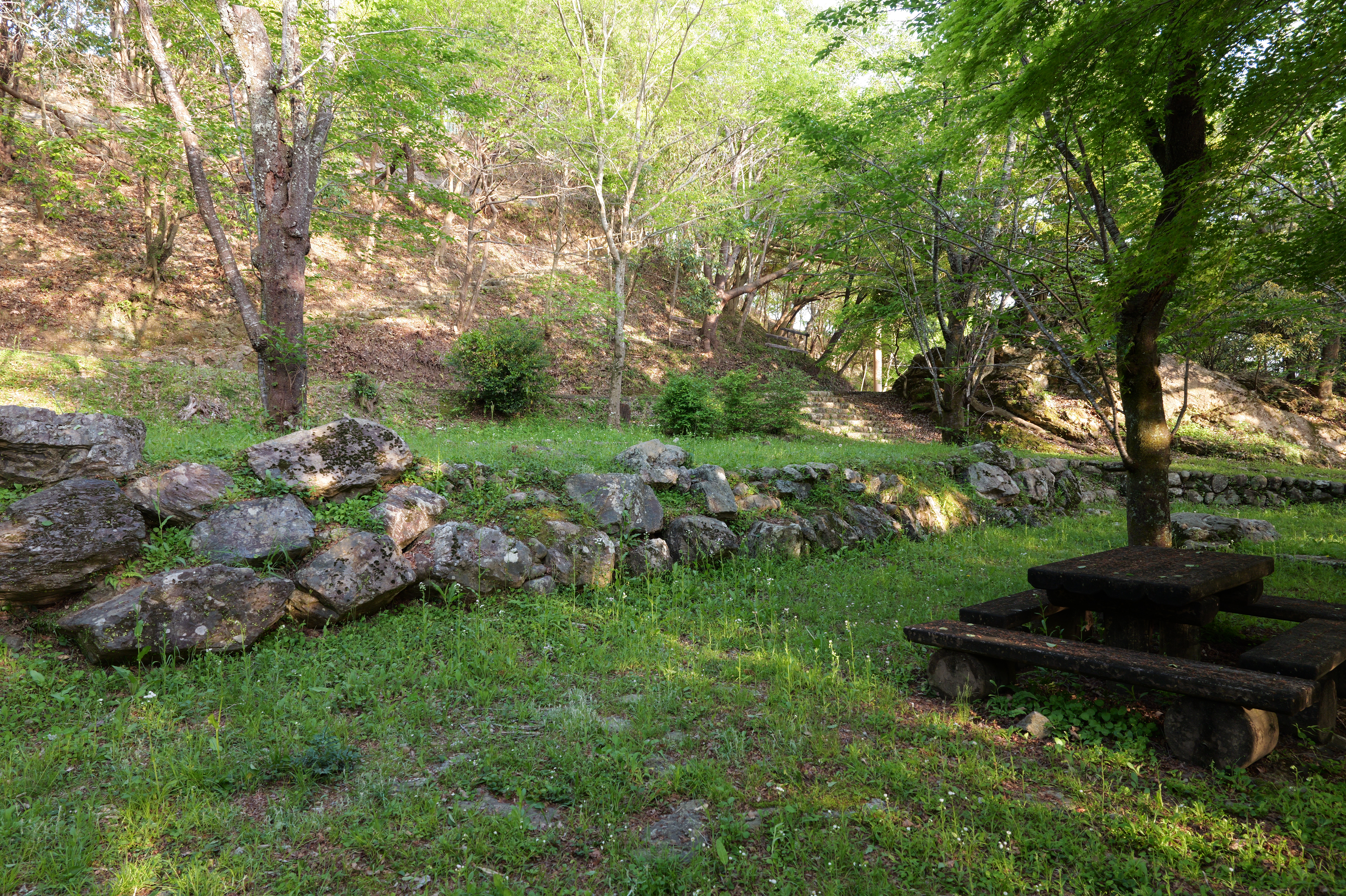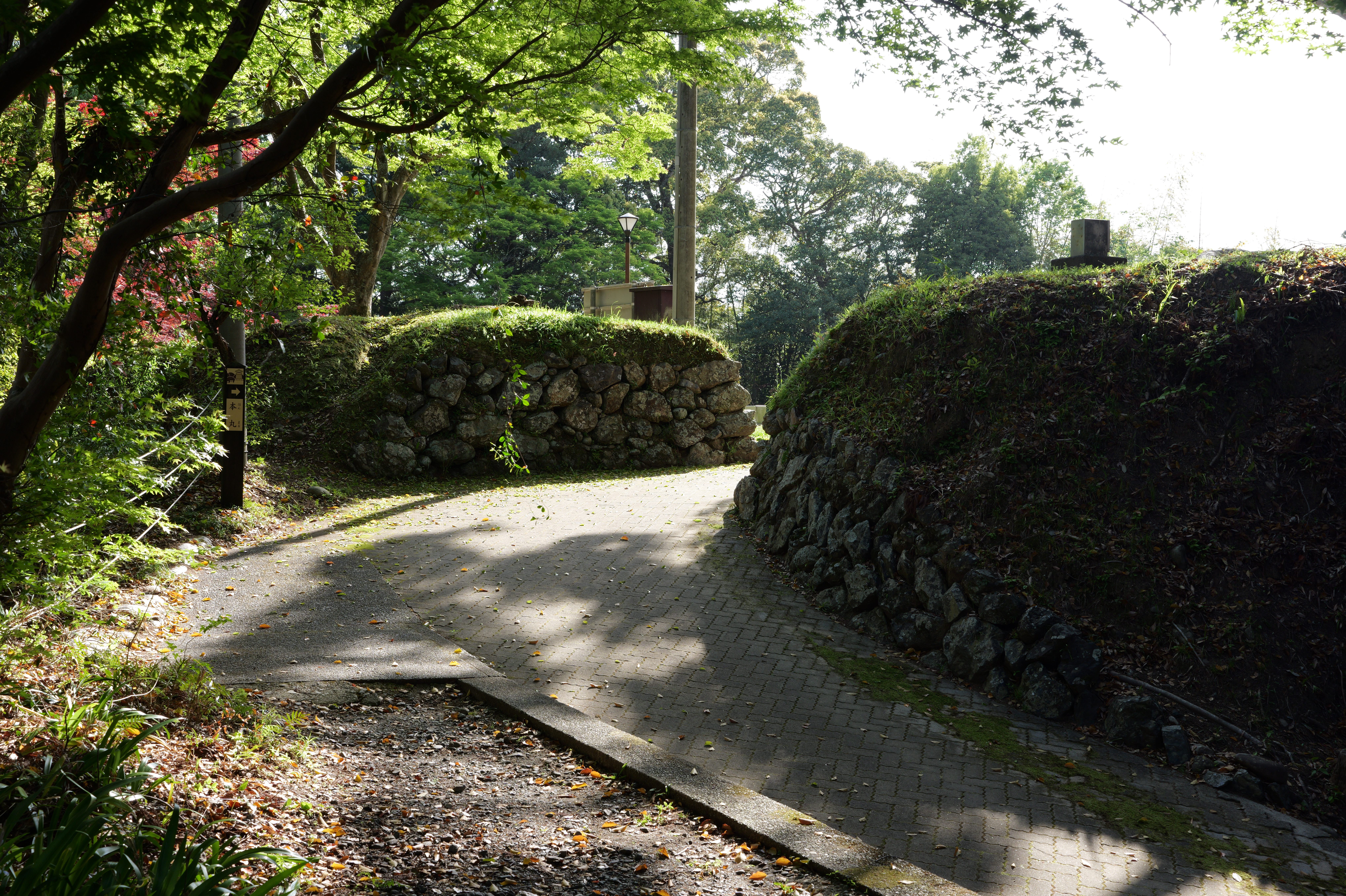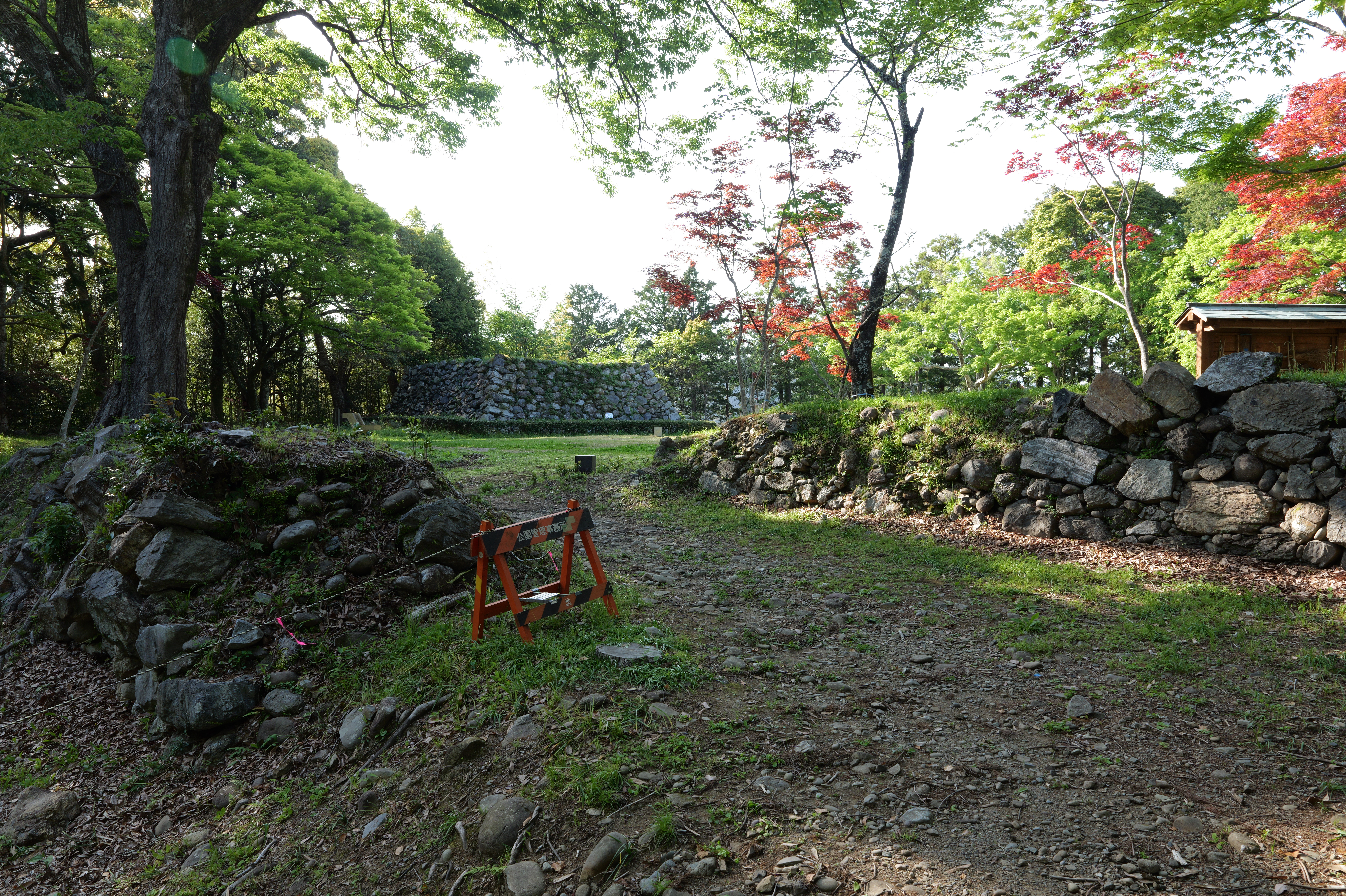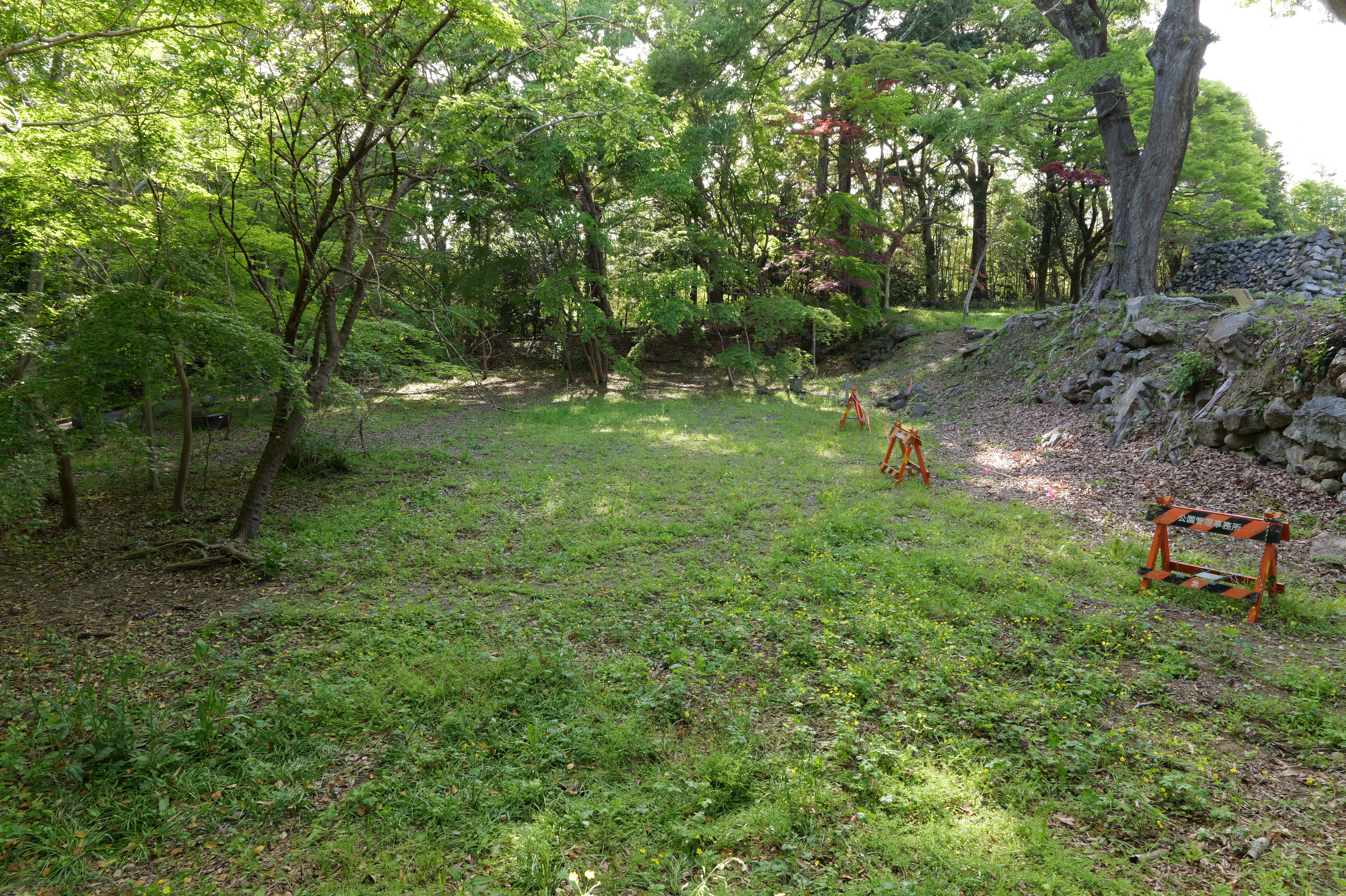 大手門跡の南側は土塁になっていて、その下は蔵屋敷との間にある二の丸南側堀切です。土塁上を進み蔵屋敷に行こうとしましたが、ロープが張られているので立ち入りできないと判断しました。