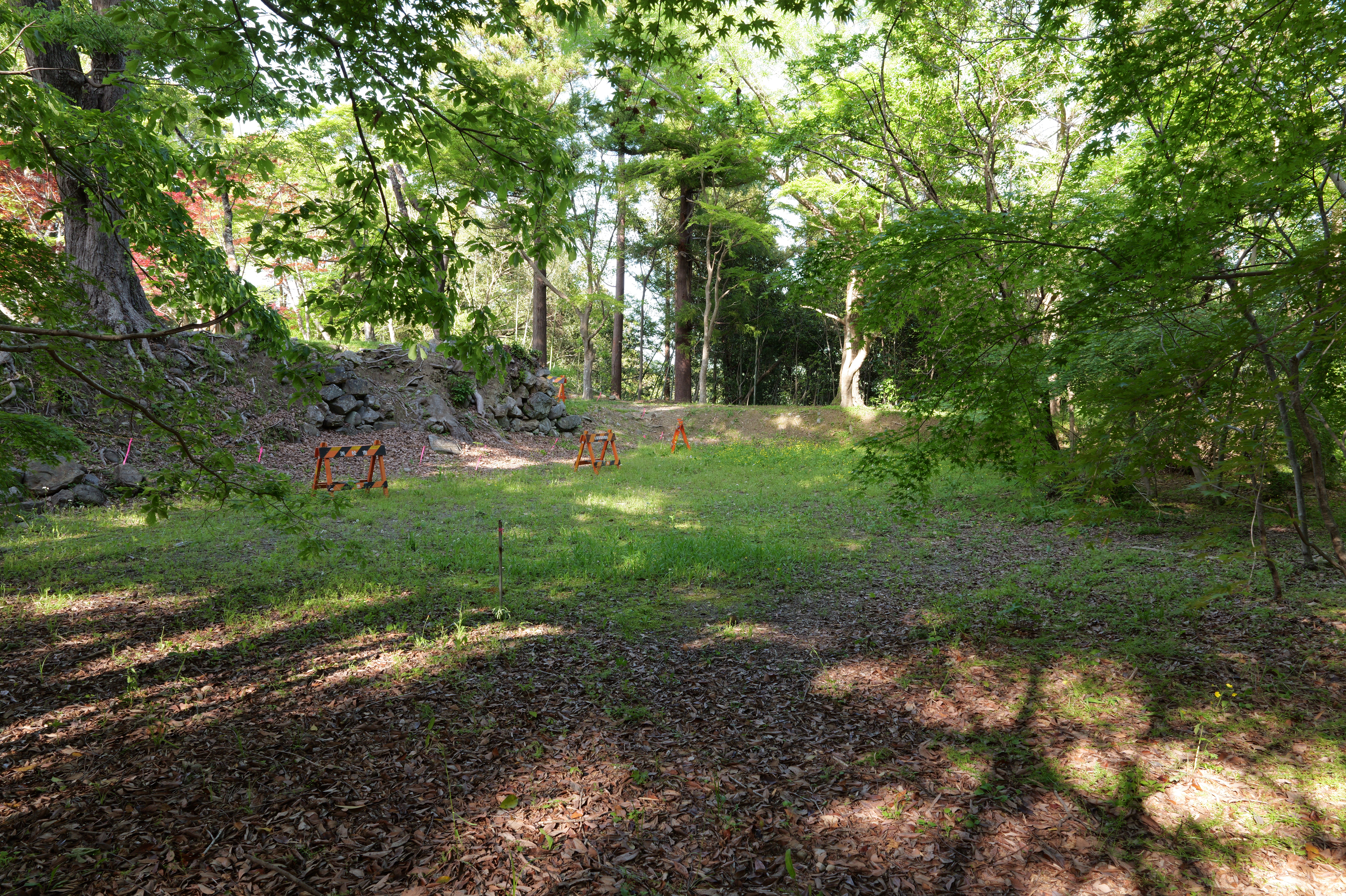 本丸南東隅から坂道を上がると天守曲輪です。途中に門跡のような石垣がありましたが、こちらが本来の虎口です。天守曲輪には天守が建っていた可能性もありますが発掘調査では根拠は得られなかったそうです。
