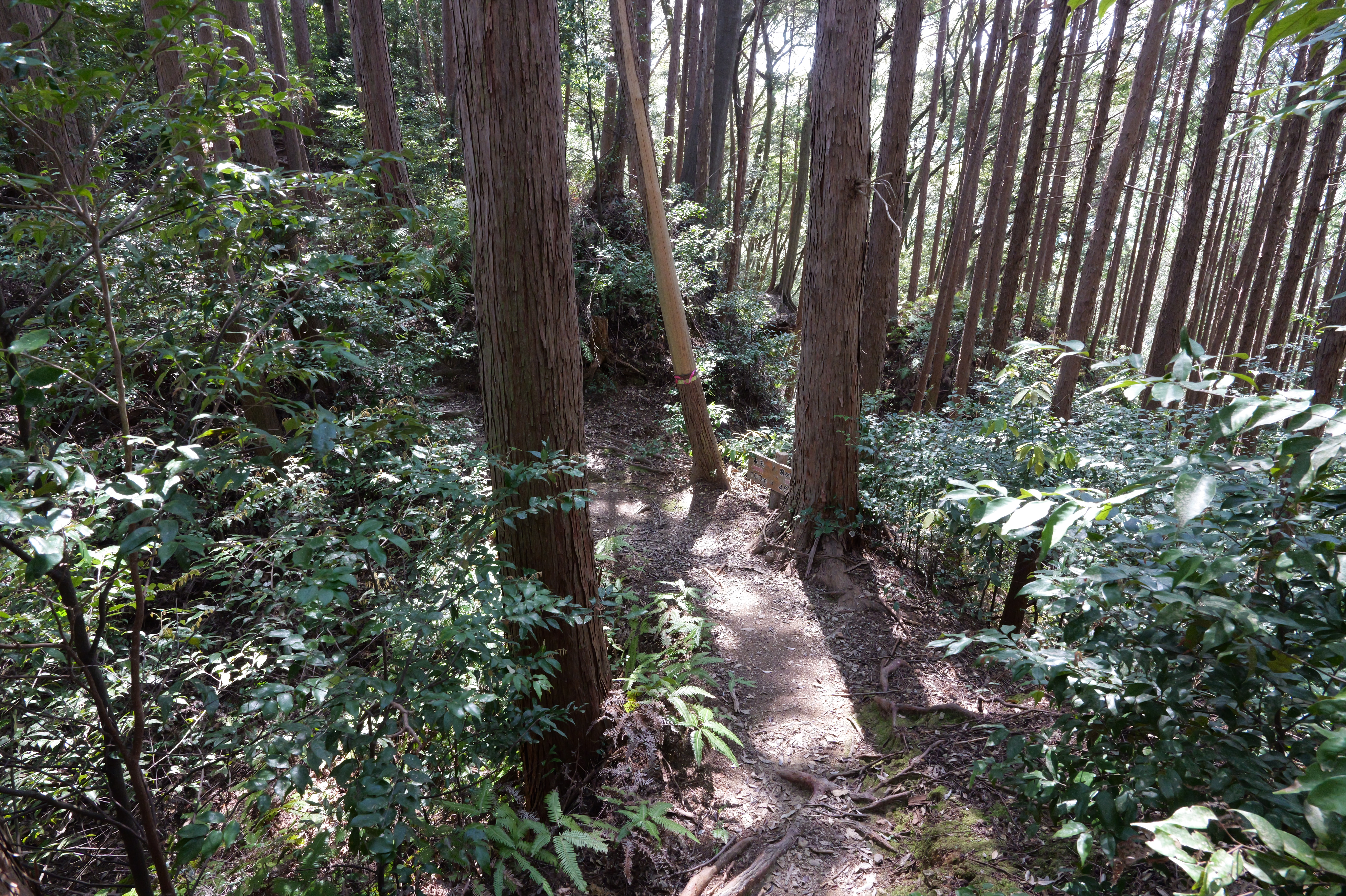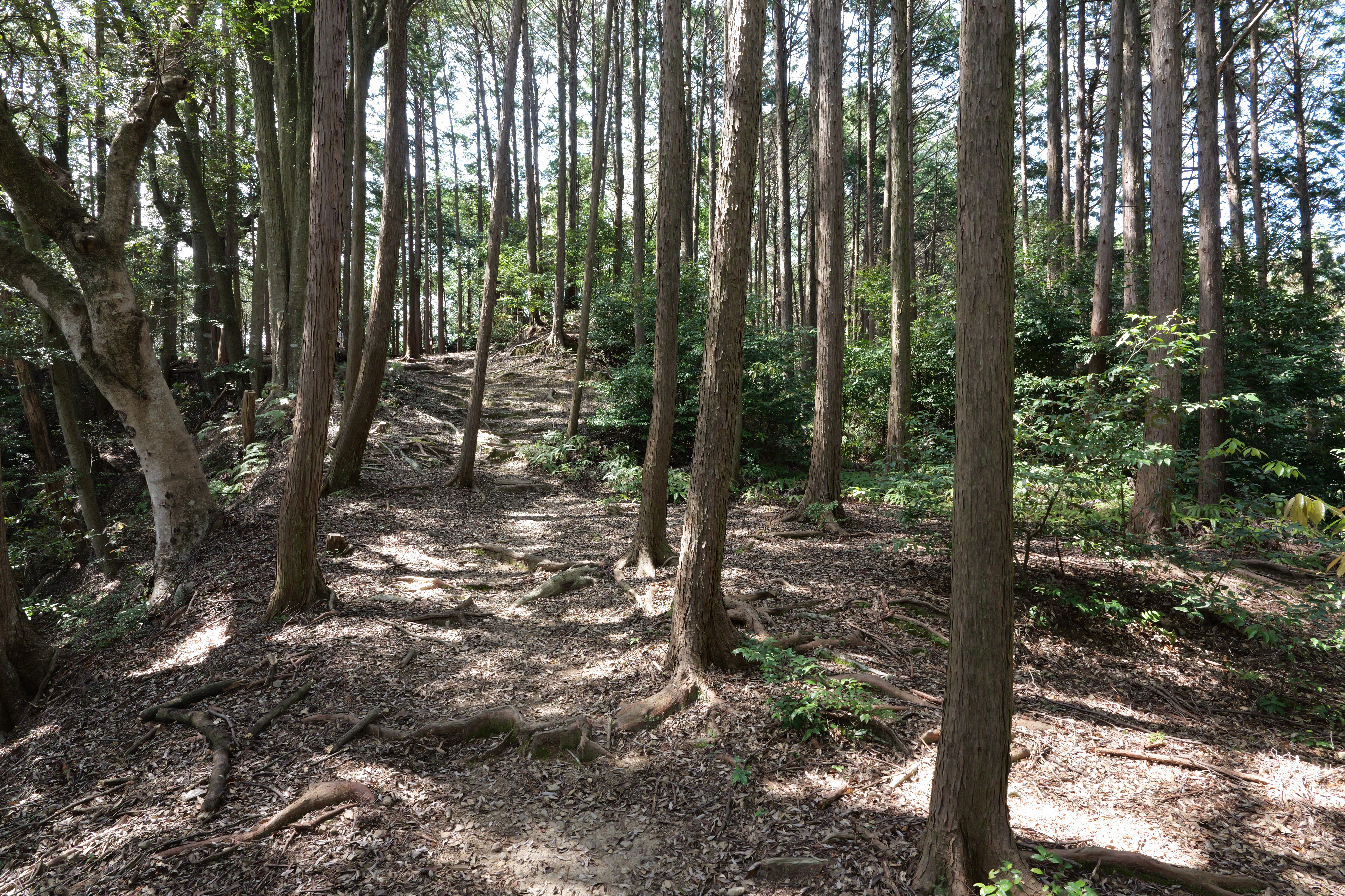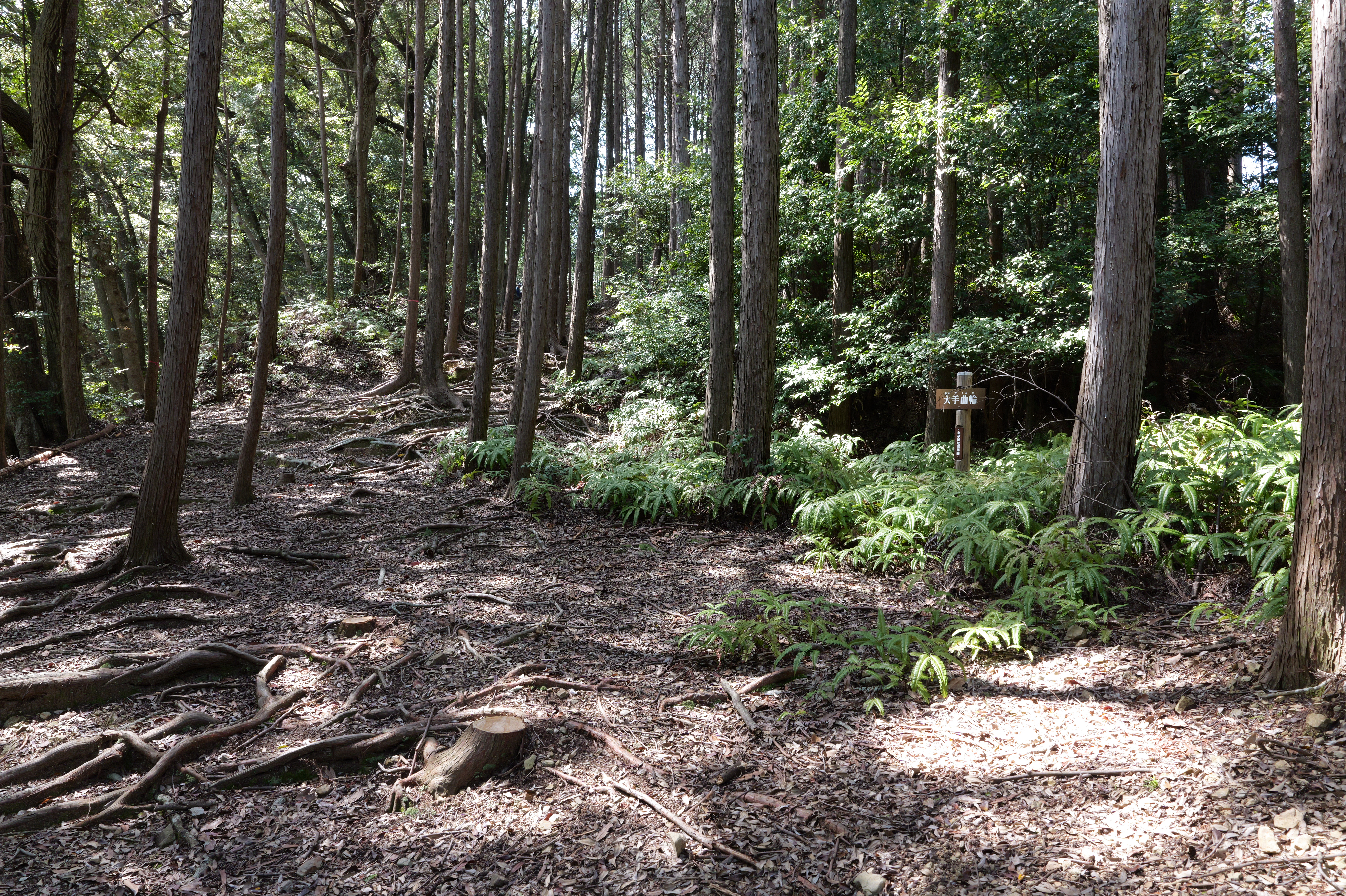 ひととおり散策を終え、昔からの登城ルートである登城の道で下りることにしました。11:56ごろ廊下橋跡から下城、かなり急な道ですが、まぁ山城ってこんなもんでしょうという感じで11分で降りてこれましたが、行きは独歩碑の道、帰りにこっちで正解でした。