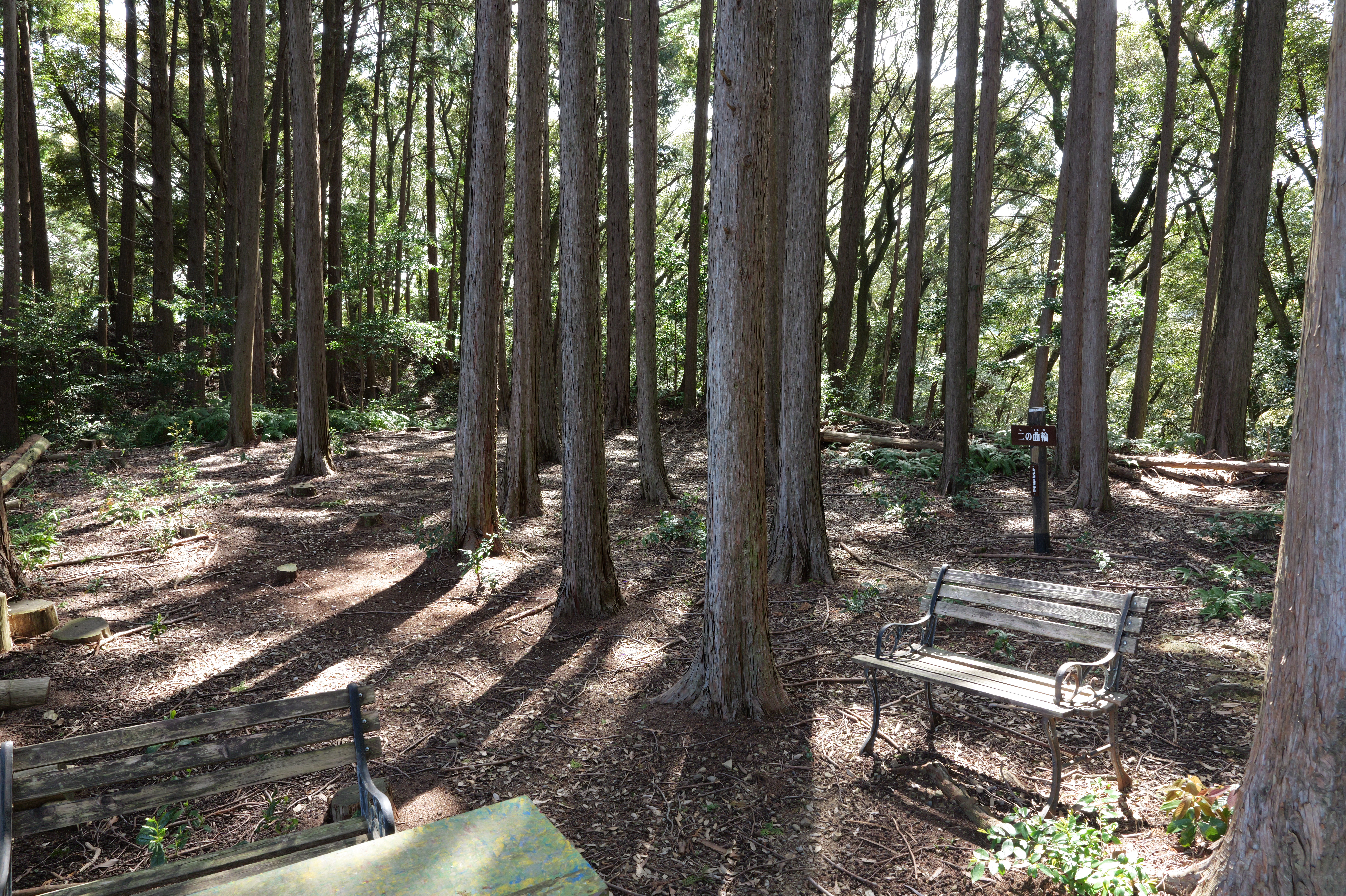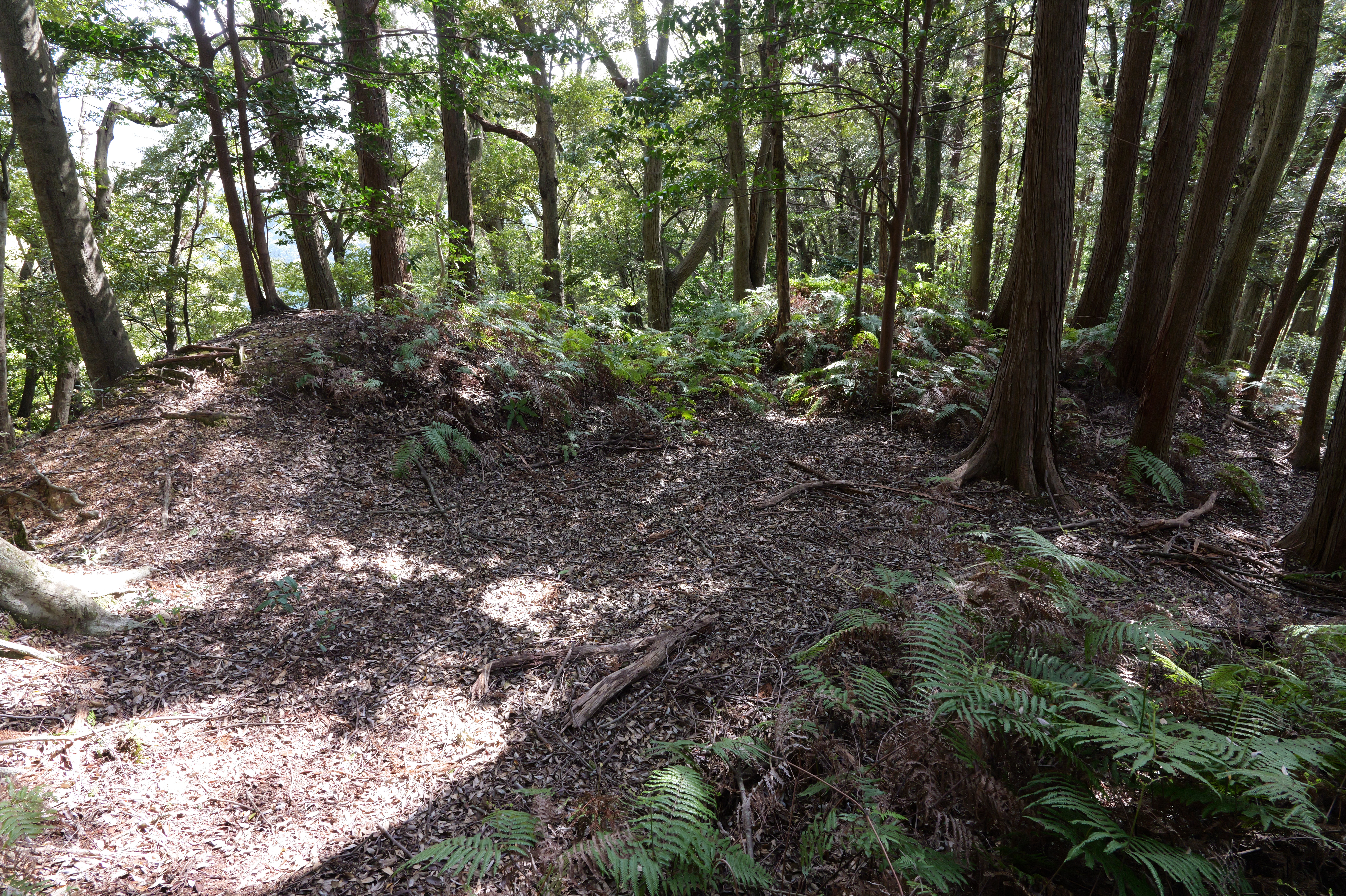 さて先ほどの土塁が高く登れば二の曲輪かと思ったのですが、案内図に寄れば三の曲輪に土塁が2つあるのと二の曲輪との間の東側に堀があるようなので、この先もまだ三の曲輪かなということでそのていで進めます。