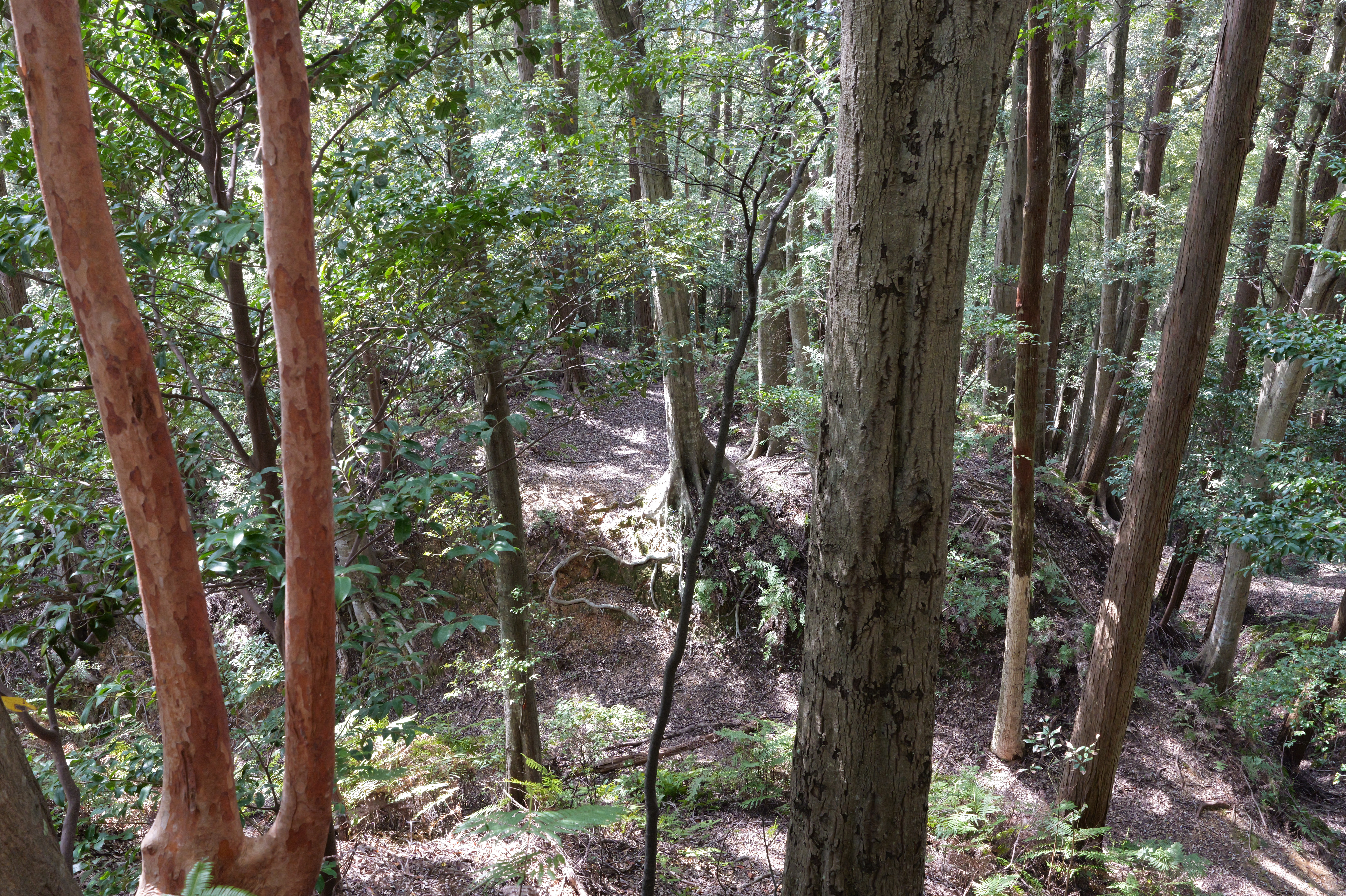 丸子城(まりこじょう)は、静岡県静岡市駿河区にある山城で、最高所の標高は136m、比高100mです。駿河国守護今川氏の家臣斎藤安元によって築城されました。曲輪、土塁、 空堀、三日月堀、堀切、竪堀、枡形、馬出し等の遺構が残っています。