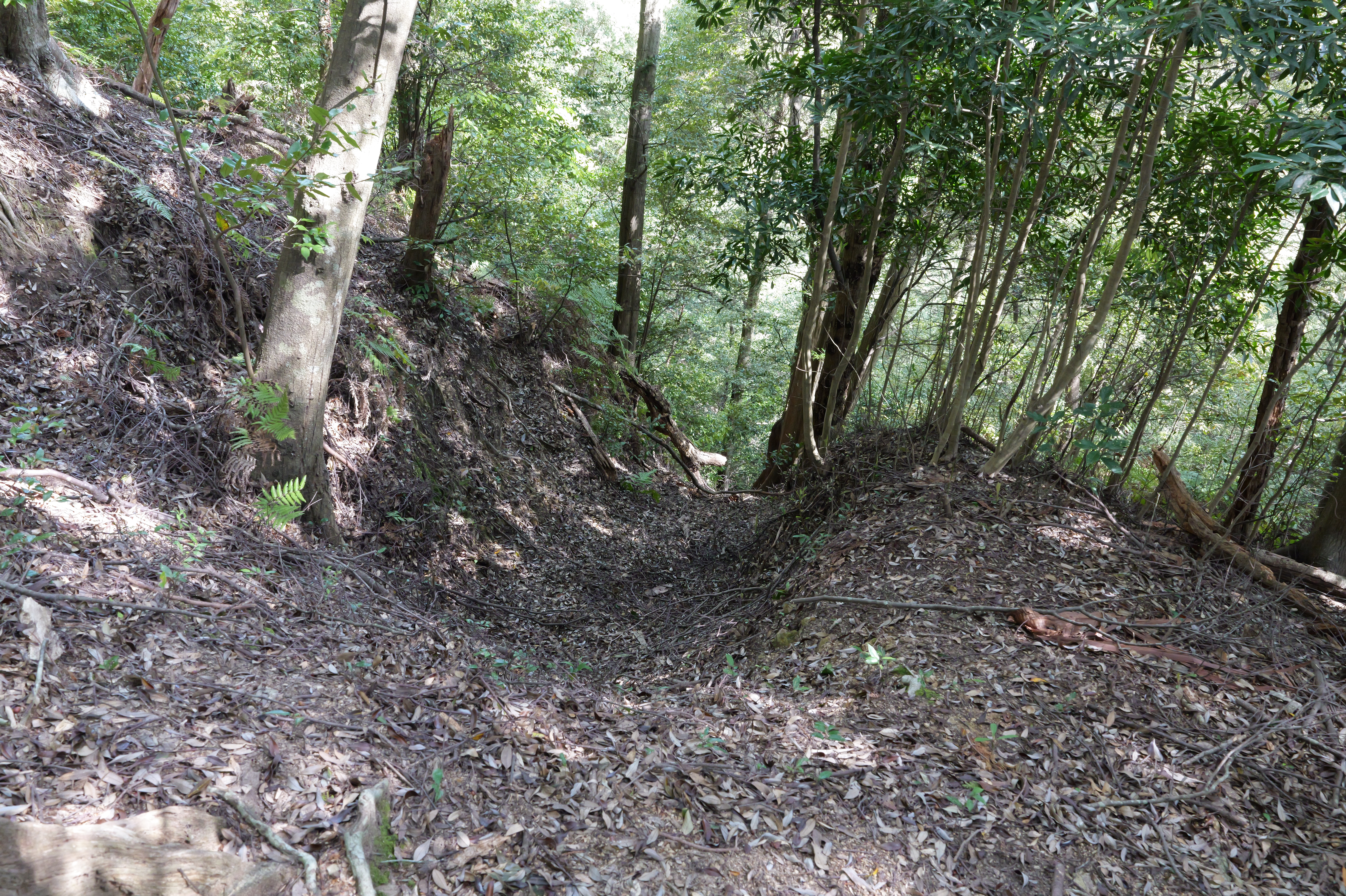 ひととおり遺構は見ることができたので横堀経由で下城しました。14:43ごろ登城口に下りてきました。予想よりも短時間で済んだので、計画通りに帰宅しました。