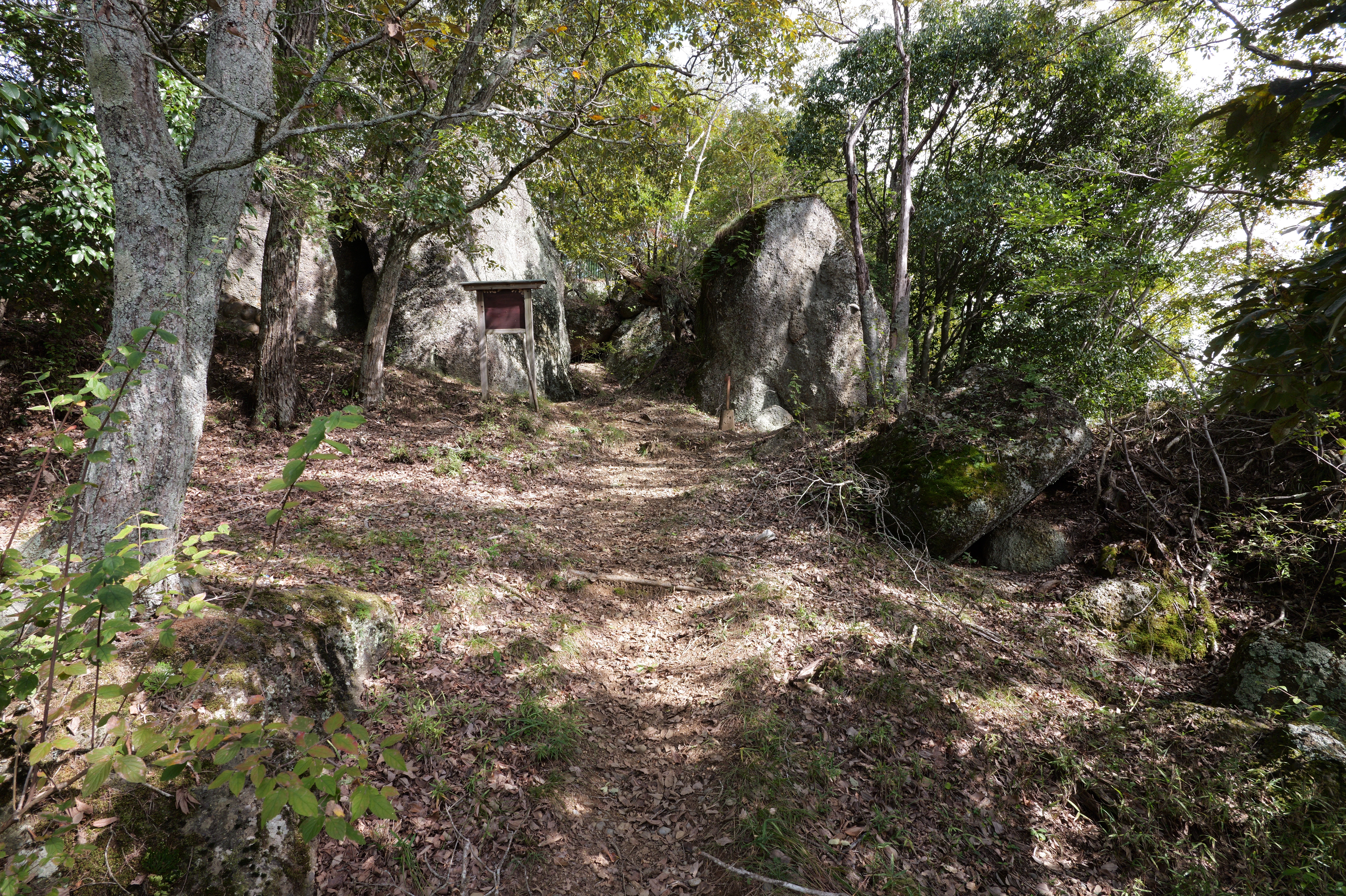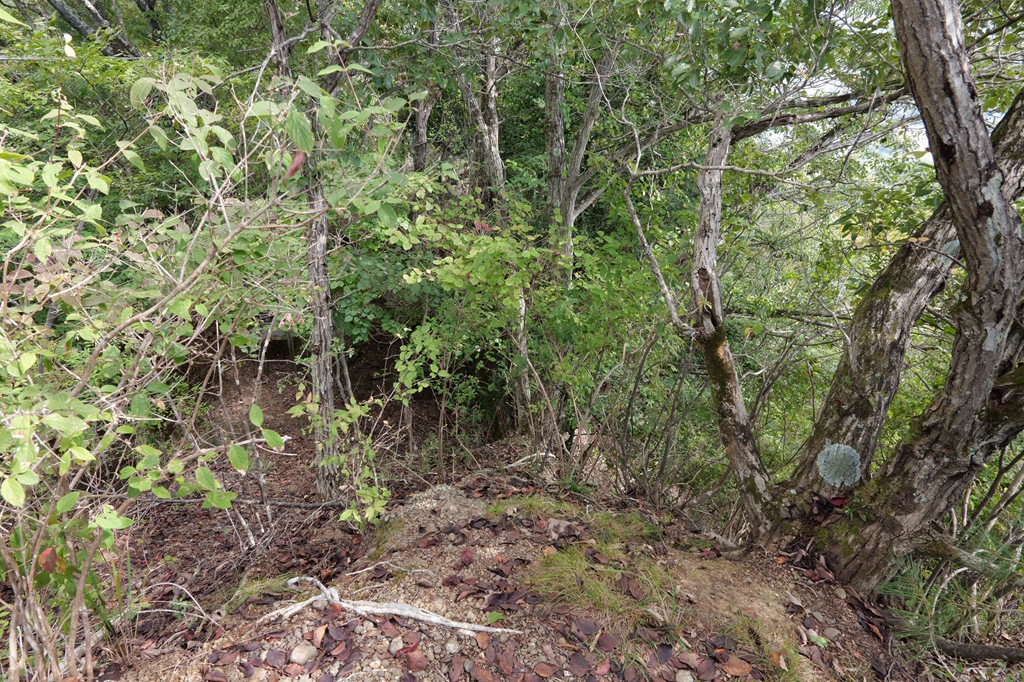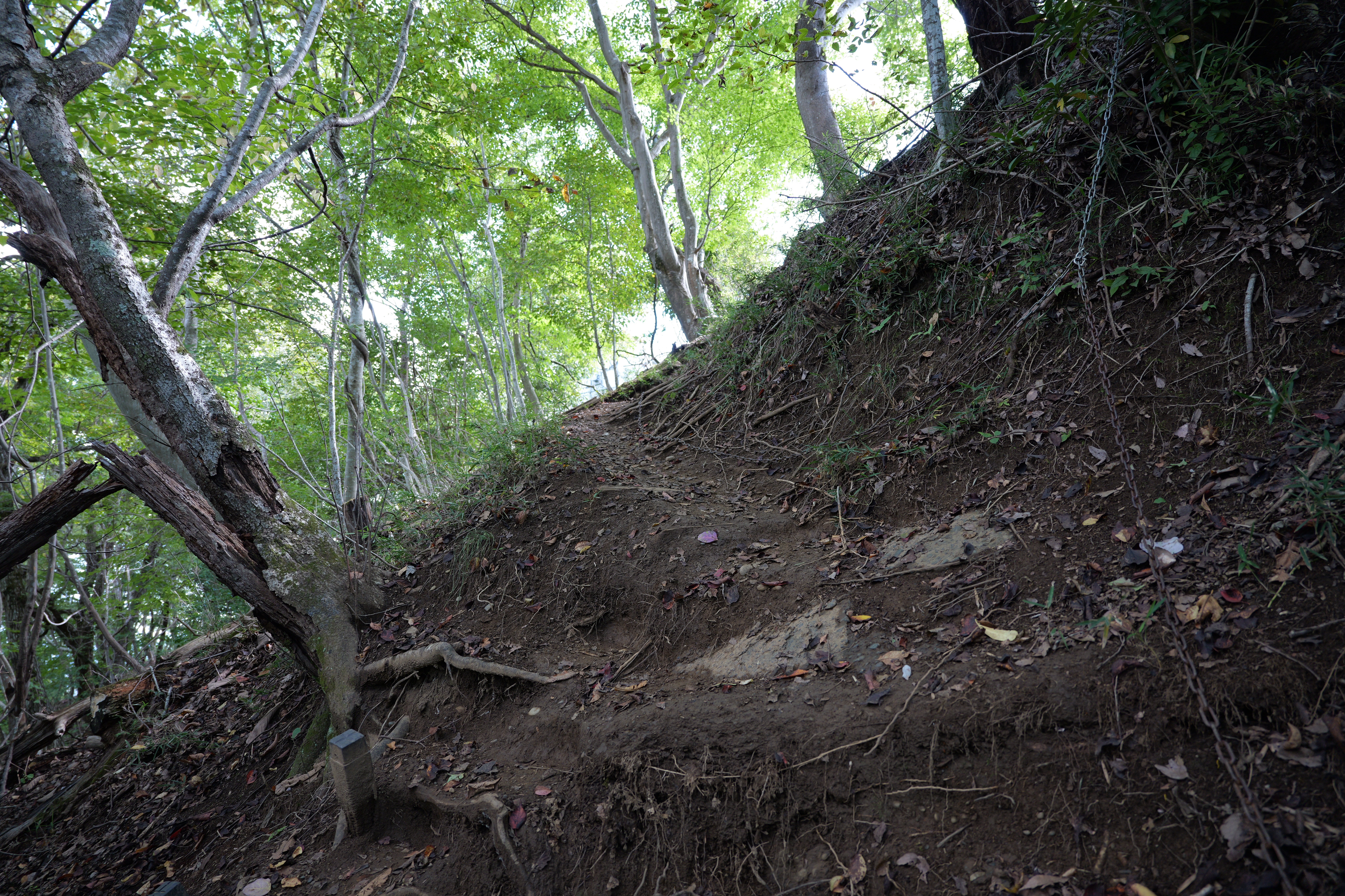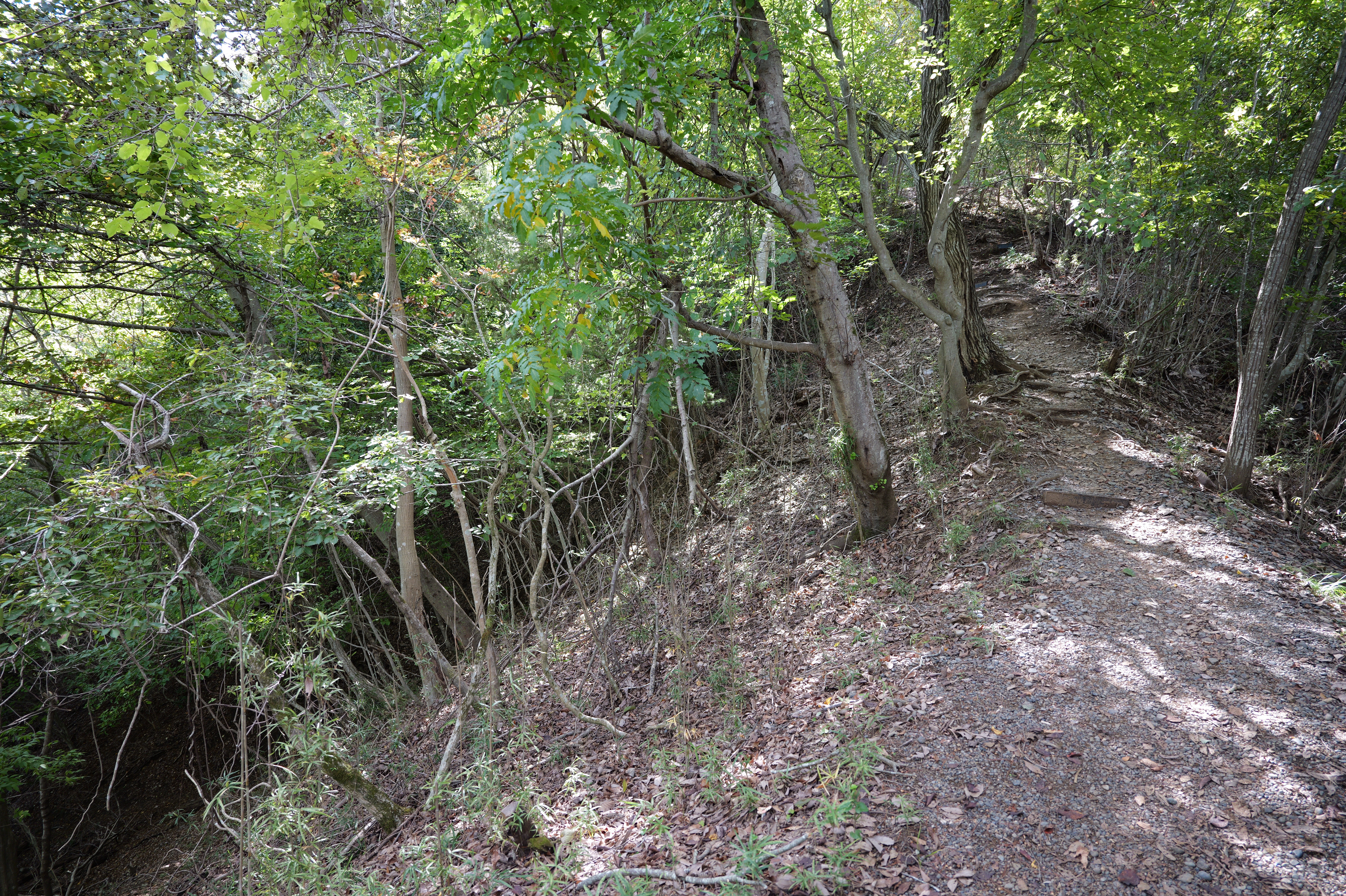 西物見台の手前には浅利登山口へ続く分岐があり、ここを少し下りたところに番所跡と揚城戸跡があります。個人的には揚城戸跡が一番のみどころ。