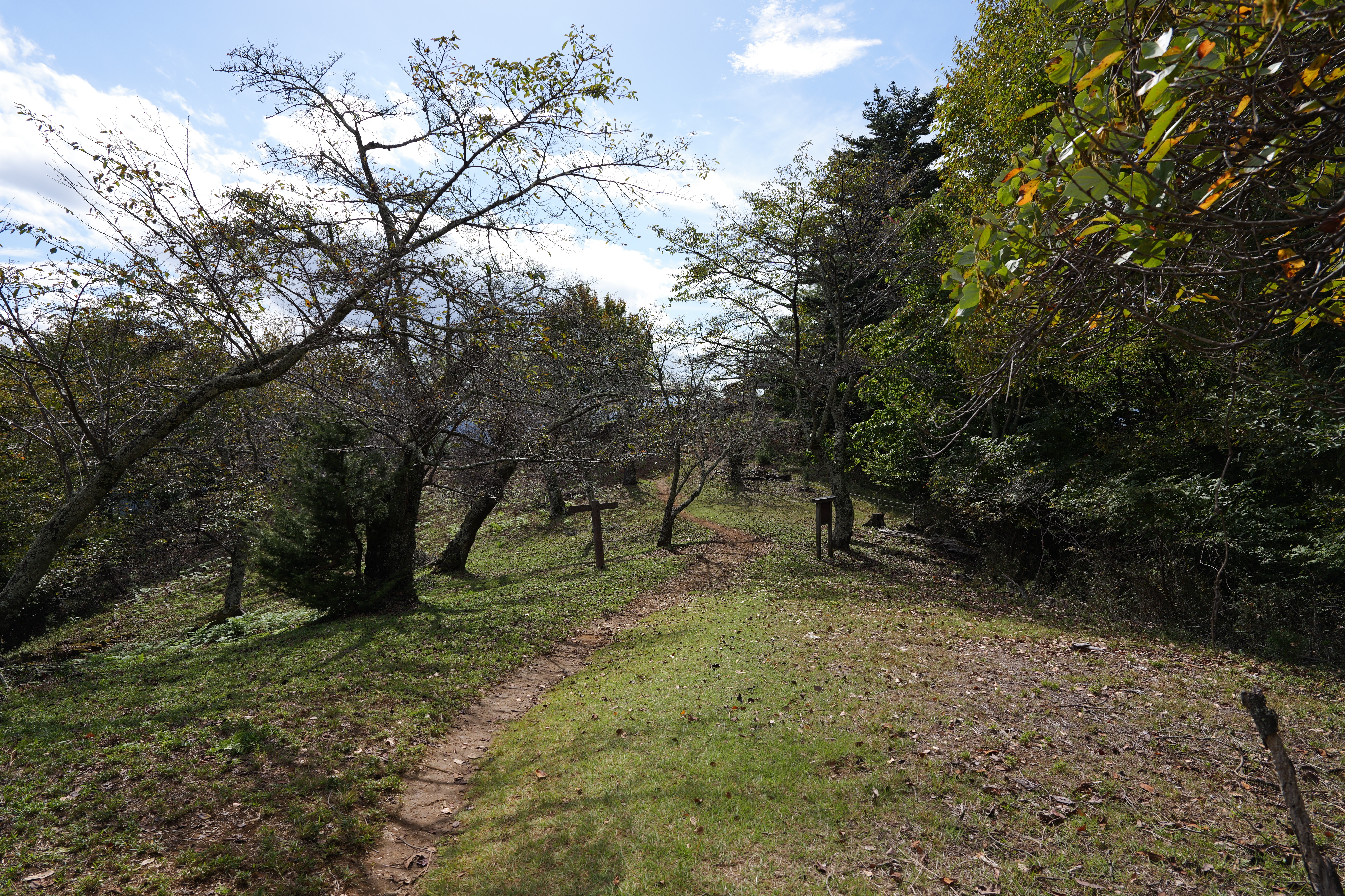 ここで今日の散策ポイントは最後です。本丸に戻り13:08下城、登山口には13:35に到着しました。2時間半ちょっとの散策となりましたが、途中相当気をつけていたのに一回ずるっとすべってこけました。粘土質のぬかるみは要注意です。