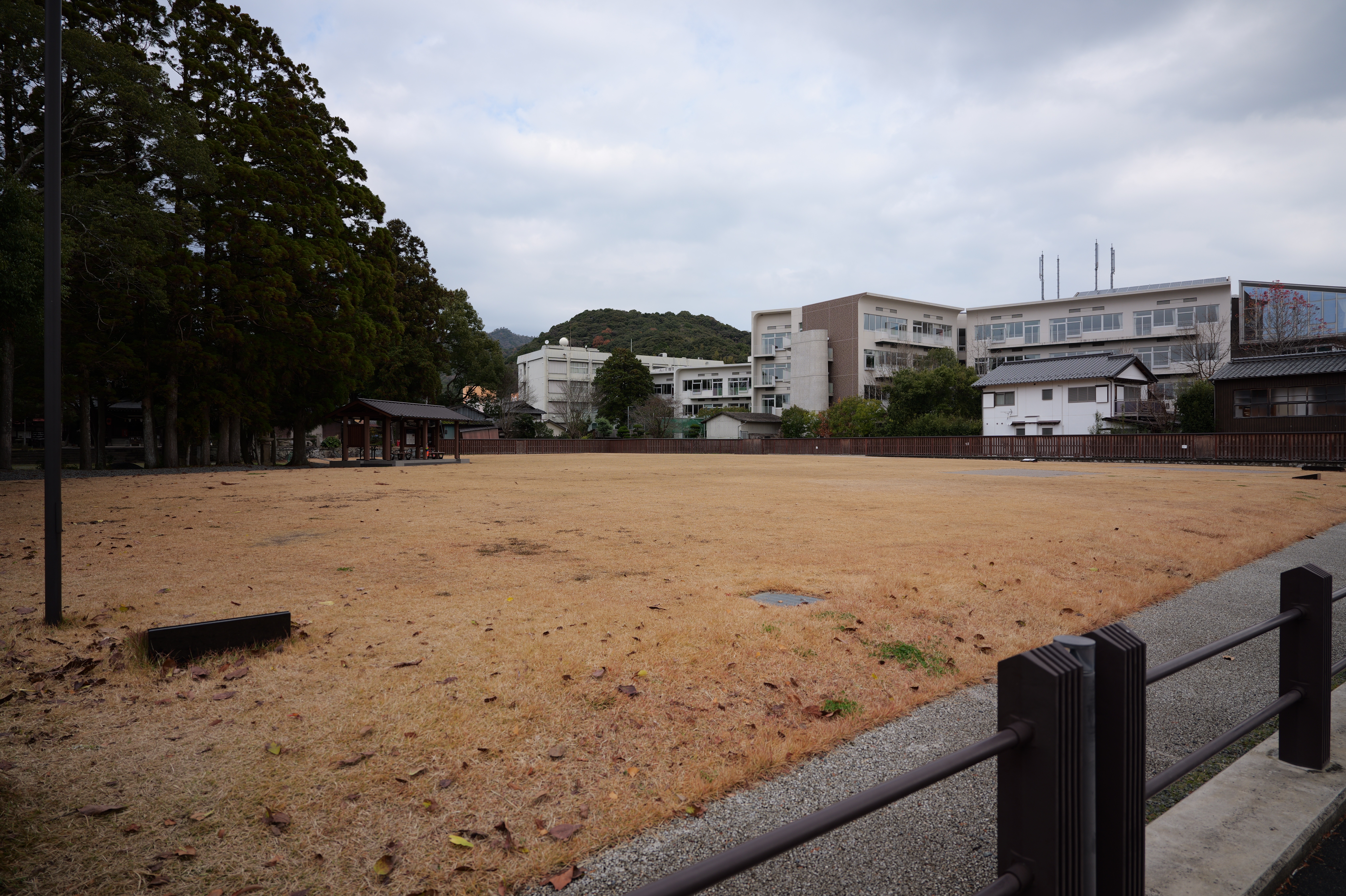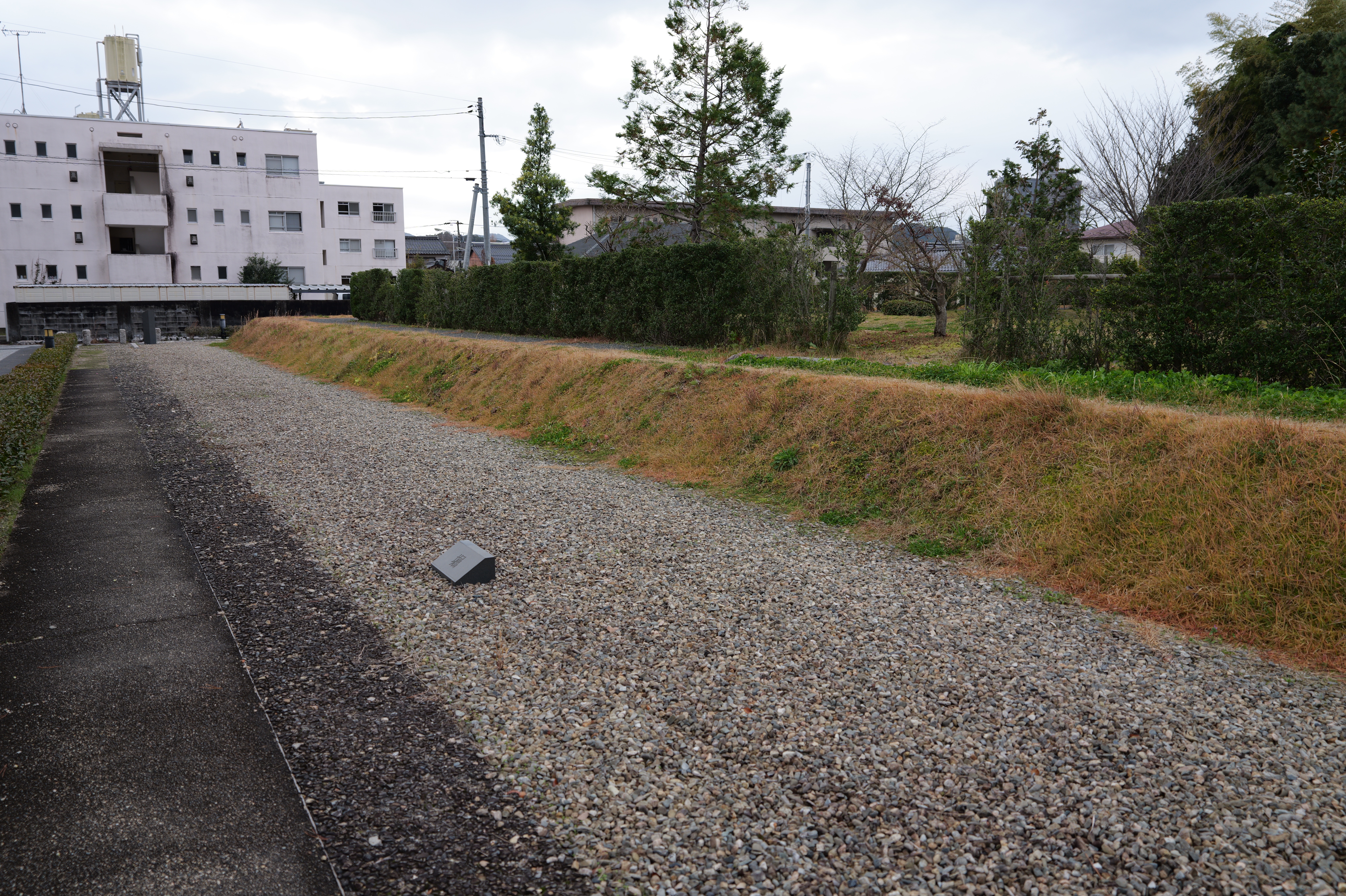 10:20すぎ、史跡大内氏遺跡見学者用駐車場に到着。駐車場からは東西にのびる土塁が目を引きます。