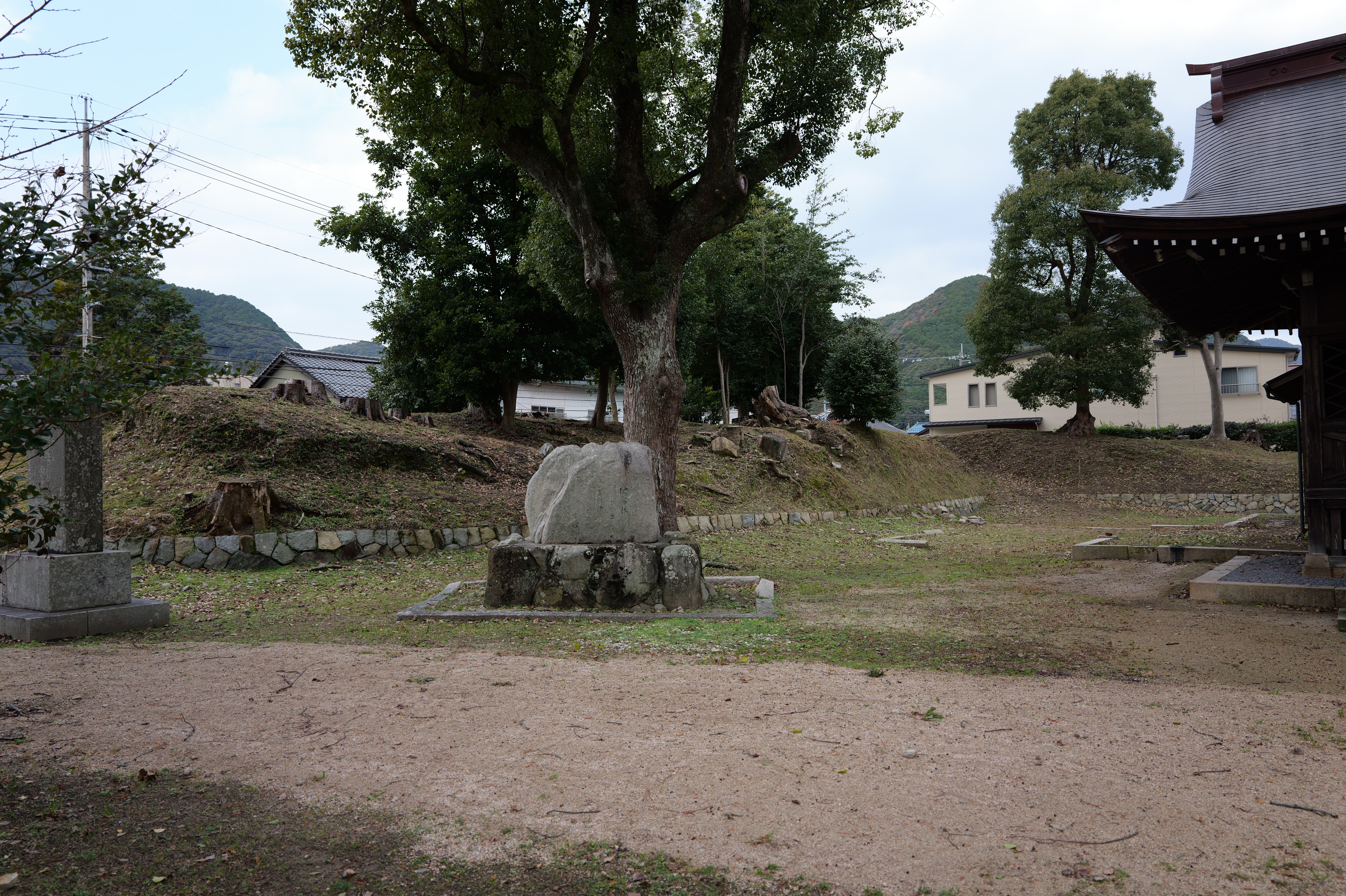 続いて館跡北側にある築山跡にも行ってみました。跡は八坂神社、築山神社、築山跡史跡公園となっています。八坂神社の本殿は国重量文化財です。大内義隆を祀る築山神社の西側にある築地跡(土塁)は唯一露出している遺構です。築山跡史跡公園には堀跡表示や掘立柱建物跡の表示が整備されていました。