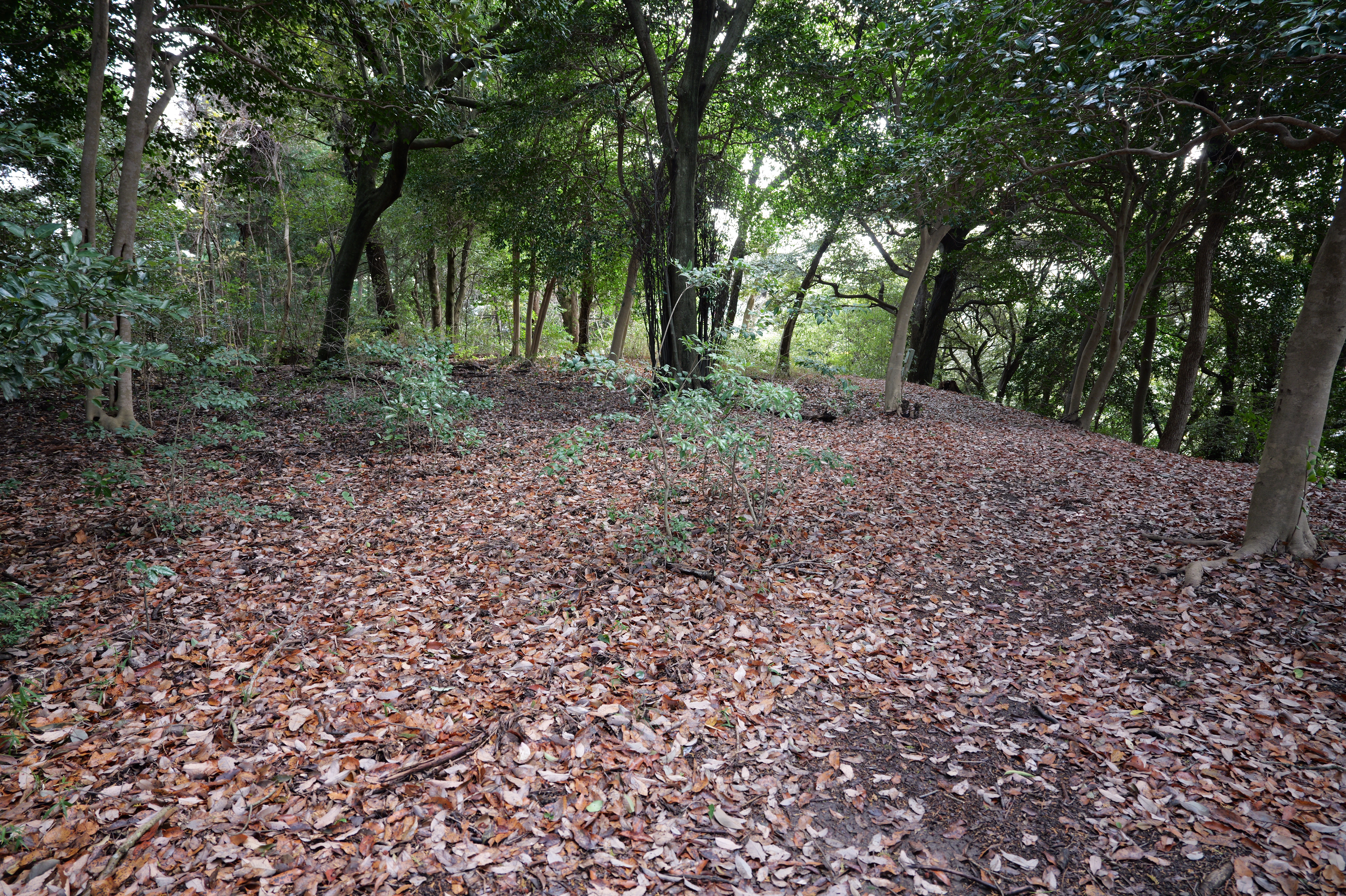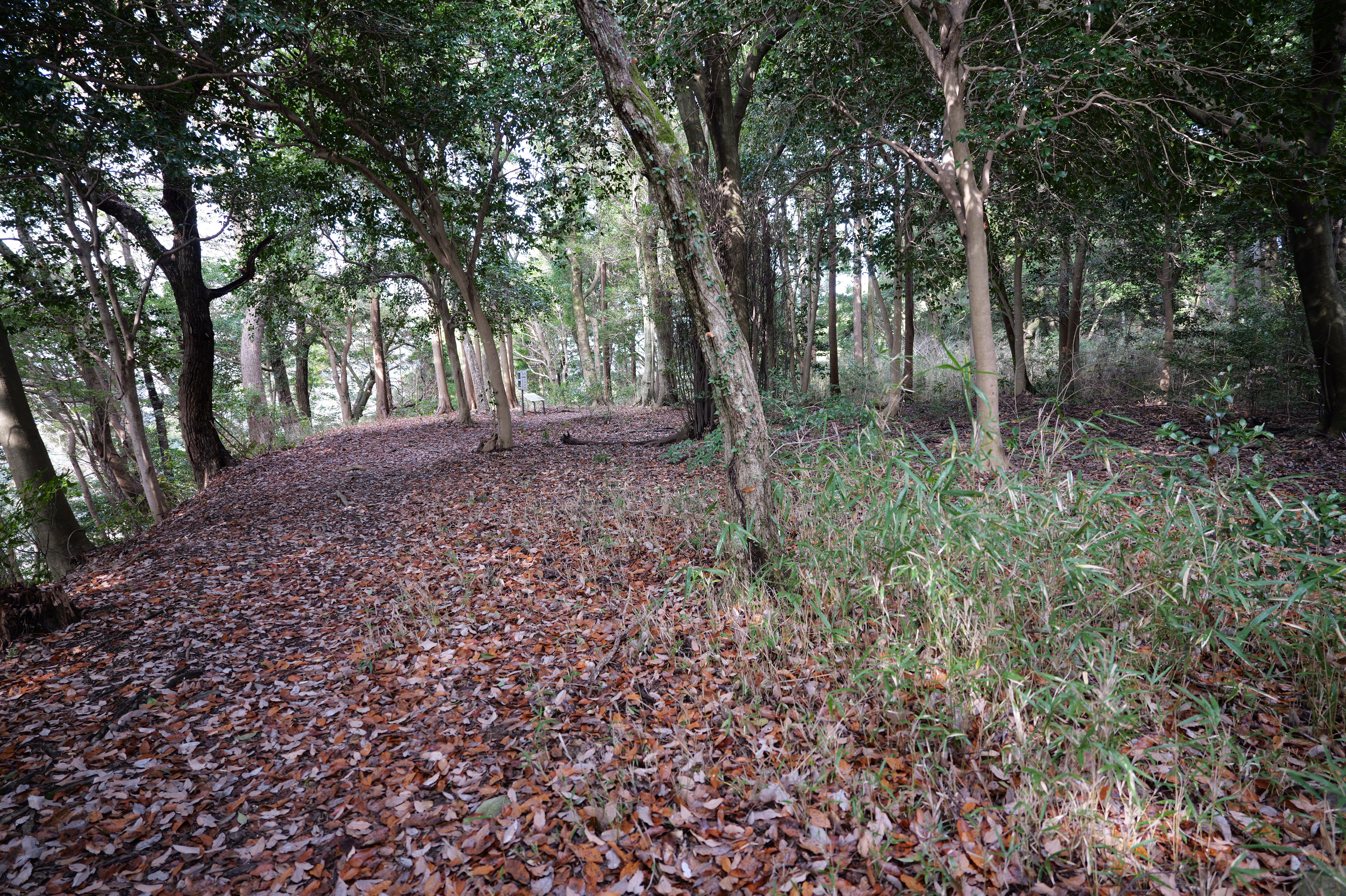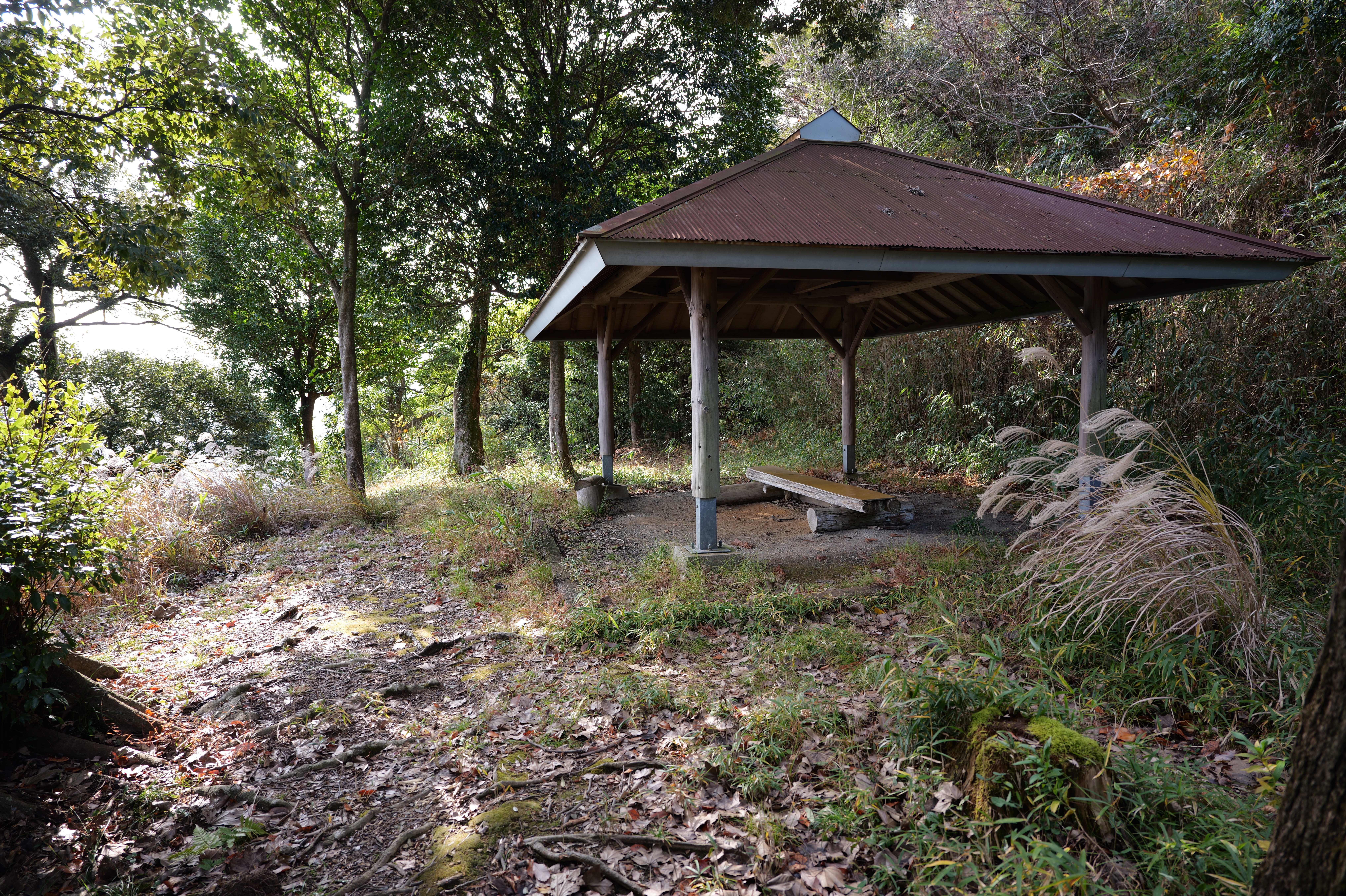 駐車スペースに戻り、西方向主郭方面を目指しました。5分くらいで東屋のある郭10に着きます。途中郭11があったようですがよくわからず。