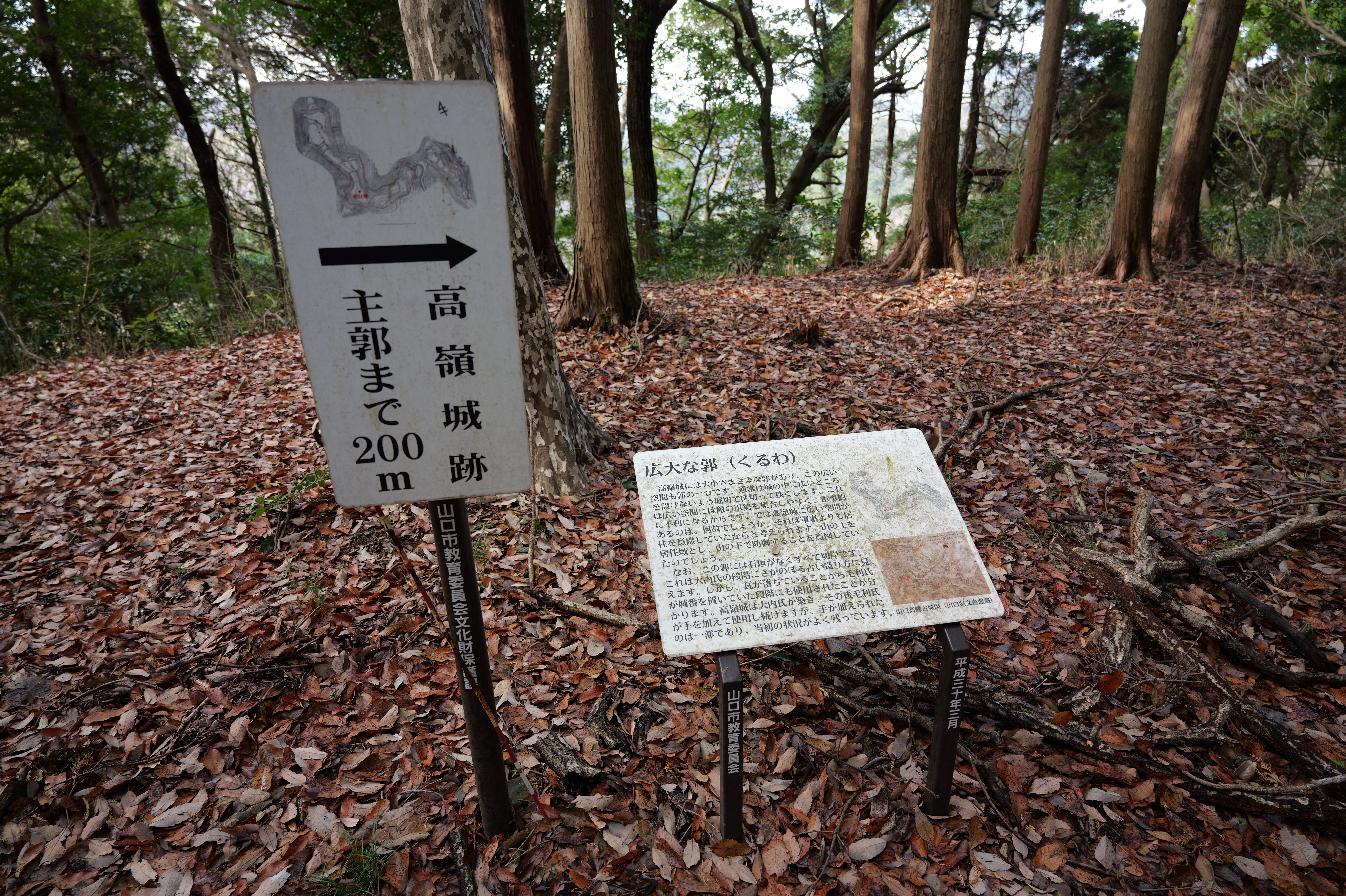 高嶺城は大内氏館の詰の城として作られた標高338mの鴻ノ峰にあり、頂上部の主郭を中心に四方に延びる尾根へ郭を配した山城です。