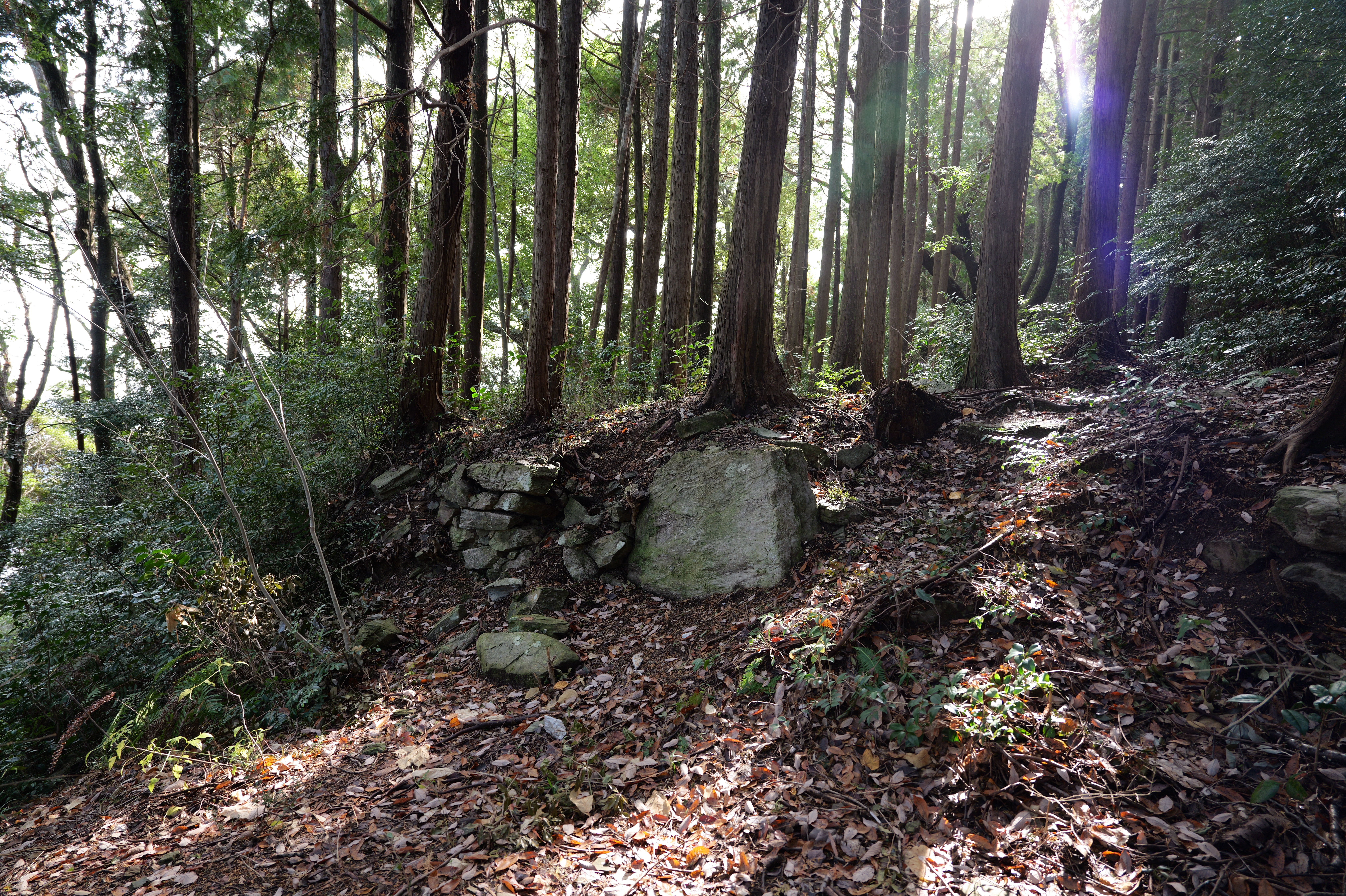 最後は東側段郭と石垣を見に行きました。最初に行った郭12から順に郭16まで段郭を下りると、石垣を確認できました。