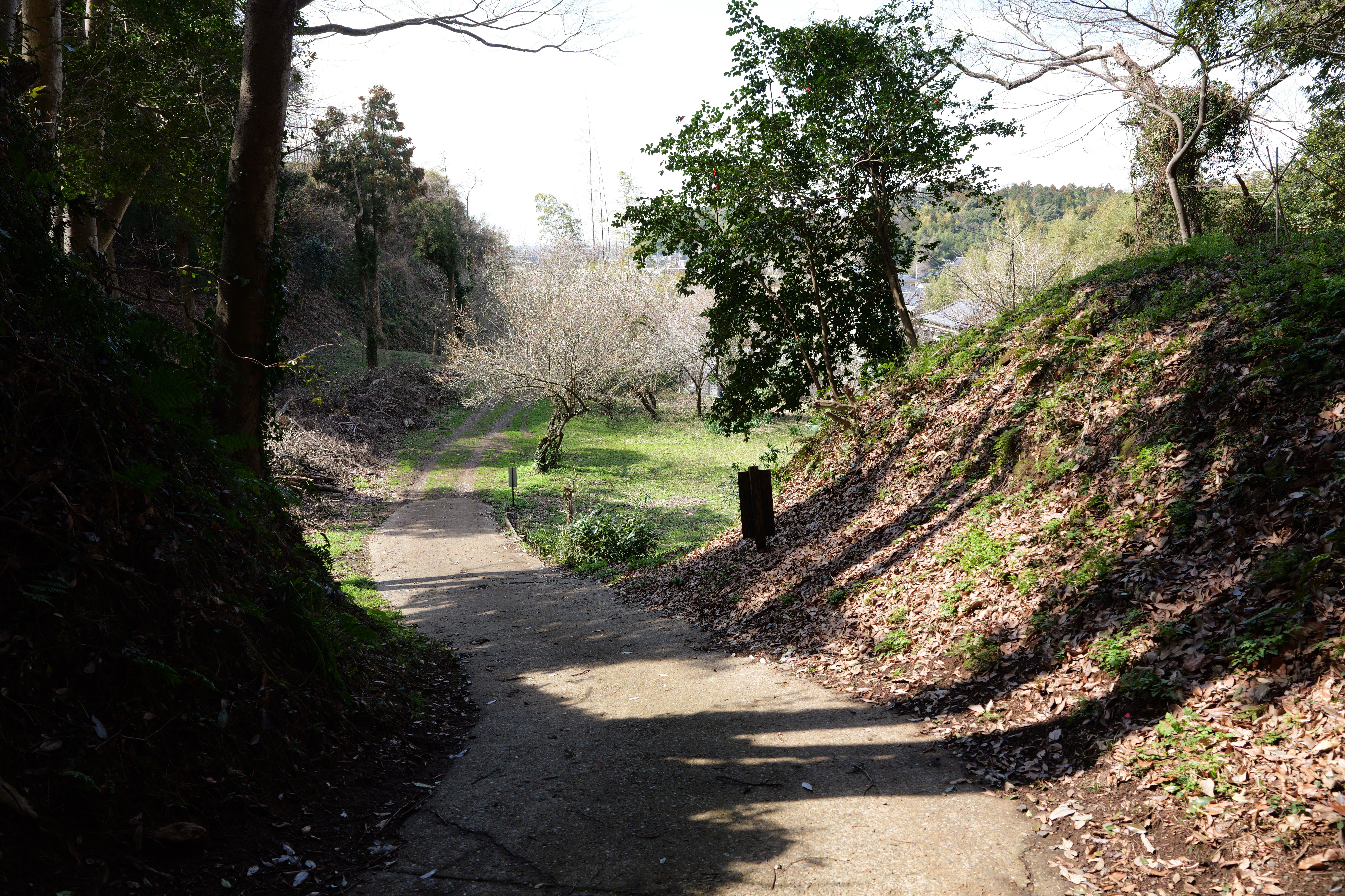 表門通り右側は水の手曲輪の切岸と西二の曲輪間の空堀、左側は腰曲輪です。