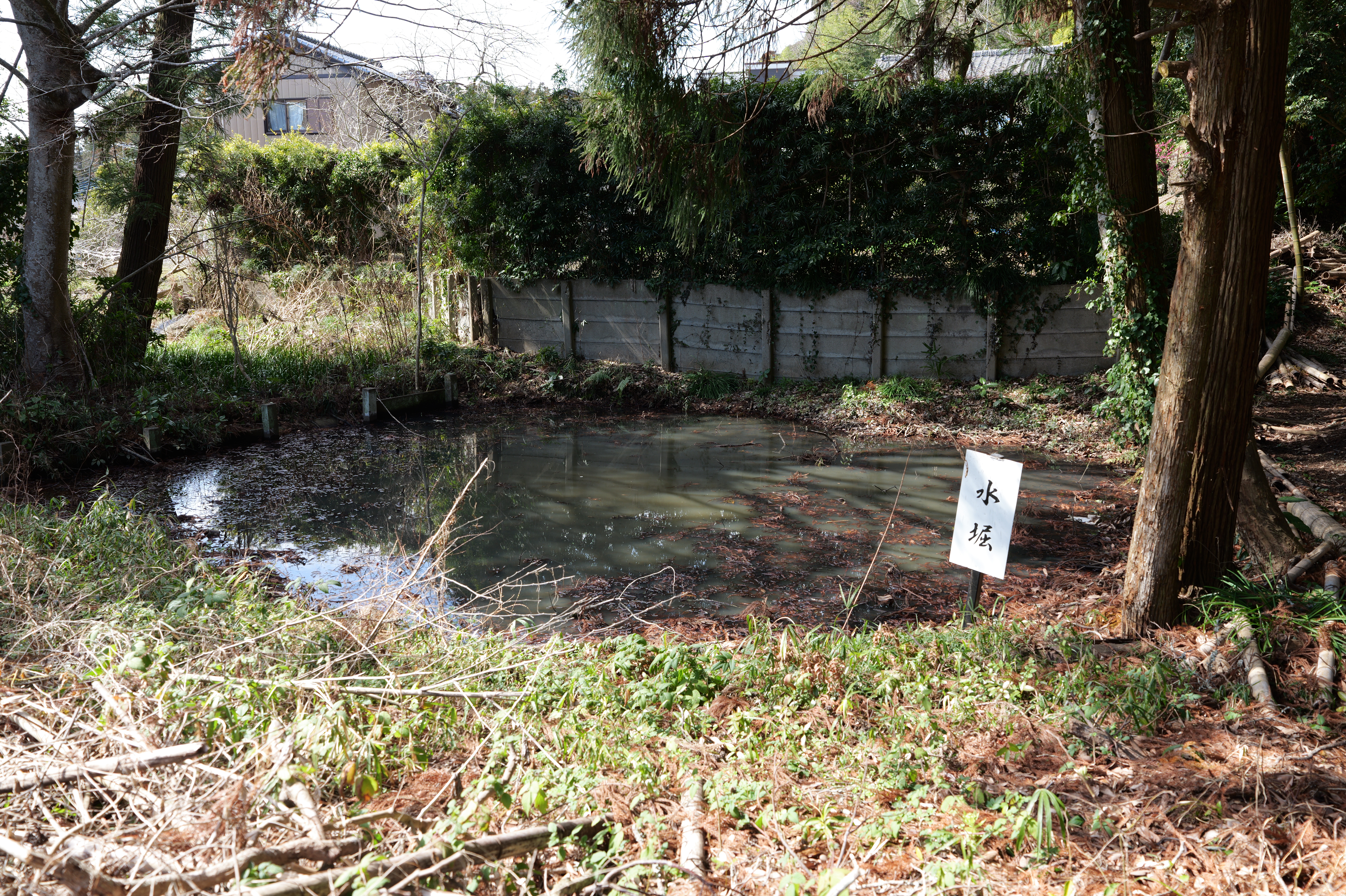 さらに進むと前方が明るくなり大堀の出口です。そのまま下りていくと右側に内堀が残っています。