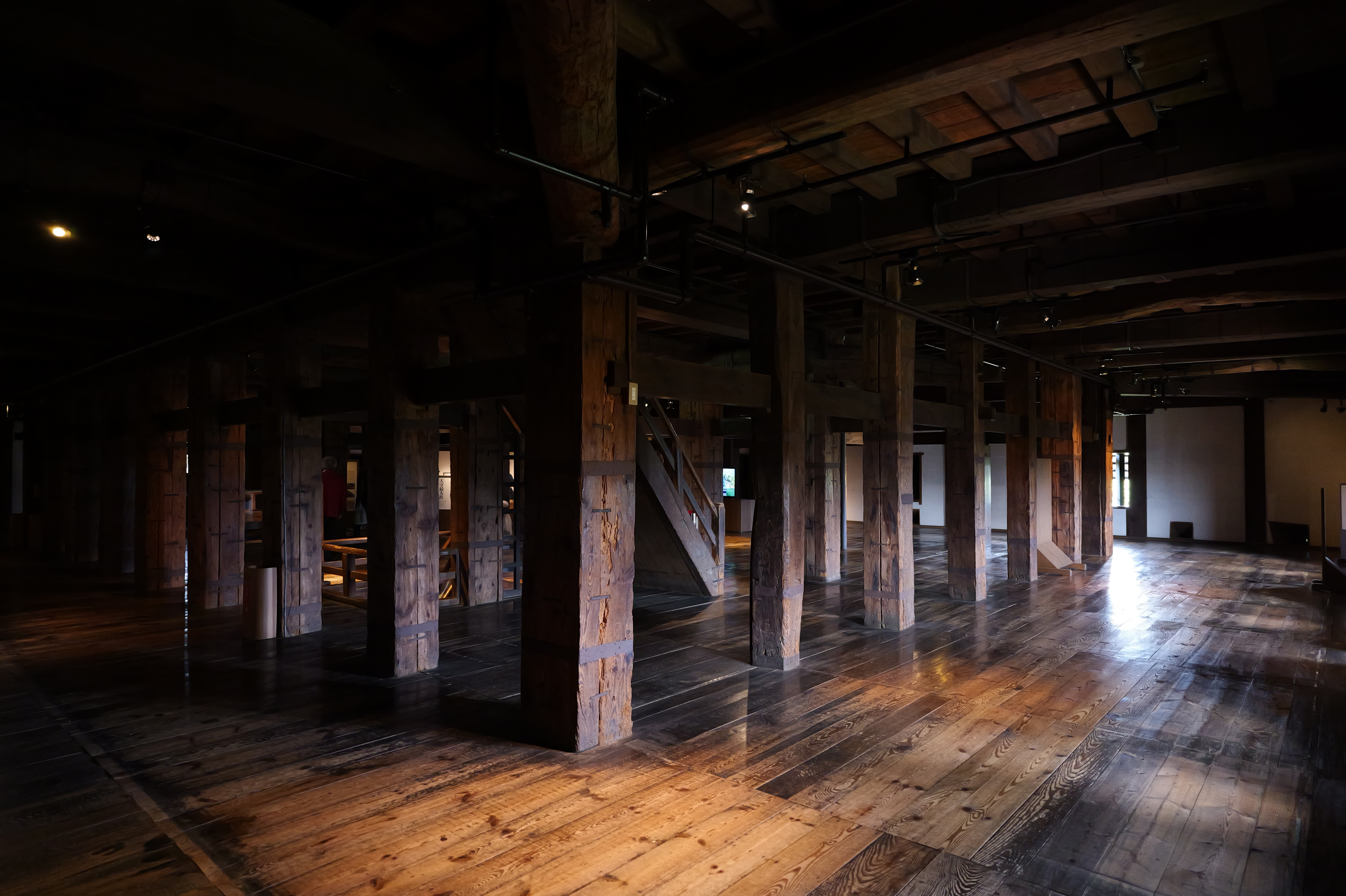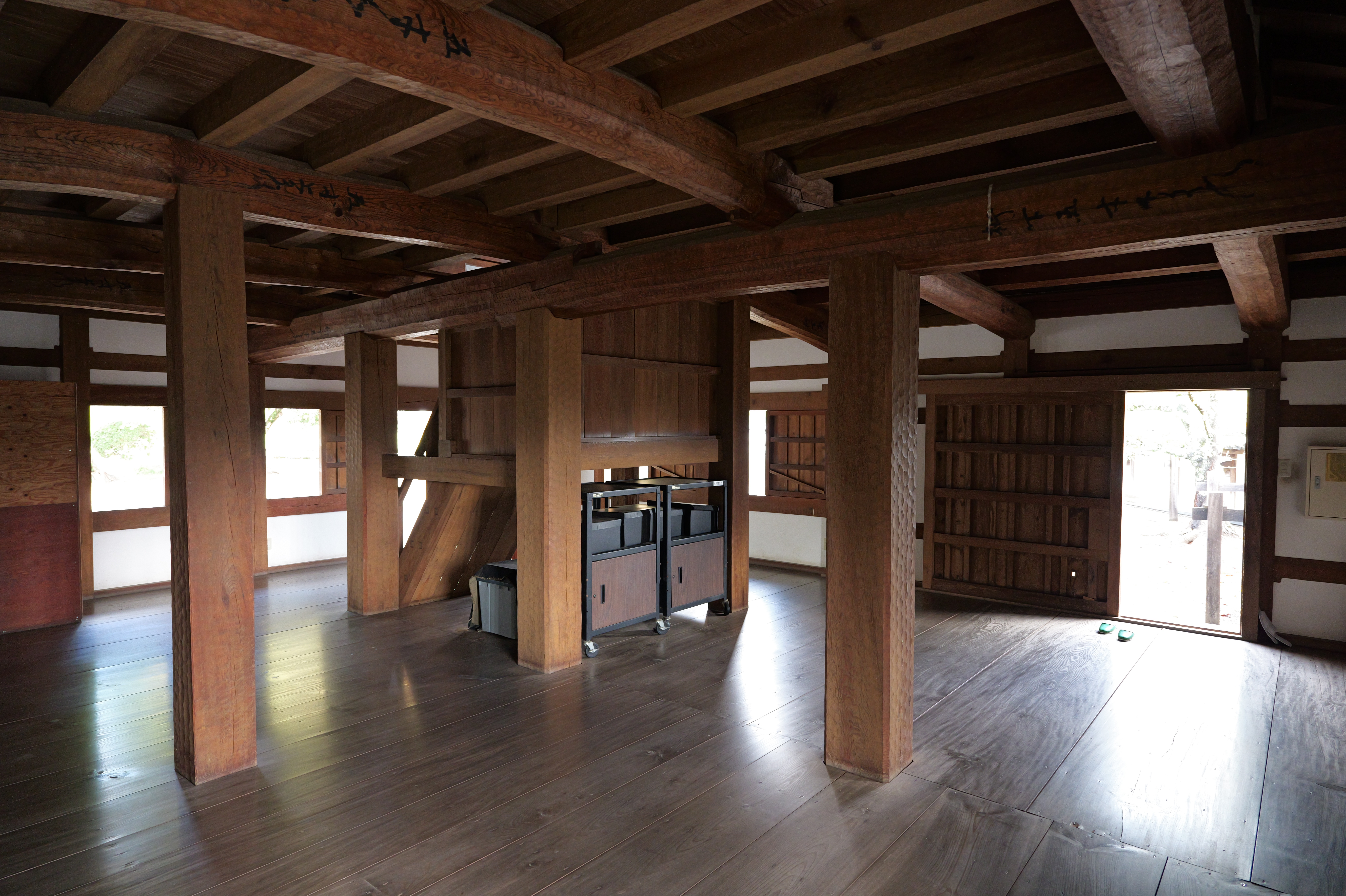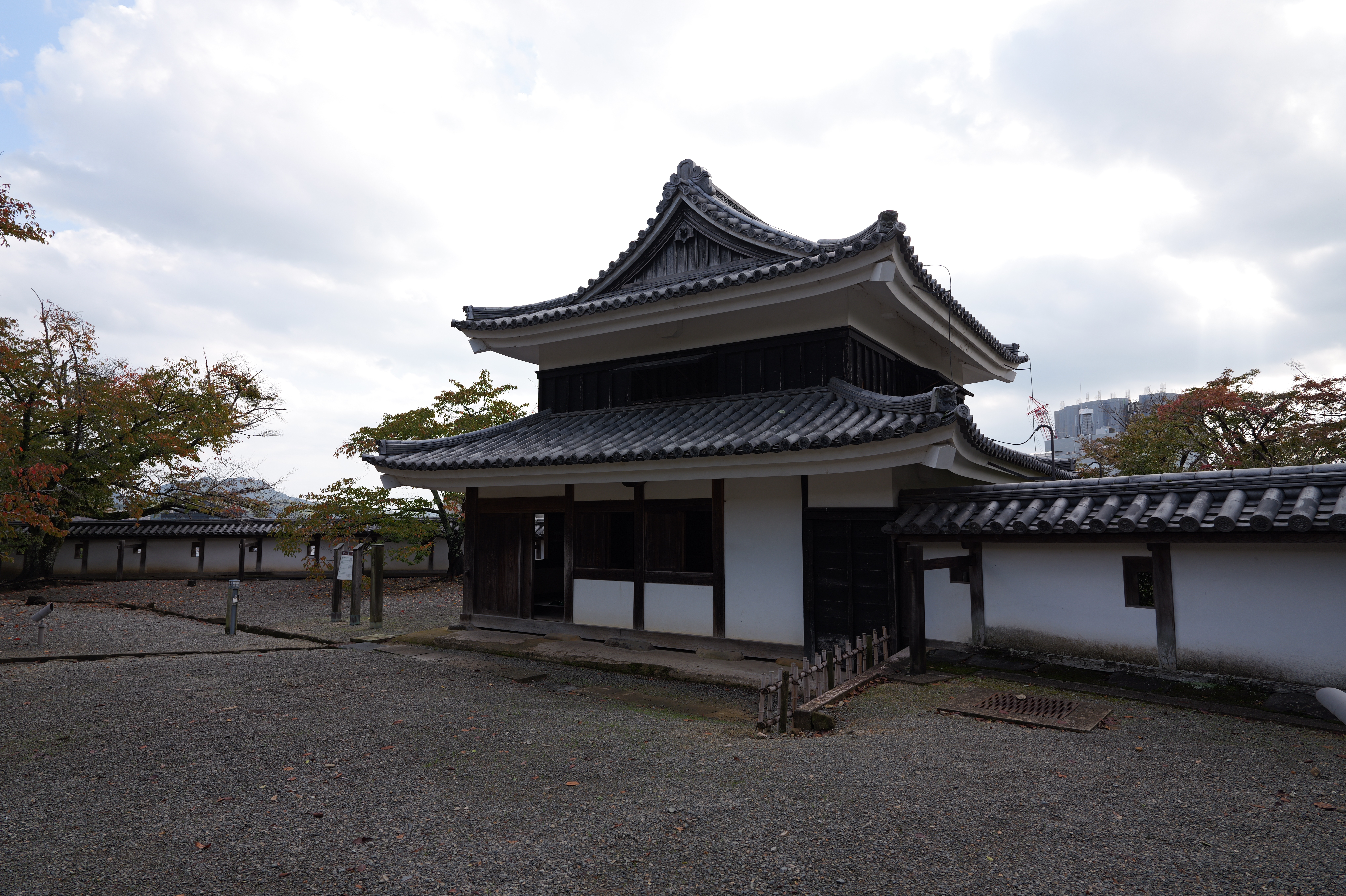 右側、二之丸南東隅にある二階建ての南櫓は内部公開されています。