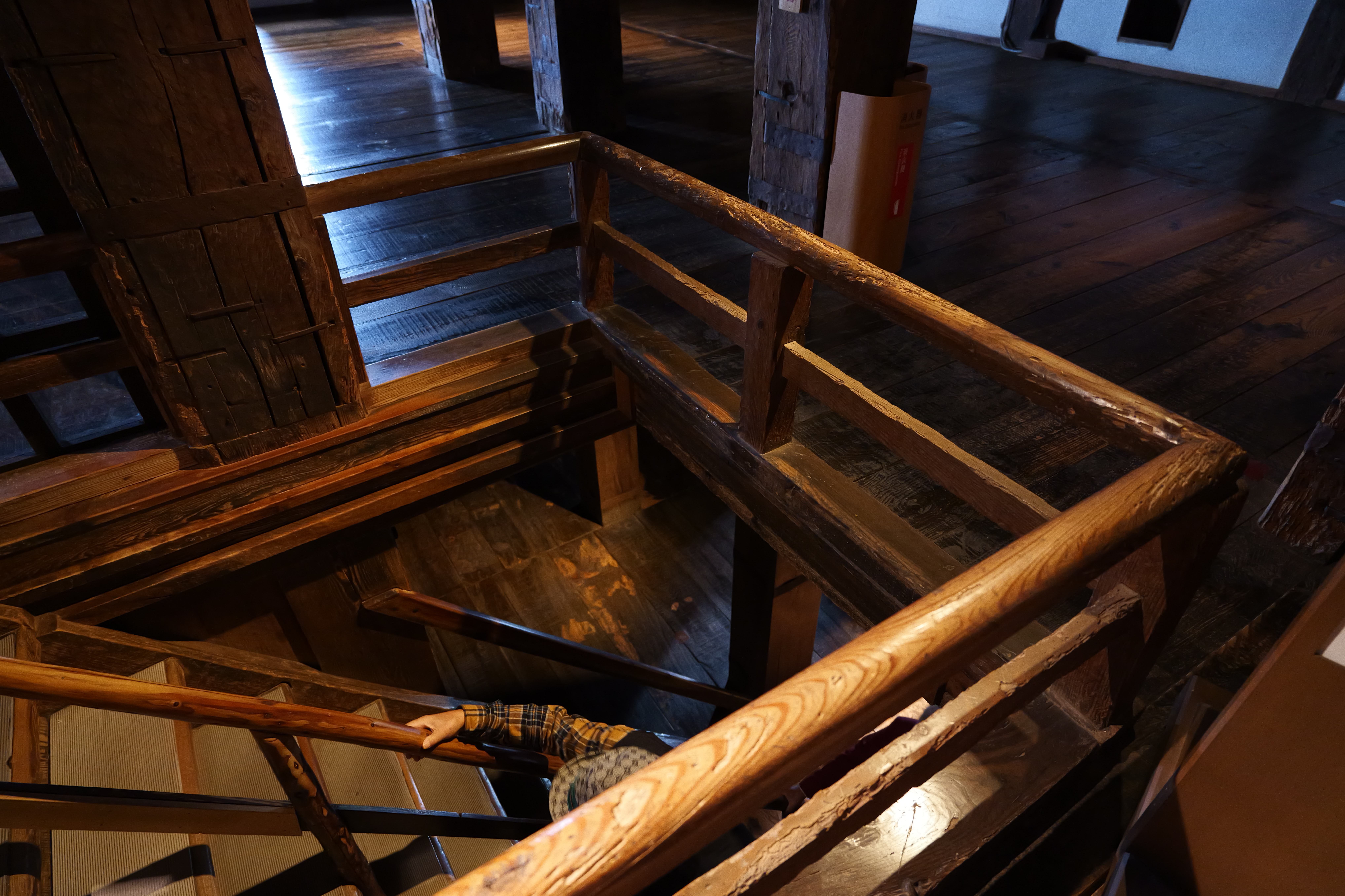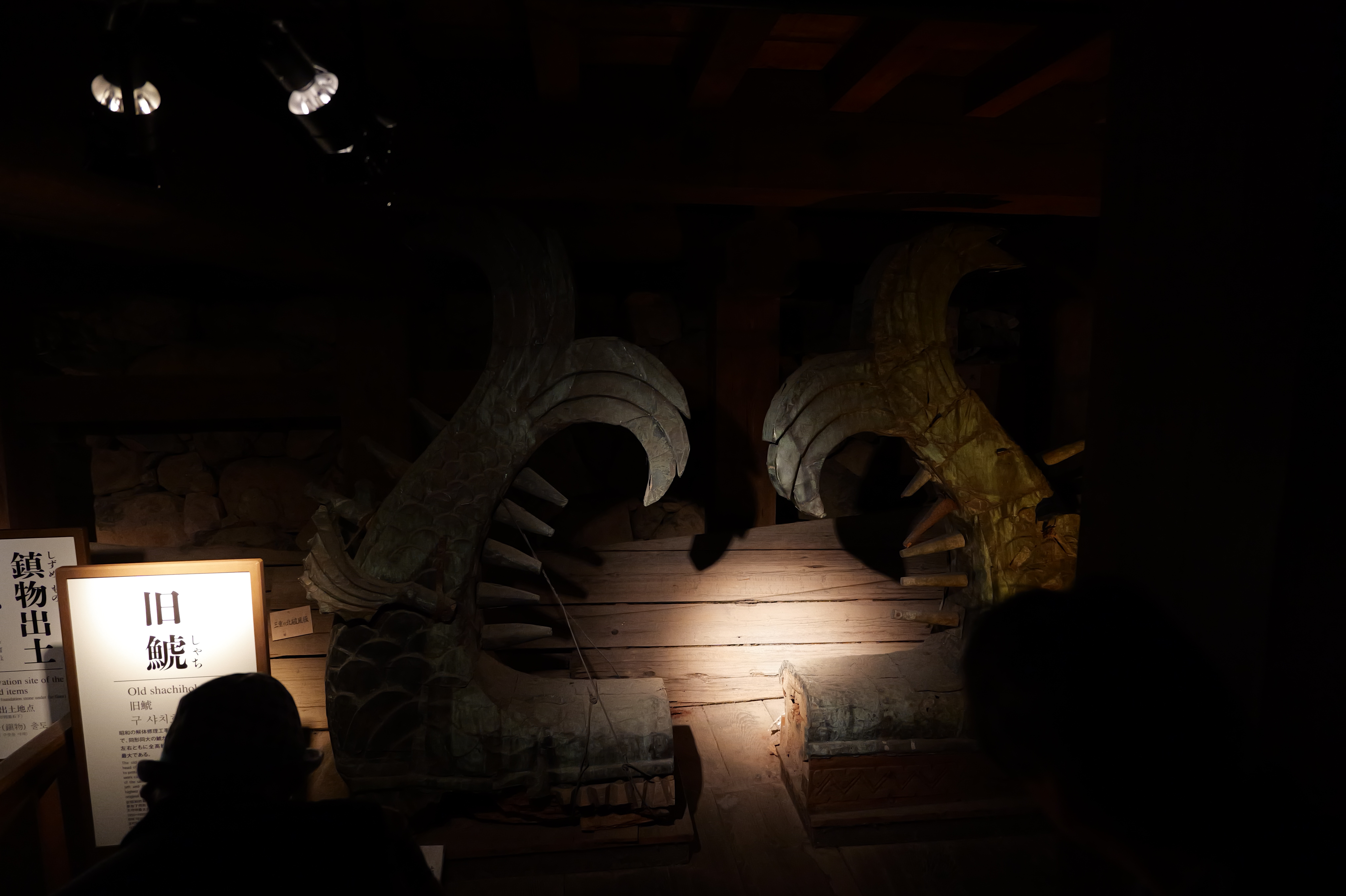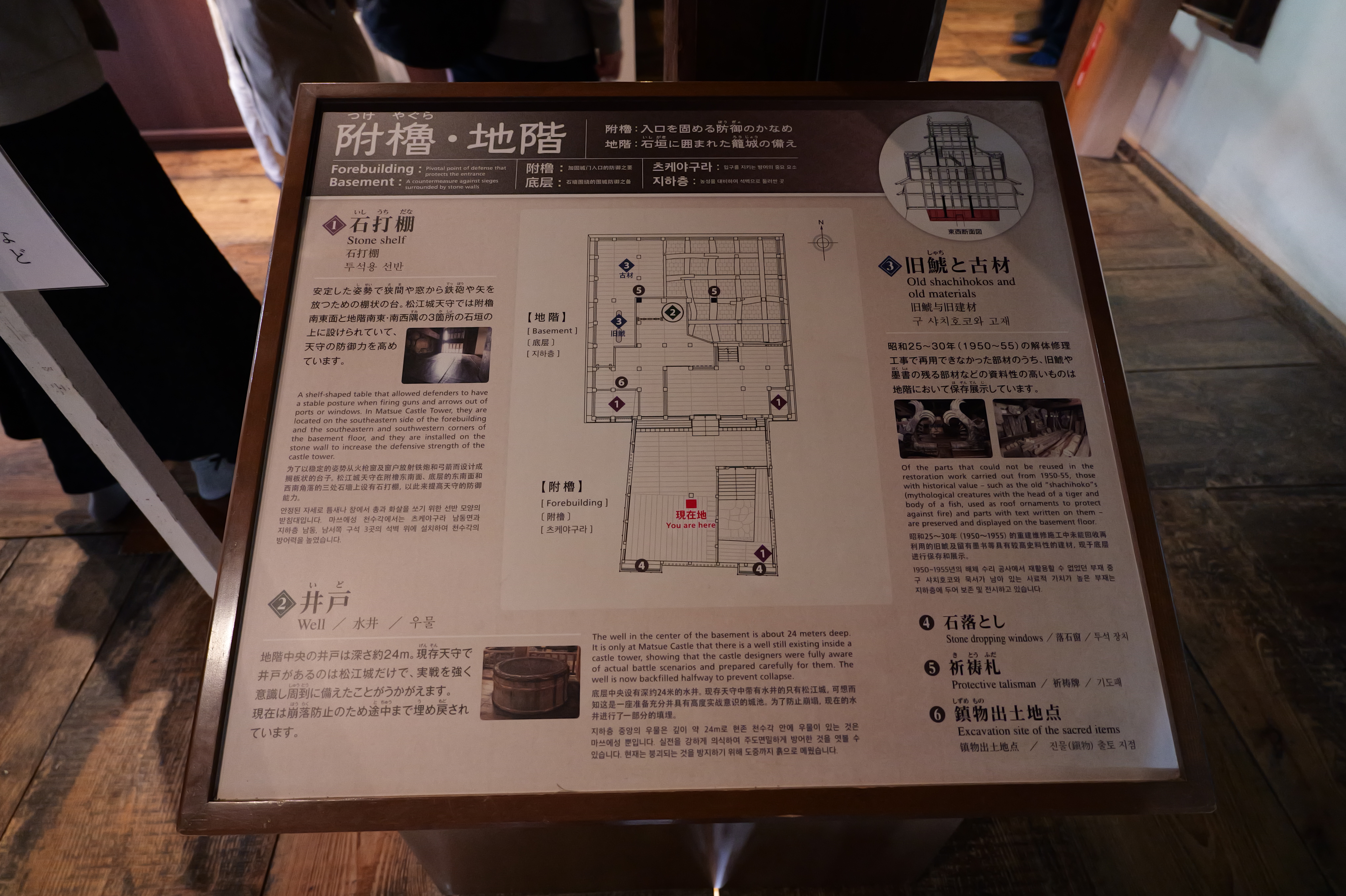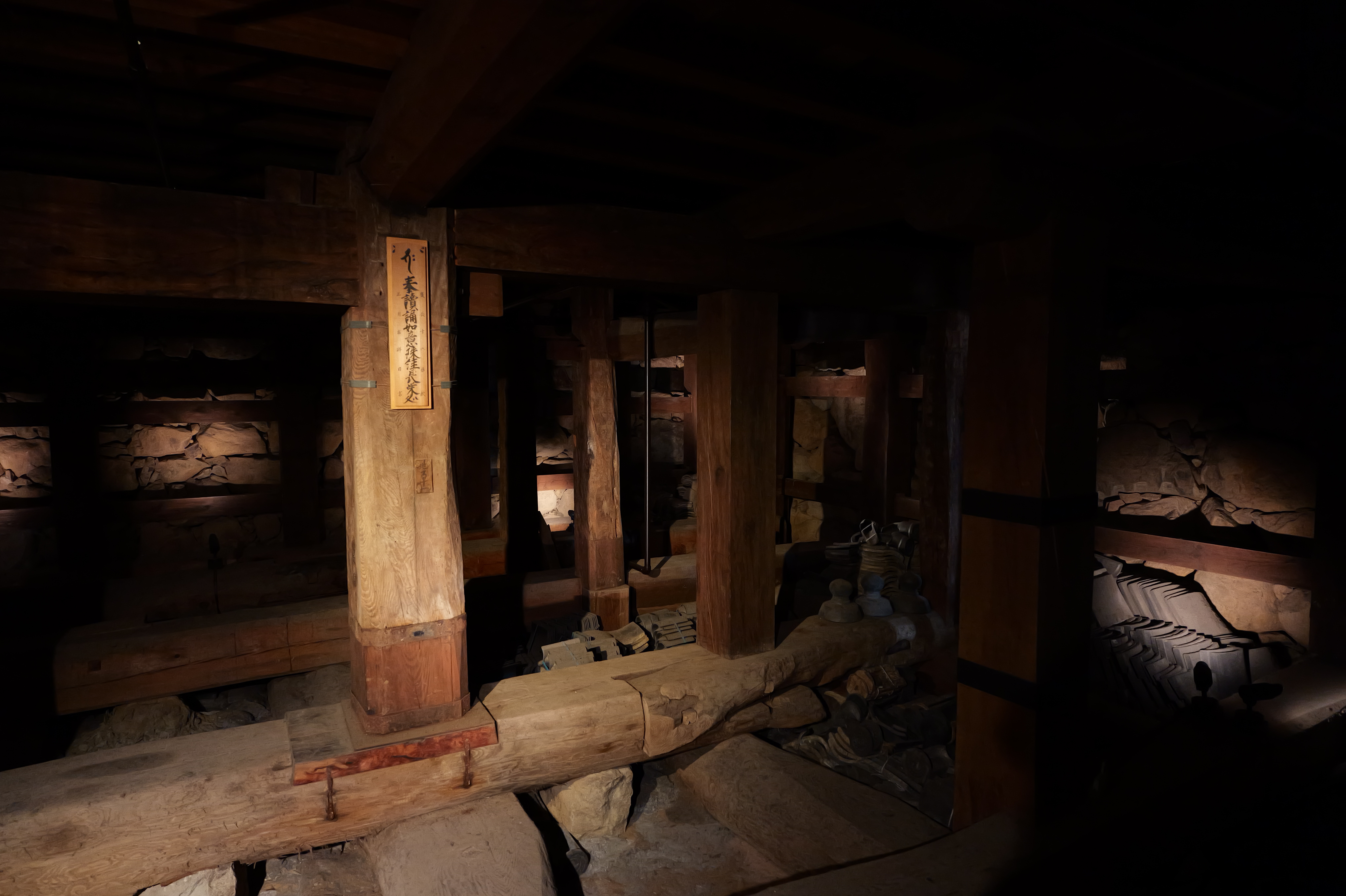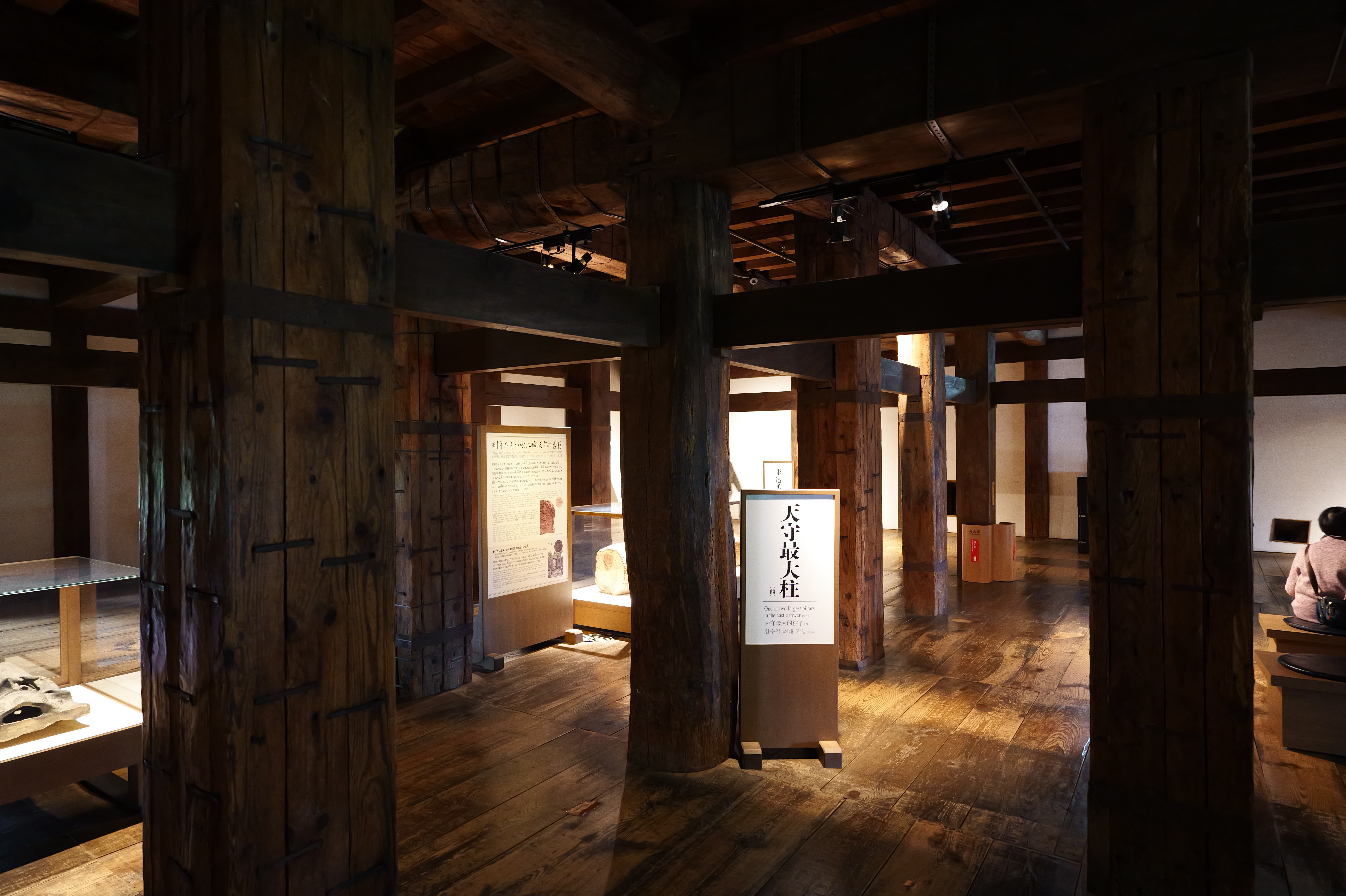 天守は附櫓から入り、天守地階へ。地階は塩蔵で井戸や旧鯱、石打棚が見られます。