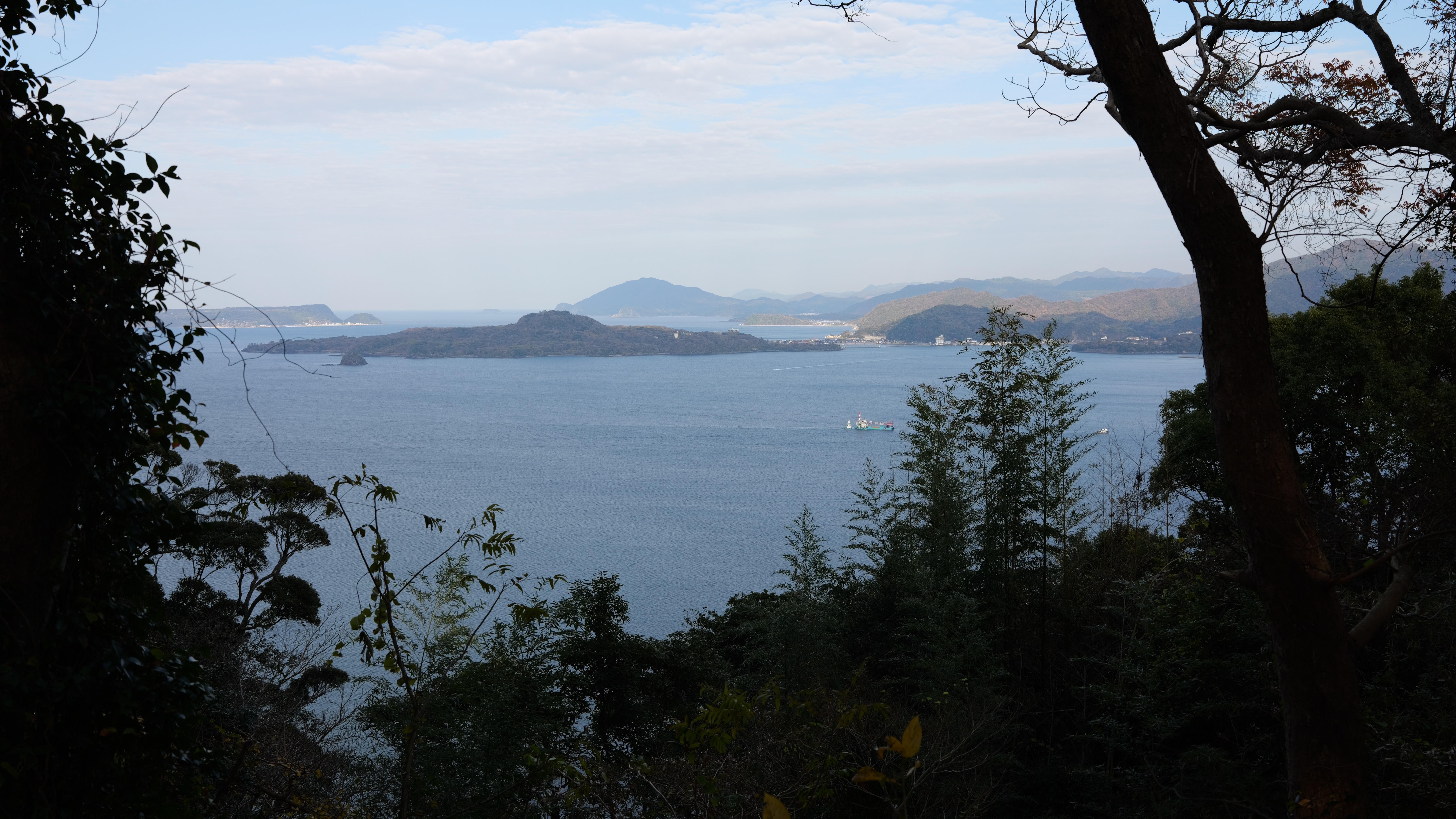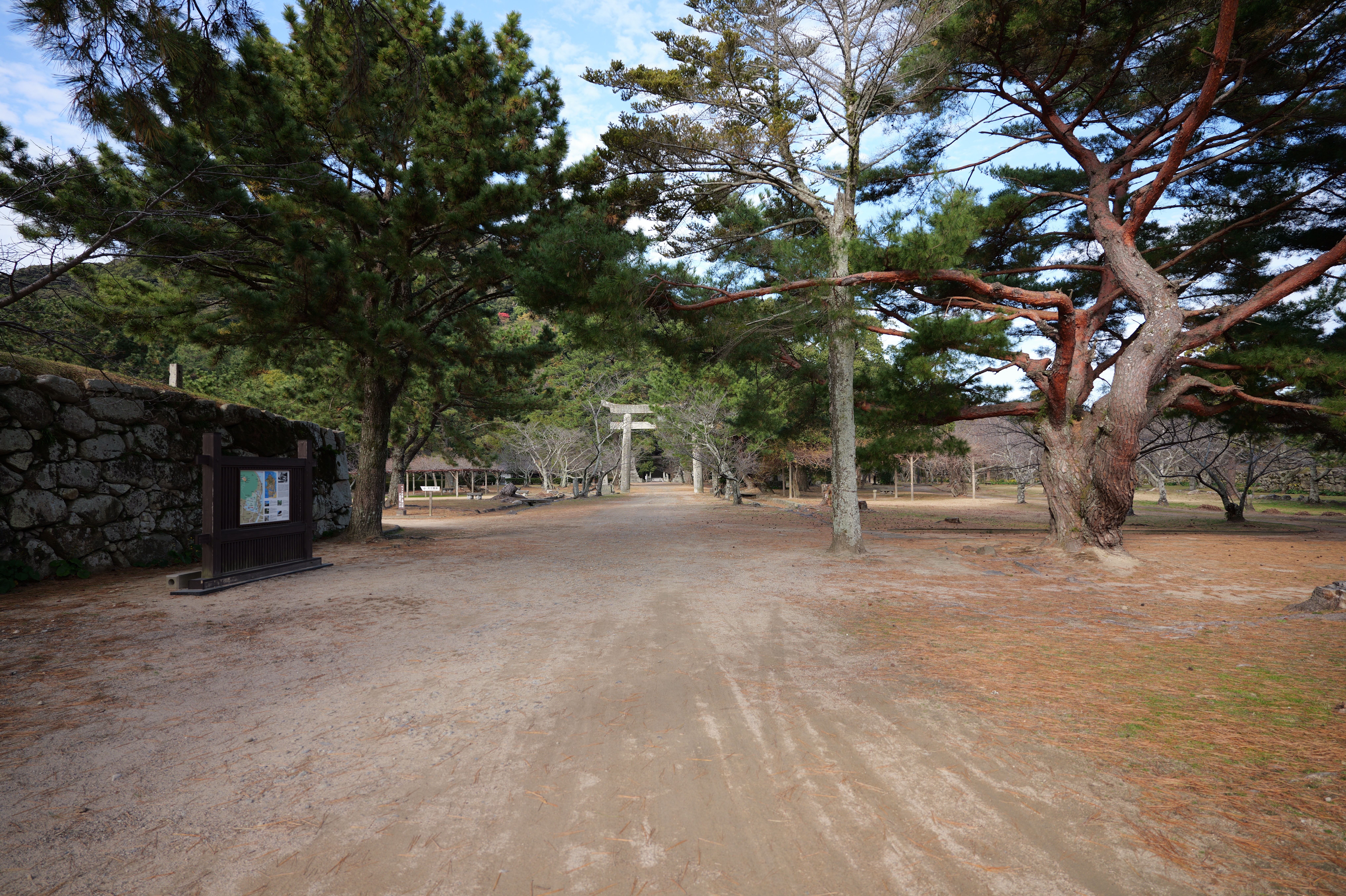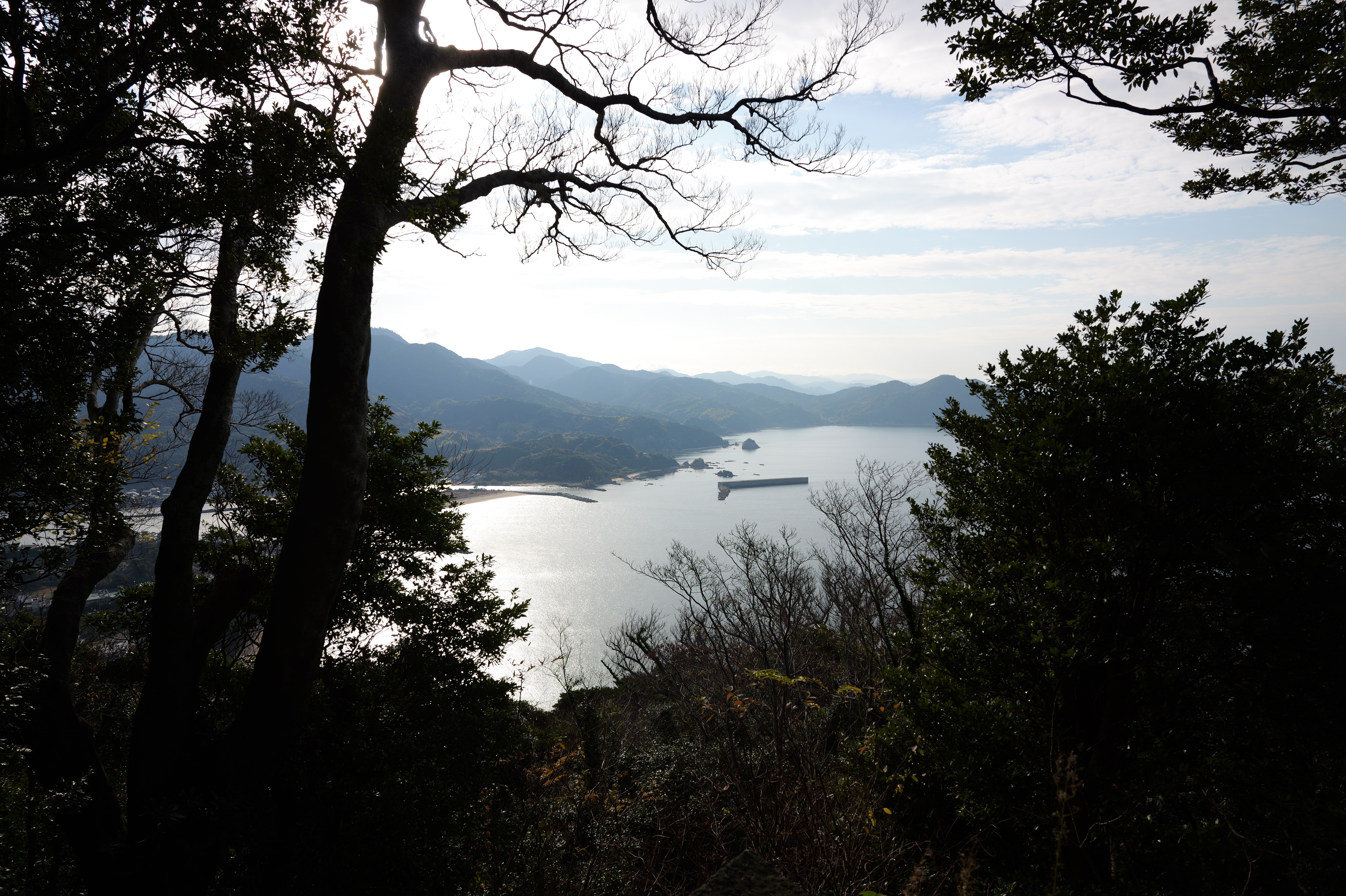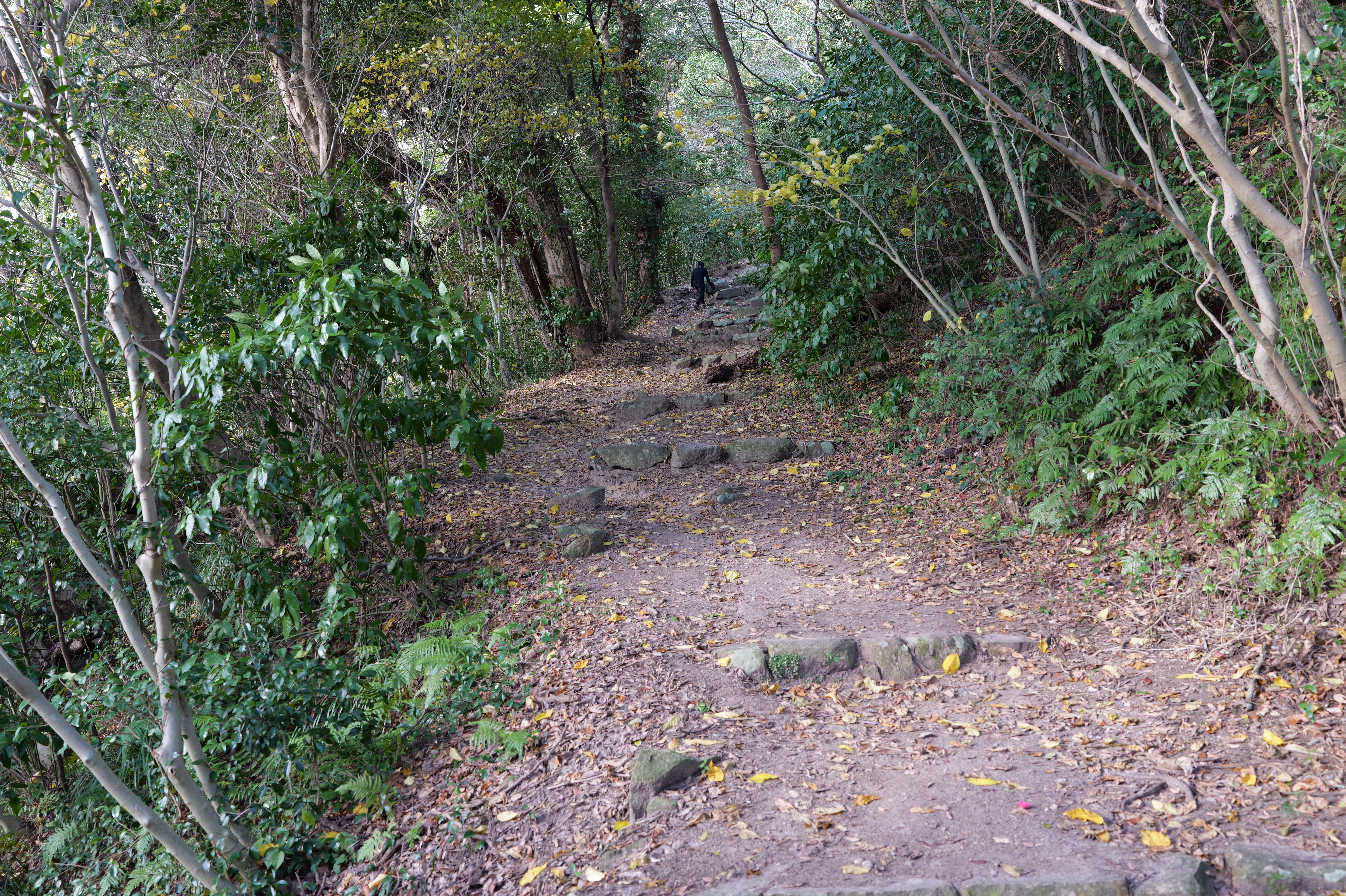 指月公園の出口から再度二の丸へ。南北に伸びる道をずっと北へ進んでたどり着いたのは北矢倉跡でした。途中にいくつか矢倉跡があるようですが、確認できず。北矢倉跡を抜けると海です。