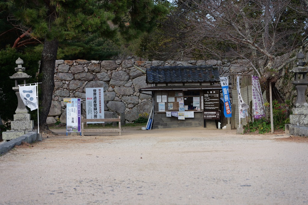 極楽橋を渡った先は本丸門跡で、指月公園料金所があります。内堀より城内側は有料(220円)で、スタンプと御城印(500円)はここで入手できます。