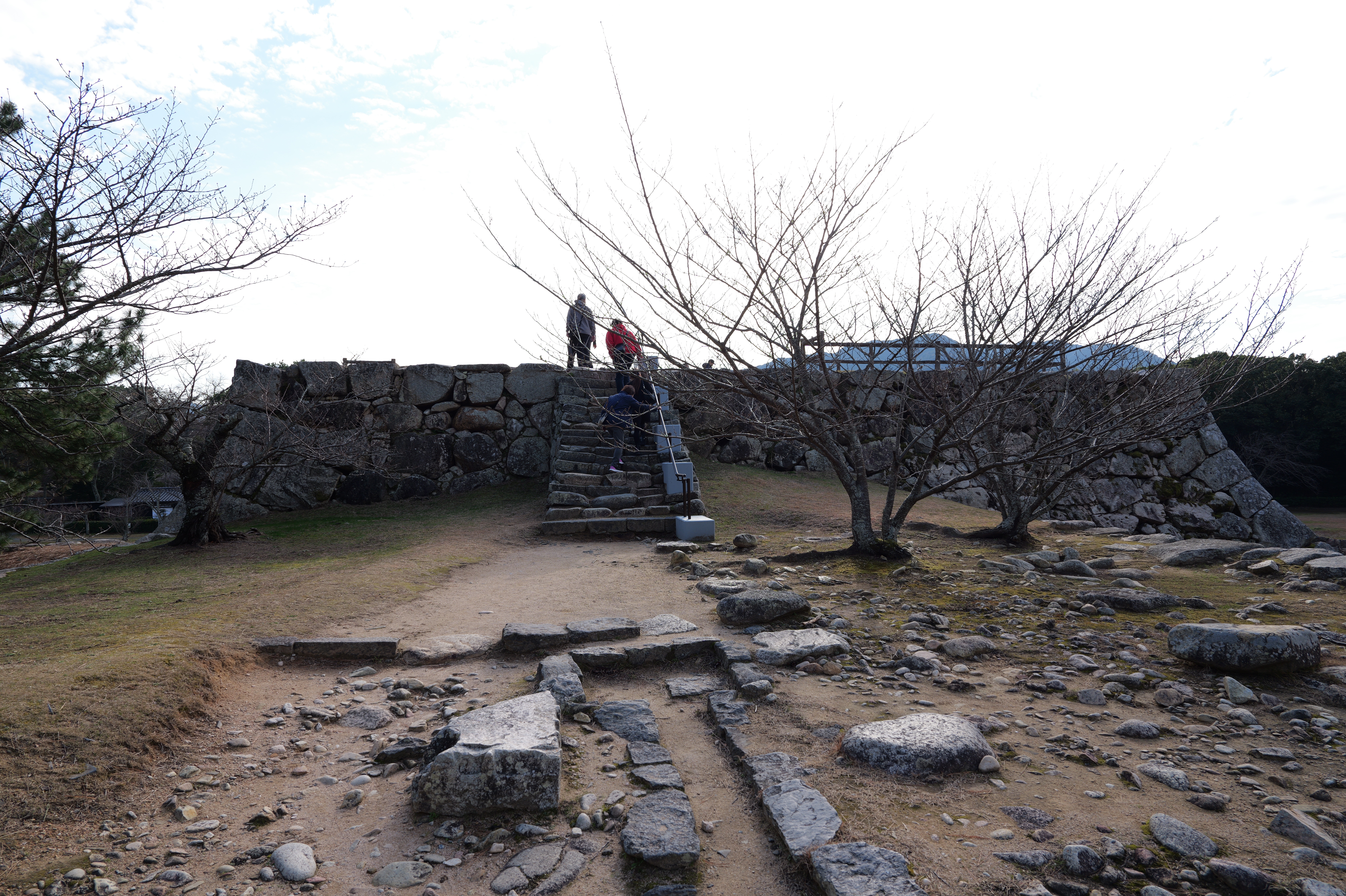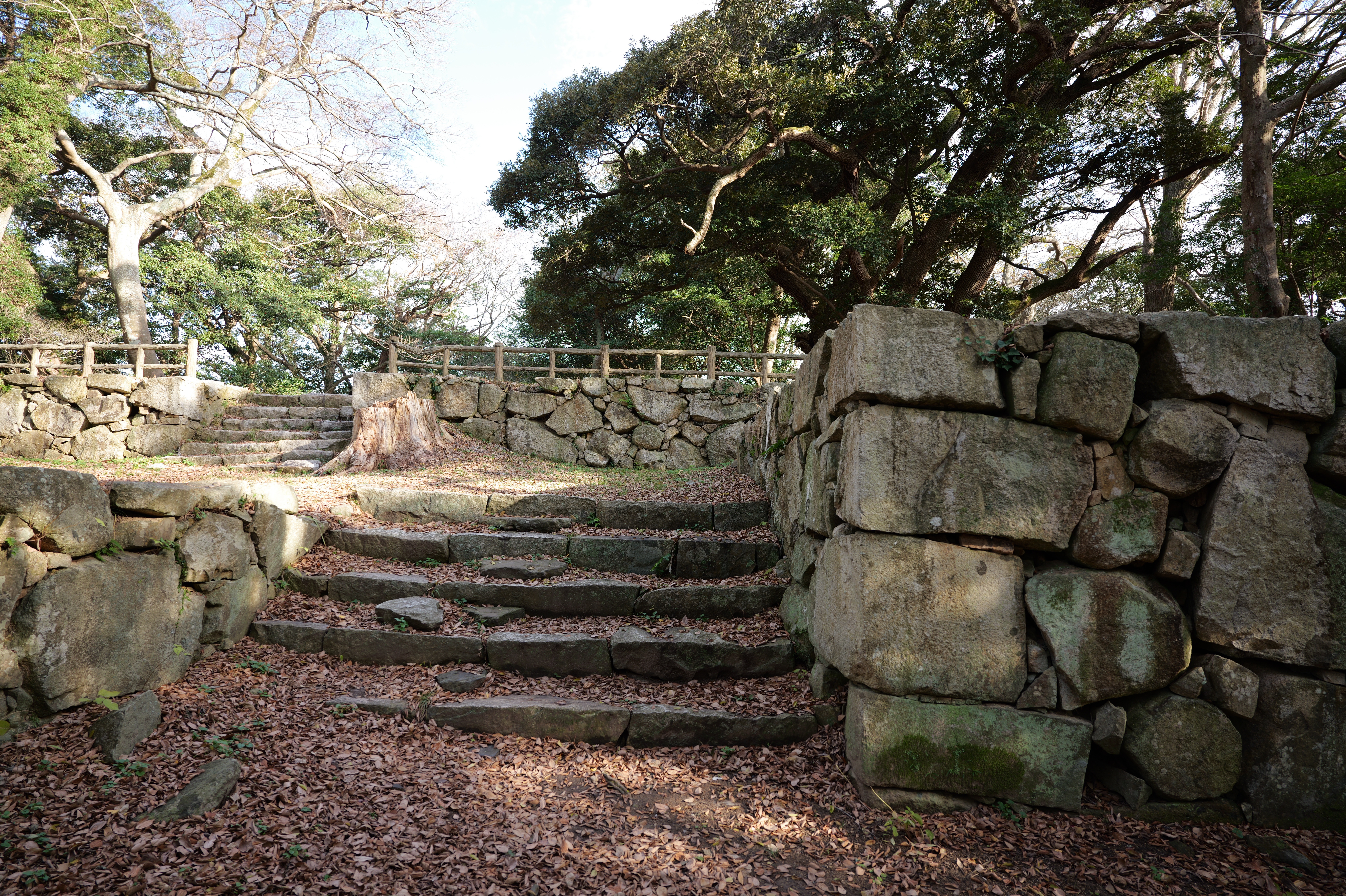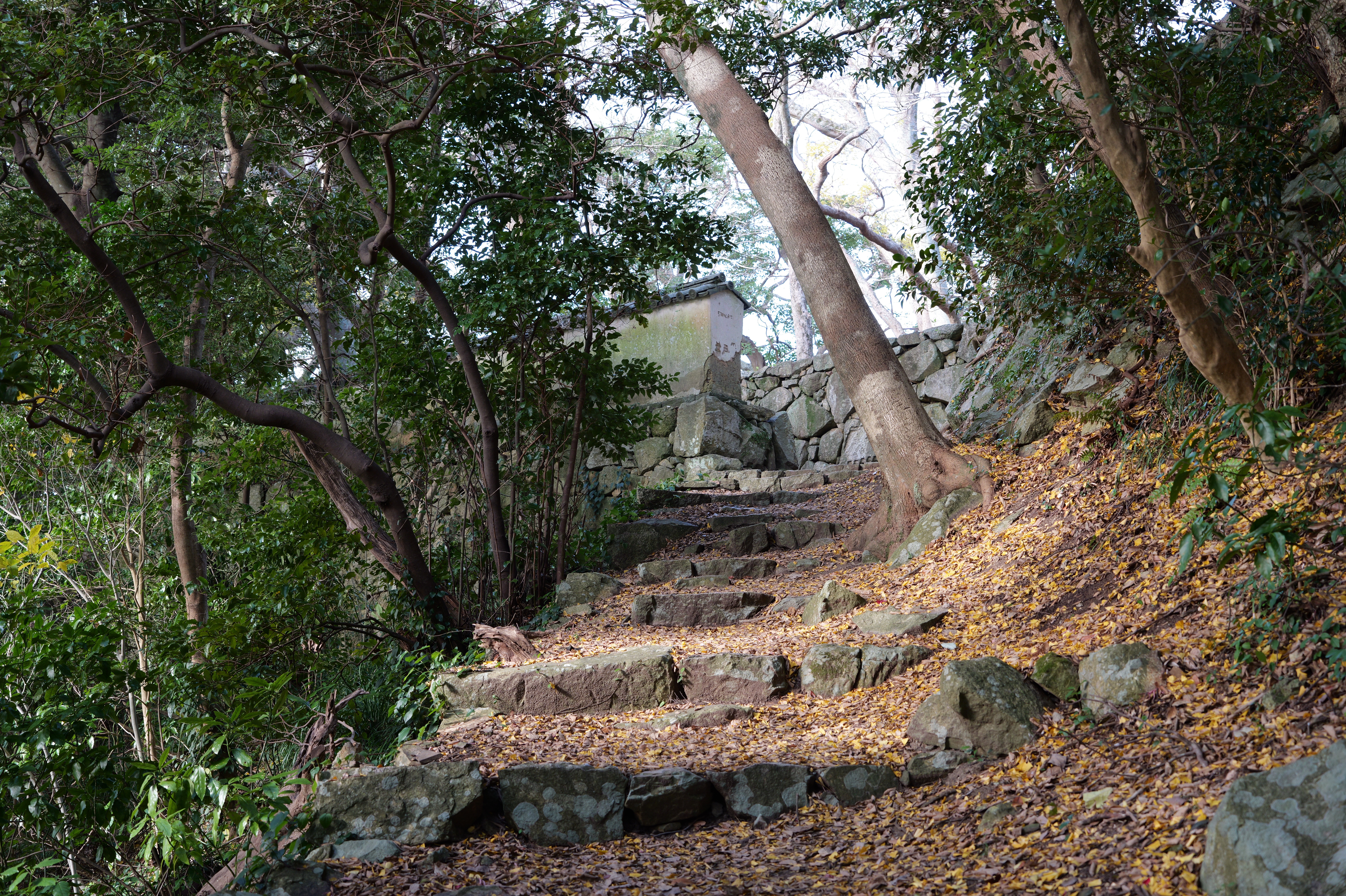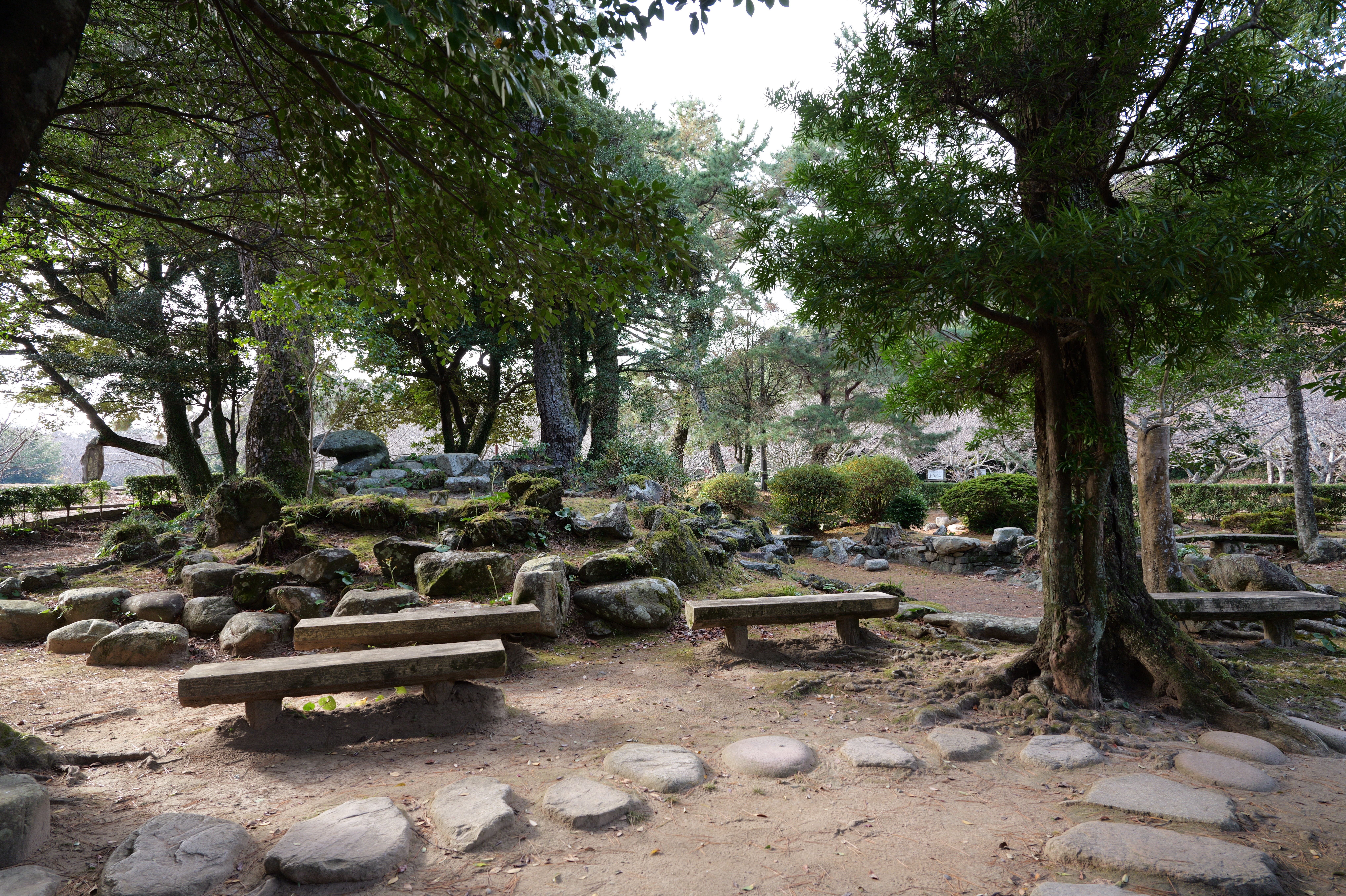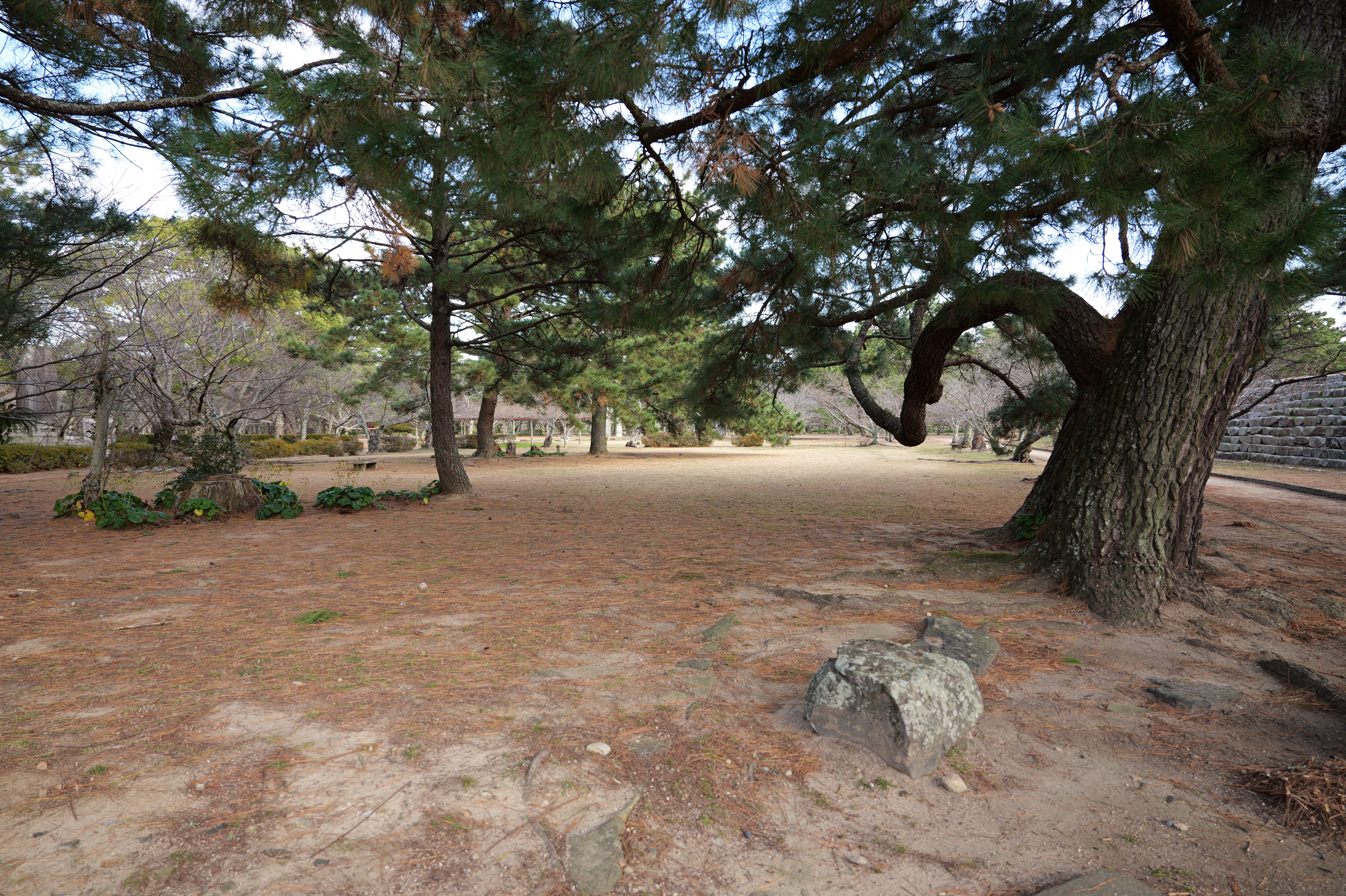 天守台の北側には五十間長屋跡や花江茶亭、梨羽家茶室が移築された庭園があります。本丸散策はひとまず中断し、西へ進んで詰丸を目指します。