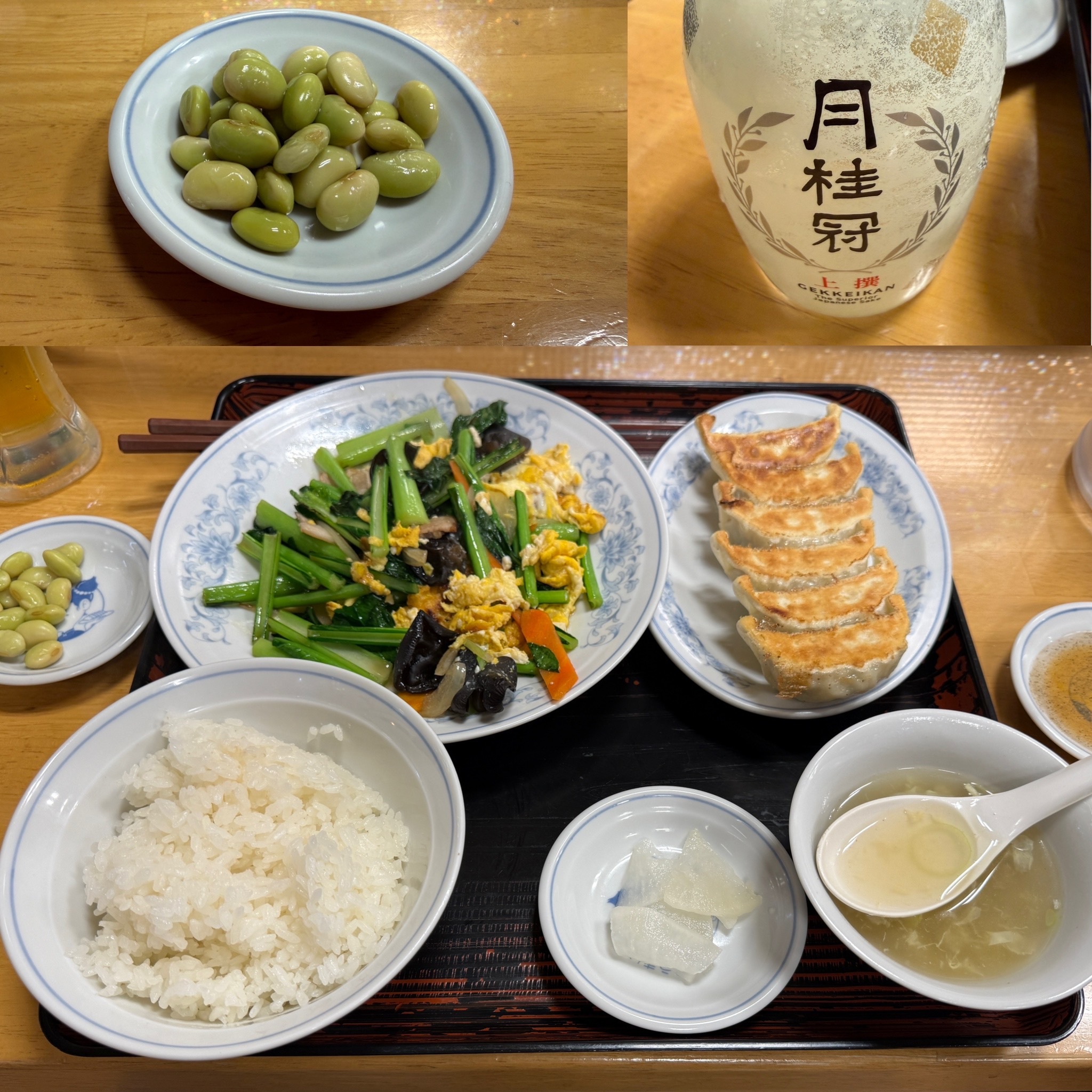 ということで今日の散策は終了、京都市営地下鉄、阪急電車と乗りついて今日の宿、ホテルクライトン新大阪に16時ごろチェックイン。夕飯は事前に目星をつけた居酒屋のつもりが、駅前でぎょうざの満州を発見!行ったことなかったし宿から近いのでそこに決定。ビールと塩ゆで秘伝豆(ハーフ)、小松菜と玉子炒めセット(焼き餃子・ライス・スープ・漬物つき)と日本酒。しめて2,260円なり、安い!大変満足でした。