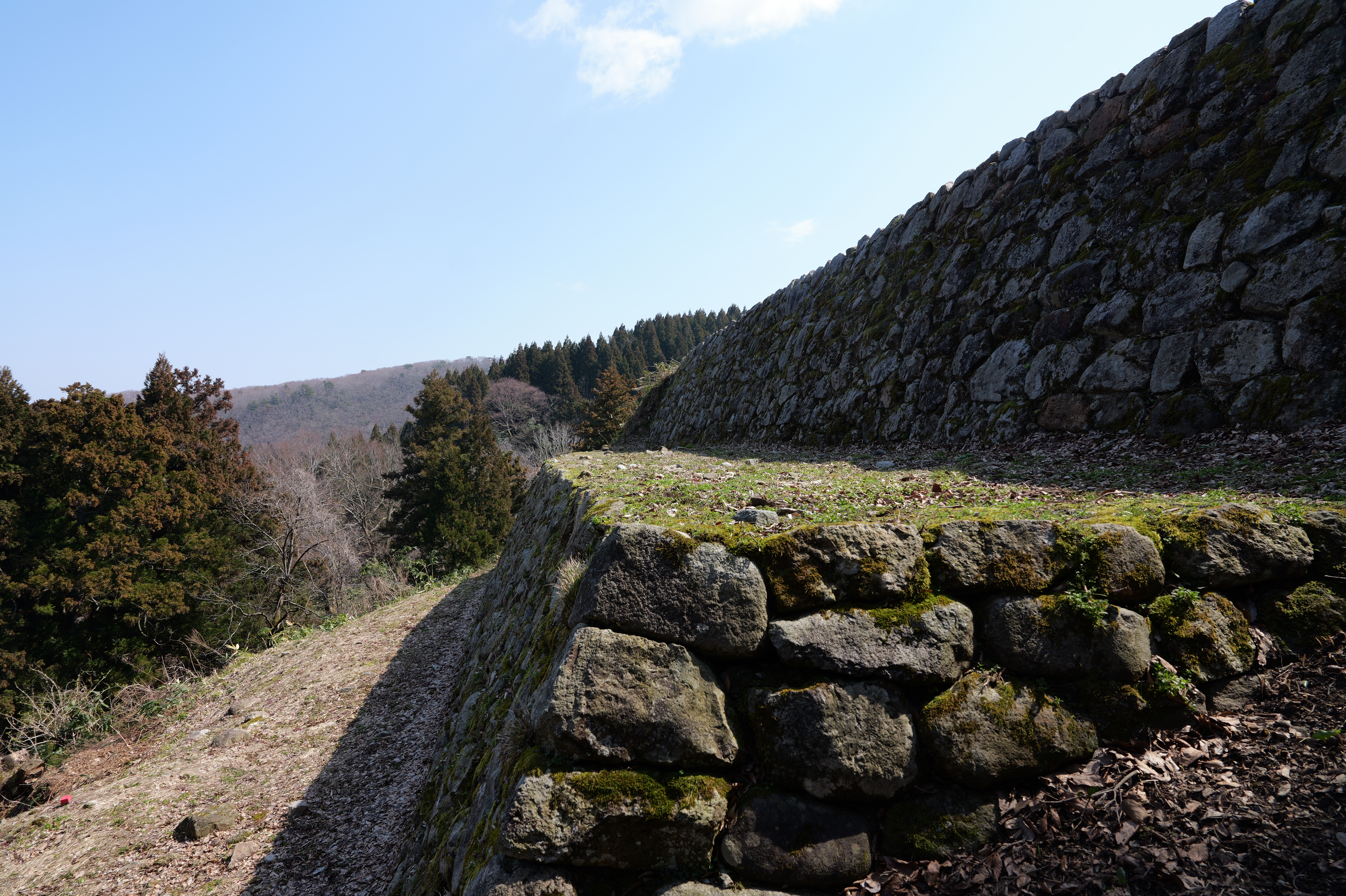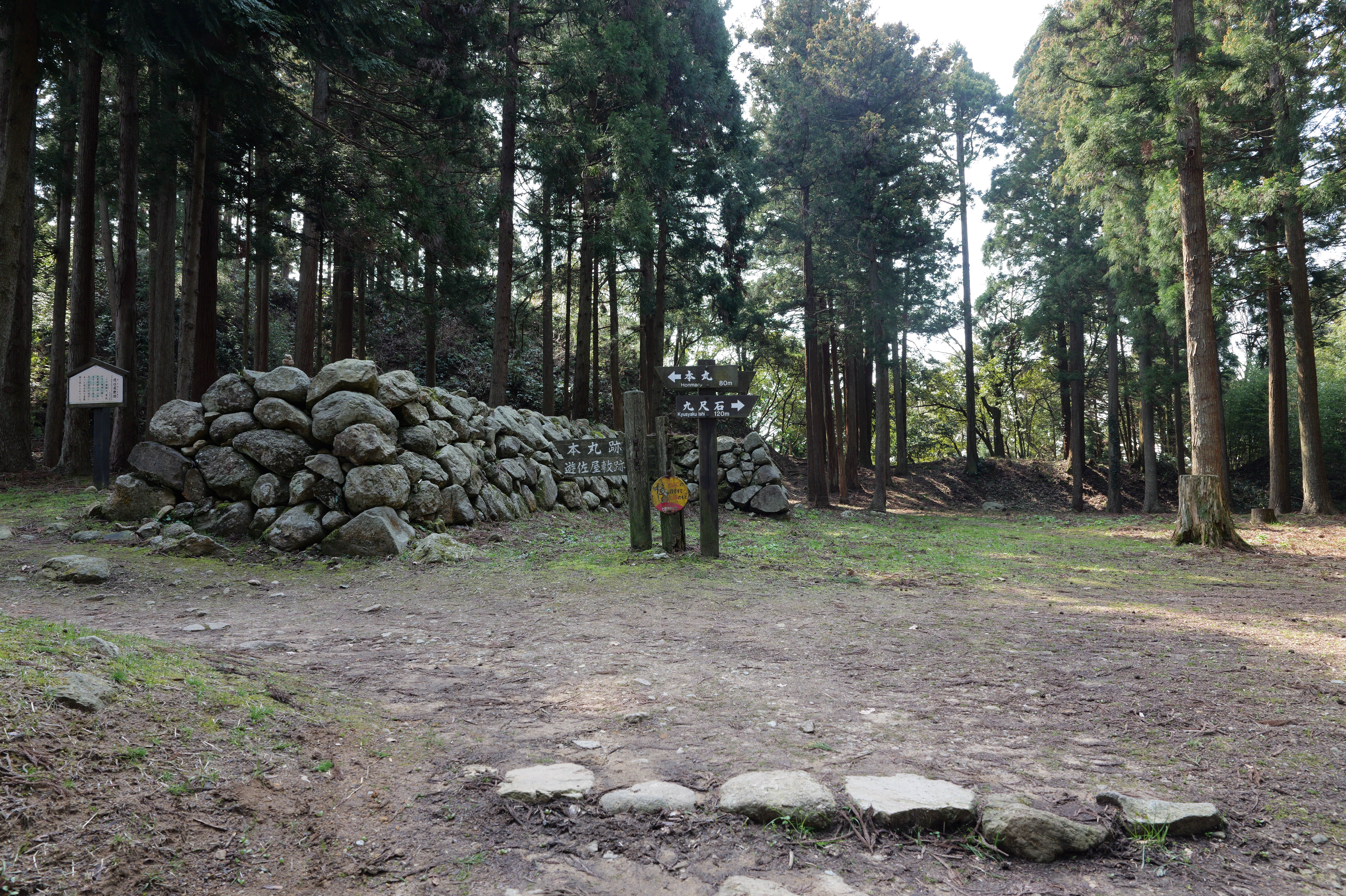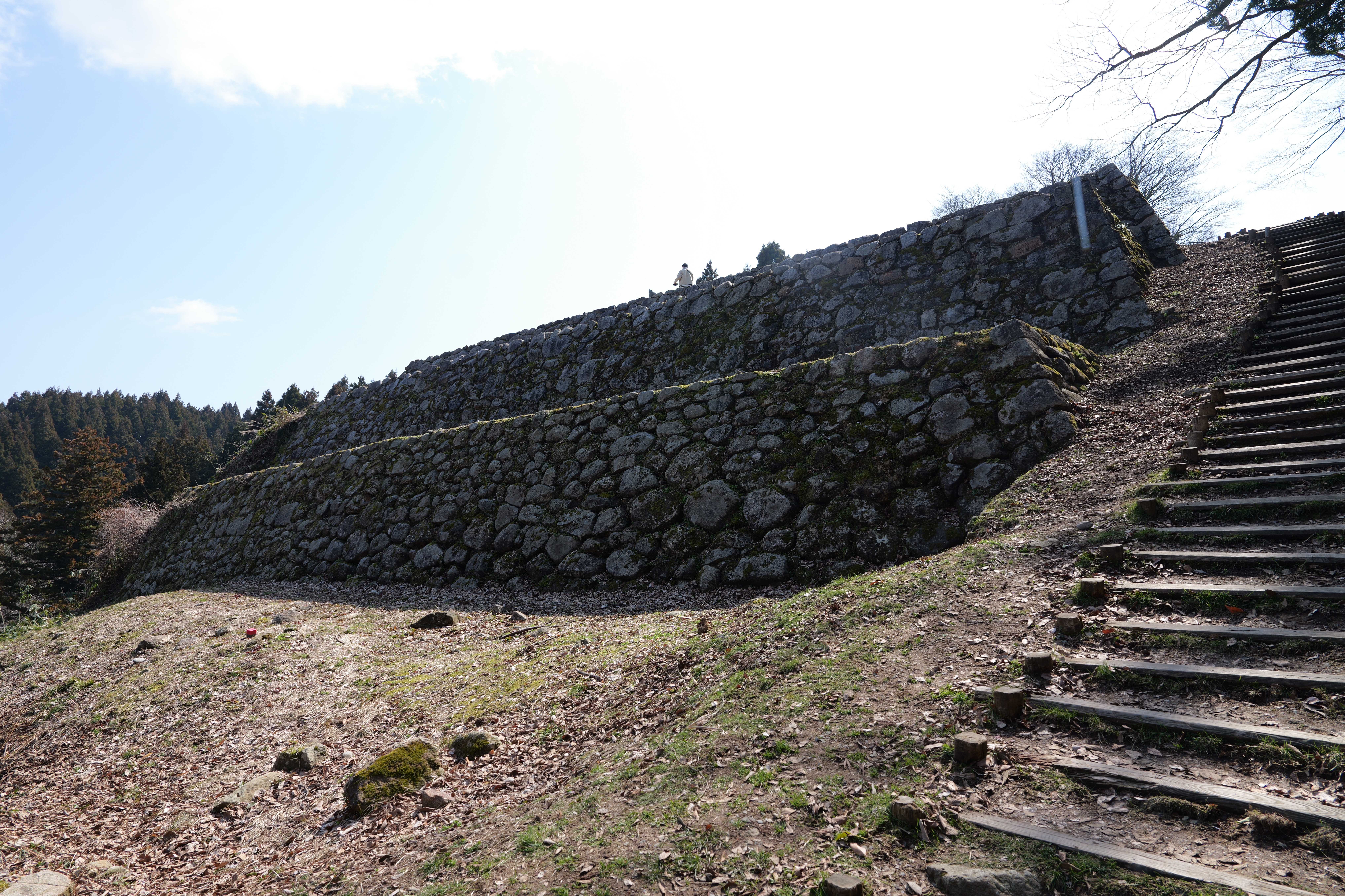 遊佐屋敷を右手に見ながら階段を登っていくと本丸の3段に積まれた石垣が現れます。